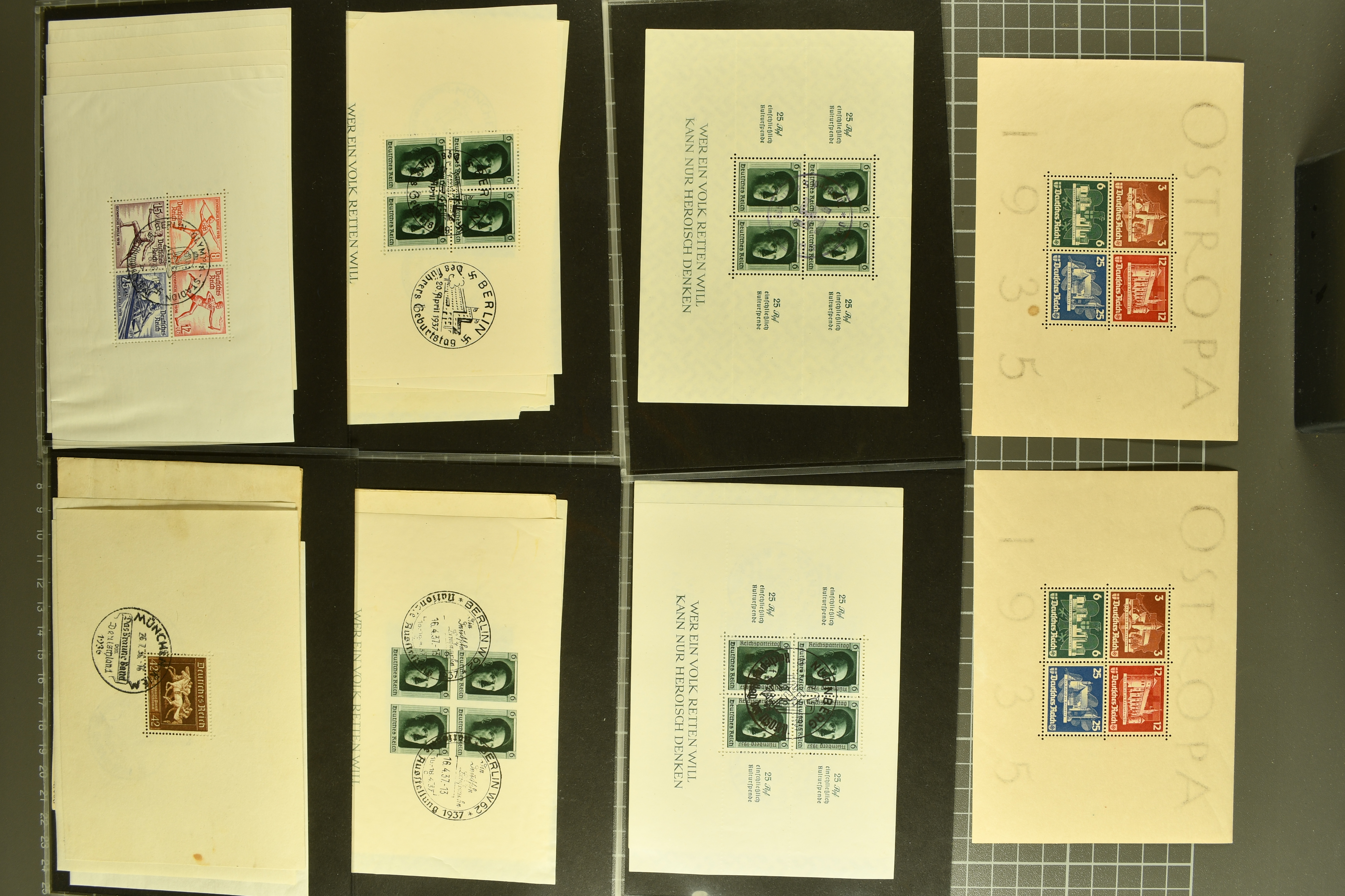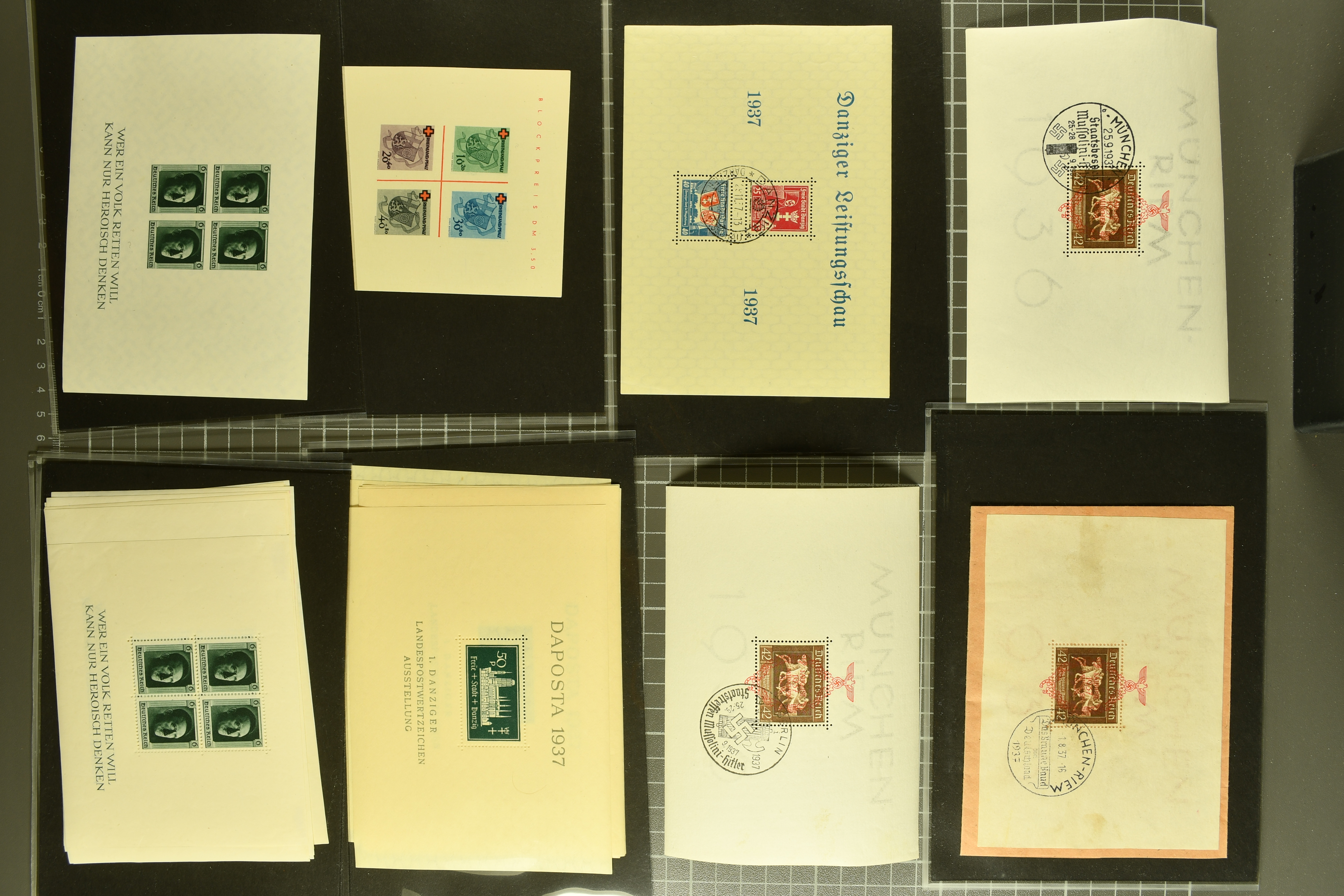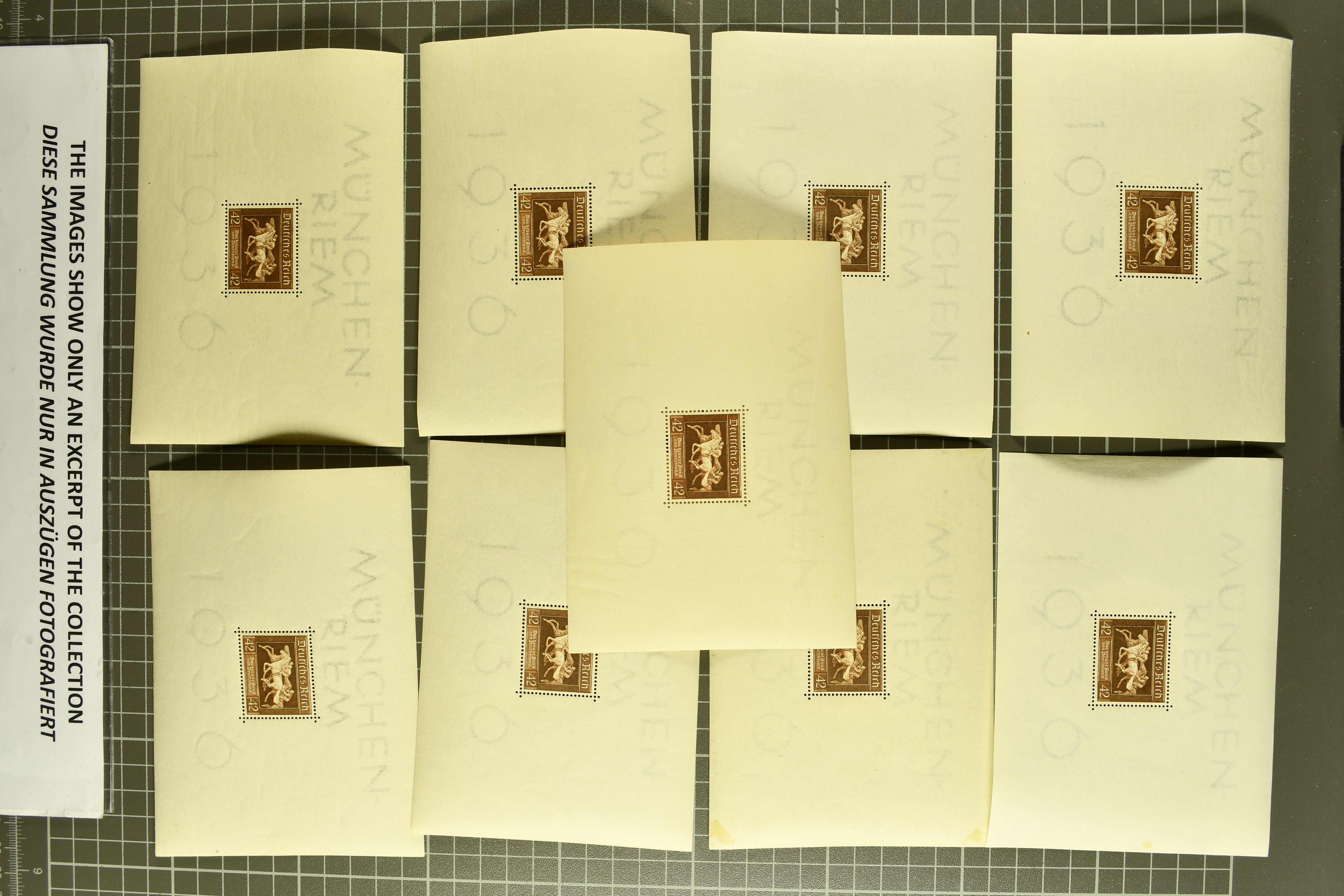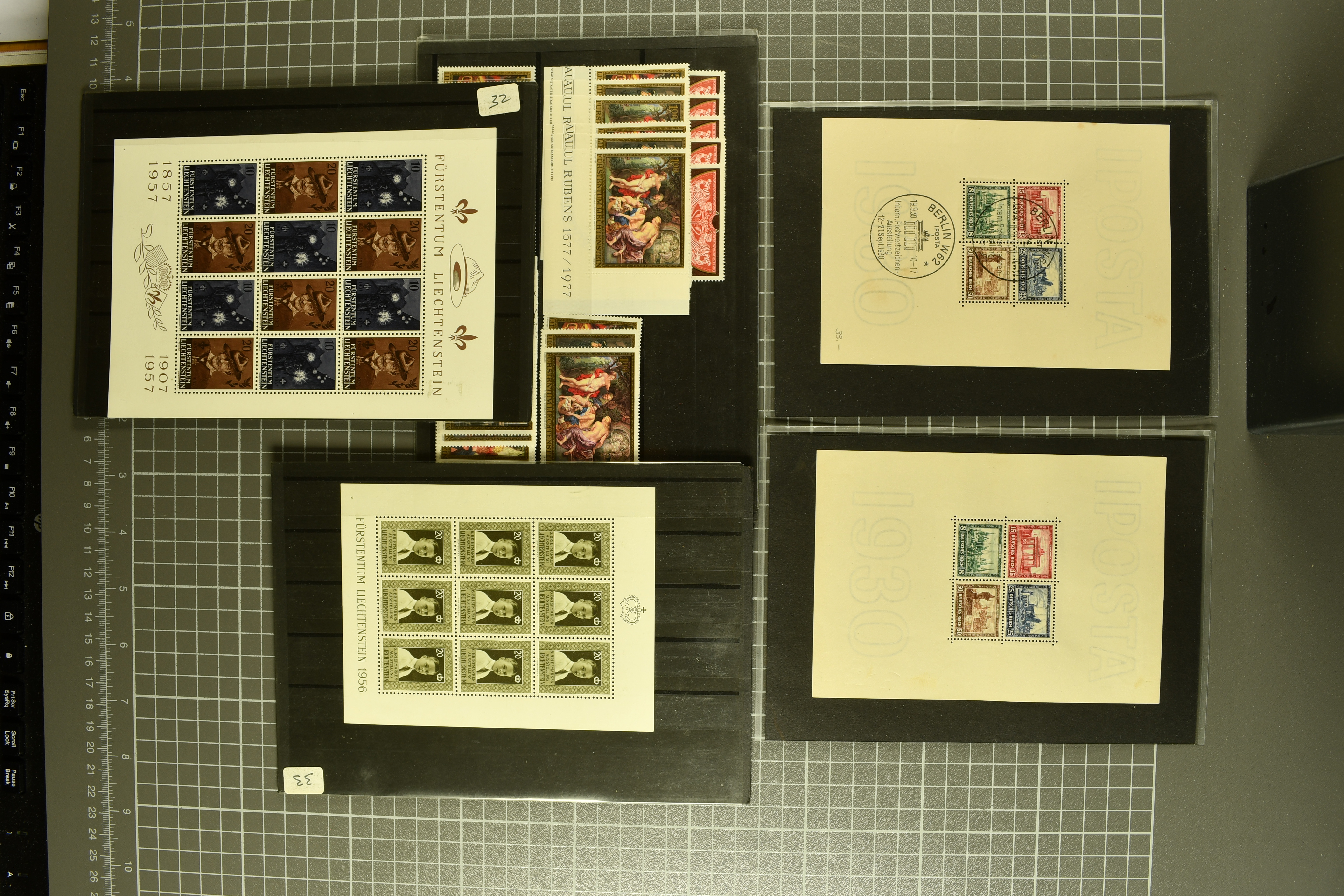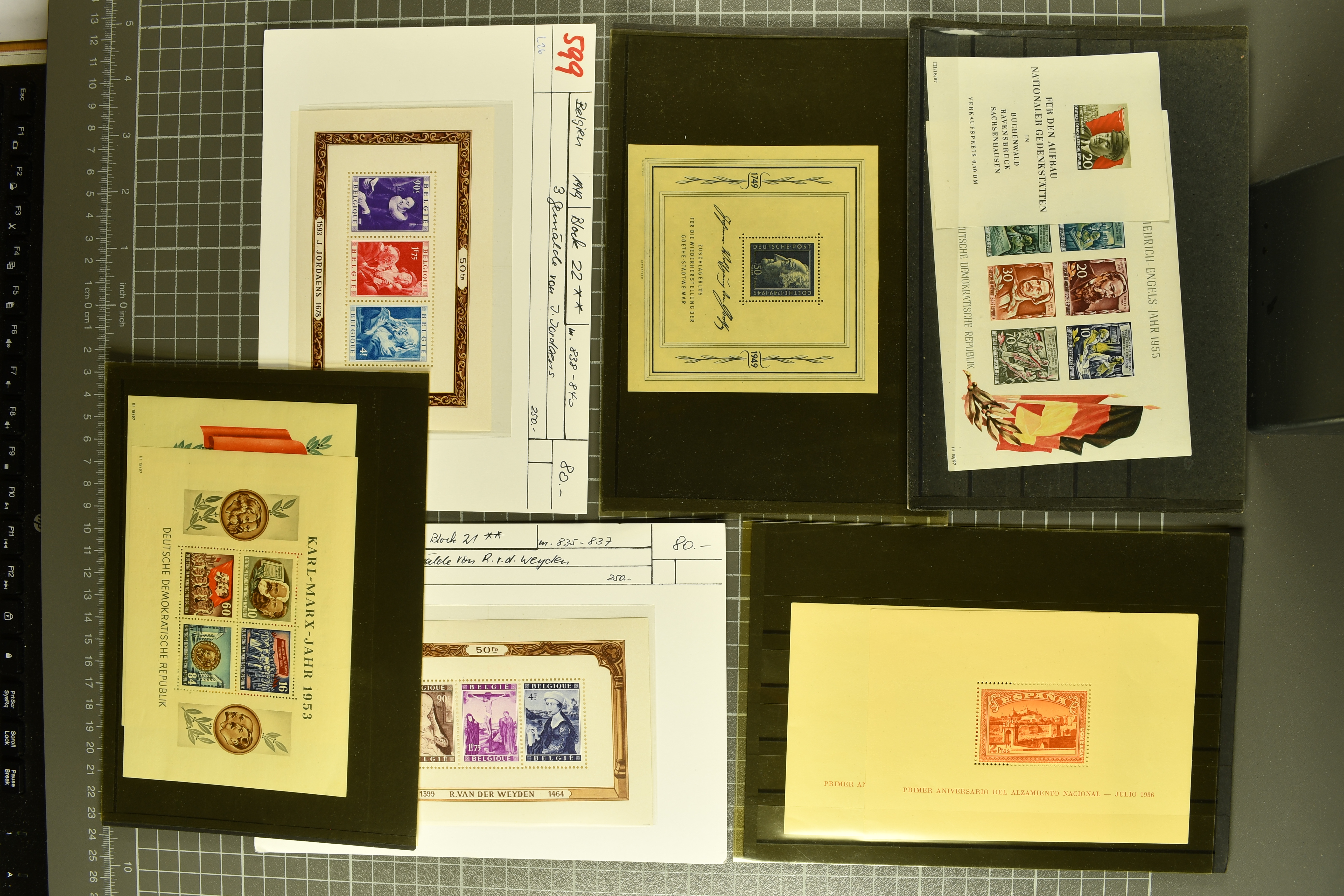 1441 image1930/1980ca: Dealer stock of souvenir sheets in a box, mostly in good condition. Strongest areas Belgium and Germany (Reich with Iposta 1930 2x and Ostropa 2x, French Zone, etc.), complemented by numerous lower-priced souvenir sheets from European and overseas countries including Channel Islands, Hungary, Lebanon, and Korea etc. Mix of unused (hinged), never hinged, and used items (Image 1) (Image 2) (Image 3) (Image 4) (Image 5) (Image 6)