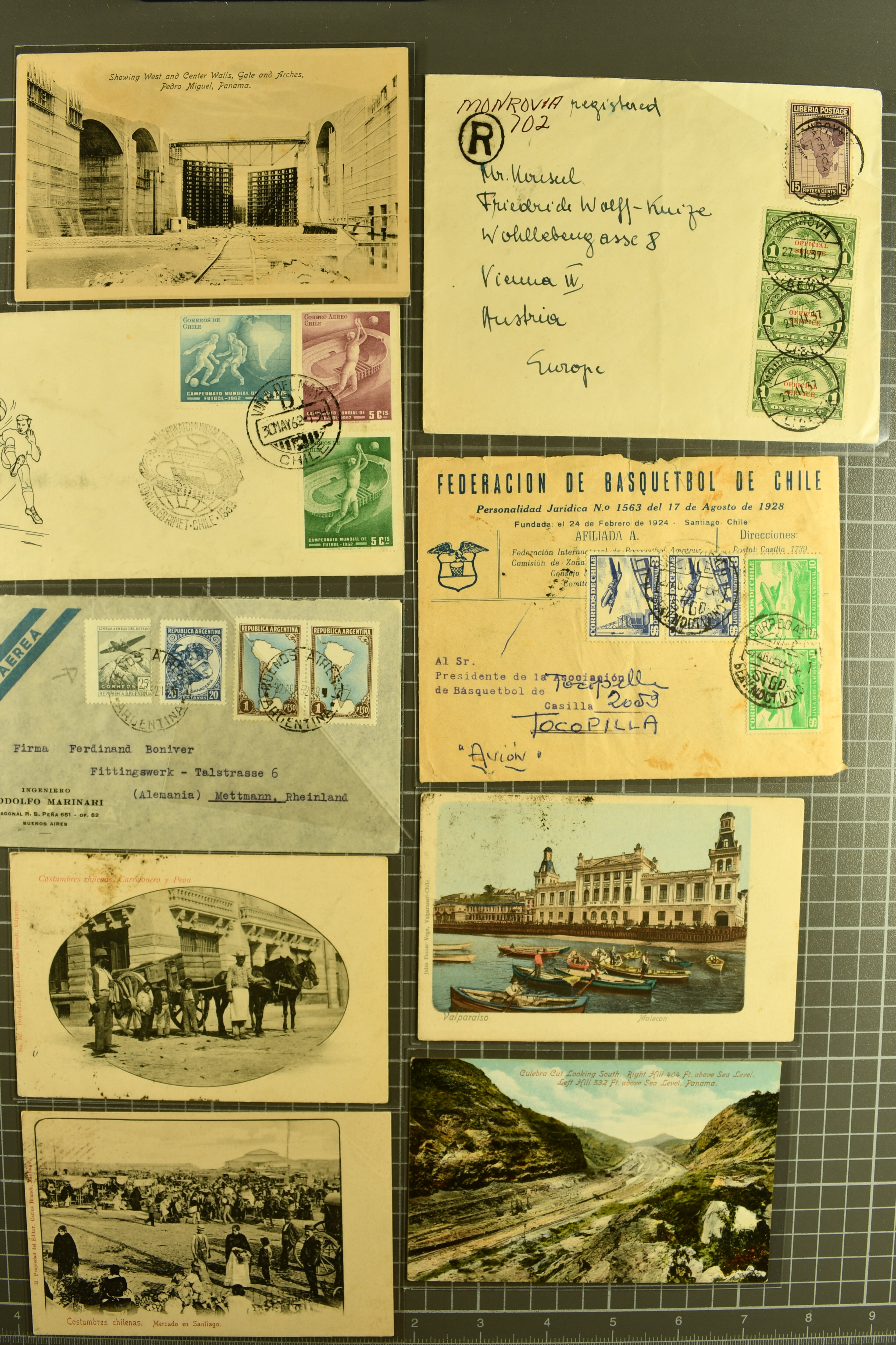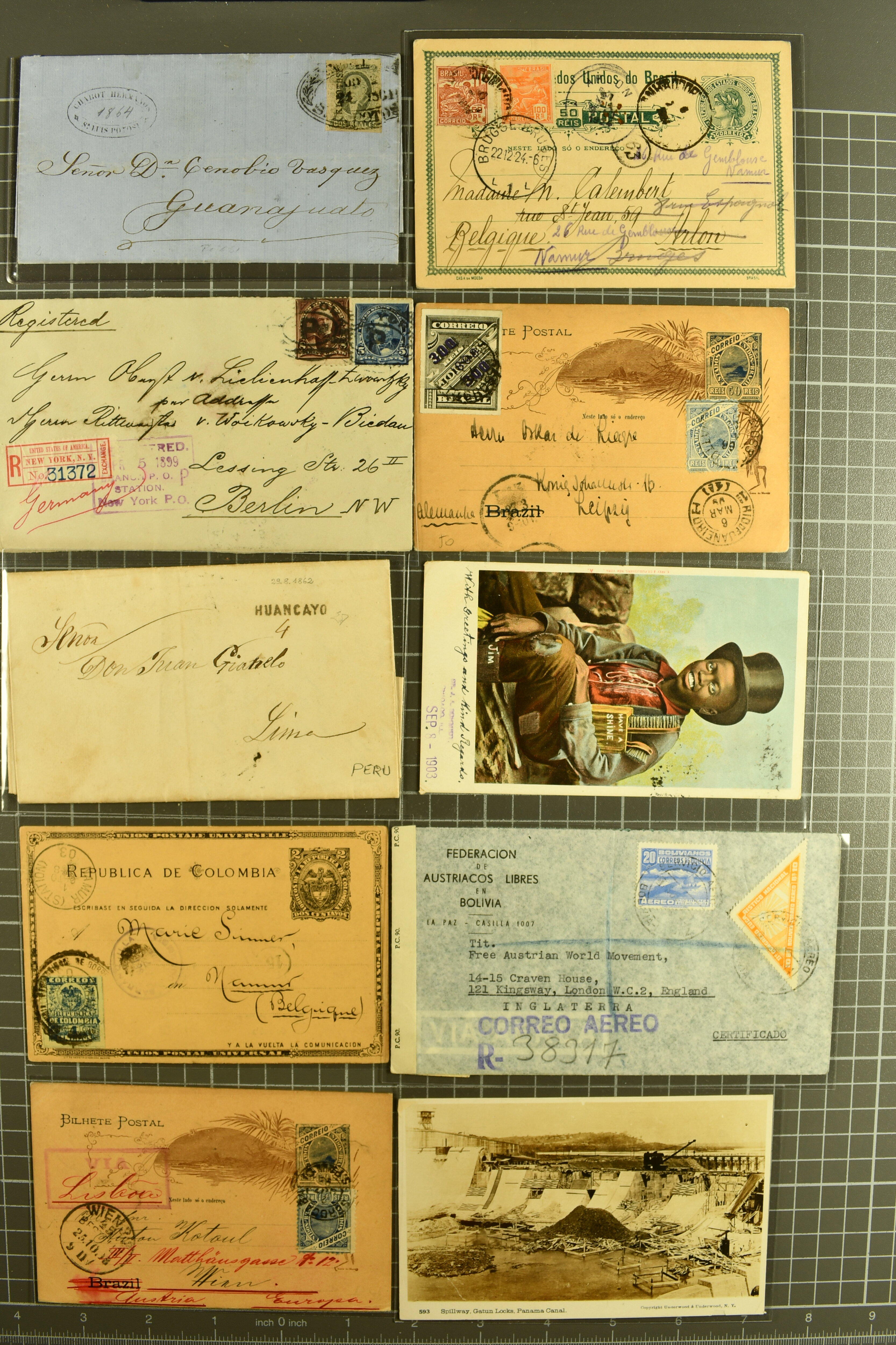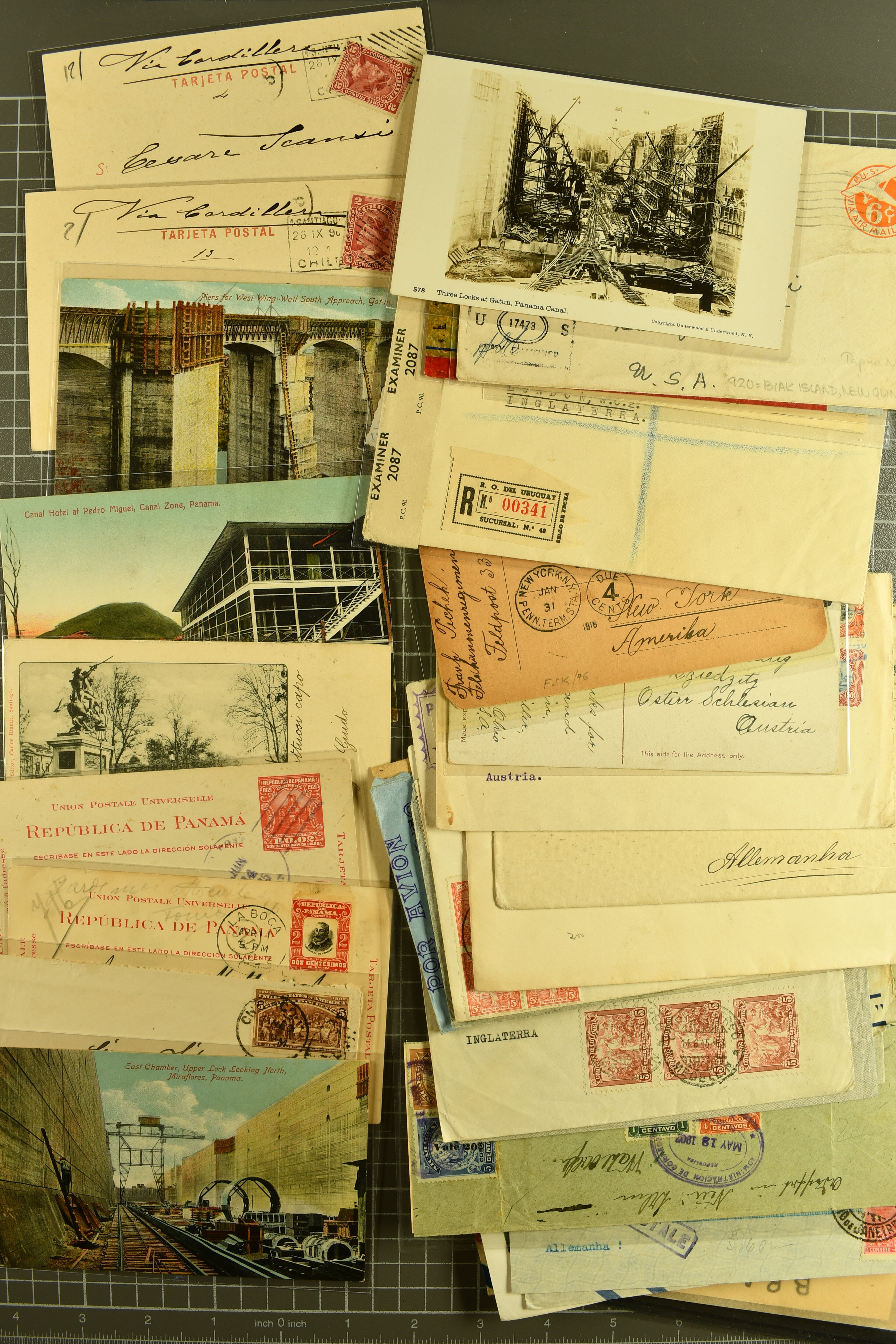 1466 cover image1860/1960: Lot 70 covers / stationery / picture postcards primarily from South and Latin America, incl. Brazil 1924 to Belgium, 1864 Mexico, Peru 1862 stampless with straight-line HUANCAYO to Lima, Colombia 1903 to Belgium, correo transocean, Panama picture postcards from the construction of the Canal, stationery postal cards, Uruguay, Bolivia, Argentina, Chile, Guatemala, Nicaragua, Cuba, and Venezuela; also some items from the USA and Liberia with stationery and few stamps (Image 1) (Image 2) (Image 3) (Image 4)