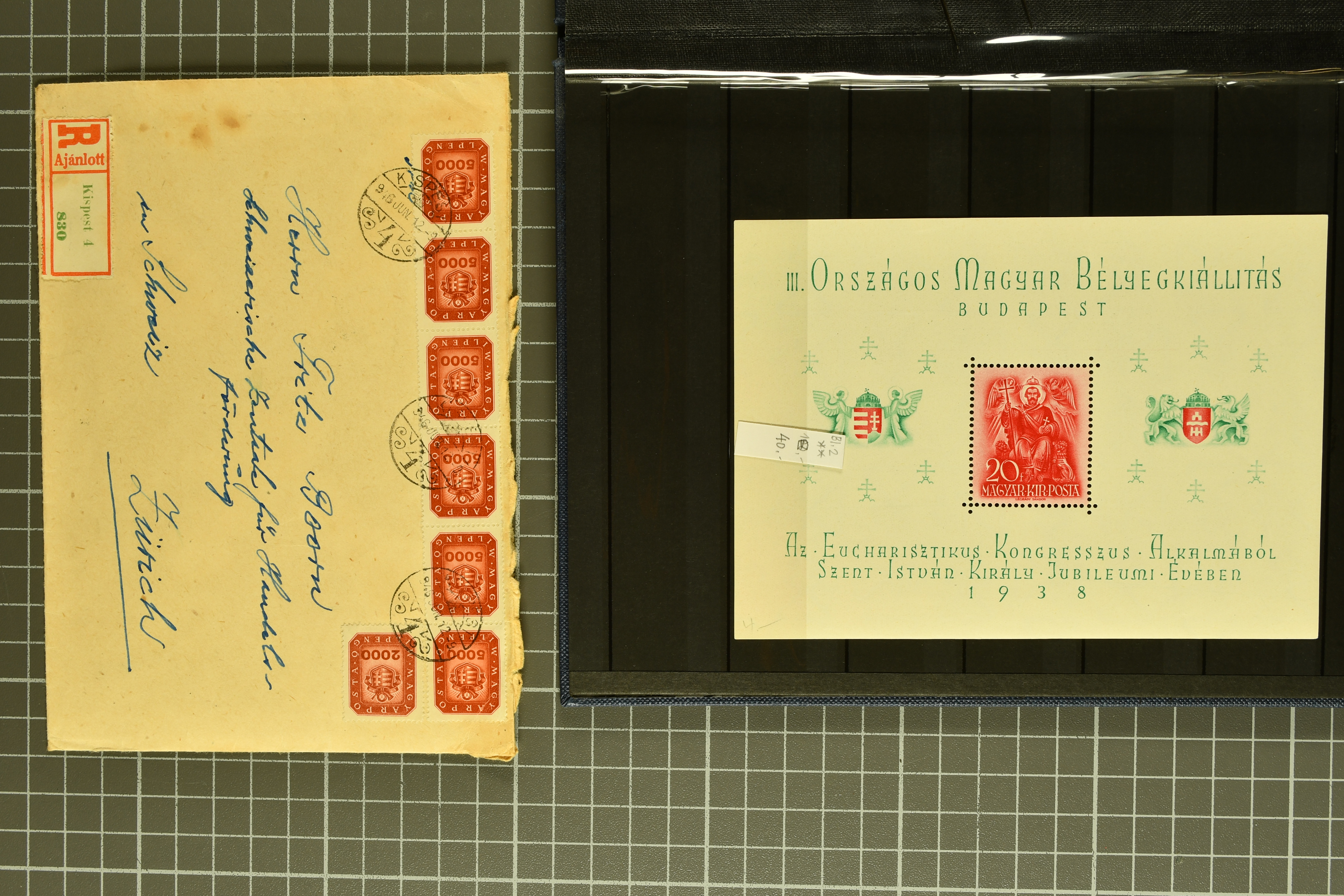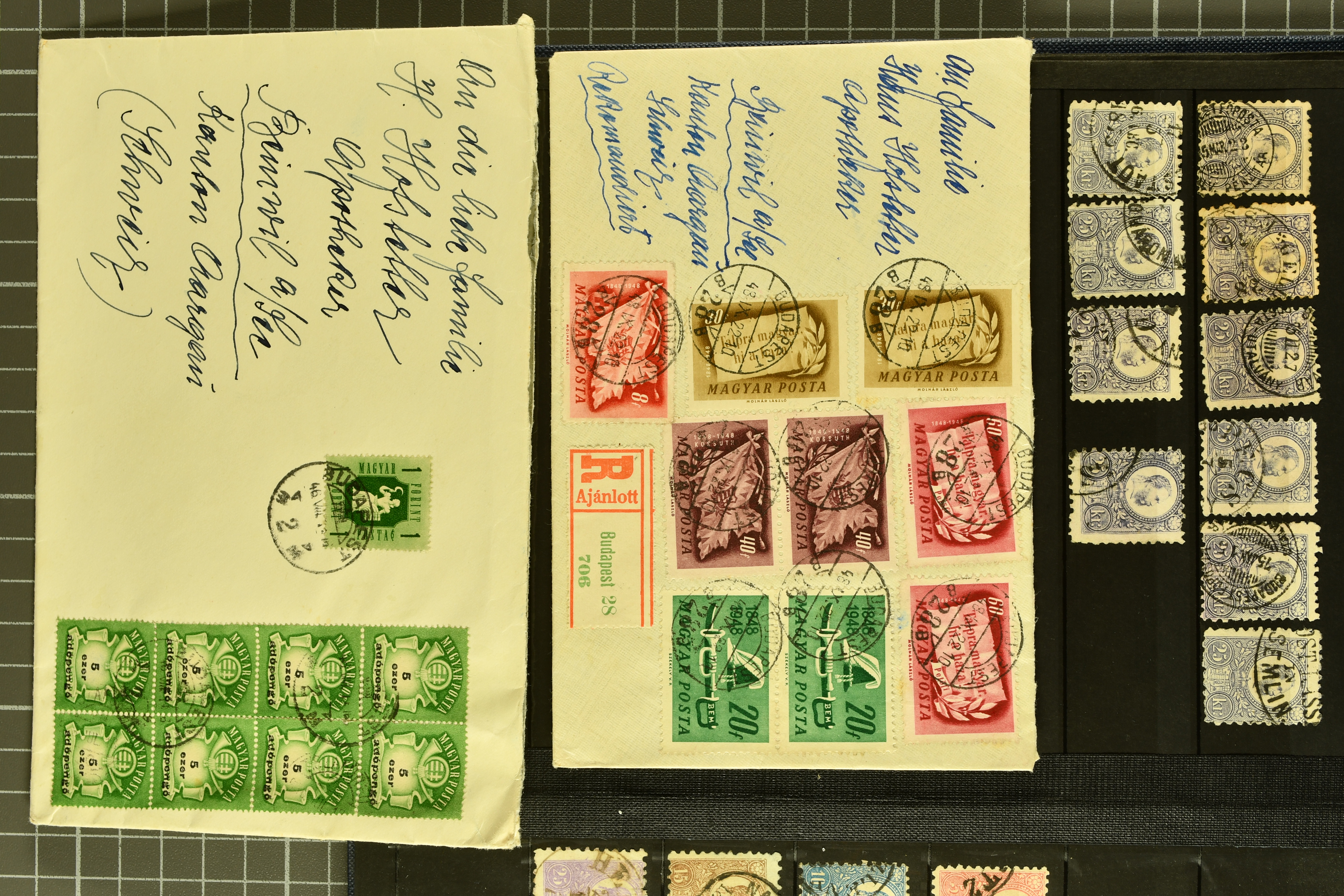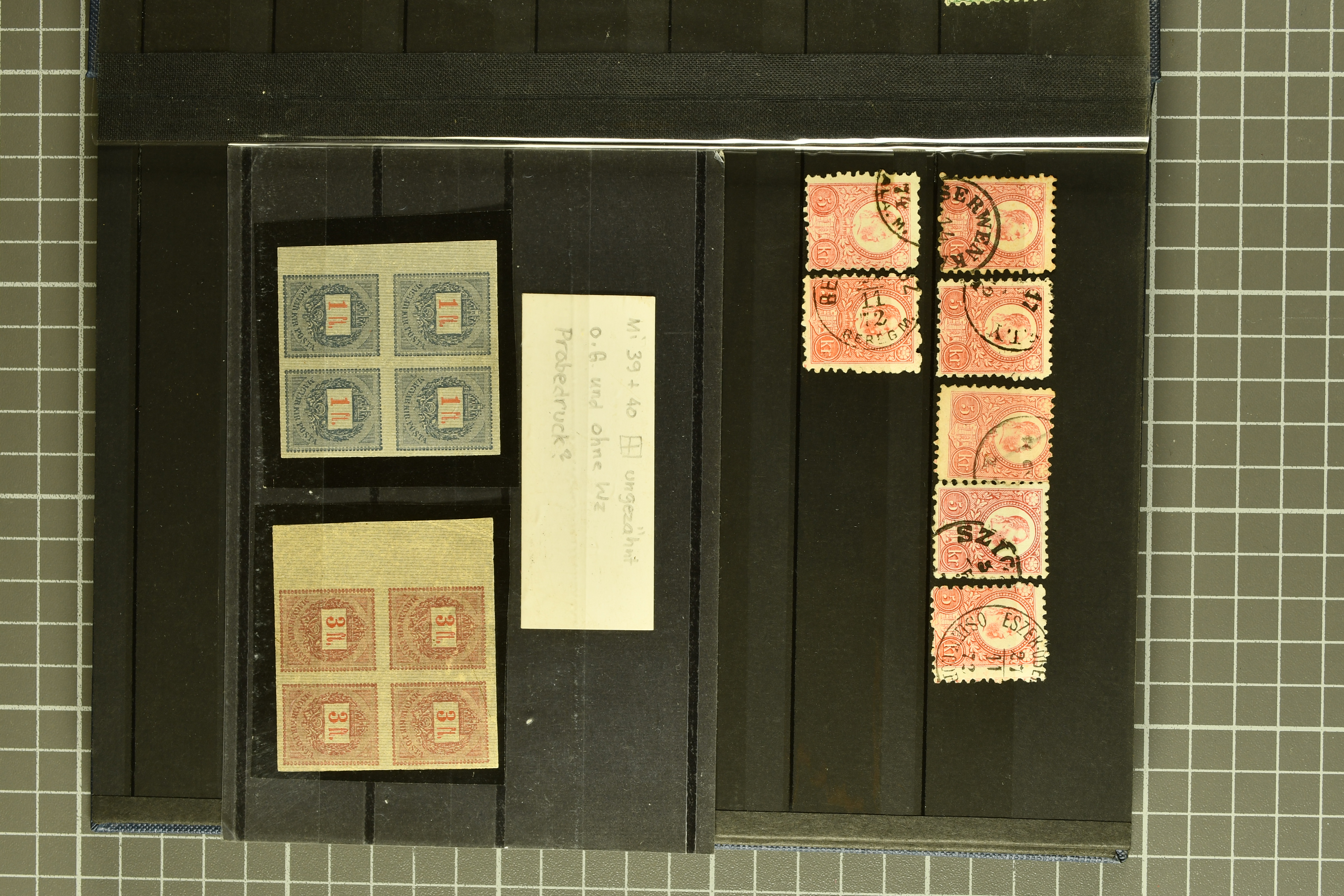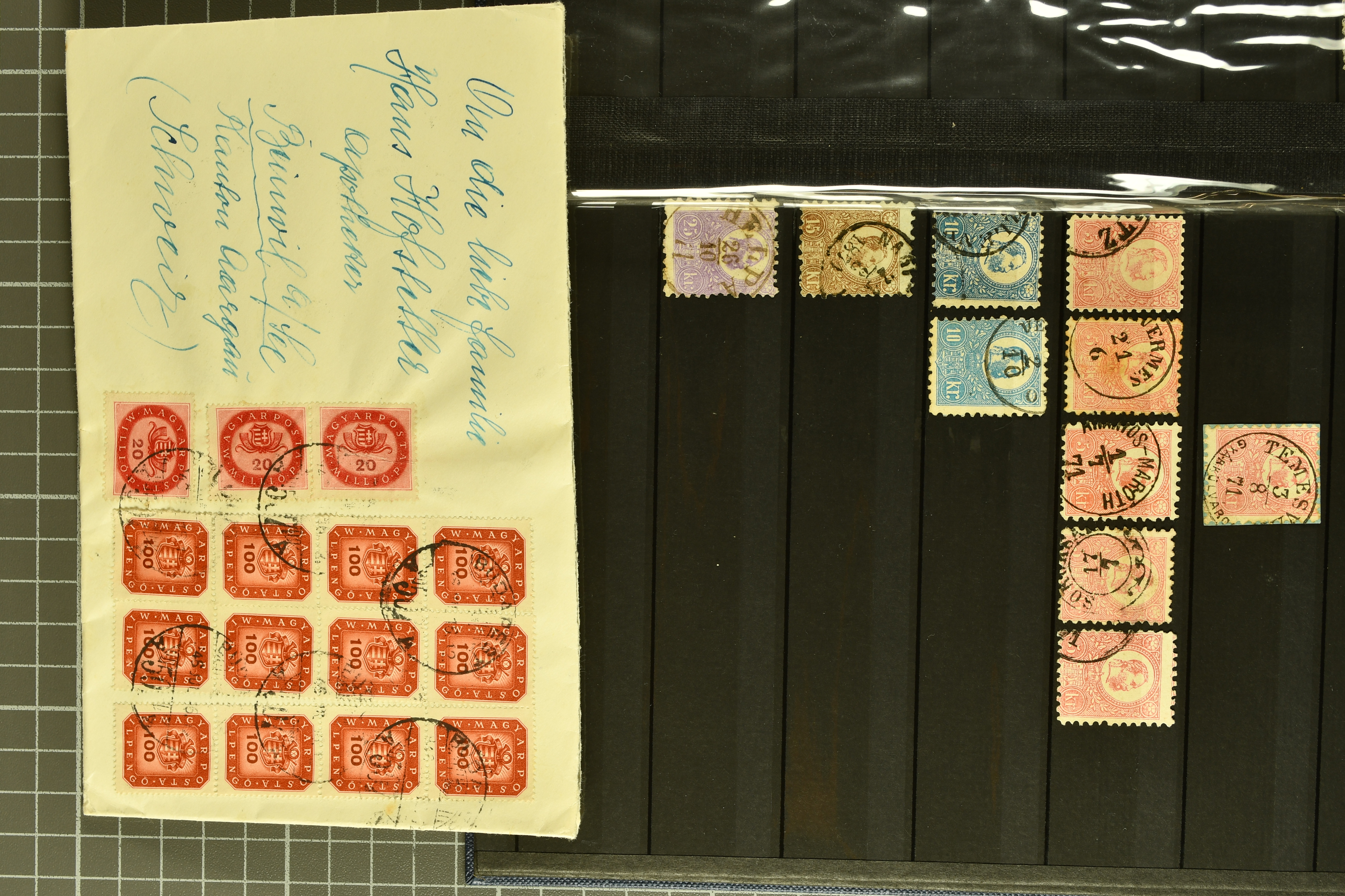 1437 image1850/1960ca.: A convolute Austria/Hungary - Austria: Large album with earlier issues, including many well-cancelled stamps, Austrian Levant and some Bosnia; also stockcards with sets and some covers. Hungary: Smaller album with 1871 issue including also 1 fl. and 3 fl. issue 1888 imperforate blocks of four unused without gum (printwaste, proofs?) plus various old album pages, mainly post-WWI issues also Baranya, Banat etc.; a group of covers with around a dozen interesting 1946 inflation covers; plus astock book with a basic collection (Image 1) (Image 2) (Image 3) (Image 4) (Image 5) (Image 6) (Image 7) (Image 8) (Image 9) (Image 10) (Image 11) (Image 12) (Image 13) (Image 14) (Image 15) (Image 16) (Image 17) (Image 18) (Image 19) (Image 20) (Image 21) (Image 22) (Image 23) (Image 24) (Image 25) (Image 26) (Image 27) (Image 28) (Image 29) (Image 30) (Image 31) (Image 32) (Image 33) (Image 34) (Image 35) (Image 36) (Image 37) (Image 38) (Image 39) (Image 40) (Image 41) (Image 42) (Image 43) (Image 44) (Image 45)