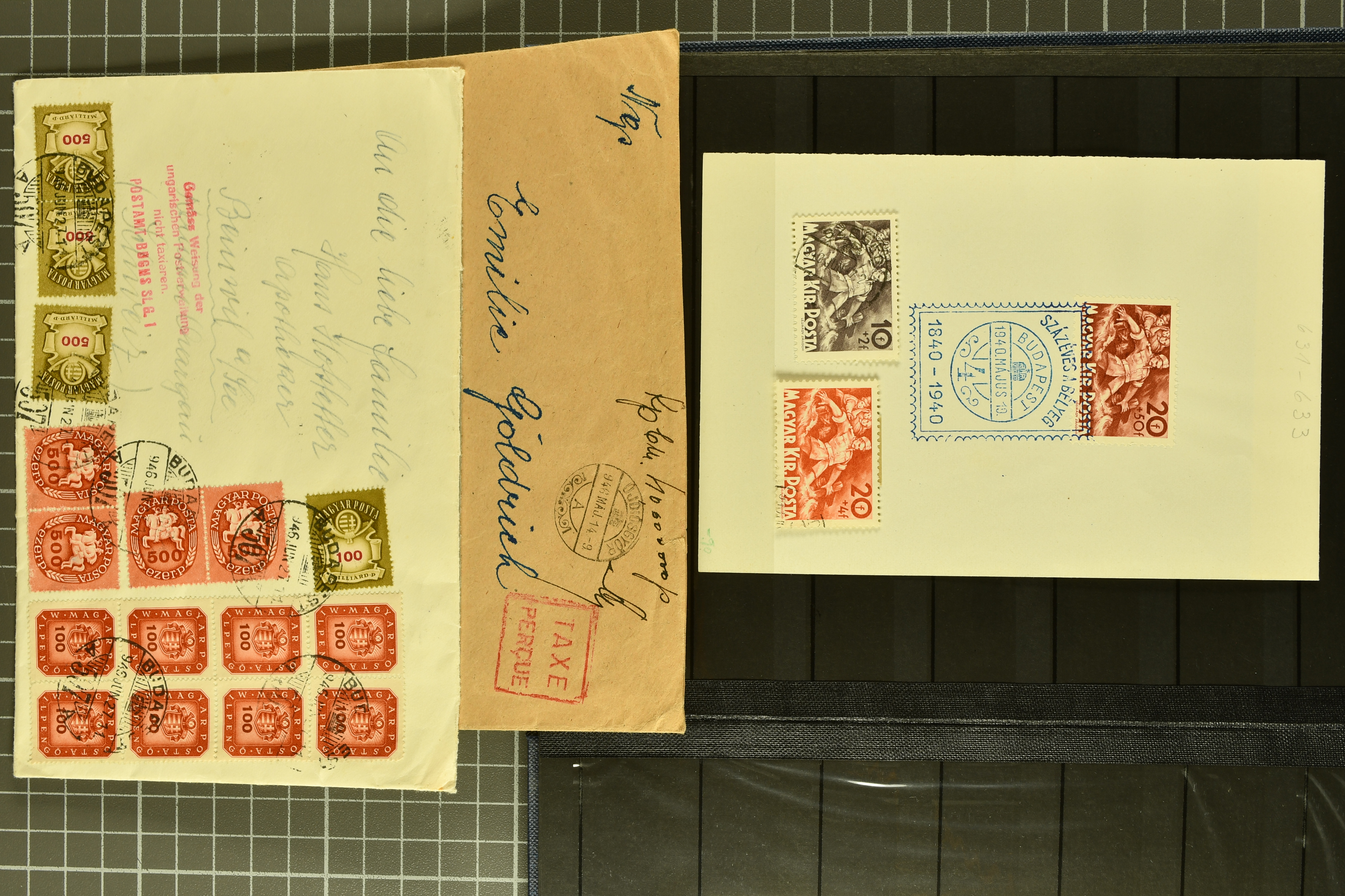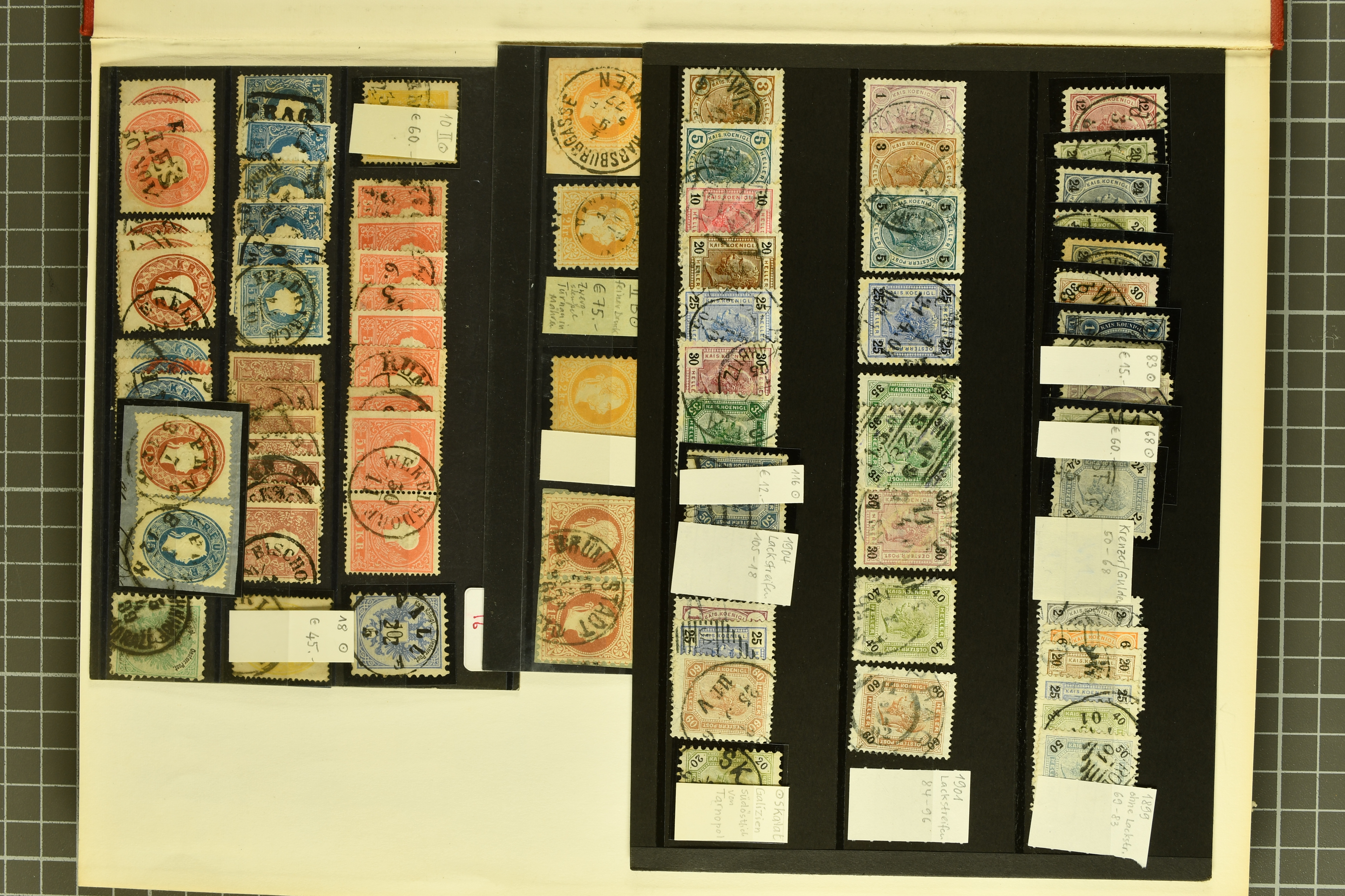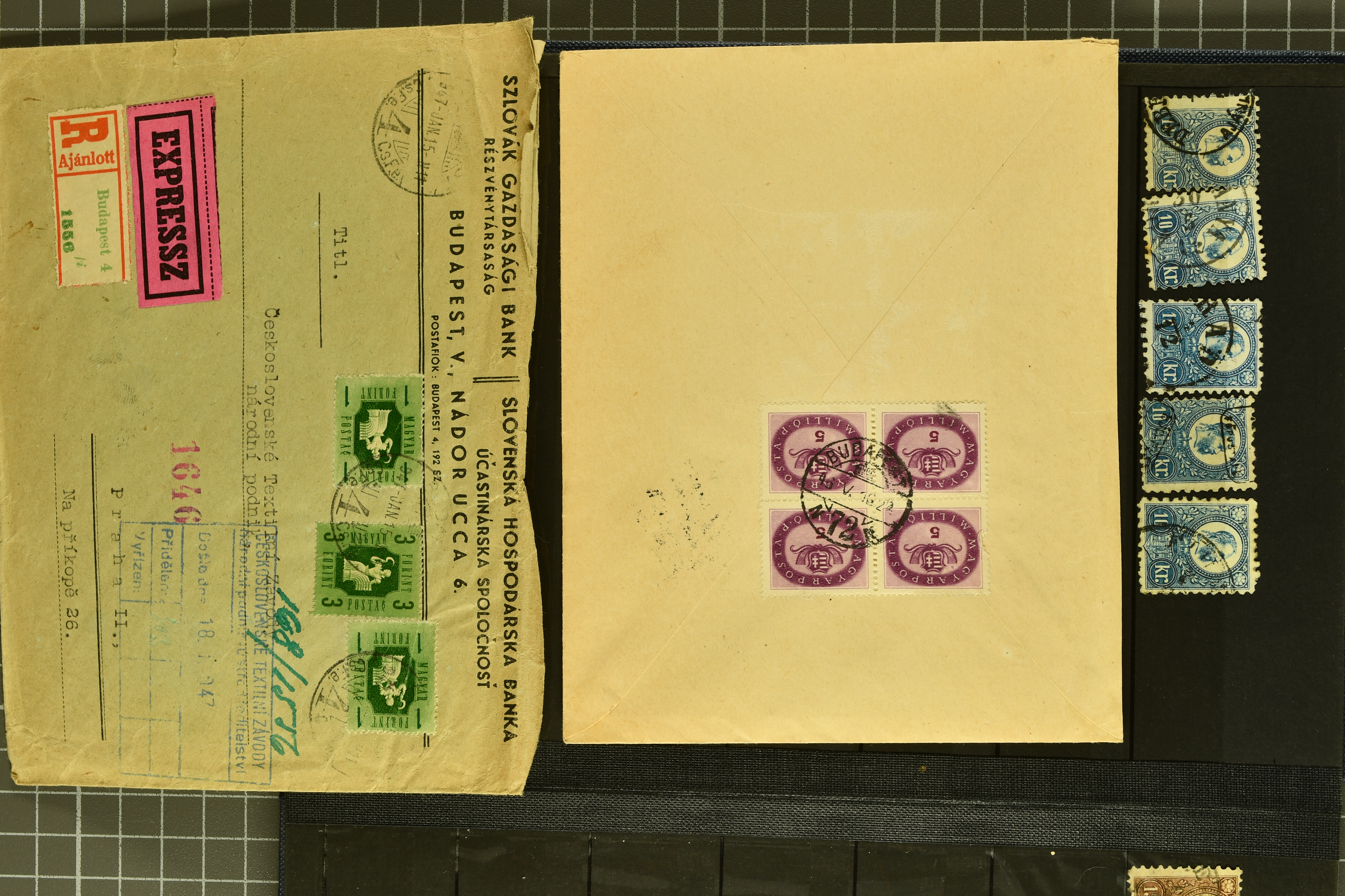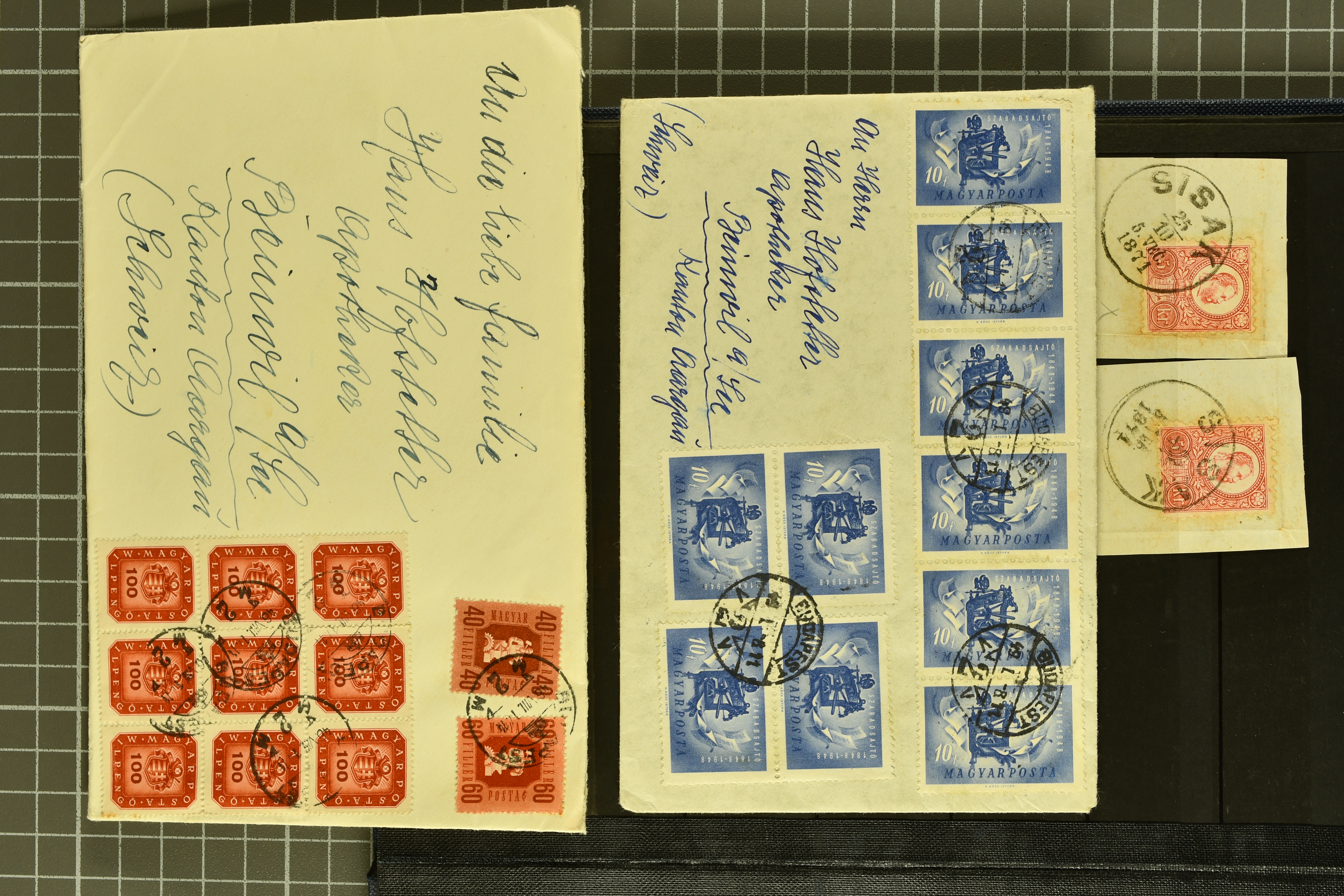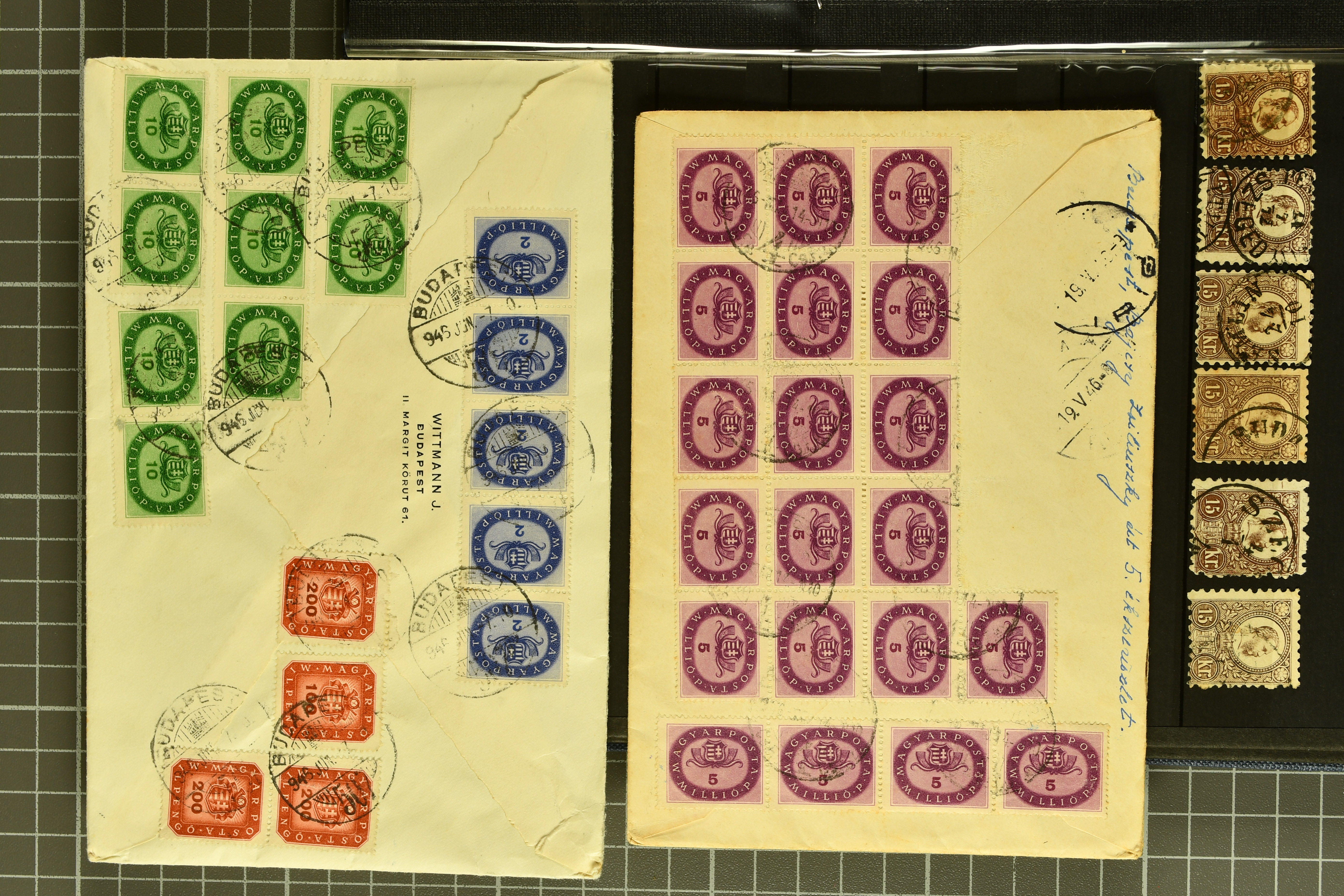 1437 image1850/1960ca.: A convolute Austria/Hungary - Austria: Large album with earlier issues, including many well-cancelled stamps, Austrian Levant and some Bosnia; also stockcards with sets and some covers. Hungary: Smaller album with 1871 issue including also 1 fl. and 3 fl. issue 1888 imperforate blocks of four unused without gum (printwaste, proofs?) plus various old album pages, mainly post-WWI issues also Baranya, Banat etc.; a group of covers with around a dozen interesting 1946 inflation covers; plus astock book with a basic collection (Image 1) (Image 2) (Image 3) (Image 4) (Image 5) (Image 6) (Image 7) (Image 8) (Image 9) (Image 10) (Image 11) (Image 12) (Image 13) (Image 14) (Image 15) (Image 16) (Image 17) (Image 18) (Image 19) (Image 20) (Image 21) (Image 22) (Image 23) (Image 24) (Image 25) (Image 26) (Image 27) (Image 28) (Image 29) (Image 30) (Image 31) (Image 32) (Image 33) (Image 34) (Image 35) (Image 36) (Image 37) (Image 38) (Image 39) (Image 40) (Image 41) (Image 42) (Image 43) (Image 44) (Image 45)