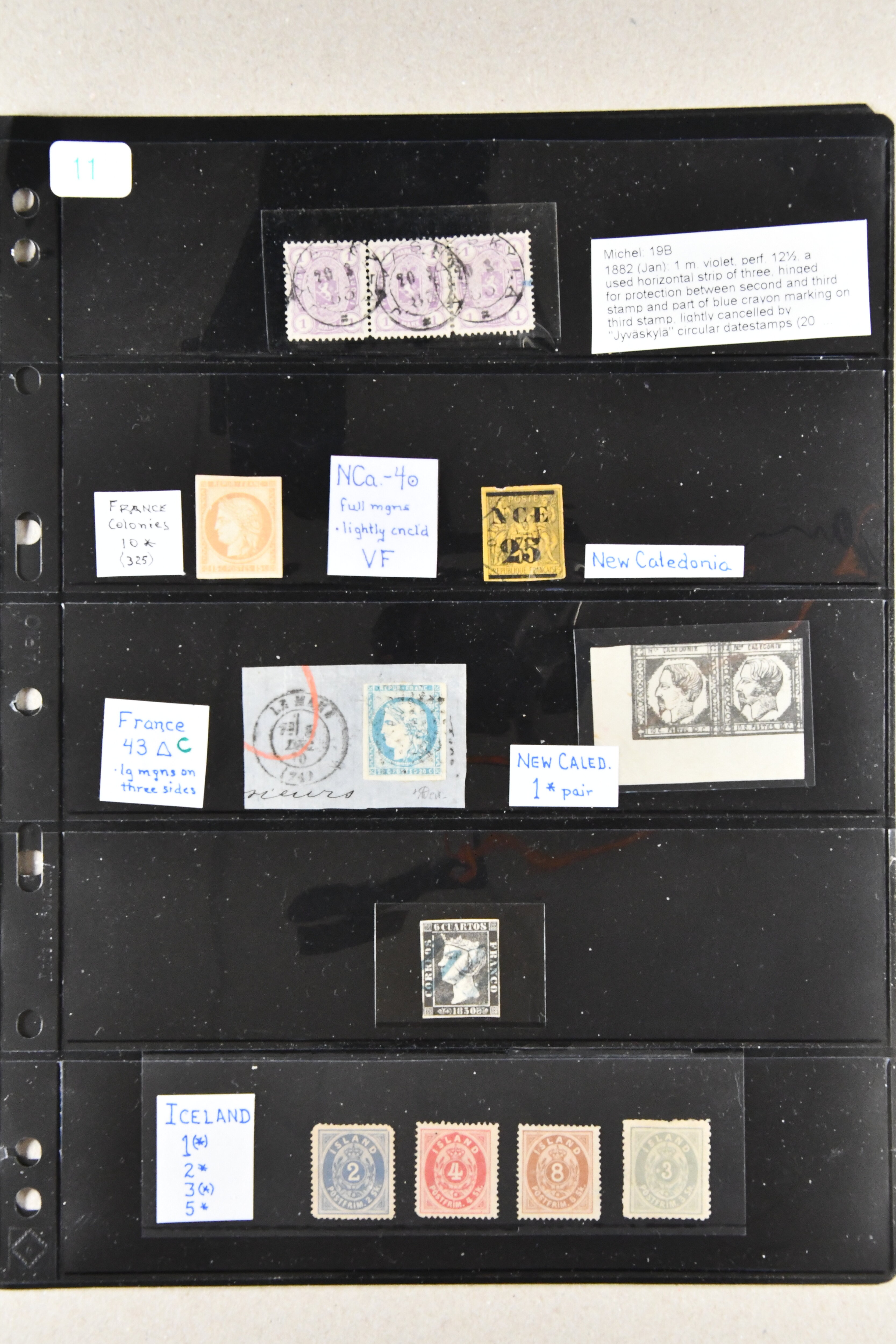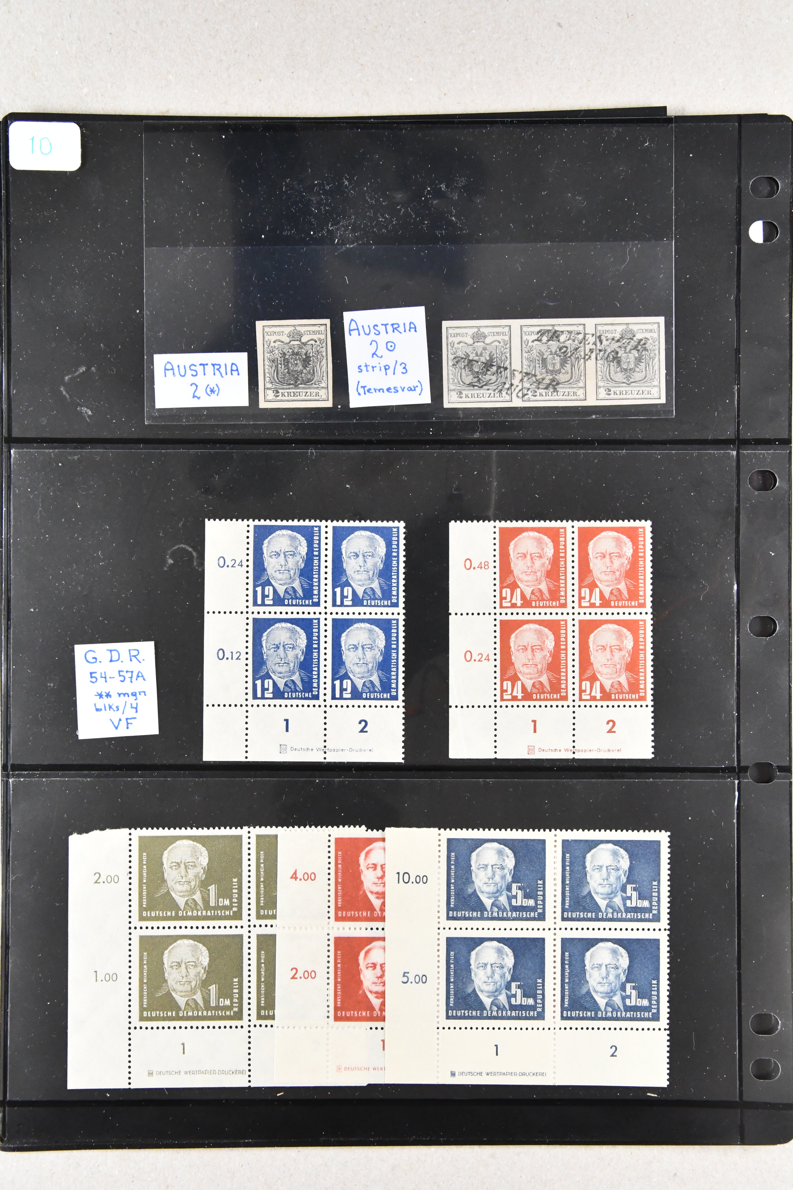 1436 image1850/1952: Fine selection of better classic issues used/unused, including Tuscany 1851/52 used horiz. pair of 1 cr. carmine plus single value of a superbe 6 cr. slate blue, tied by clear strikes of black 'PD's, further Finland with 1867 rouletted 1 mark brown cancelled by clear strike of 'Gamla Karleby' datestamp in black (cert. Sismondo 2007), Imperial Austria with unused 2 Kr. black and used horiz. strip of three tied by dated 'Temeswar' h.s. in black, Norway 1882 1 Mk violet used horiz. strip of three, Iceland 1873 first issue unused set of four (Mi. 1-3+5). Further Spain 1850 6 cs. black cancelled by clear strikes of numeral handstamp '11' in blue (cert. Comex 1976) together with 1939 ' Juan de Cierva' commemorative issue 1 p. blue in an imperf. block of twelve with print shift as well as G.D.R. 1950 'Wilhelm Pieck I' set in marginal corner blocks of four of lower left of sheet (Image 1) (Image 2) (Image 3) (Image 4) (Image 5)