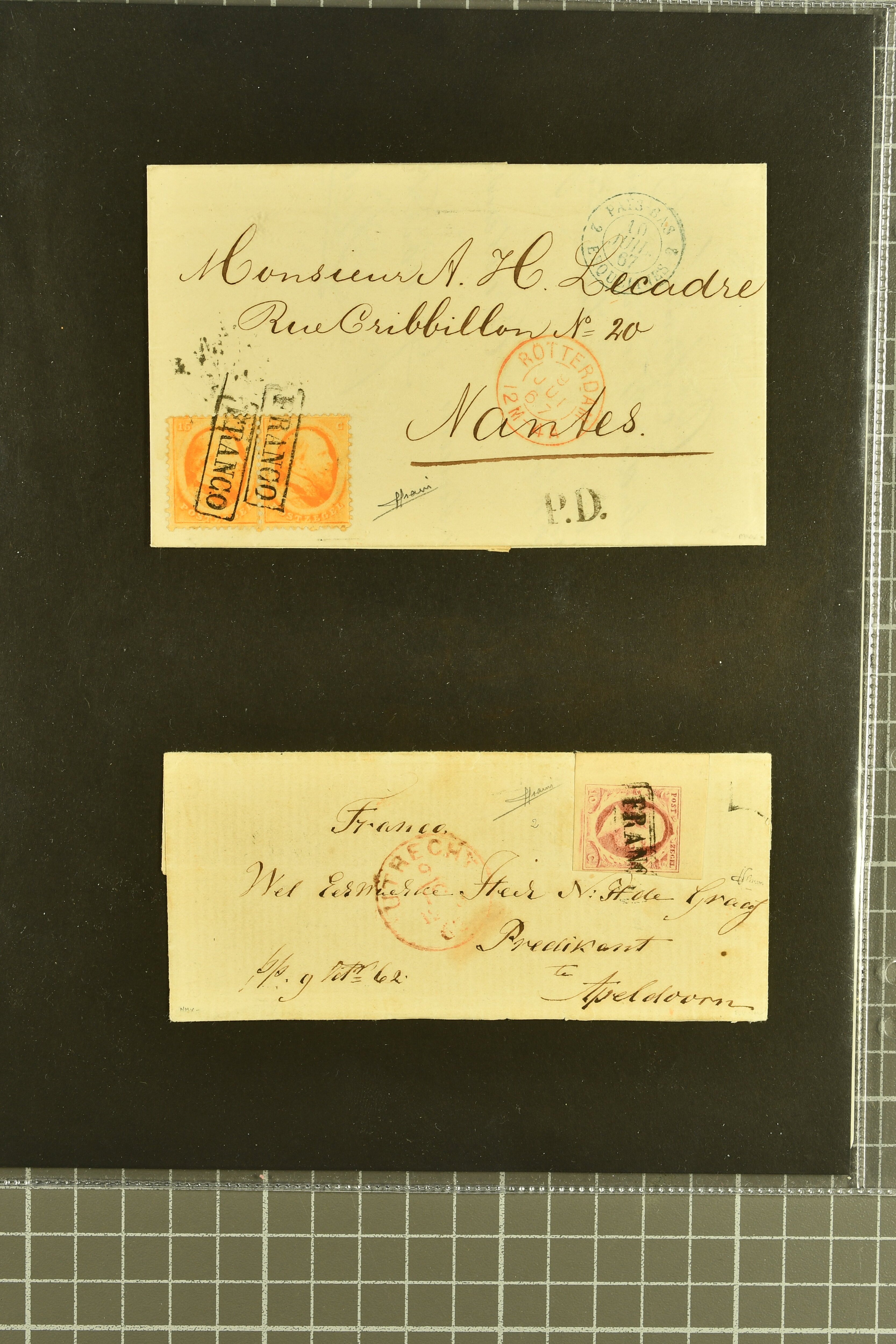 1444 cover image1852/66ca: Interesting Lot seven covers / part covers incl. Netherlands 1863 cover with 1852 Willem 10 c upper right corner marginal example, 1867 cover with pair 1864 Willem perf. 15 c. orange from Rotterdam to France; Finland 1862 cover Abo to Kristinestad with 1860 Rouletted 10 kop. rose, and 1866 cover with 40 p. rose-carmine cancelled by framed FRKO handstamp (Image 1) (Image 2) (Image 3) (Image 4)