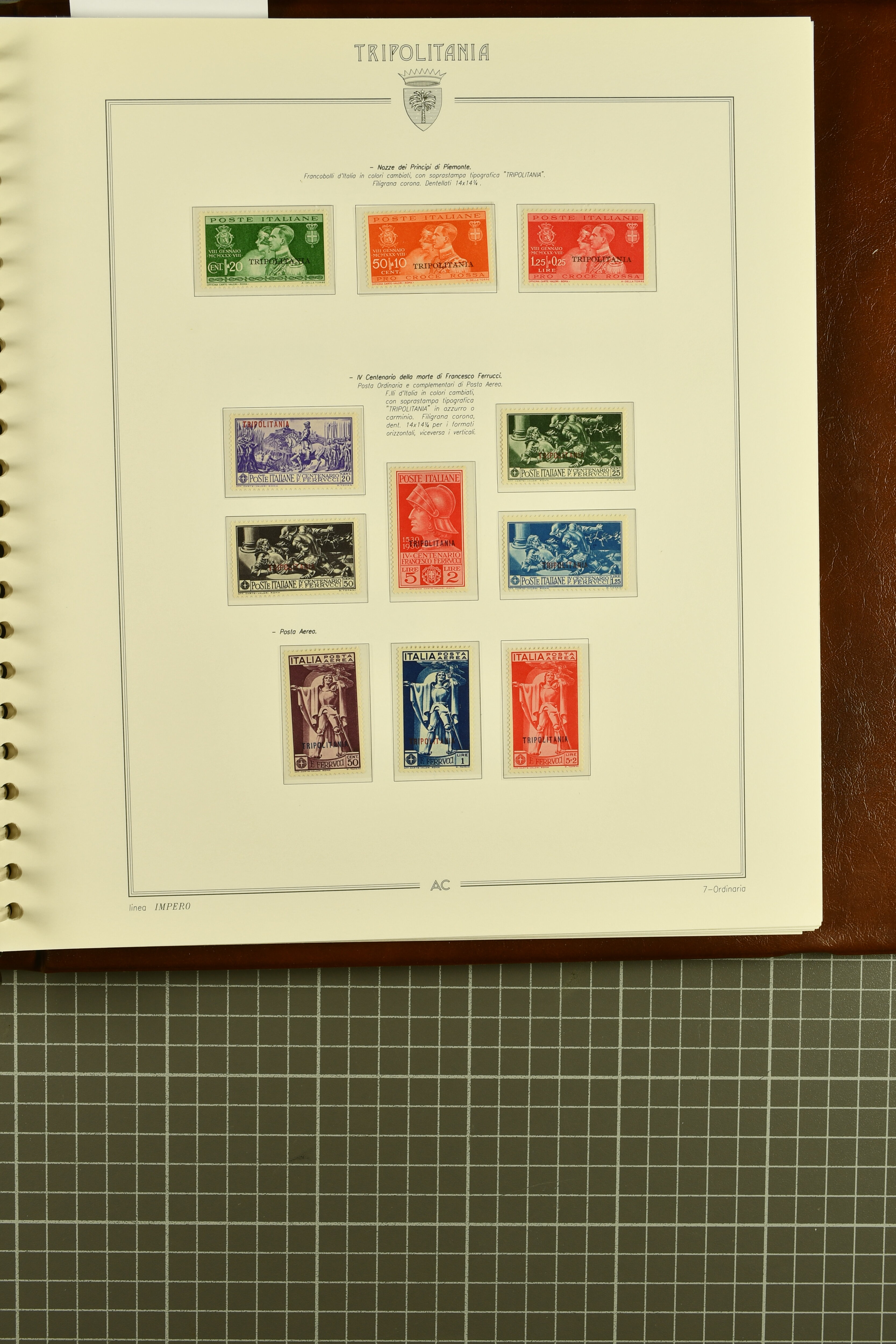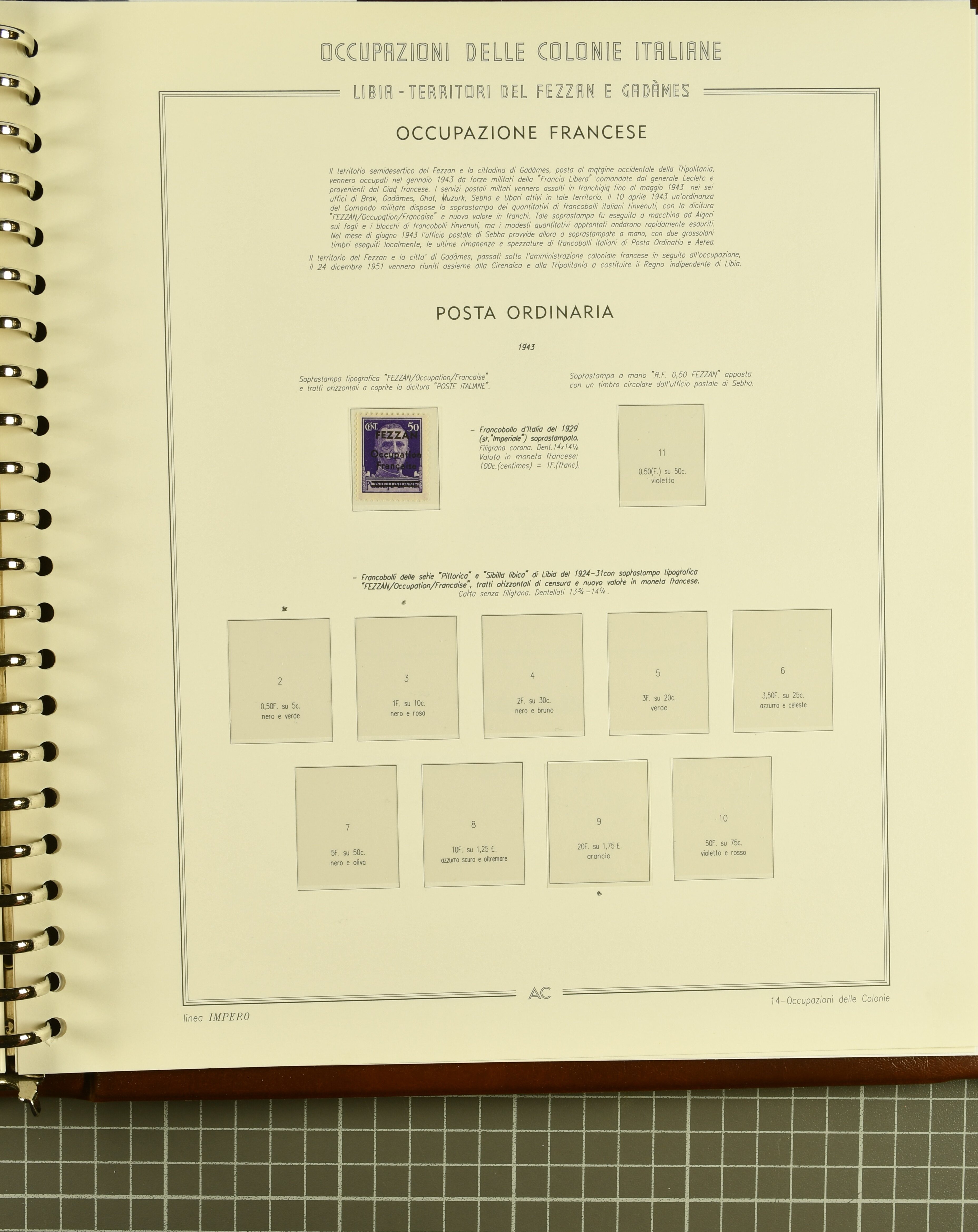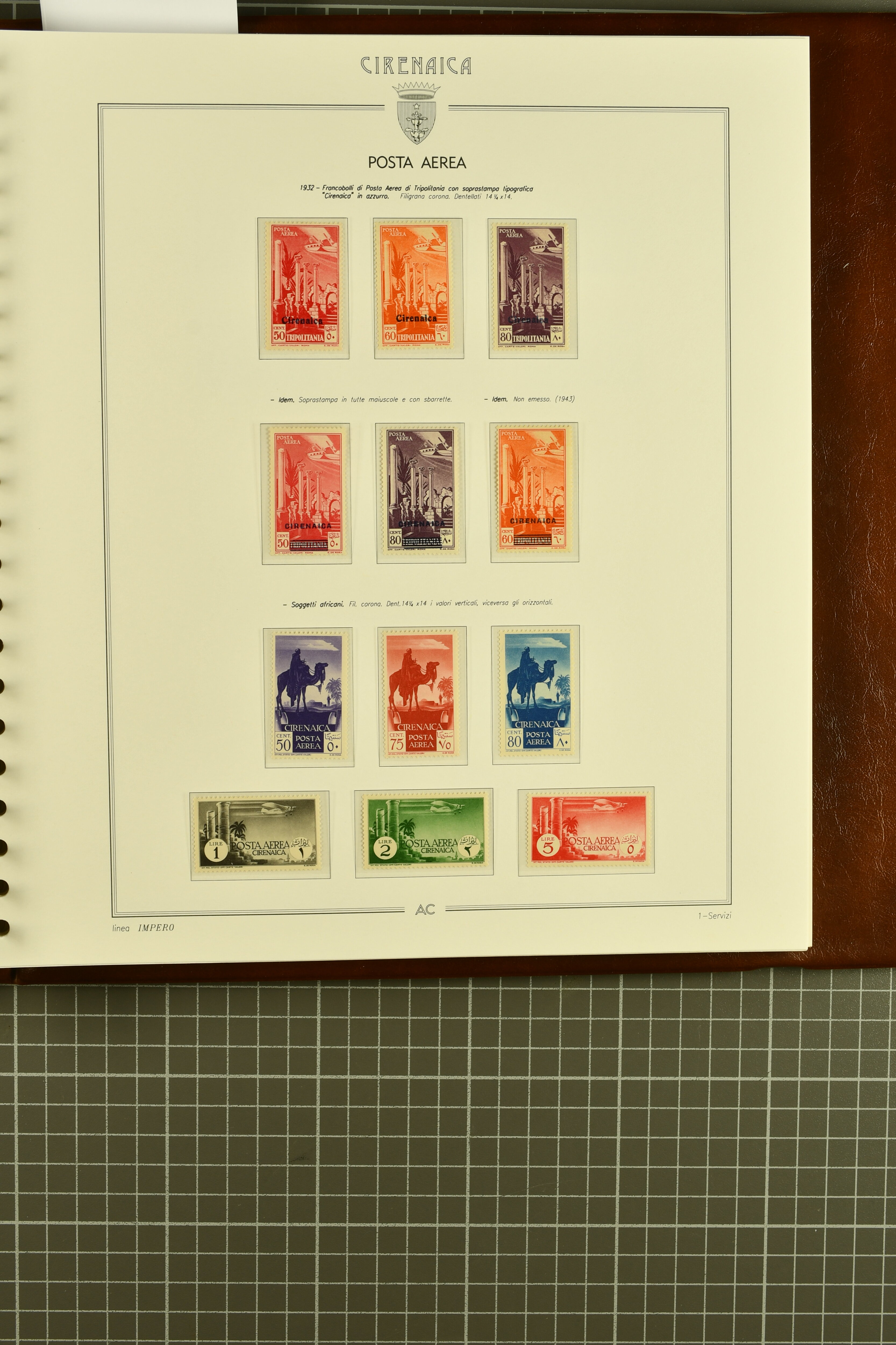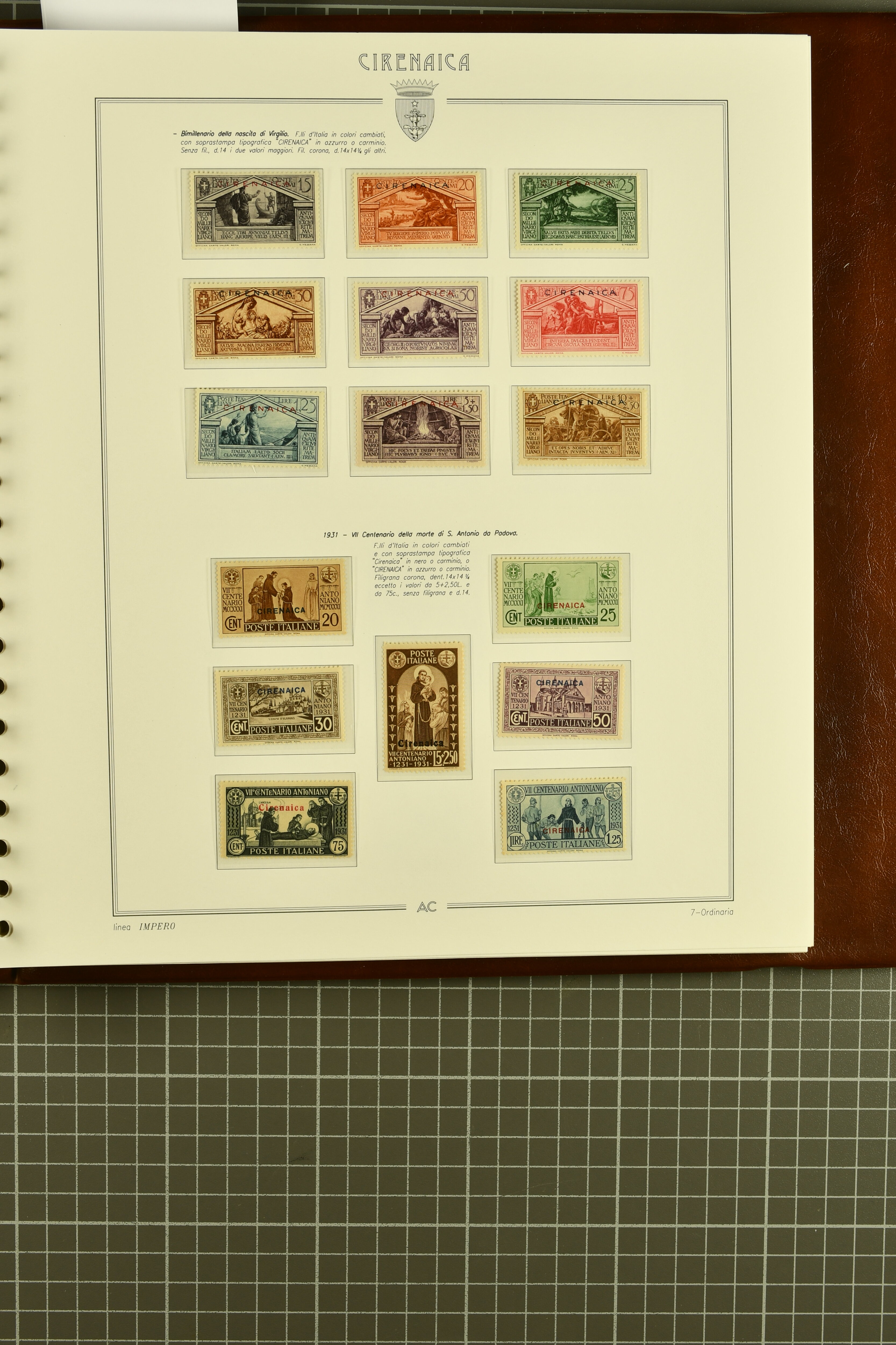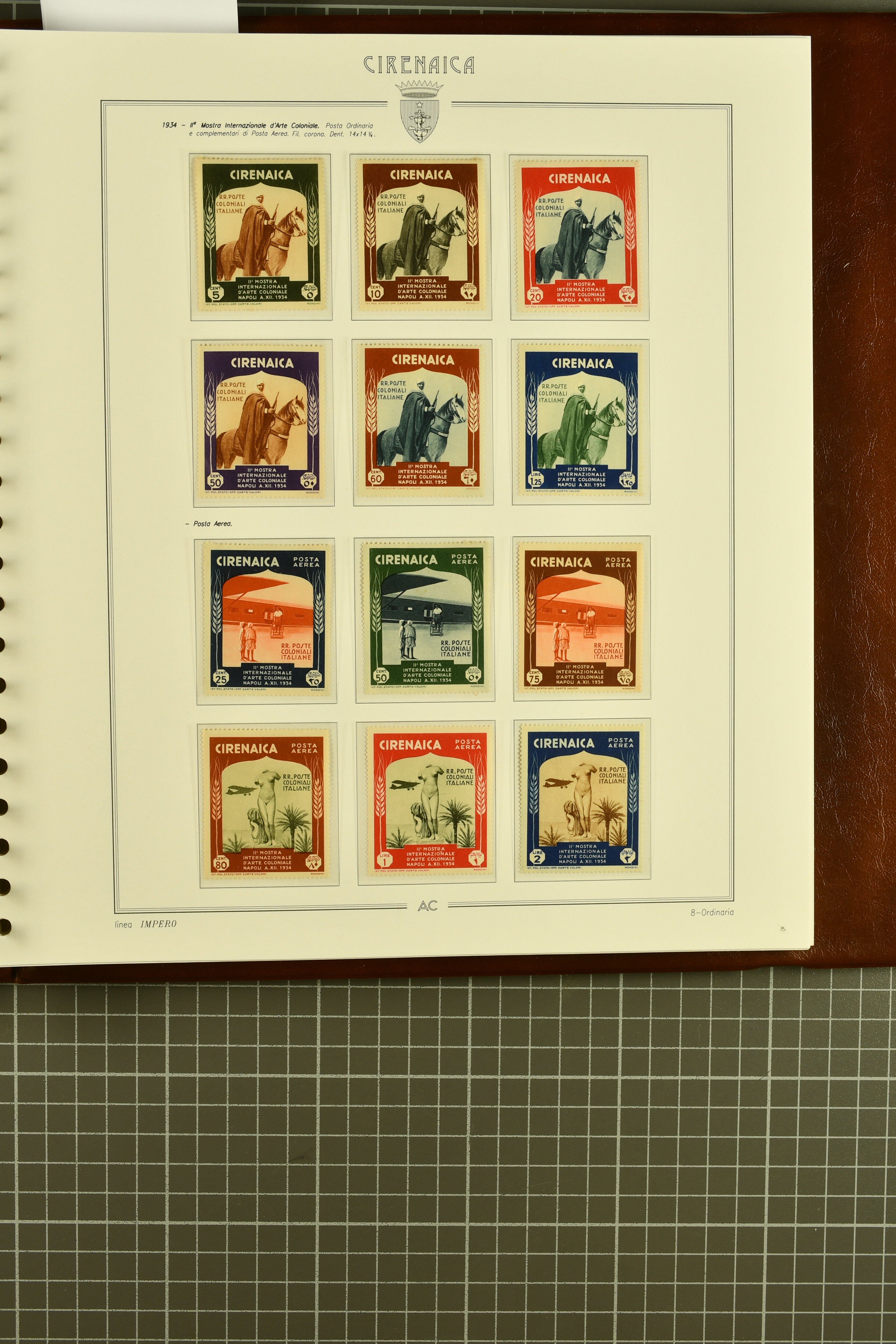 7614 **/*/(*) imageITALIAN COLONIES: Cirenaica and Tripolitania. The two almost complete collections with few specimens of the French occupation of Fezzan in 1943 and Greek Military Administration of the Dodecanese Islands contained in 1 'IMPERO' album: general issues, postage due stamps, postal parcel stamps, air post stamps, special delivery stamps, almost all of them in complete set, unused. General mixed conditions, mostly hinged and some with toned or brownish gum but also some adhesives in good conditions never hinged. 1 Ceremuga certificate. Viewing is recommended (Image 1) (Image 2) (Image 3) (Image 4) (Image 5) (Image 6) (Image 7) (Image 8) (Image 9) (Image 10) (Image 11) (Image 12) (Image 13) (Image 14) (Image 15) (Image 16) (Image 17) (Image 18) (Image 19) (Image 20) (Image 21) (Image 22) (Image 23) (Image 24) (Image 25) (Image 26) (Image 27) (Image 28) (Image 29) (Image 30) (Image 31)