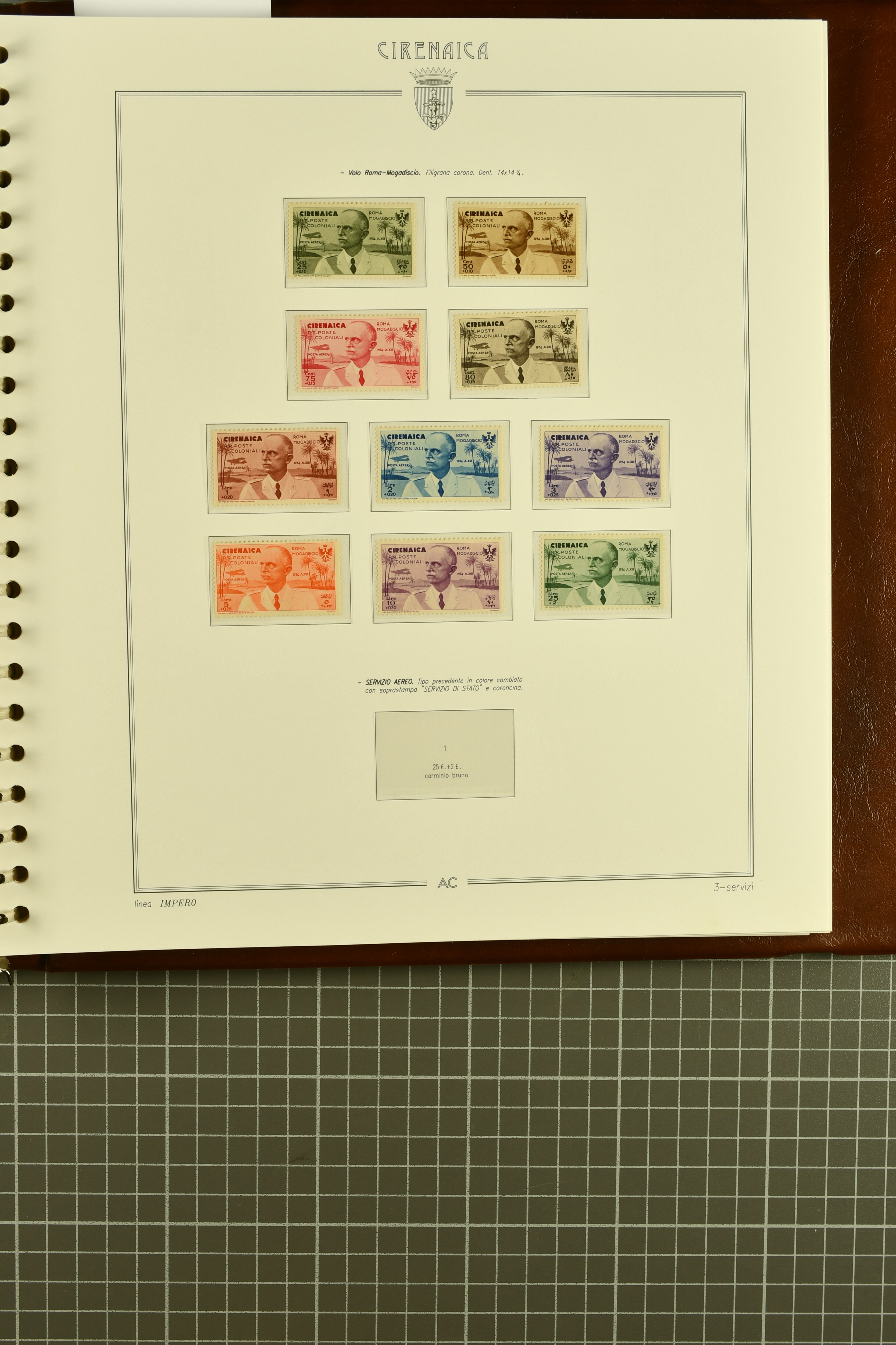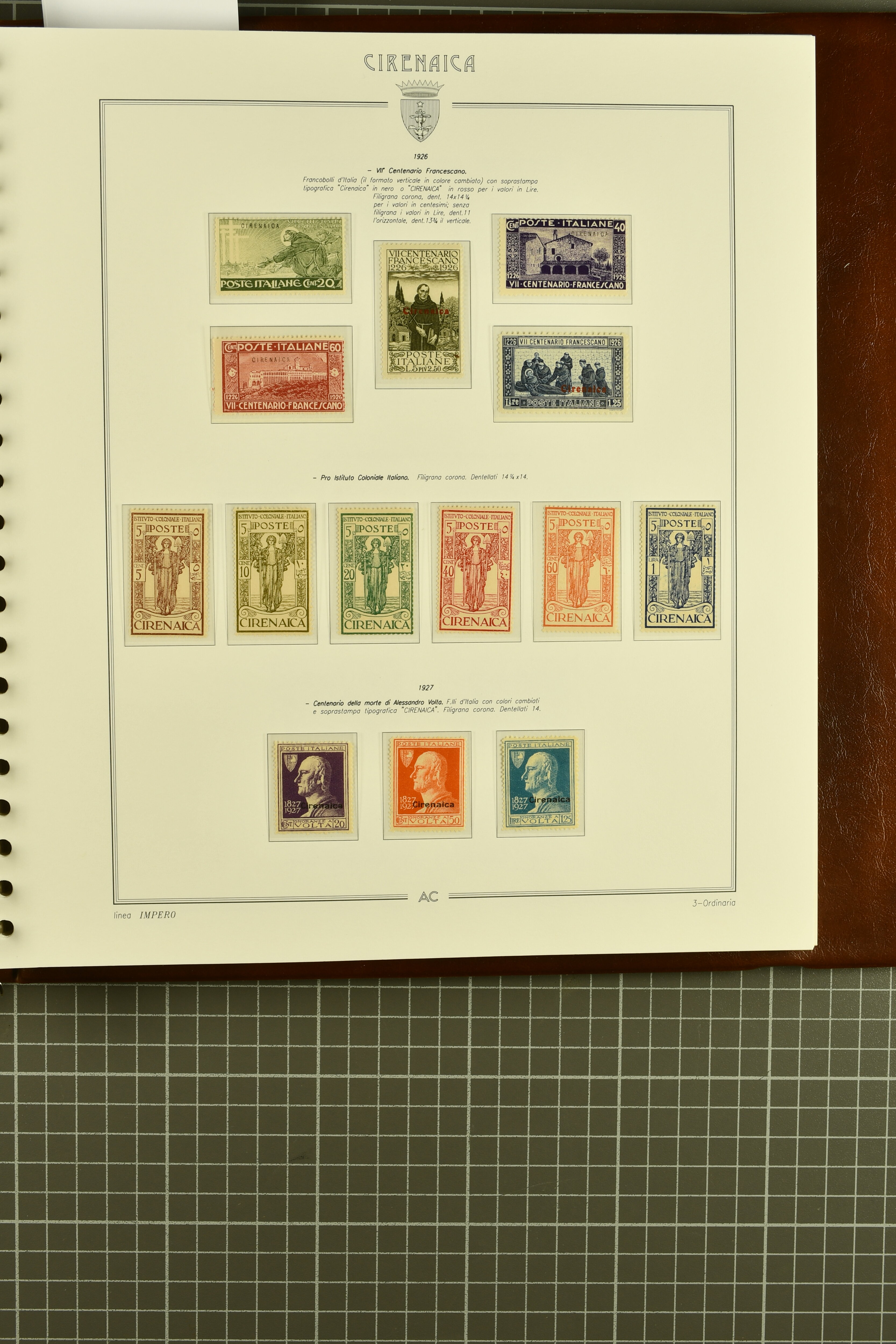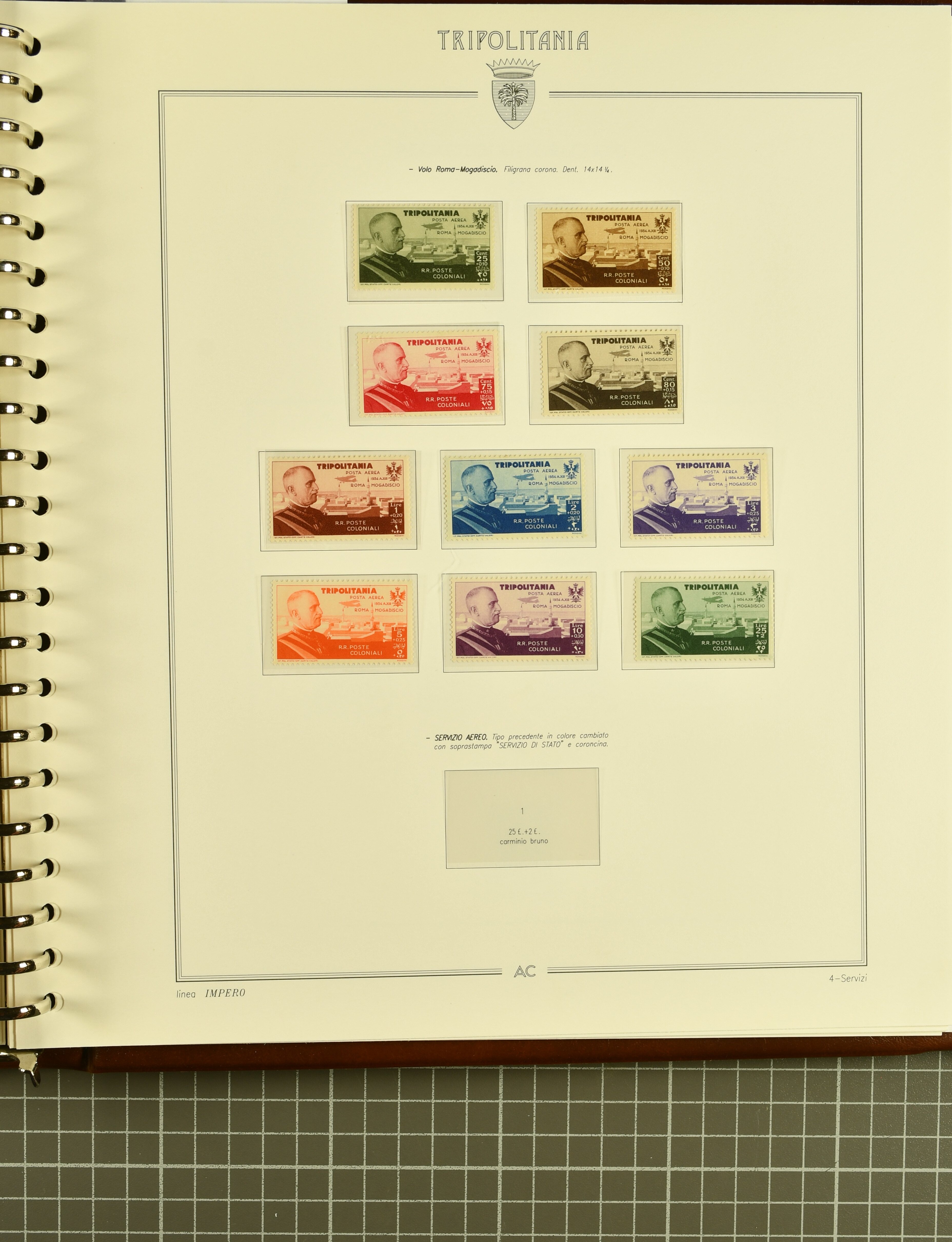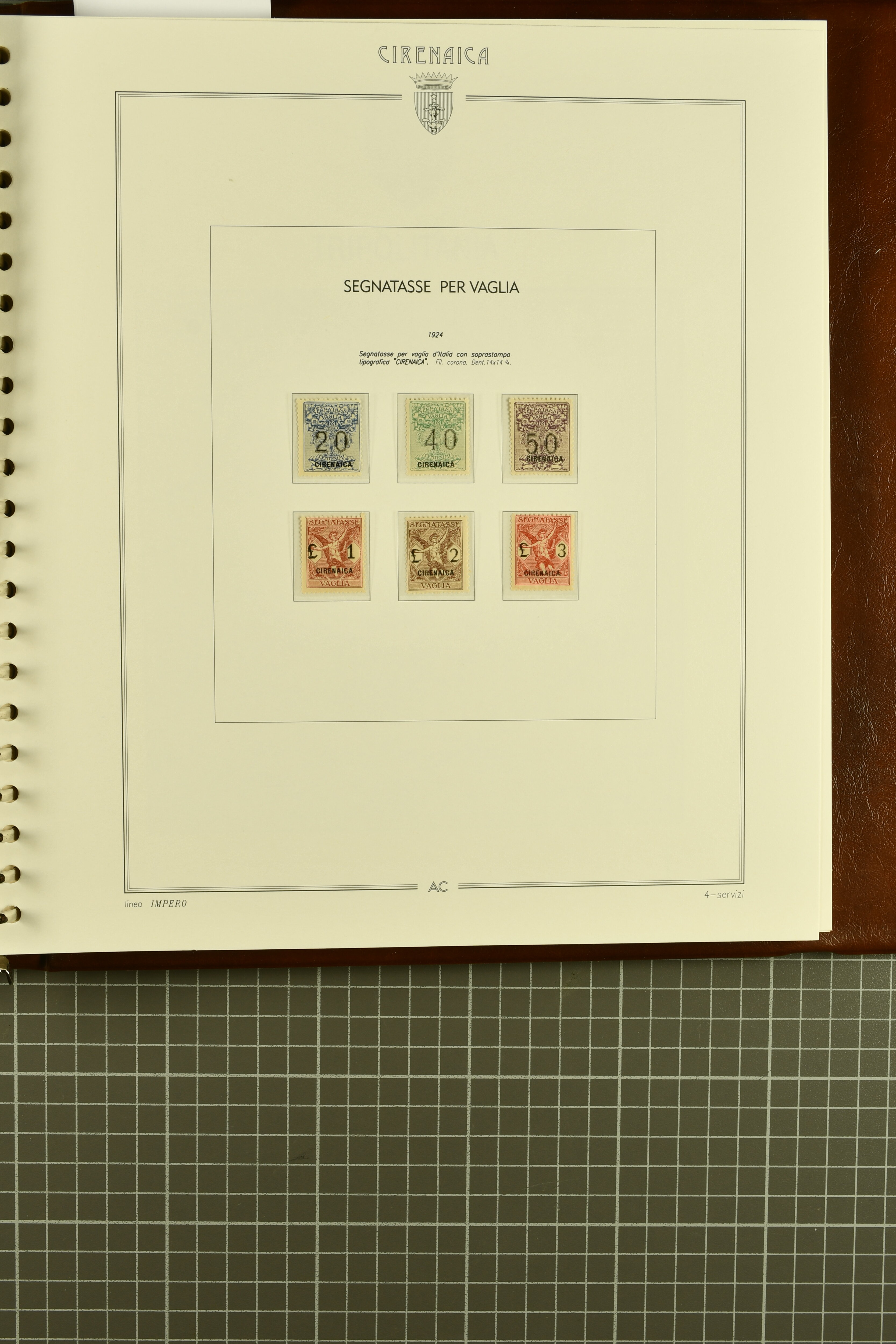 7614 **/*/(*) imageITALIAN COLONIES: Cirenaica and Tripolitania. The two almost complete collections with few specimens of the French occupation of Fezzan in 1943 and Greek Military Administration of the Dodecanese Islands contained in 1 'IMPERO' album: general issues, postage due stamps, postal parcel stamps, air post stamps, special delivery stamps, almost all of them in complete set, unused. General mixed conditions, mostly hinged and some with toned or brownish gum but also some adhesives in good conditions never hinged. 1 Ceremuga certificate. Viewing is recommended (Image 1) (Image 2) (Image 3) (Image 4) (Image 5) (Image 6) (Image 7) (Image 8) (Image 9) (Image 10) (Image 11) (Image 12) (Image 13) (Image 14) (Image 15) (Image 16) (Image 17) (Image 18) (Image 19) (Image 20) (Image 21) (Image 22) (Image 23) (Image 24) (Image 25) (Image 26) (Image 27) (Image 28) (Image 29) (Image 30) (Image 31)