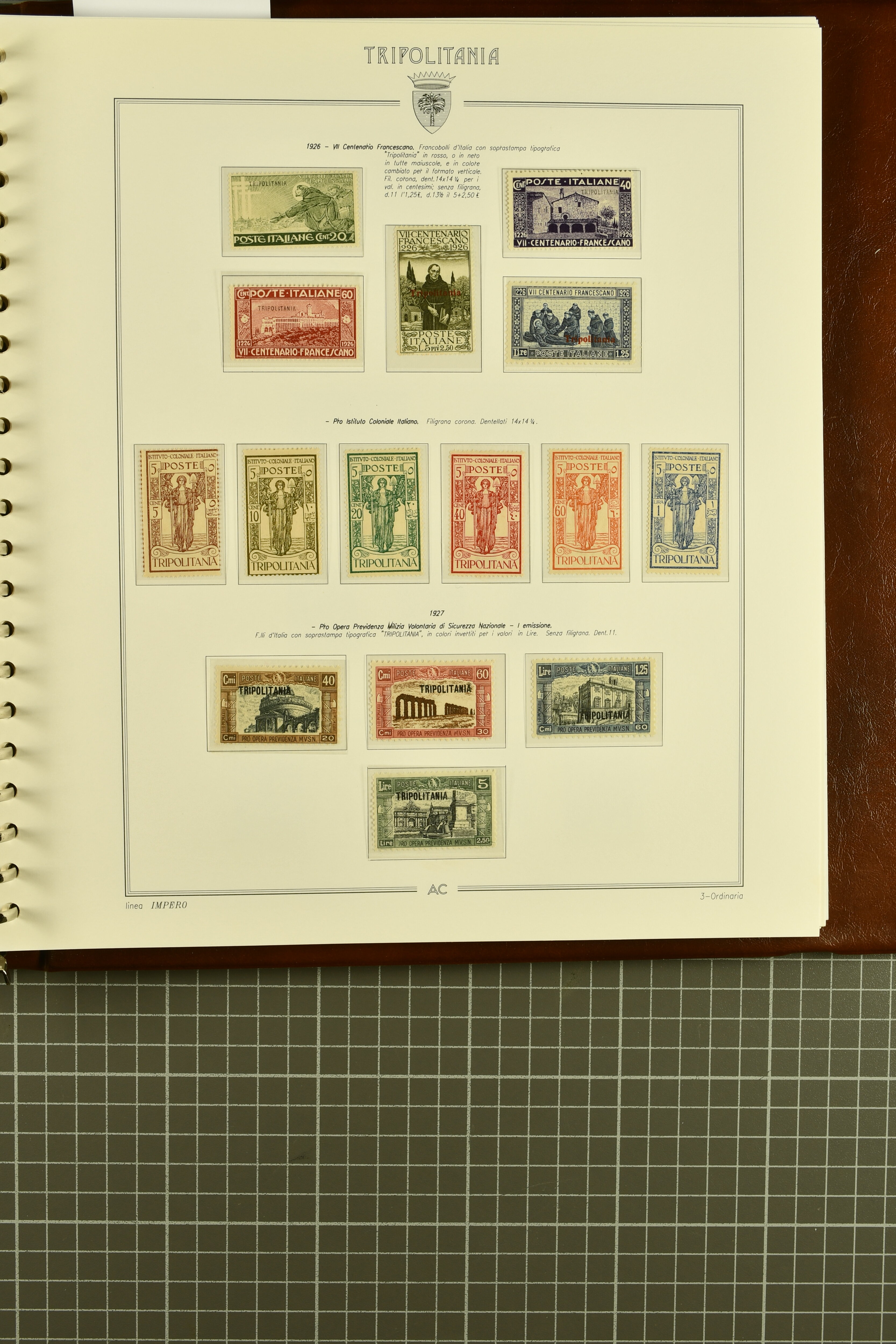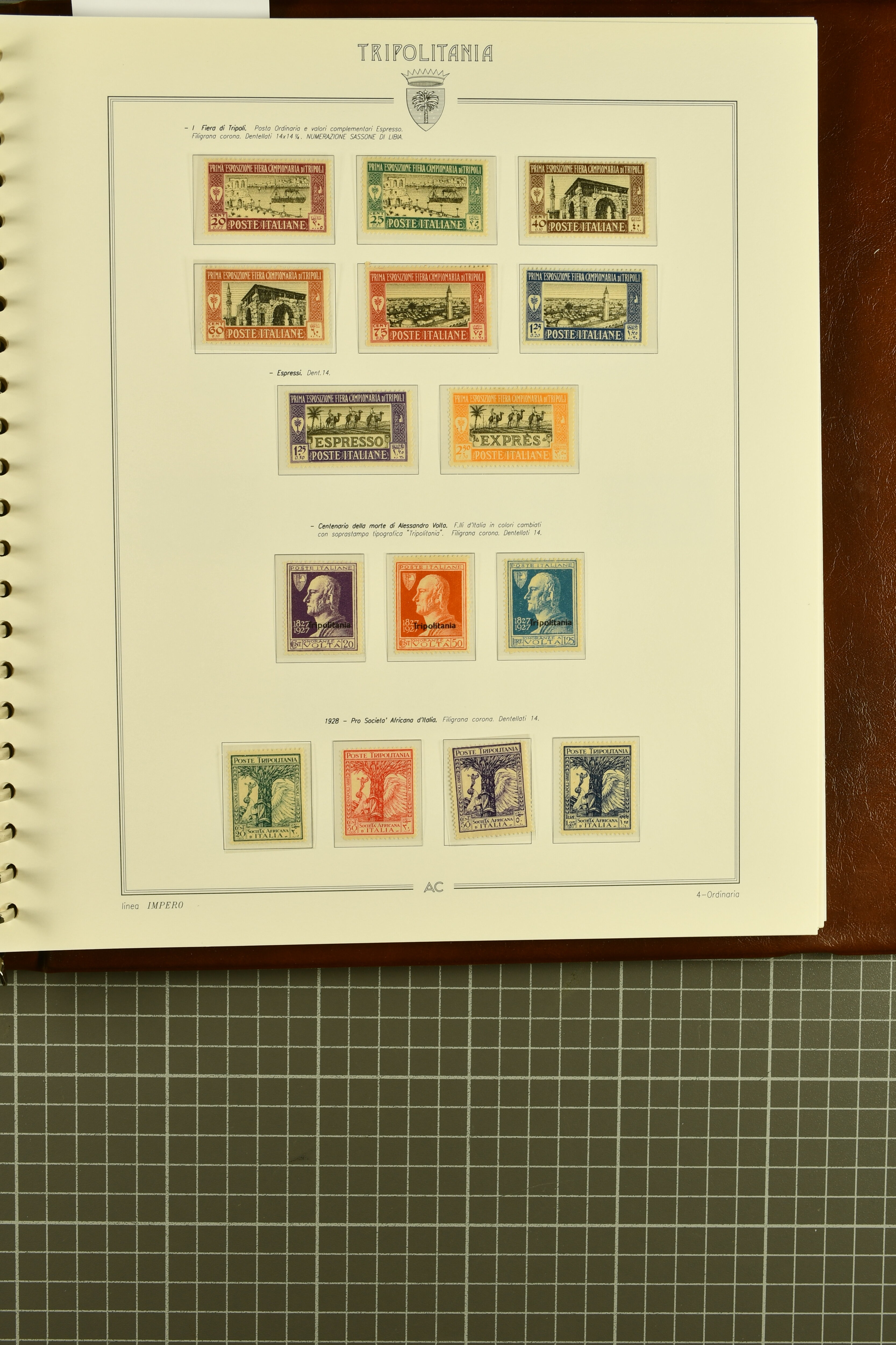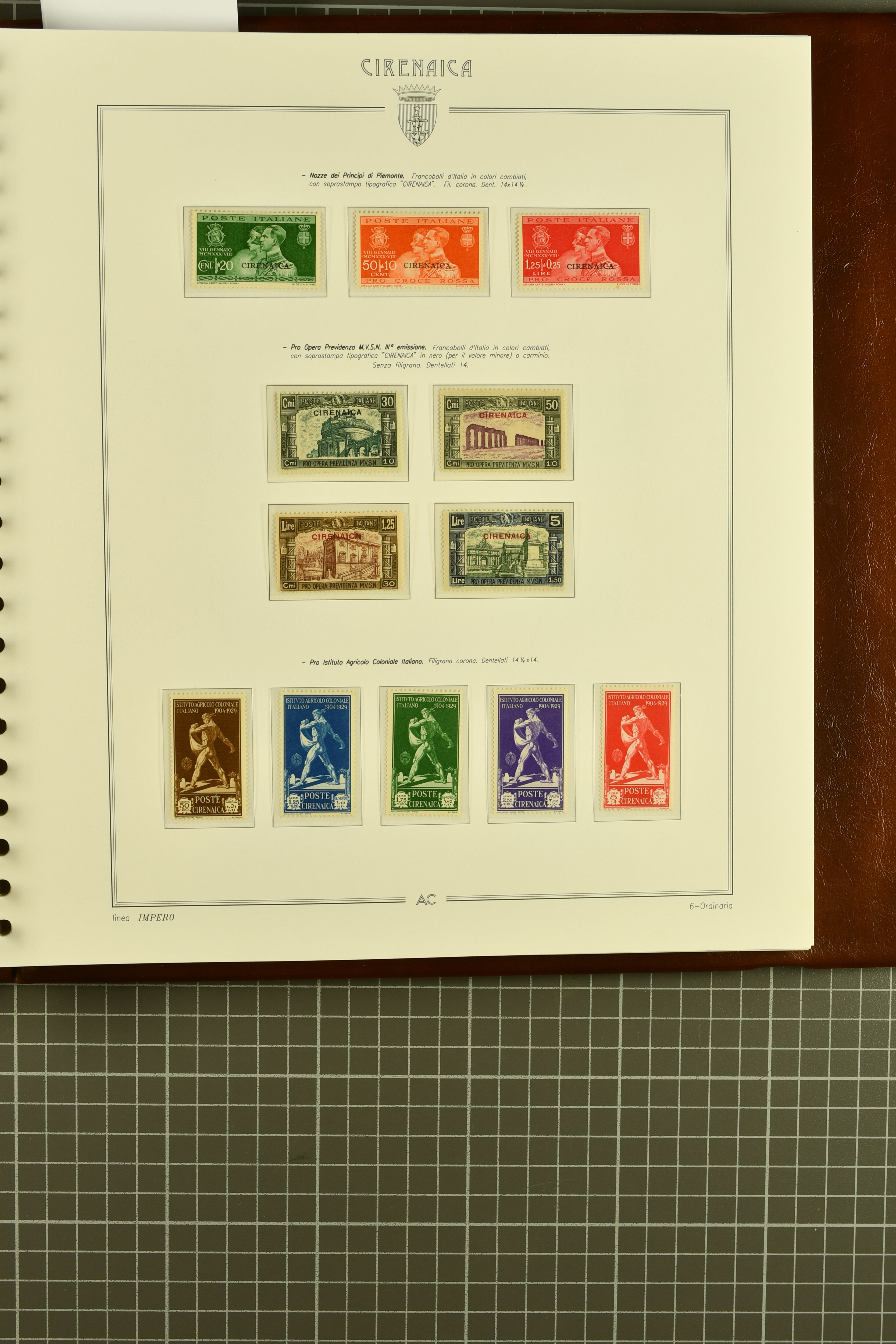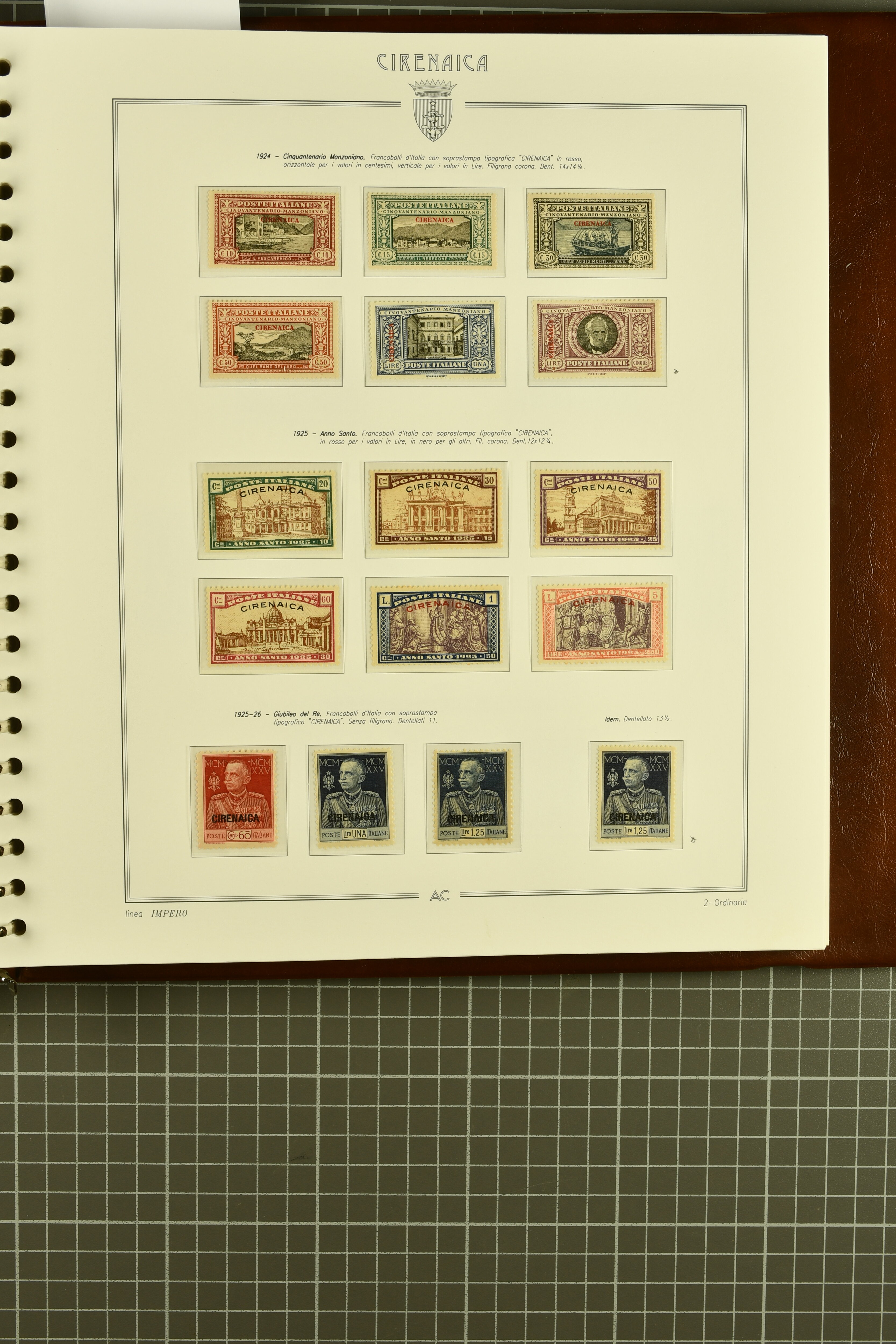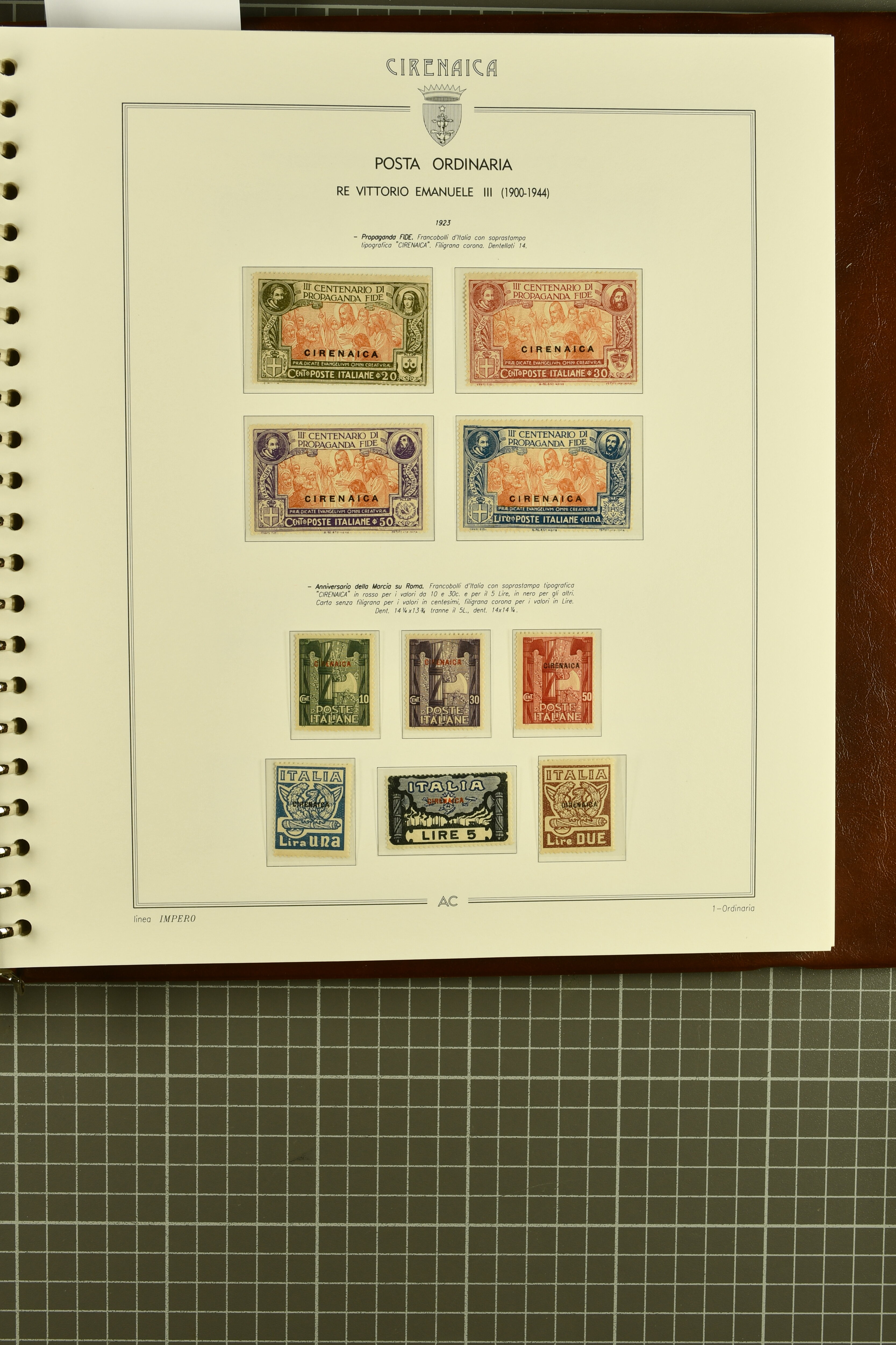 7614 **/*/(*) imageITALIAN COLONIES: Cirenaica and Tripolitania. The two almost complete collections with few specimens of the French occupation of Fezzan in 1943 and Greek Military Administration of the Dodecanese Islands contained in 1 'IMPERO' album: general issues, postage due stamps, postal parcel stamps, air post stamps, special delivery stamps, almost all of them in complete set, unused. General mixed conditions, mostly hinged and some with toned or brownish gum but also some adhesives in good conditions never hinged. 1 Ceremuga certificate. Viewing is recommended (Image 1) (Image 2) (Image 3) (Image 4) (Image 5) (Image 6) (Image 7) (Image 8) (Image 9) (Image 10) (Image 11) (Image 12) (Image 13) (Image 14) (Image 15) (Image 16) (Image 17) (Image 18) (Image 19) (Image 20) (Image 21) (Image 22) (Image 23) (Image 24) (Image 25) (Image 26) (Image 27) (Image 28) (Image 29) (Image 30) (Image 31)