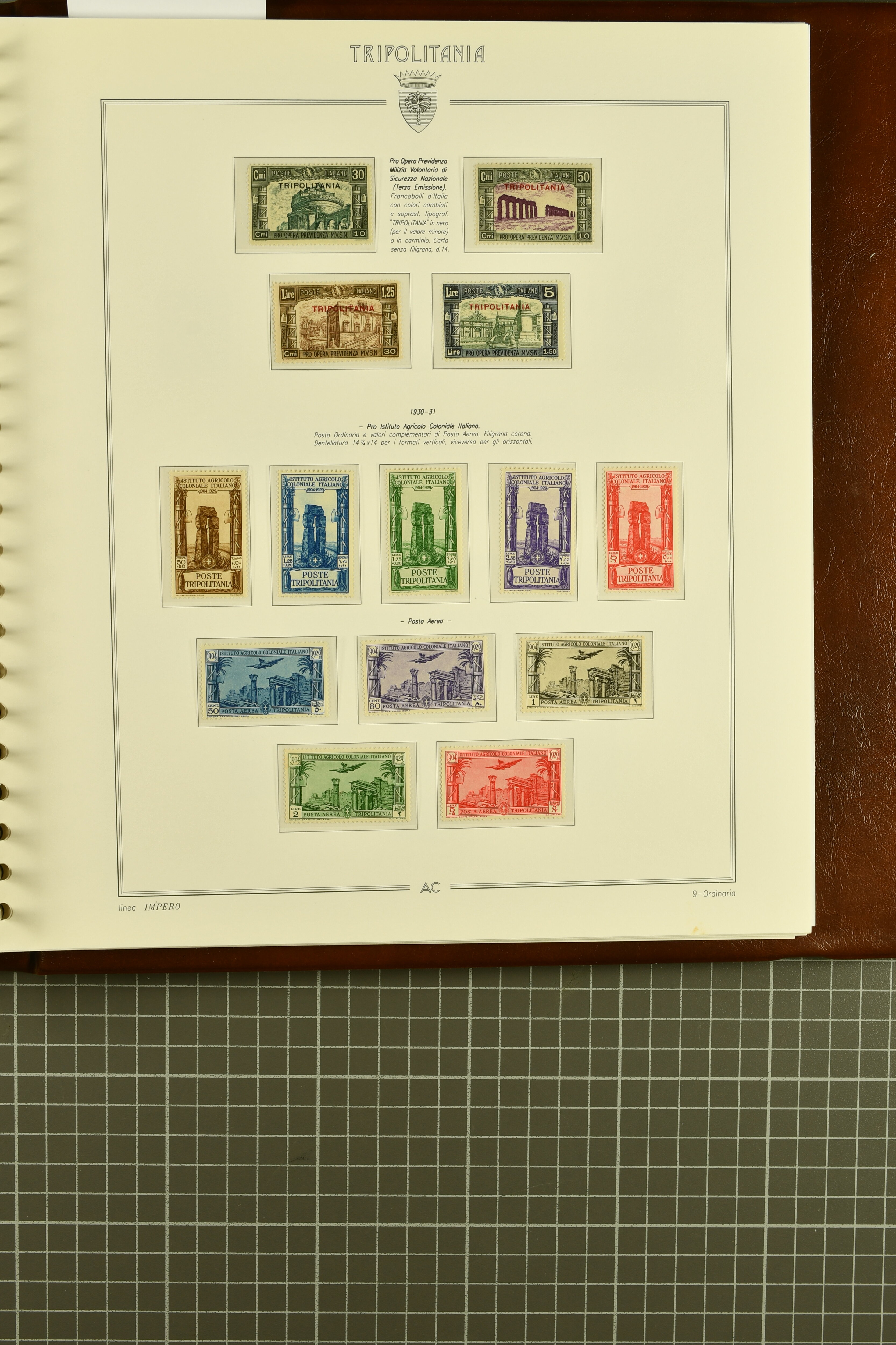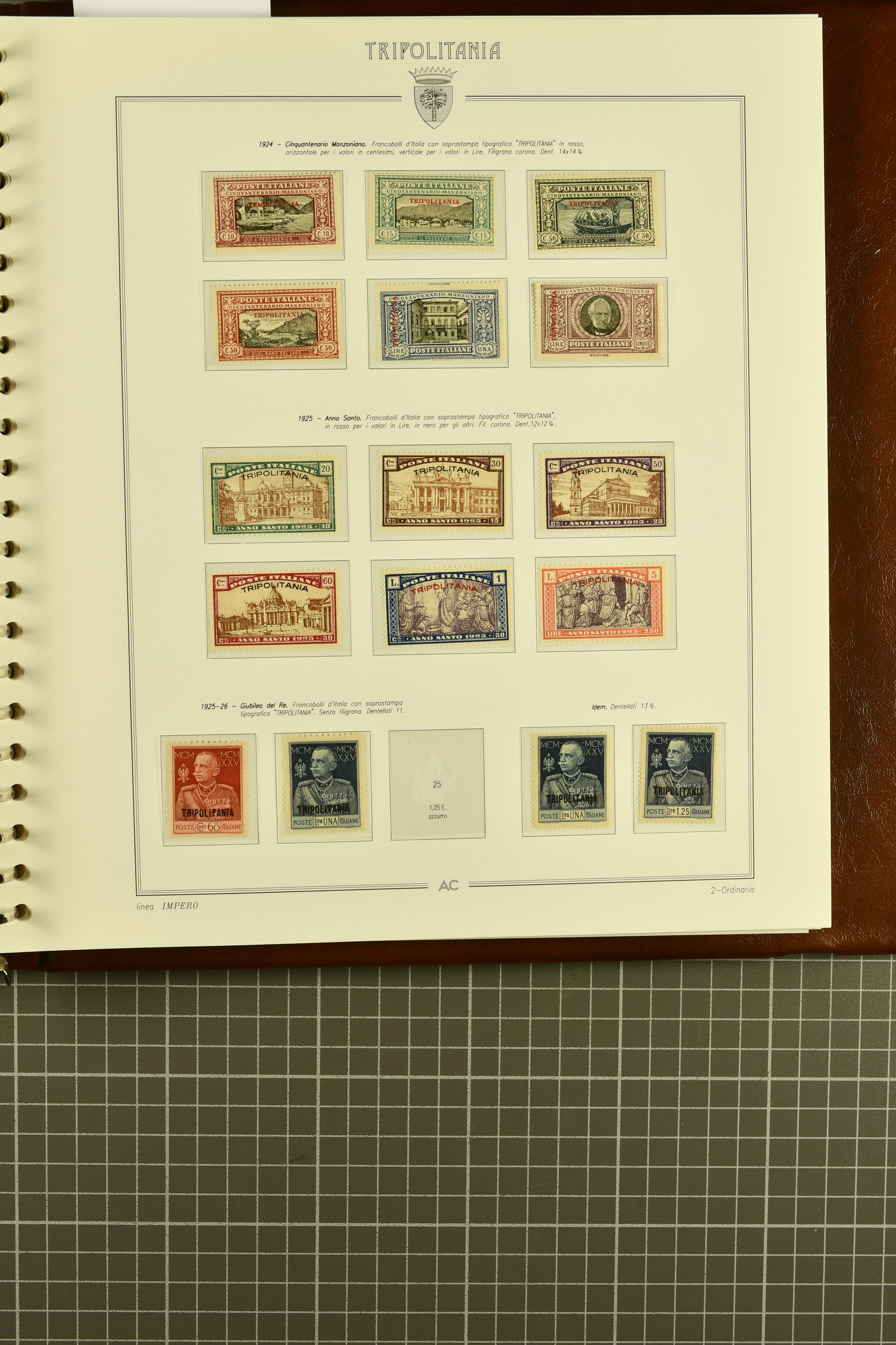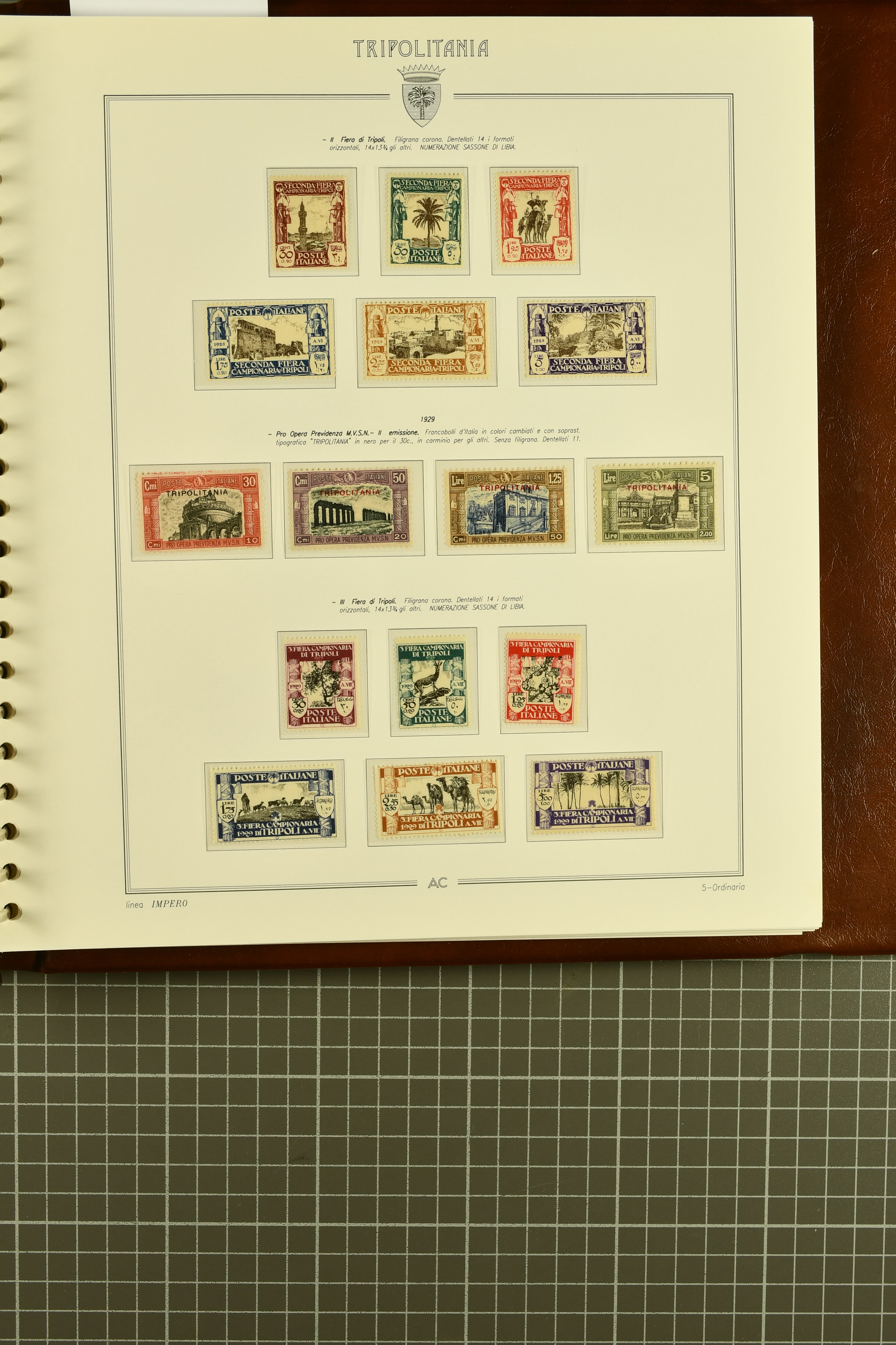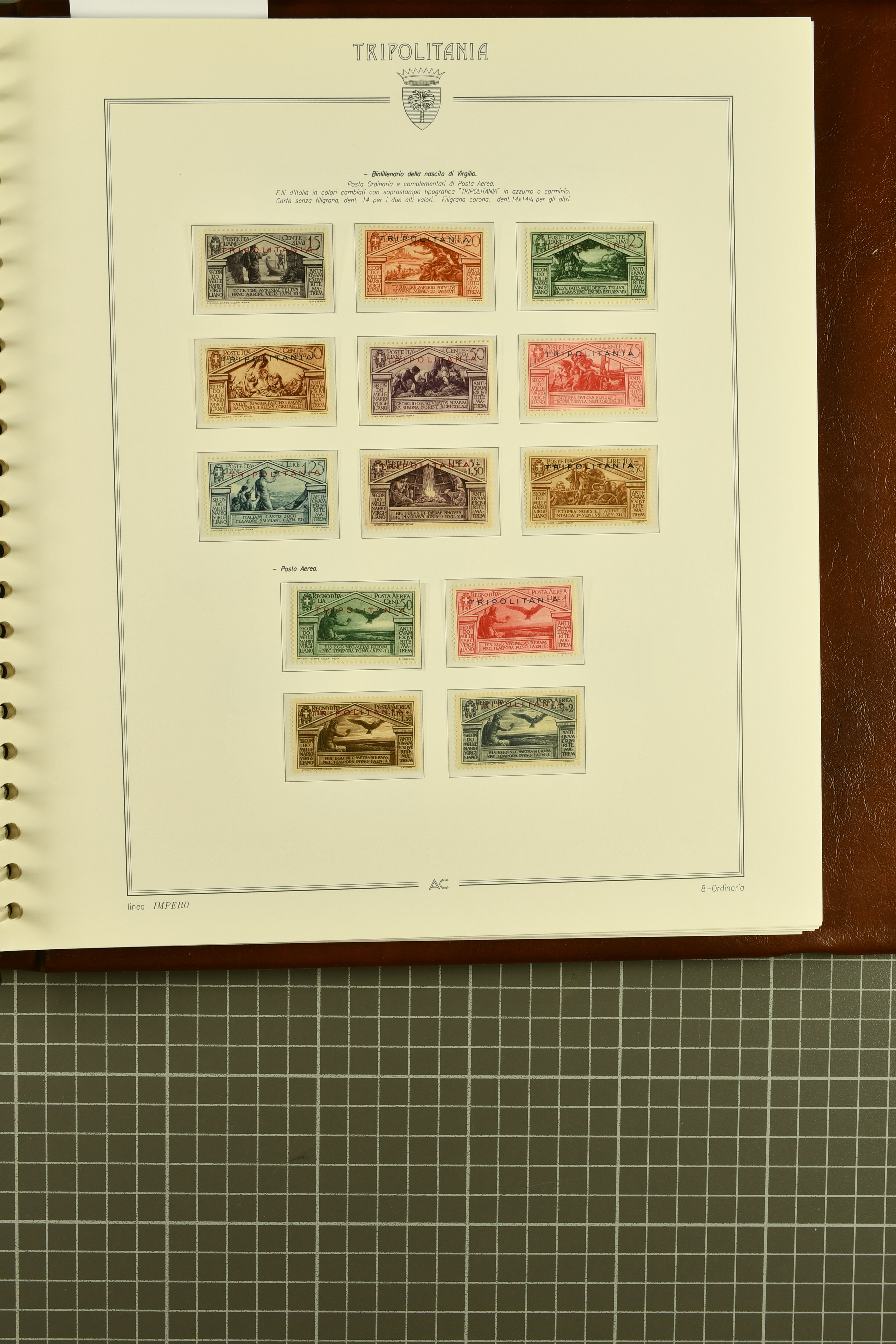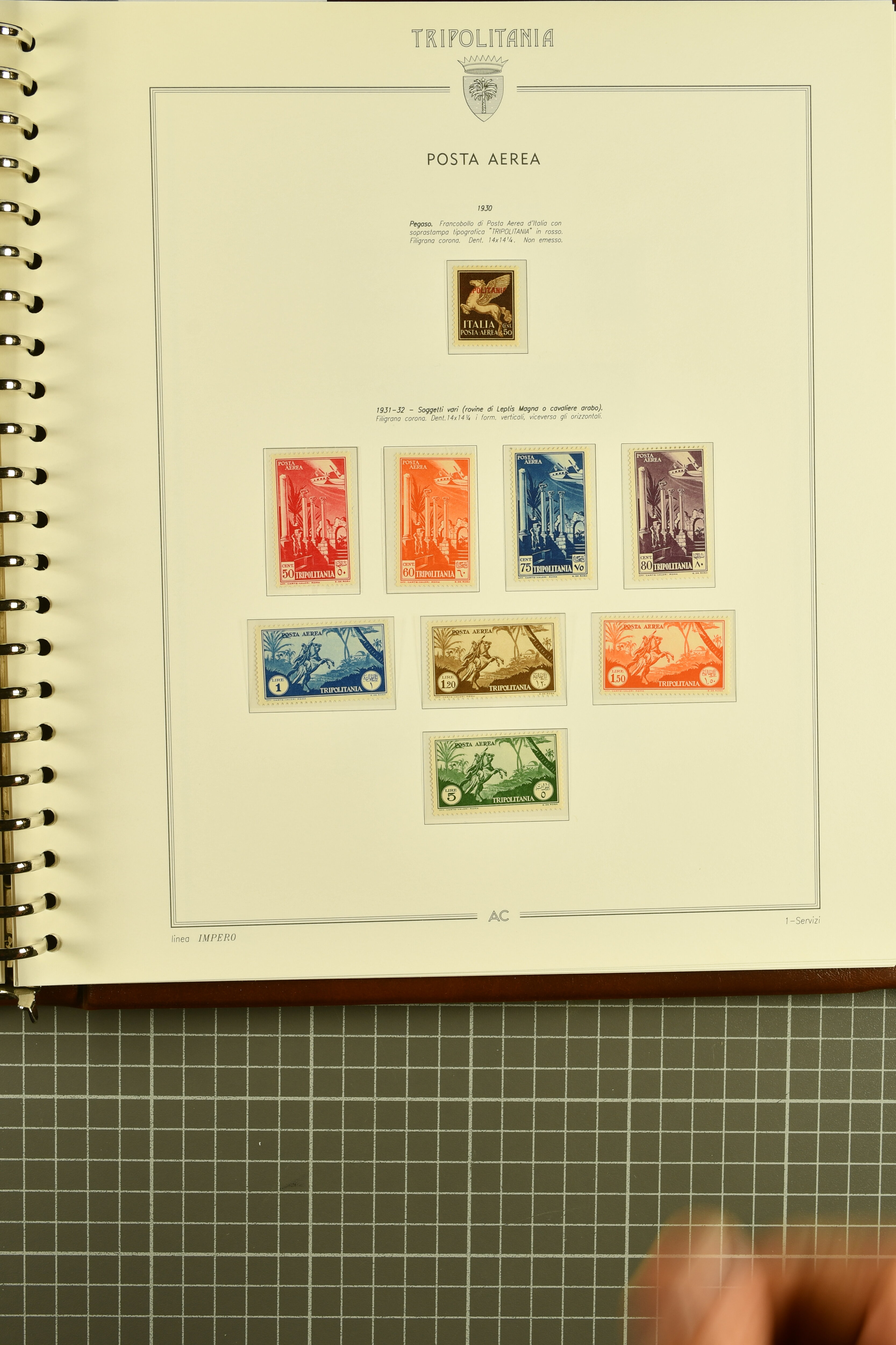 7614 **/*/(*) imageITALIAN COLONIES: Cirenaica and Tripolitania. The two almost complete collections with few specimens of the French occupation of Fezzan in 1943 and Greek Military Administration of the Dodecanese Islands contained in 1 'IMPERO' album: general issues, postage due stamps, postal parcel stamps, air post stamps, special delivery stamps, almost all of them in complete set, unused. General mixed conditions, mostly hinged and some with toned or brownish gum but also some adhesives in good conditions never hinged. 1 Ceremuga certificate. Viewing is recommended (Image 1) (Image 2) (Image 3) (Image 4) (Image 5) (Image 6) (Image 7) (Image 8) (Image 9) (Image 10) (Image 11) (Image 12) (Image 13) (Image 14) (Image 15) (Image 16) (Image 17) (Image 18) (Image 19) (Image 20) (Image 21) (Image 22) (Image 23) (Image 24) (Image 25) (Image 26) (Image 27) (Image 28) (Image 29) (Image 30) (Image 31)