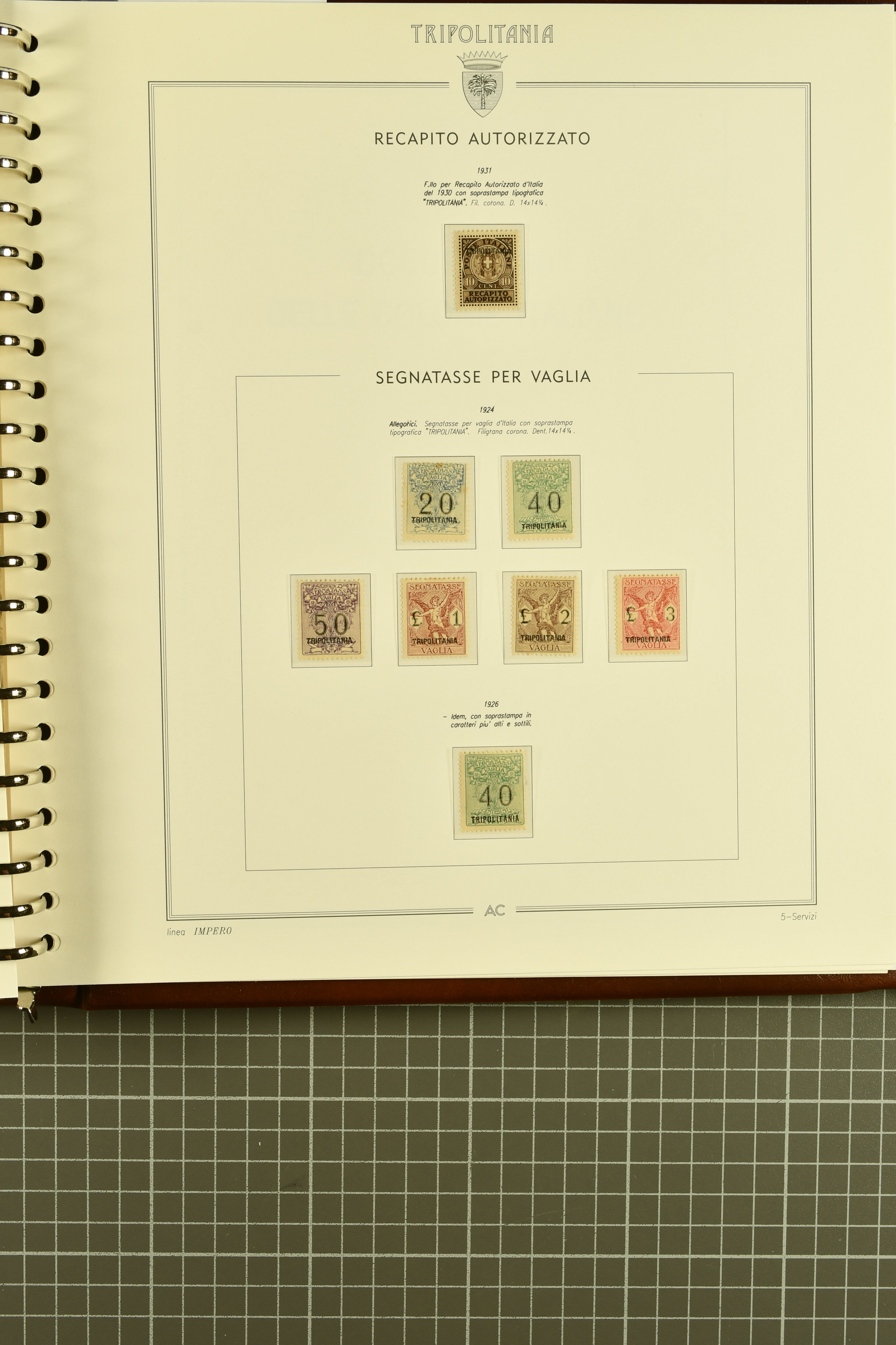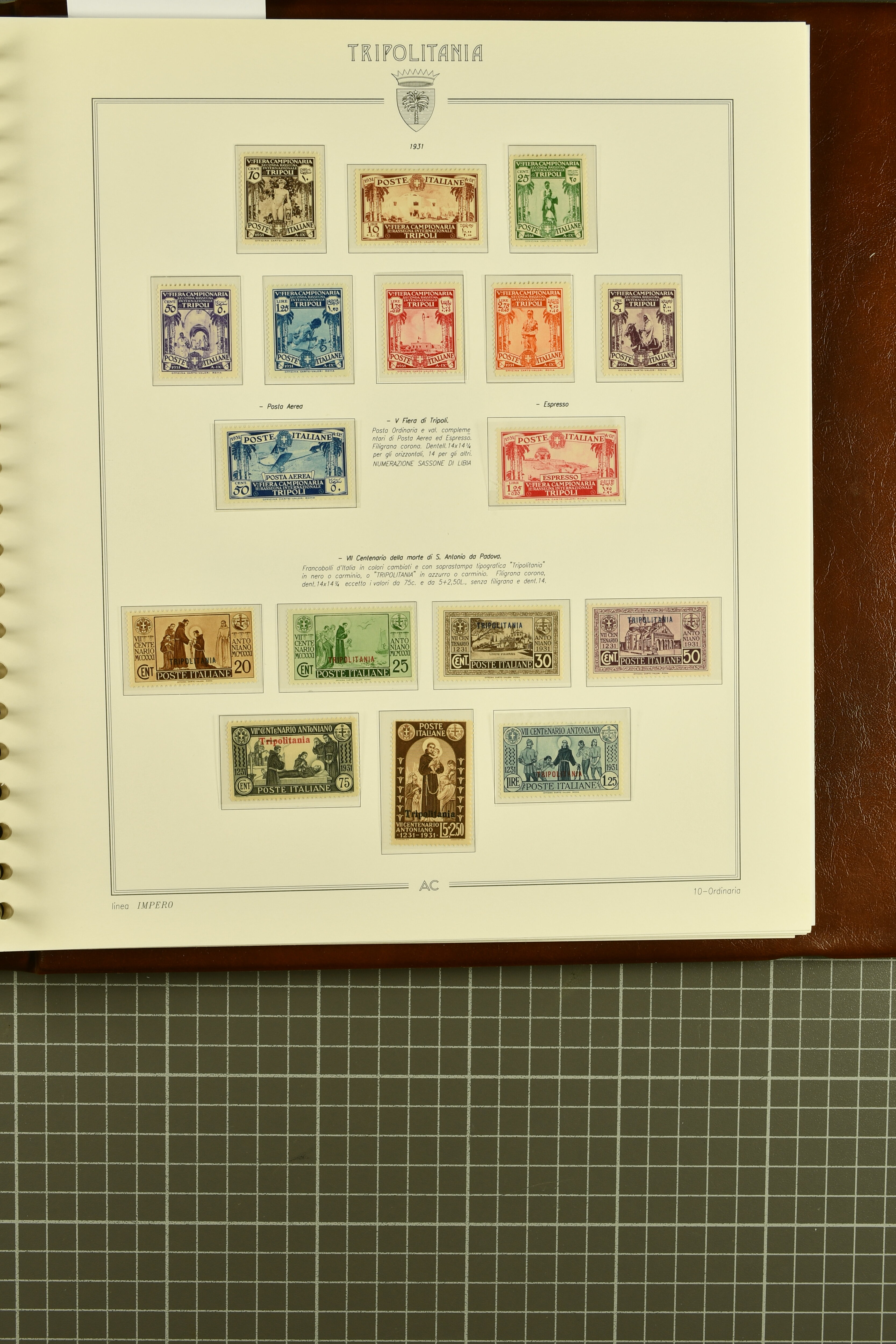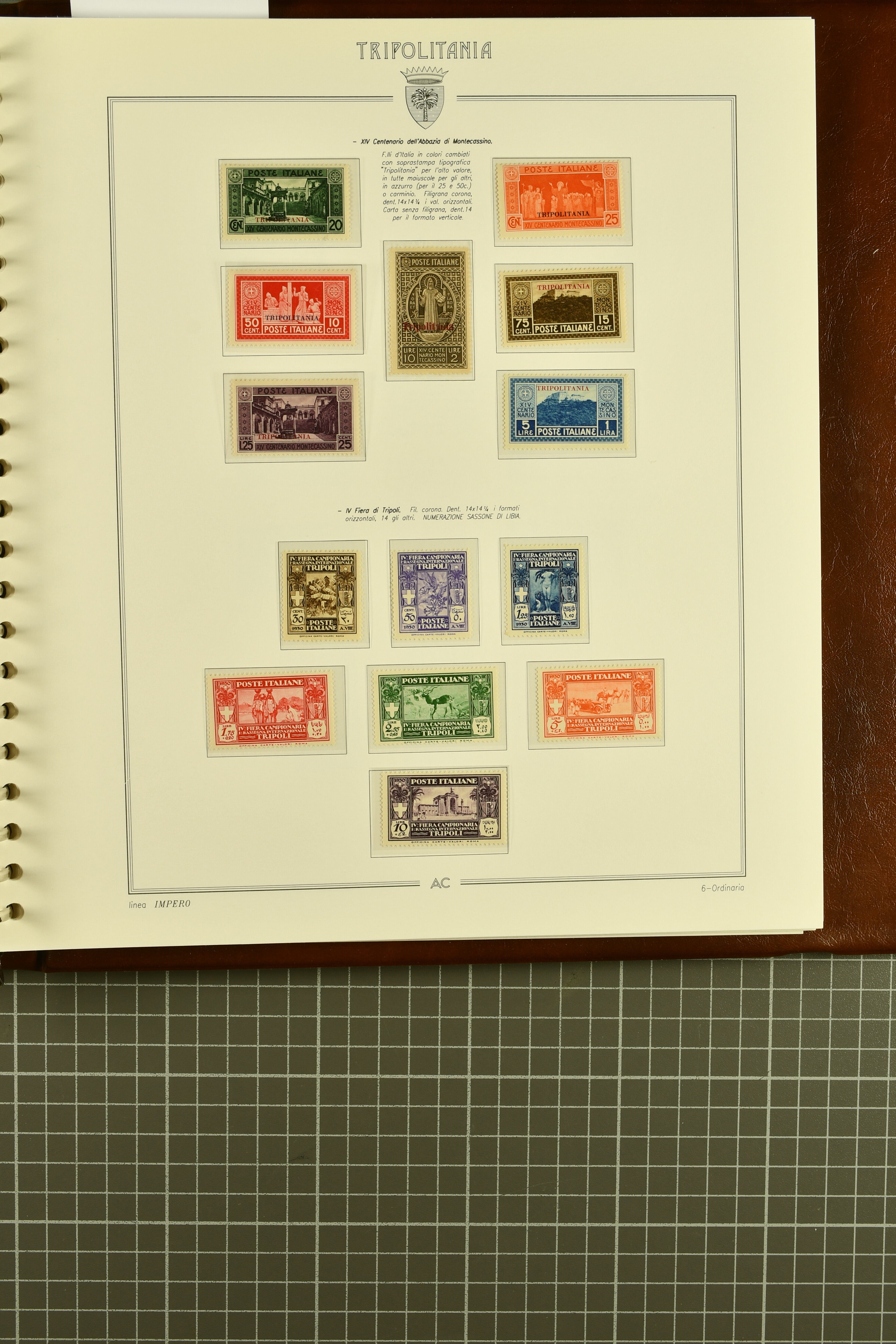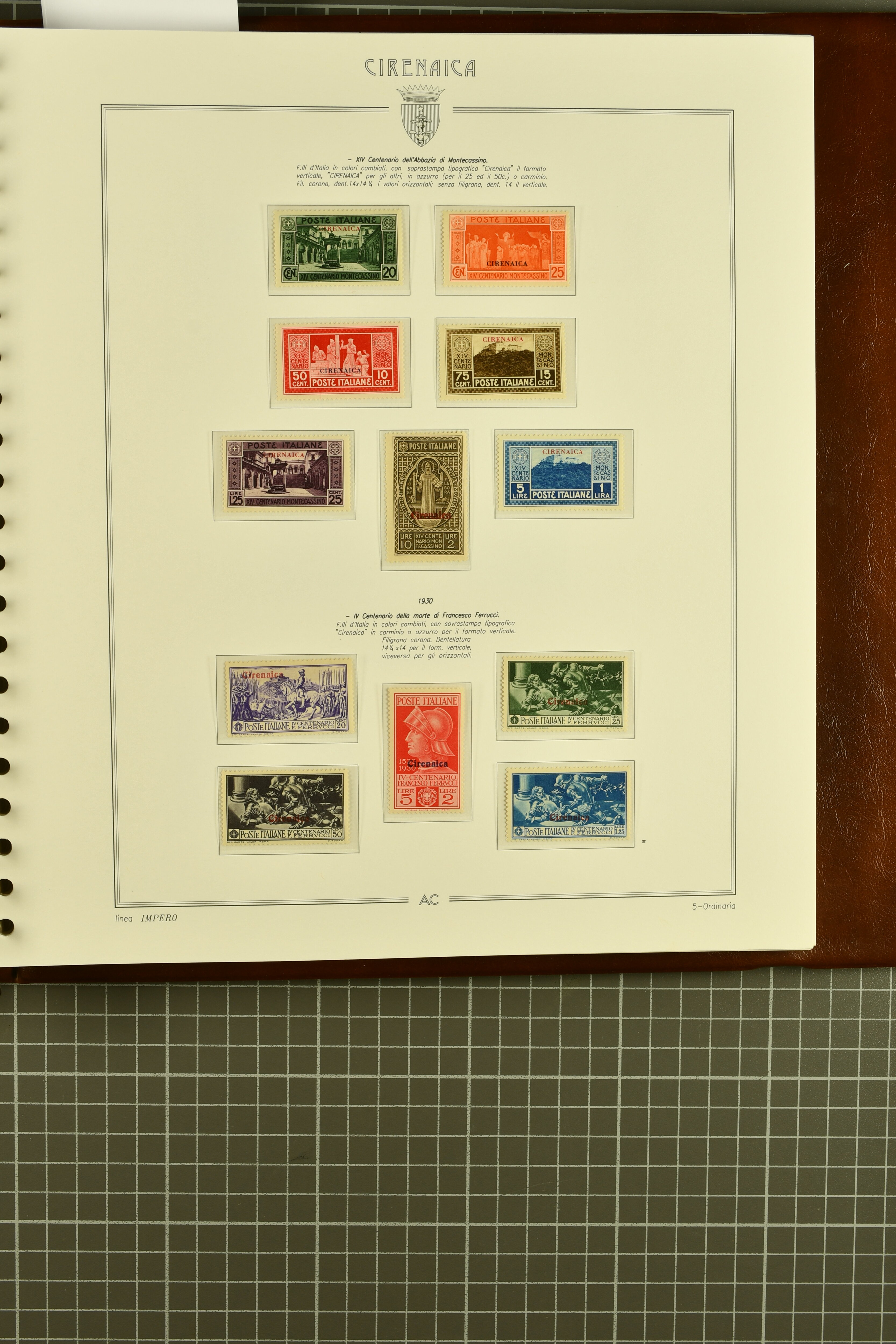 7614 **/*/(*) imageITALIAN COLONIES: Cirenaica and Tripolitania. The two almost complete collections with few specimens of the French occupation of Fezzan in 1943 and Greek Military Administration of the Dodecanese Islands contained in 1 'IMPERO' album: general issues, postage due stamps, postal parcel stamps, air post stamps, special delivery stamps, almost all of them in complete set, unused. General mixed conditions, mostly hinged and some with toned or brownish gum but also some adhesives in good conditions never hinged. 1 Ceremuga certificate. Viewing is recommended (Image 1) (Image 2) (Image 3) (Image 4) (Image 5) (Image 6) (Image 7) (Image 8) (Image 9) (Image 10) (Image 11) (Image 12) (Image 13) (Image 14) (Image 15) (Image 16) (Image 17) (Image 18) (Image 19) (Image 20) (Image 21) (Image 22) (Image 23) (Image 24) (Image 25) (Image 26) (Image 27) (Image 28) (Image 29) (Image 30) (Image 31)