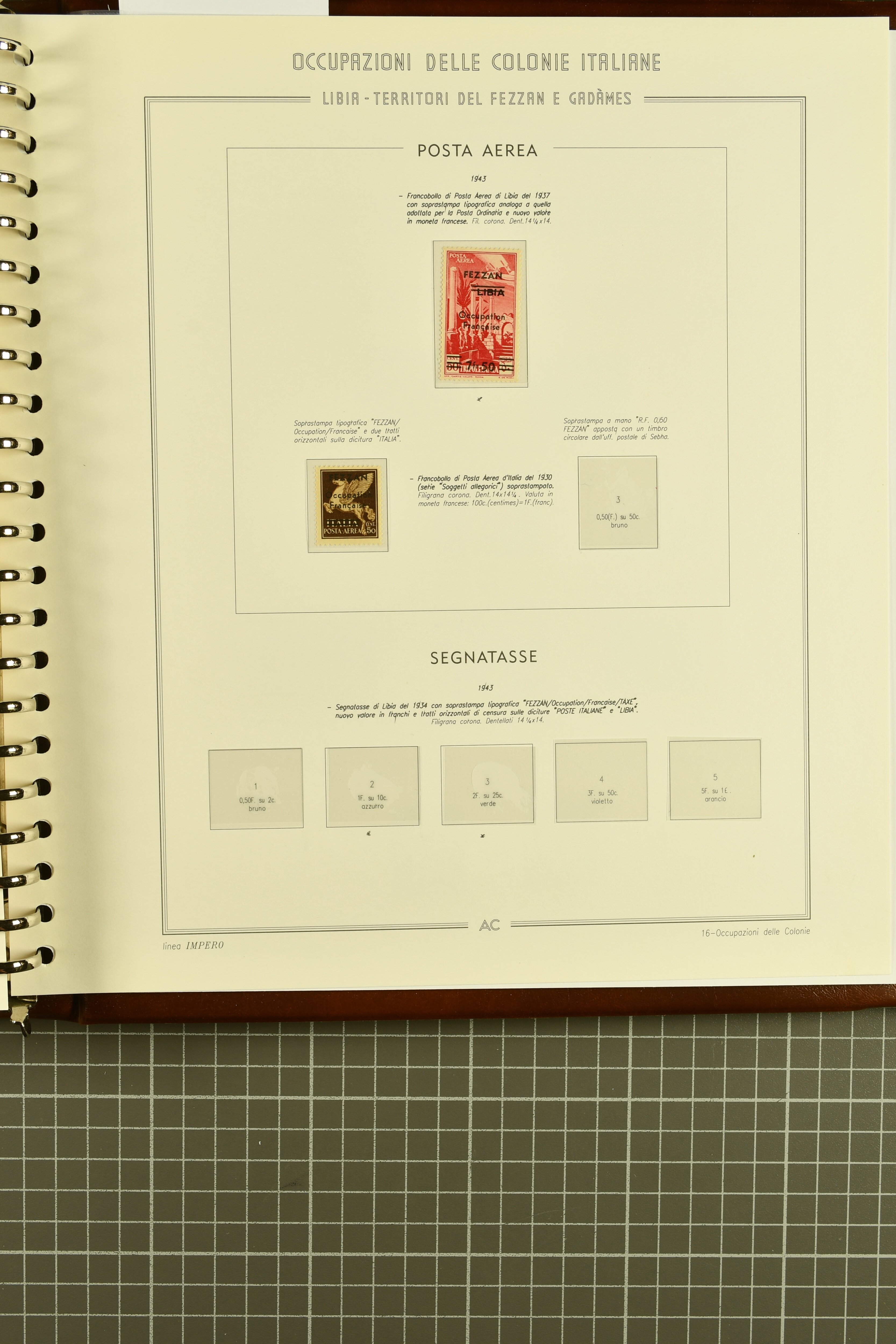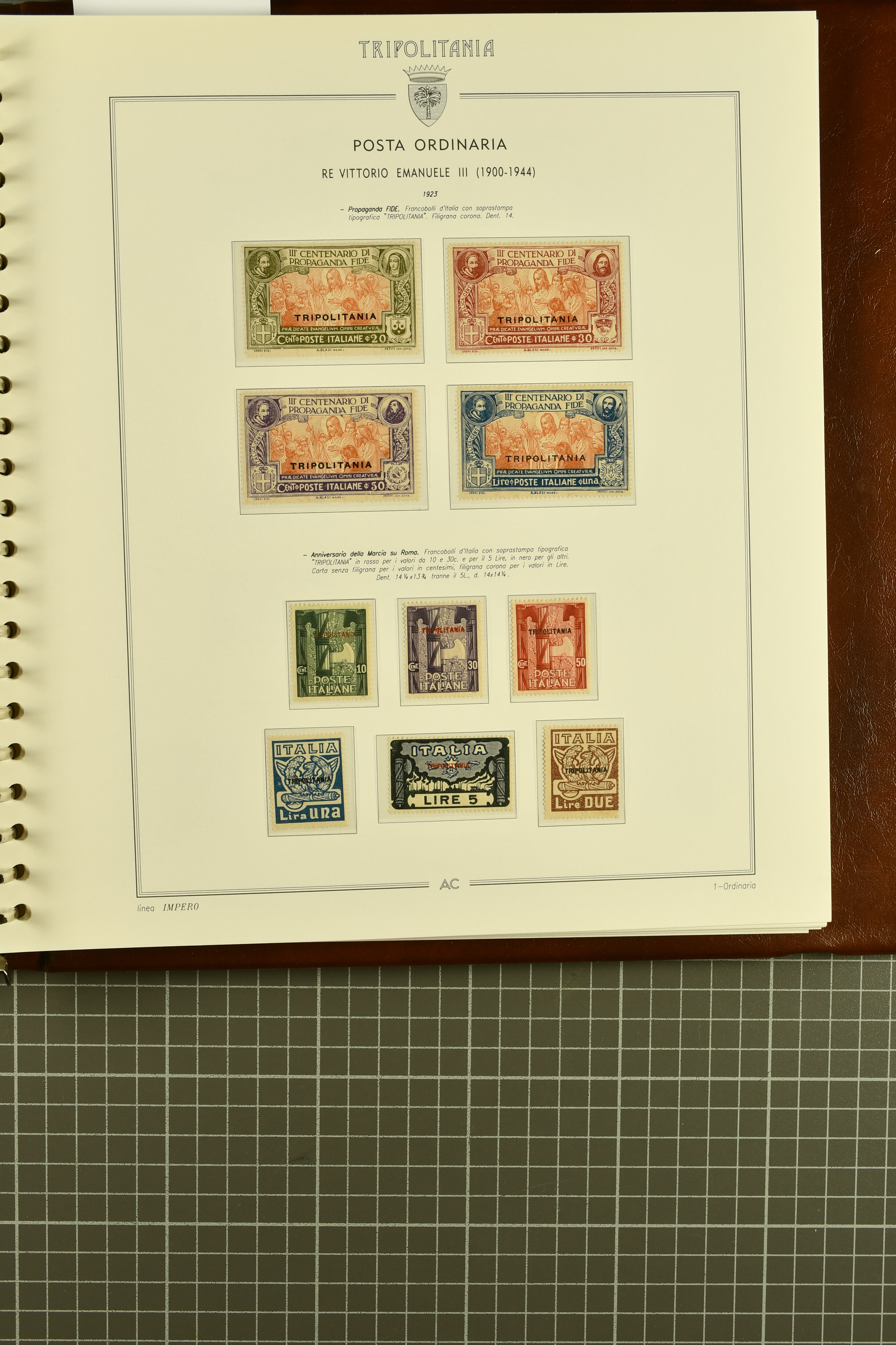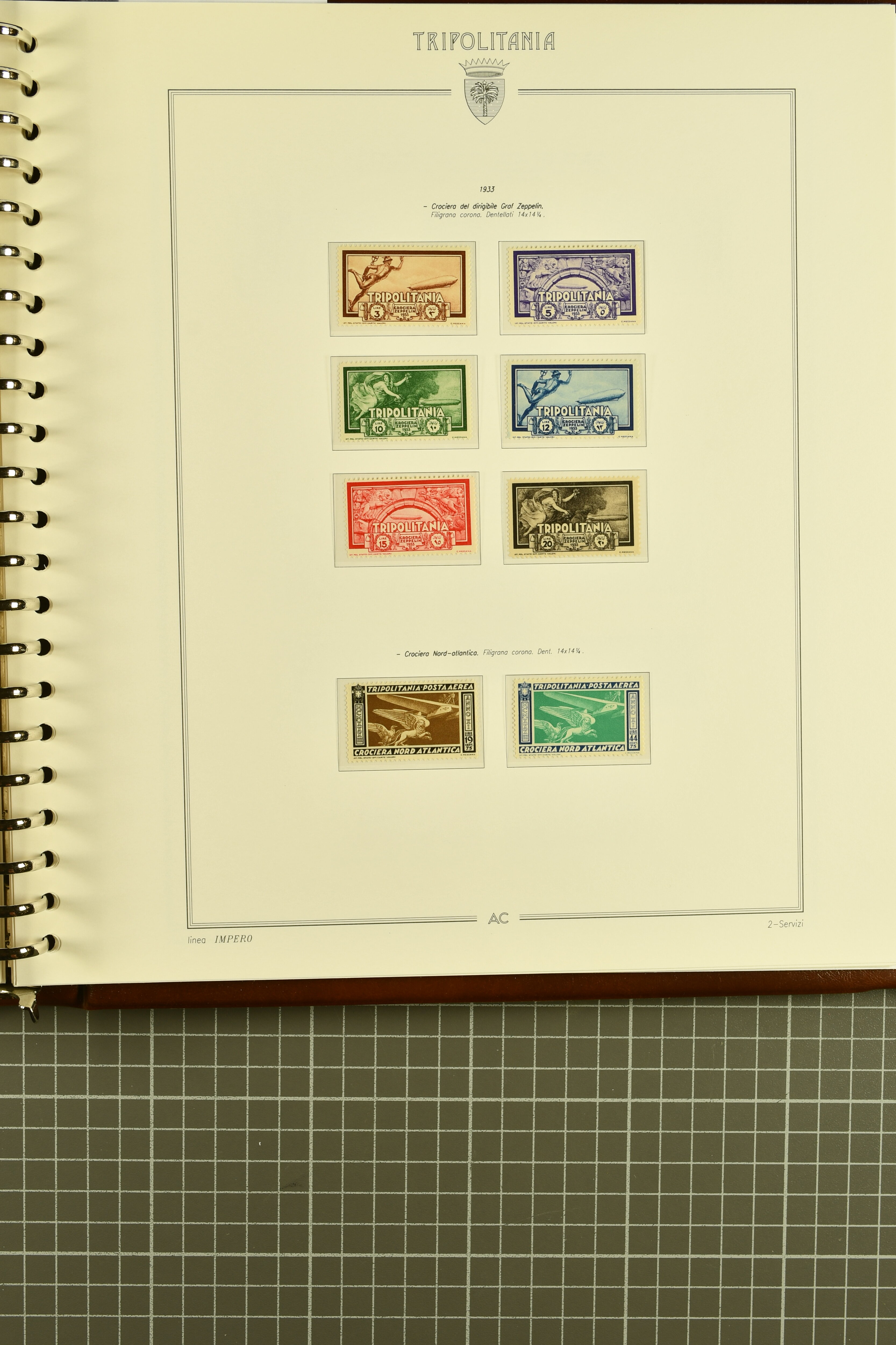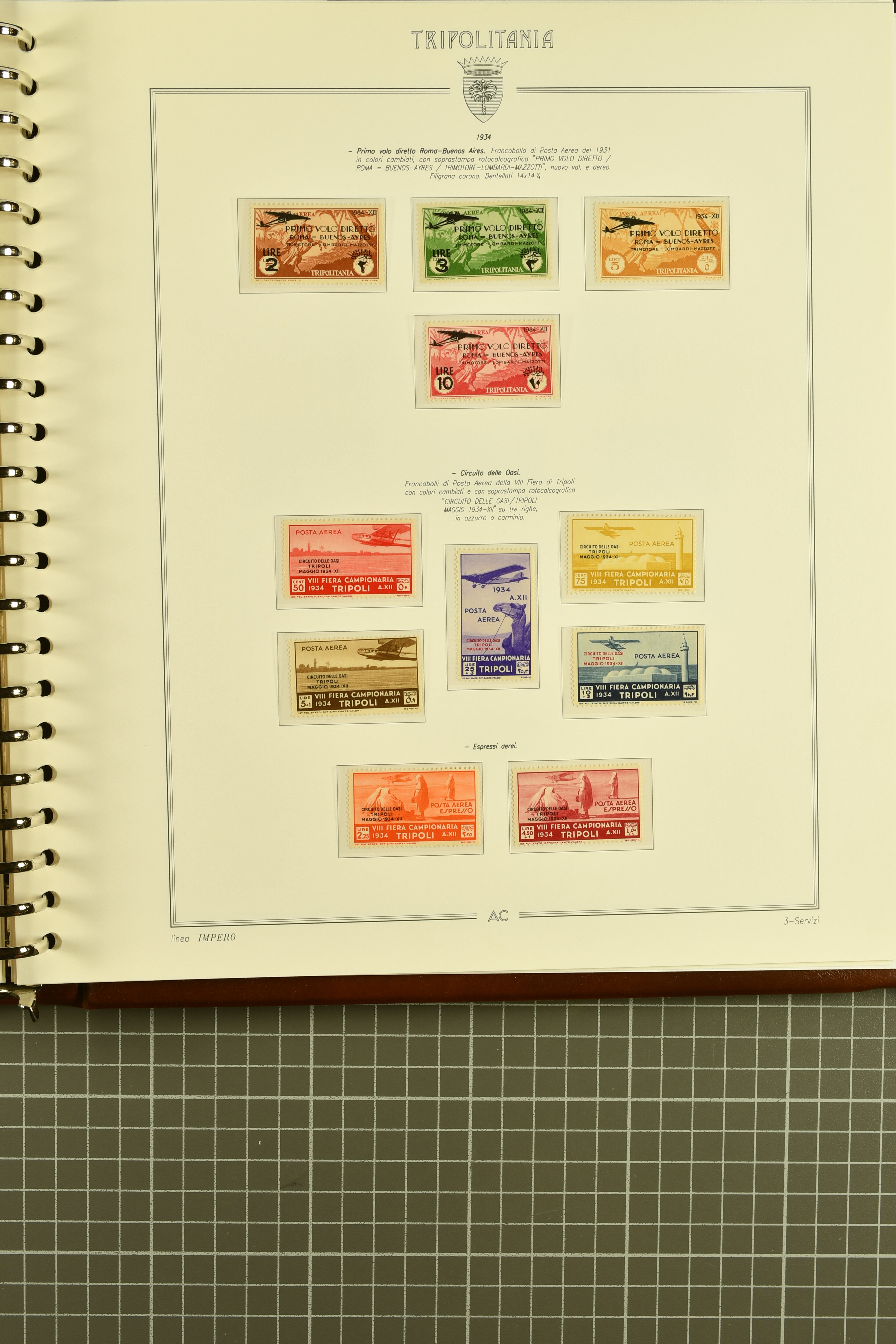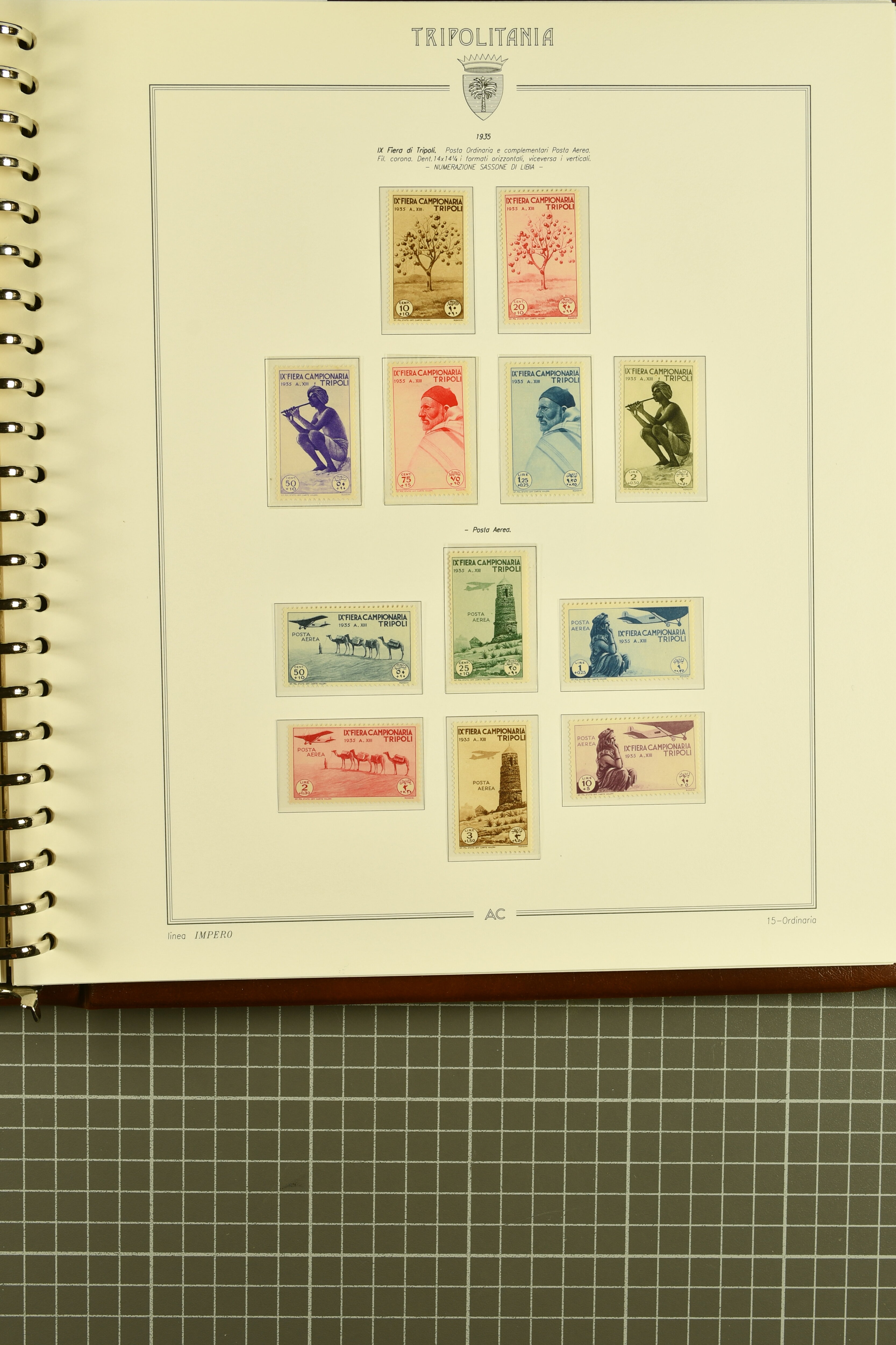 7614 **/*/(*) imageITALIAN COLONIES: Cirenaica and Tripolitania. The two almost complete collections with few specimens of the French occupation of Fezzan in 1943 and Greek Military Administration of the Dodecanese Islands contained in 1 'IMPERO' album: general issues, postage due stamps, postal parcel stamps, air post stamps, special delivery stamps, almost all of them in complete set, unused. General mixed conditions, mostly hinged and some with toned or brownish gum but also some adhesives in good conditions never hinged. 1 Ceremuga certificate. Viewing is recommended (Image 1) (Image 2) (Image 3) (Image 4) (Image 5) (Image 6) (Image 7) (Image 8) (Image 9) (Image 10) (Image 11) (Image 12) (Image 13) (Image 14) (Image 15) (Image 16) (Image 17) (Image 18) (Image 19) (Image 20) (Image 21) (Image 22) (Image 23) (Image 24) (Image 25) (Image 26) (Image 27) (Image 28) (Image 29) (Image 30) (Image 31)