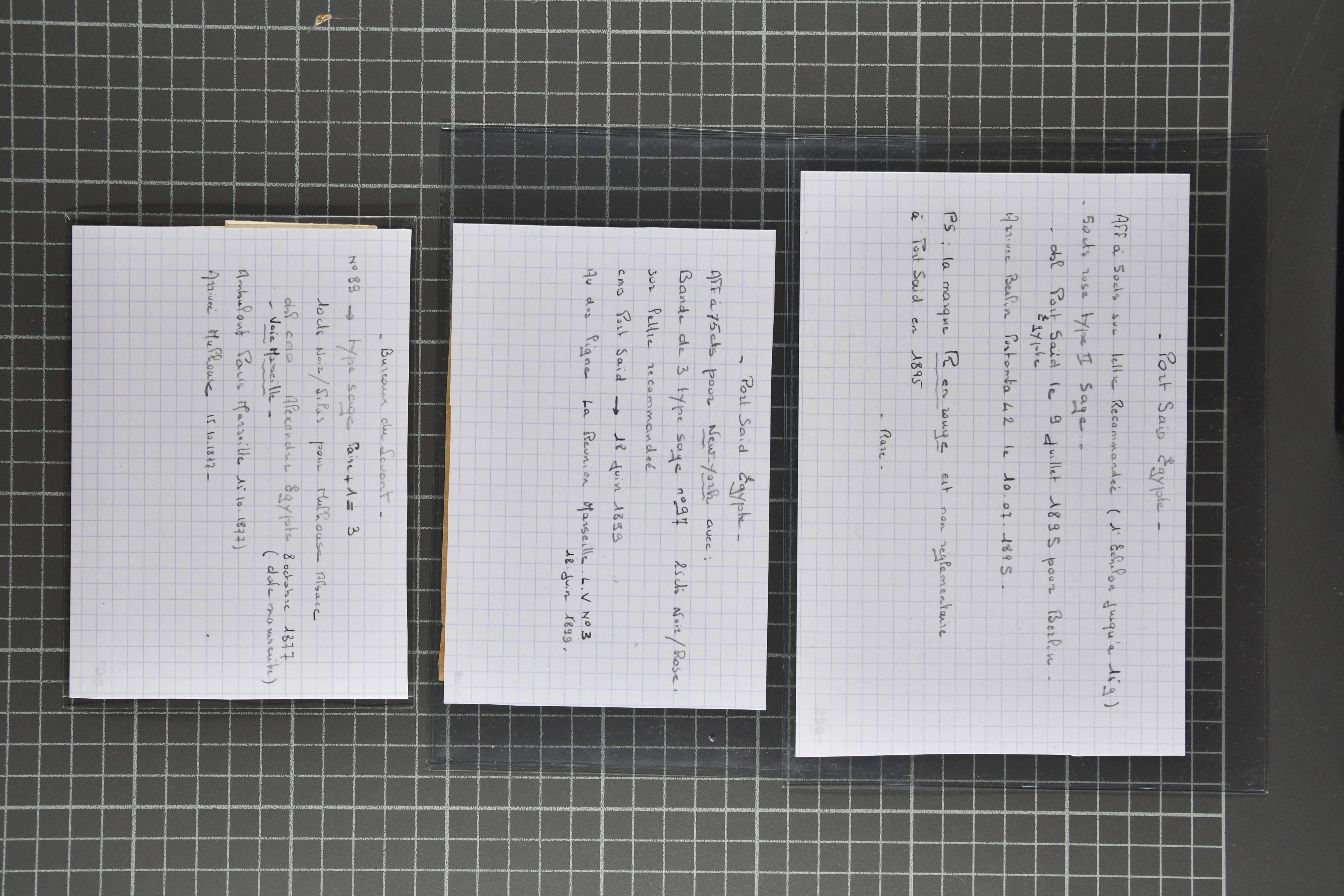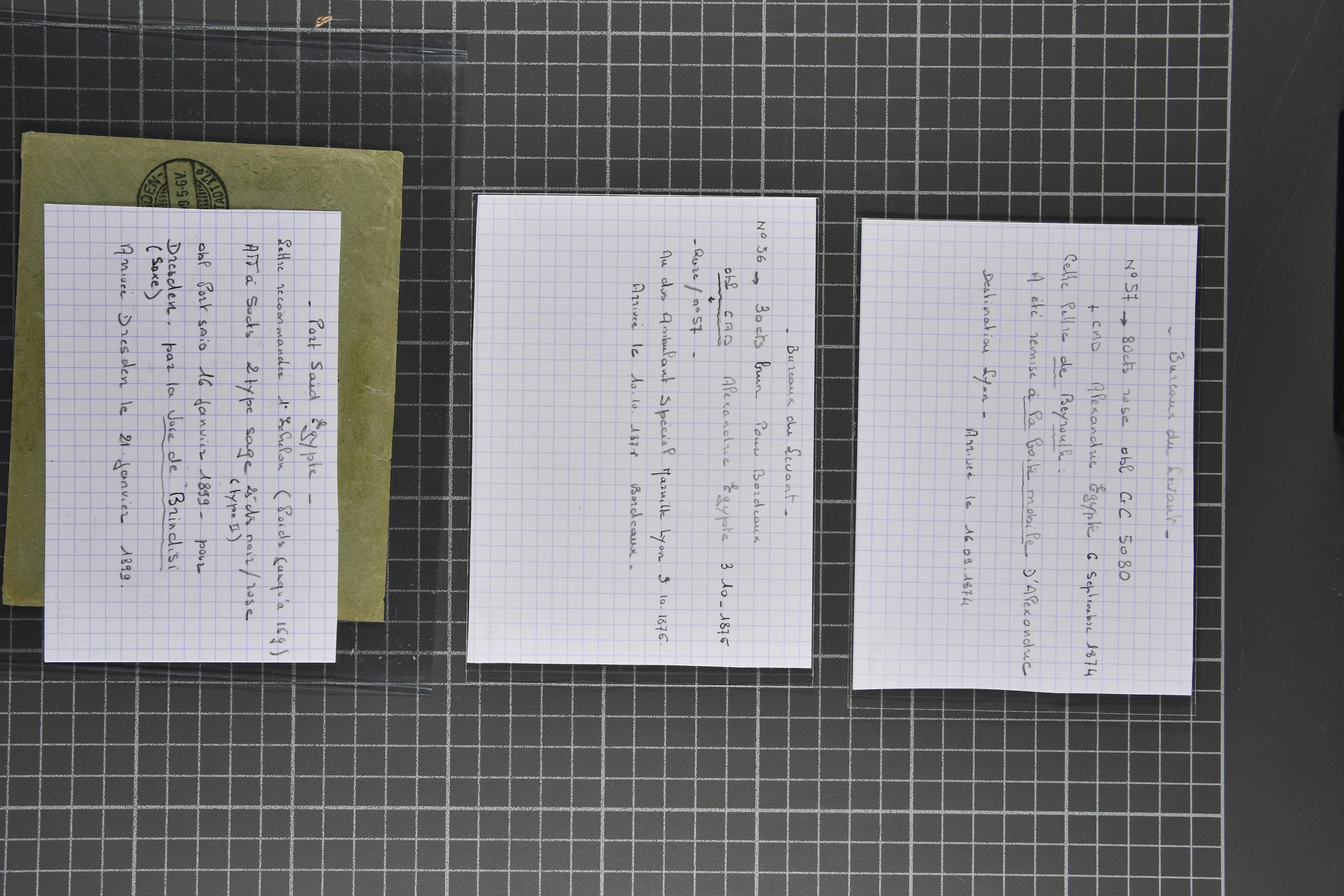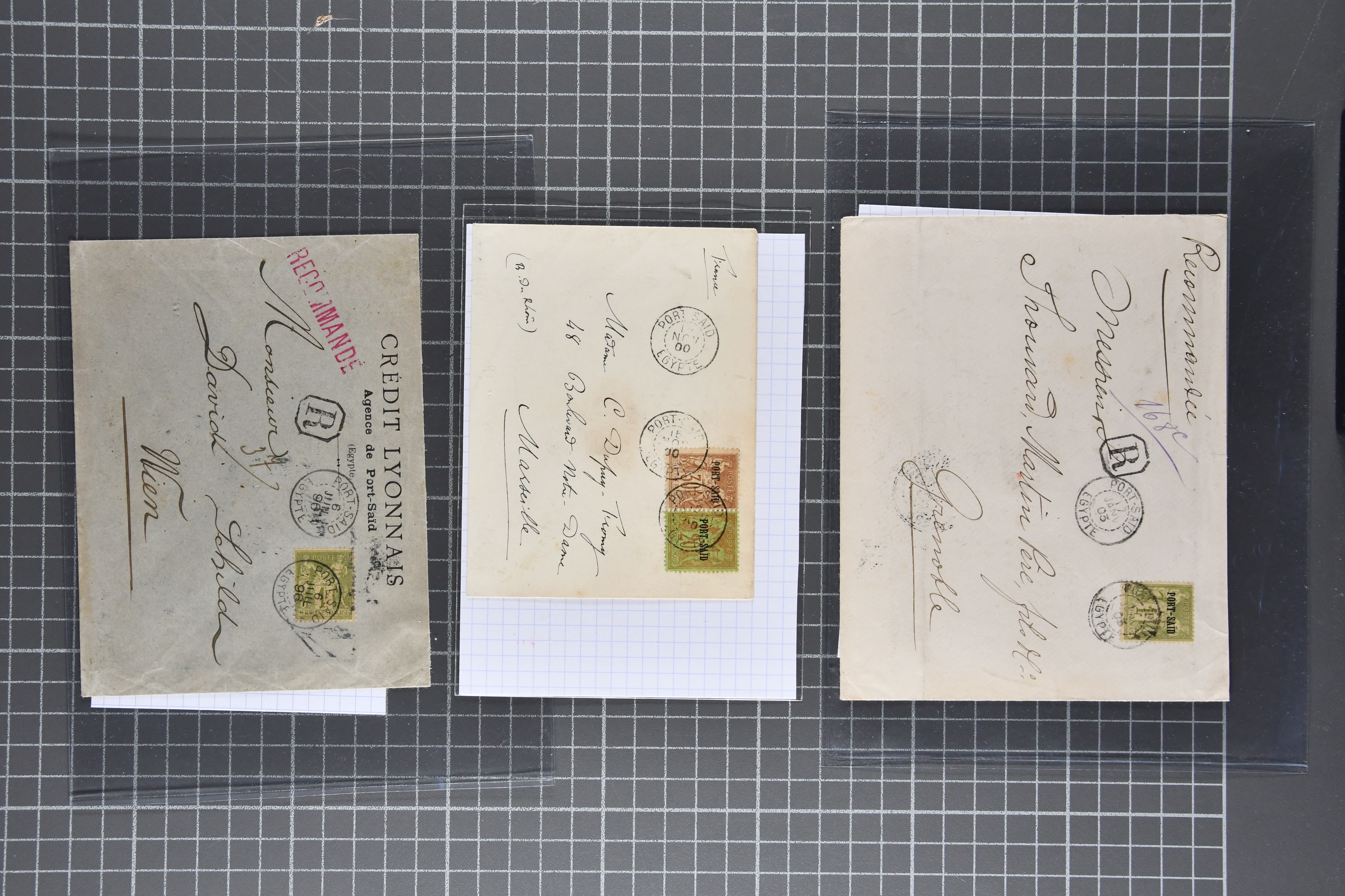 1947 cover imageLots & Collections 1874/1903: Fine lot of 9 covers from ALEXANDRIA and PORT SAÏD with French stamps. Includes three covers from ALEXANDRIA: Cérès type 30 c. single on cover to Bordeaux, 80 c. single on cover to Lyon, and 10 c. Sage type (3) to Mulhouse. From PORT SAÏD: 25 c. Sage (2) on a registered cover to Dresden, a strip of three 25 c. on a registered cover to New York, 50 c. Sage type as a single on cover to Berlin, and 1 Fr. Sage type as a single on a registered cover to Vienna. Also two covers with Port Saïd overprints on Sage type: 30 c. + 20 c. to Marseille, and a registered cover with 1 Fr. to Grenoble (Image 1) (Image 2) (Image 3) (Image 4) (Image 5) (Image 6)