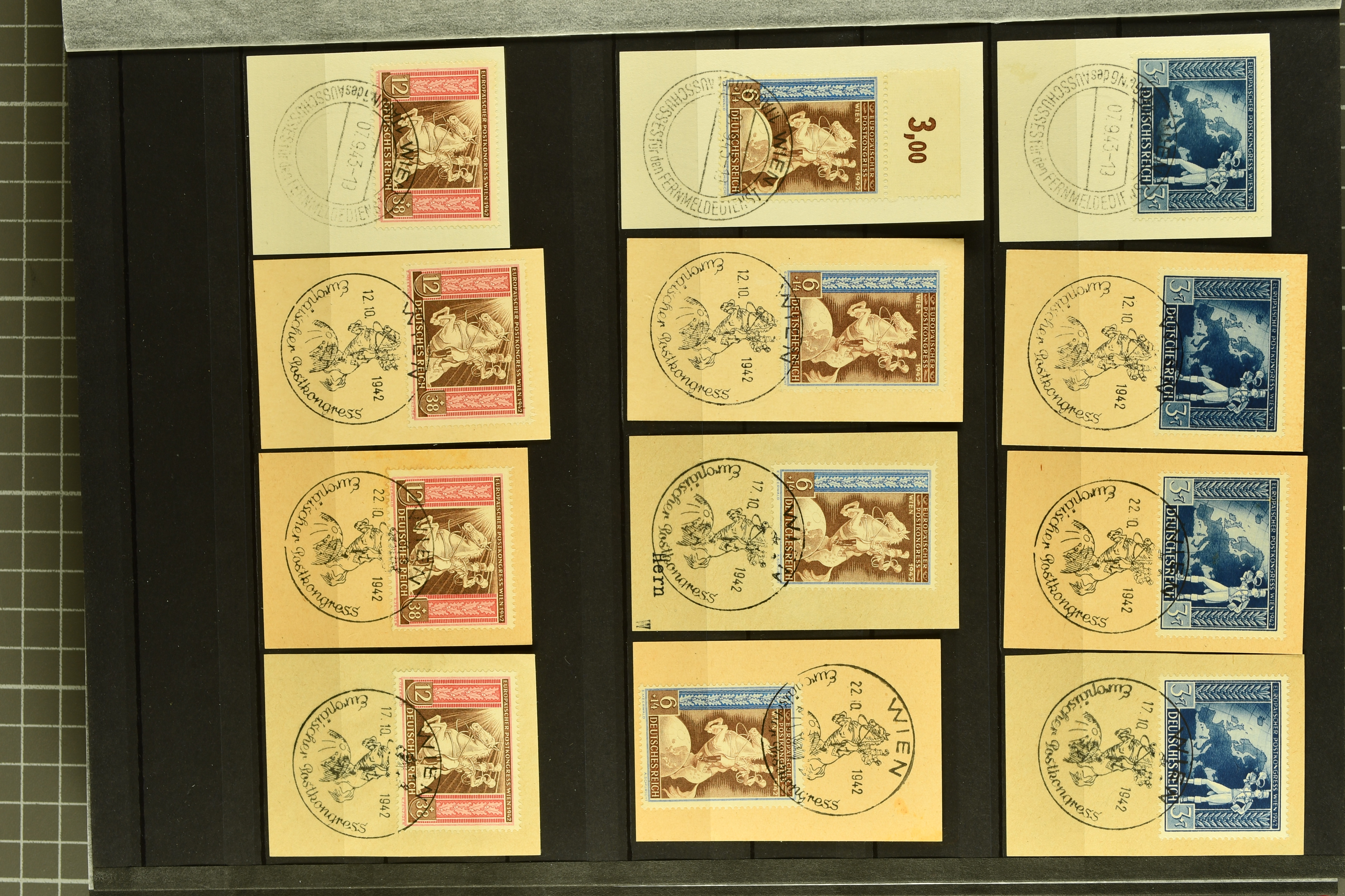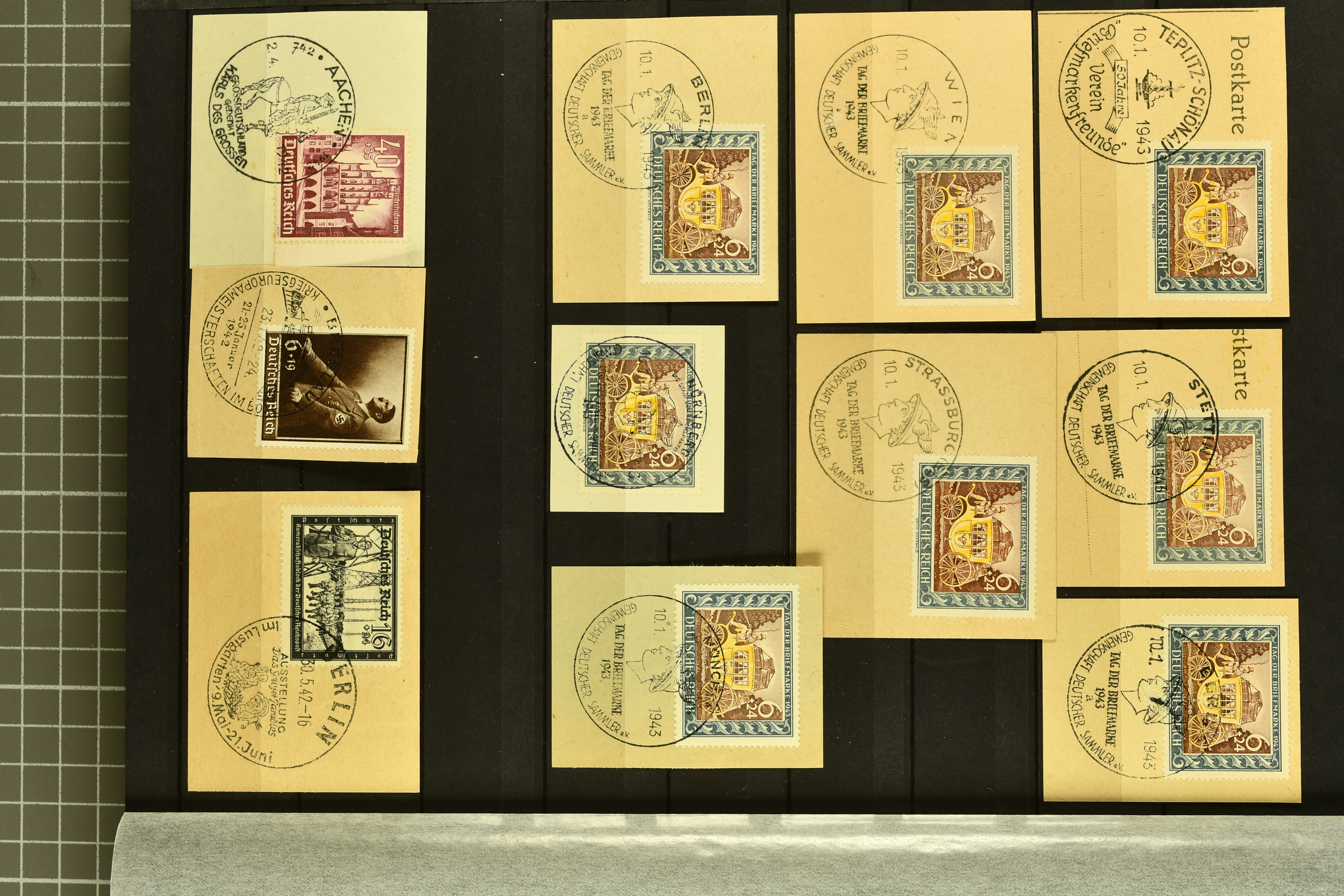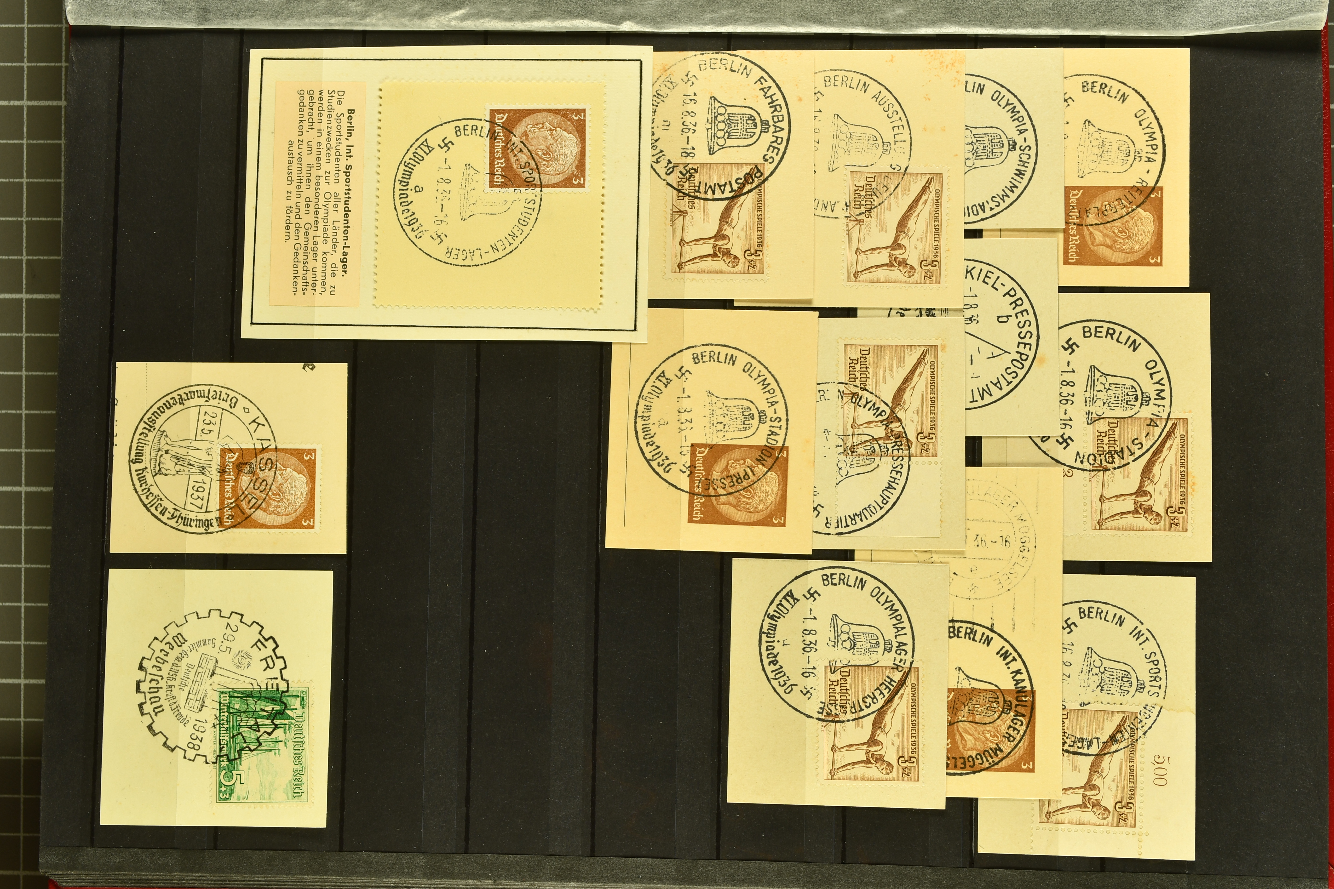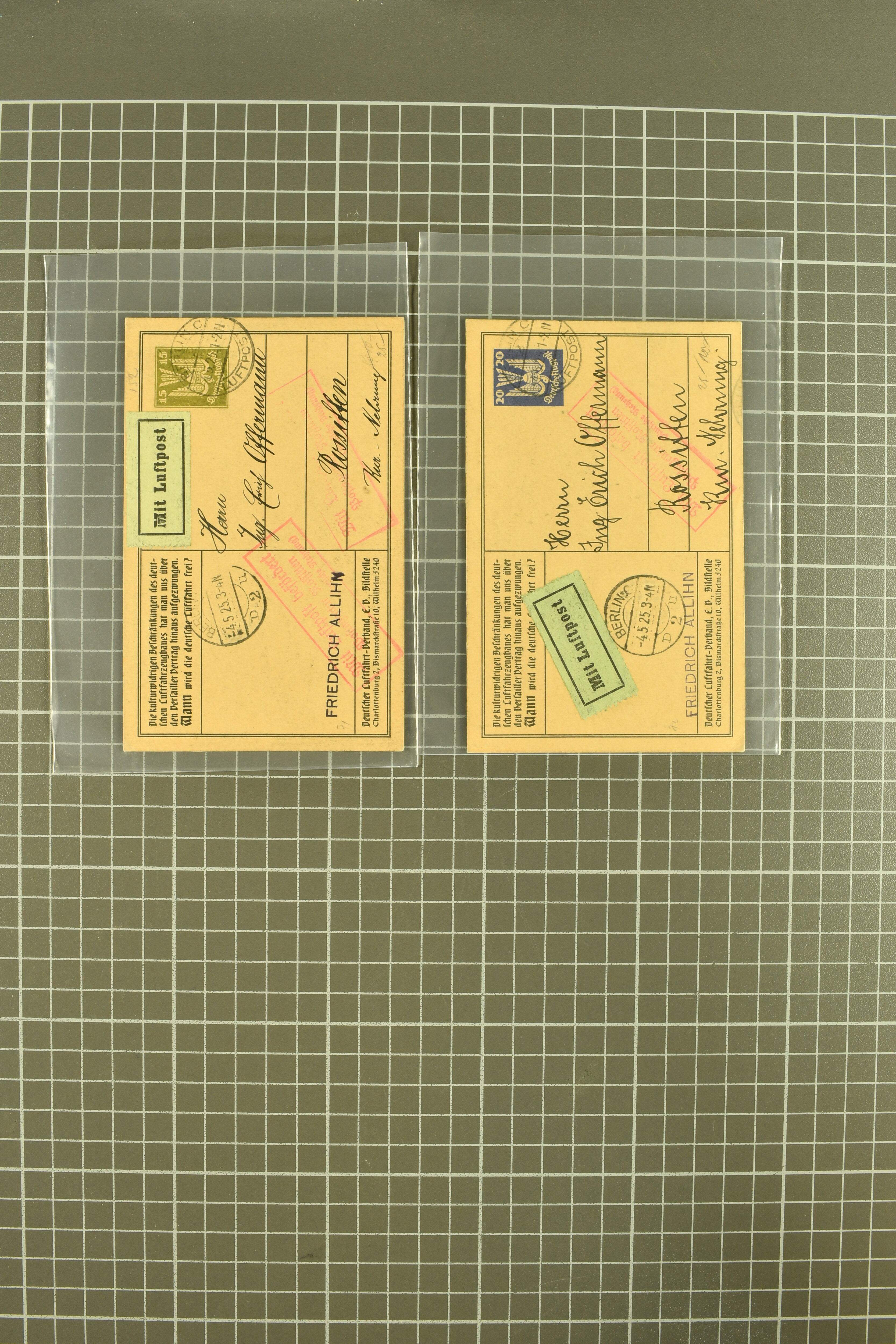 1828 image1890/1990ca.: Konvolut – kleine Schachtel mit vielfältigem Belegmaterial, darunter mehrere interessante Infla-Briefe. Briefalbum mit Karten und Briefen, u. a. mit 'Gebühr bezahlt'-Vermerken, älteren Ansichtskarten, Posthörnchenaufdrucken auf Belegen sowie Satzbriefen. Weiteres Briefalbum mit moderneren Satzbriefen. Sammlung Bundesrepublik 1949–1970, bis auf zwei Werte des Briefmarken-Jubiläumssatzes von 1949 komplett, im Vordruckalbum. Einsteckbuch mit Kehrdrucken und Zwischenstegen des Deutschen Reiches, gestempelt. Jumbo-Album mit überwiegend Briefstücken, meist mit Sonderstempeln des Deutschen Reiches, dazu etwas besetzte Gebiete; vielfältiges Material, oftmals bessere Werte, darunter drei Olympiadeblocks. Schliesslich ein Album mit gemischtem Material aus verschiedenen deutschen Sammelgebieten, teils mit Spezialitäten wie Randstücken oder Abarten; unterschiedlich erhalten. Interessanter originaler Bestand (Image 1) (Image 2) (Image 3) (Image 4) (Image 5) (Image 6) (Image 7) (Image 8) (Image 9) (Image 10) (Image 11) (Image 12) (Image 13) (Image 14) (Image 15) (Image 16) (Image 17) (Image 18) (Image 19) (Image 20) (Image 21) (Image 22) (Image 23) (Image 24) (Image 25) (Image 26) (Image 27) (Image 28) (Image 29) (Image 30) (Image 31) (Image 32) (Image 33) (Image 34) (Image 35) (Image 36) (Image 37) (Image 38) (Image 39) (Image 40) (Image 41) (Image 42) (Image 43) (Image 44) (Image 45) (Image 46) (Image 47) (Image 48) (Image 49) (Image 50)