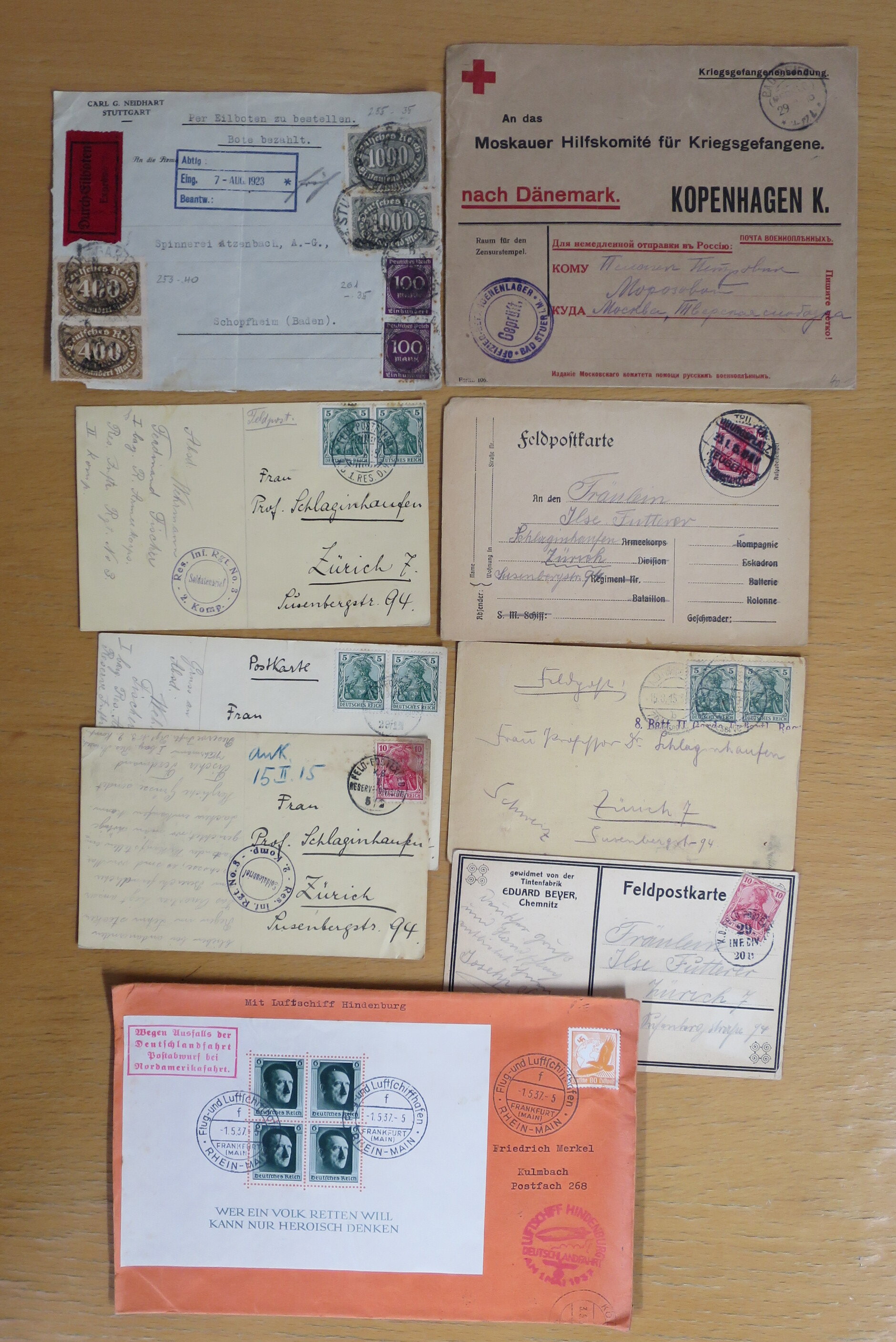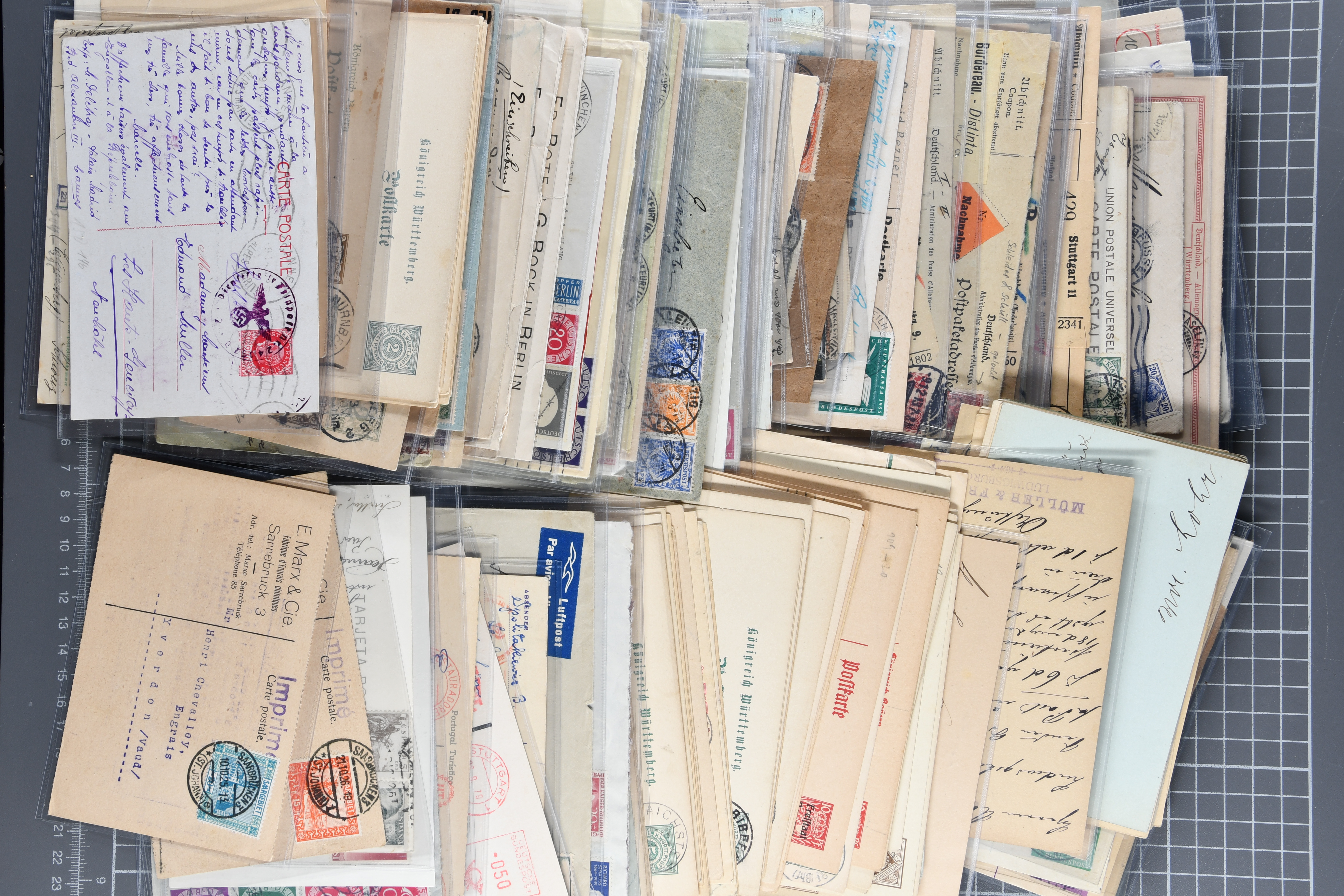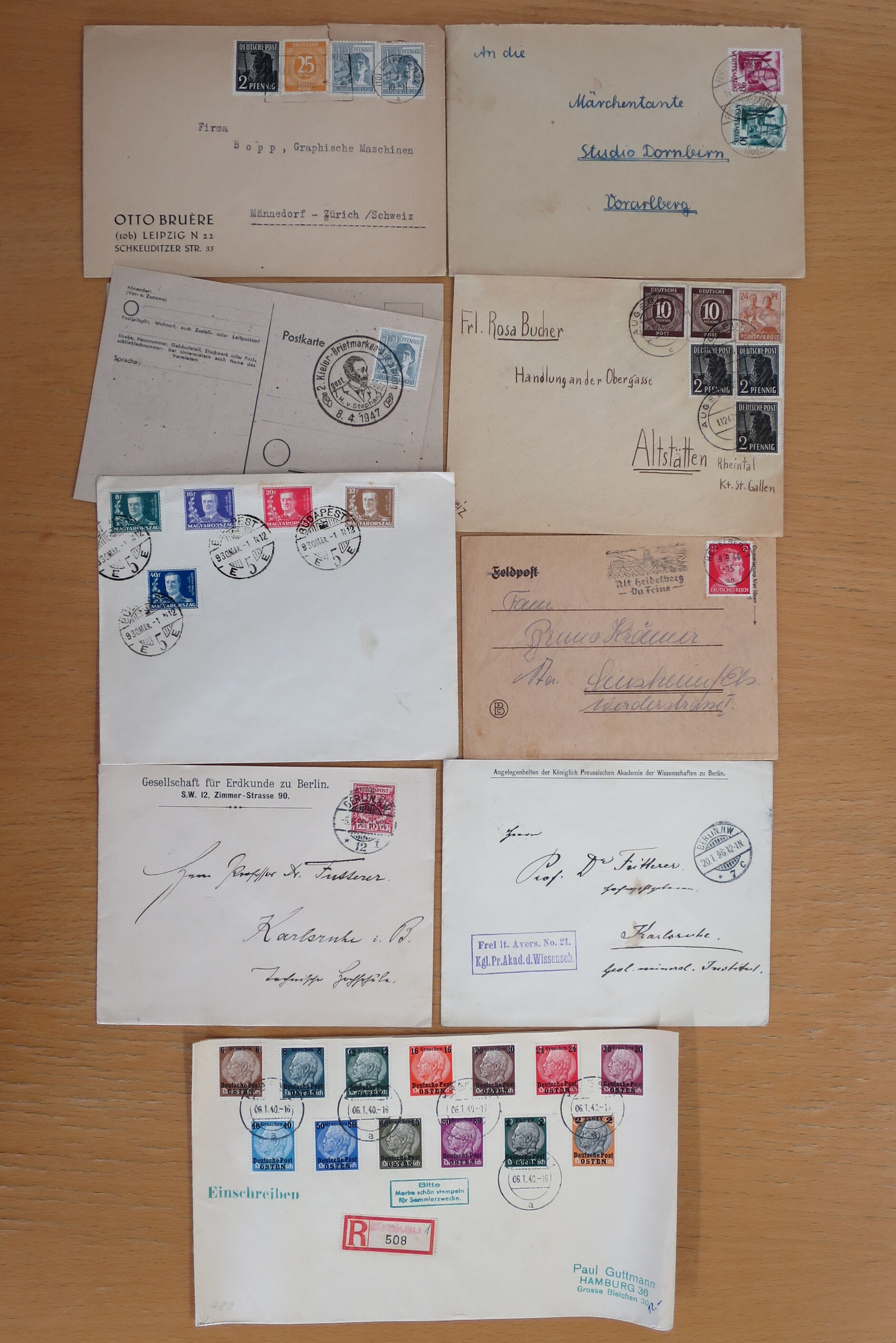 1831 cover image1851/1960ca: Vielfältiger Briefposten ab Vorphilatelie, dabei viele Ganzsachen, Inflation, 3. Reich, u.a. Propagandakarten, etliche besetzte Gebiete, 2. Weltkrieg, wie Generalgouvernement und Böhmen und Mähren, Zensur, Allgemeine Besetzungsausgabe, Gebühr bezahlt usw. Oft in die Schweiz gelaufen. Dabei Kiautschou-Vorläufer-Karten-Brief 1899m eingeschrieben mit R-Zettel (Einfeld 3I) und 4 als Zusatzfrankatur hinzugeklebten Marken von der Deutschen Post in China, Insgesamt ca. 320 Belege (Image 1) (Image 2) (Image 3) (Image 4) (Image 5) (Image 6) (Image 7) (Image 8)