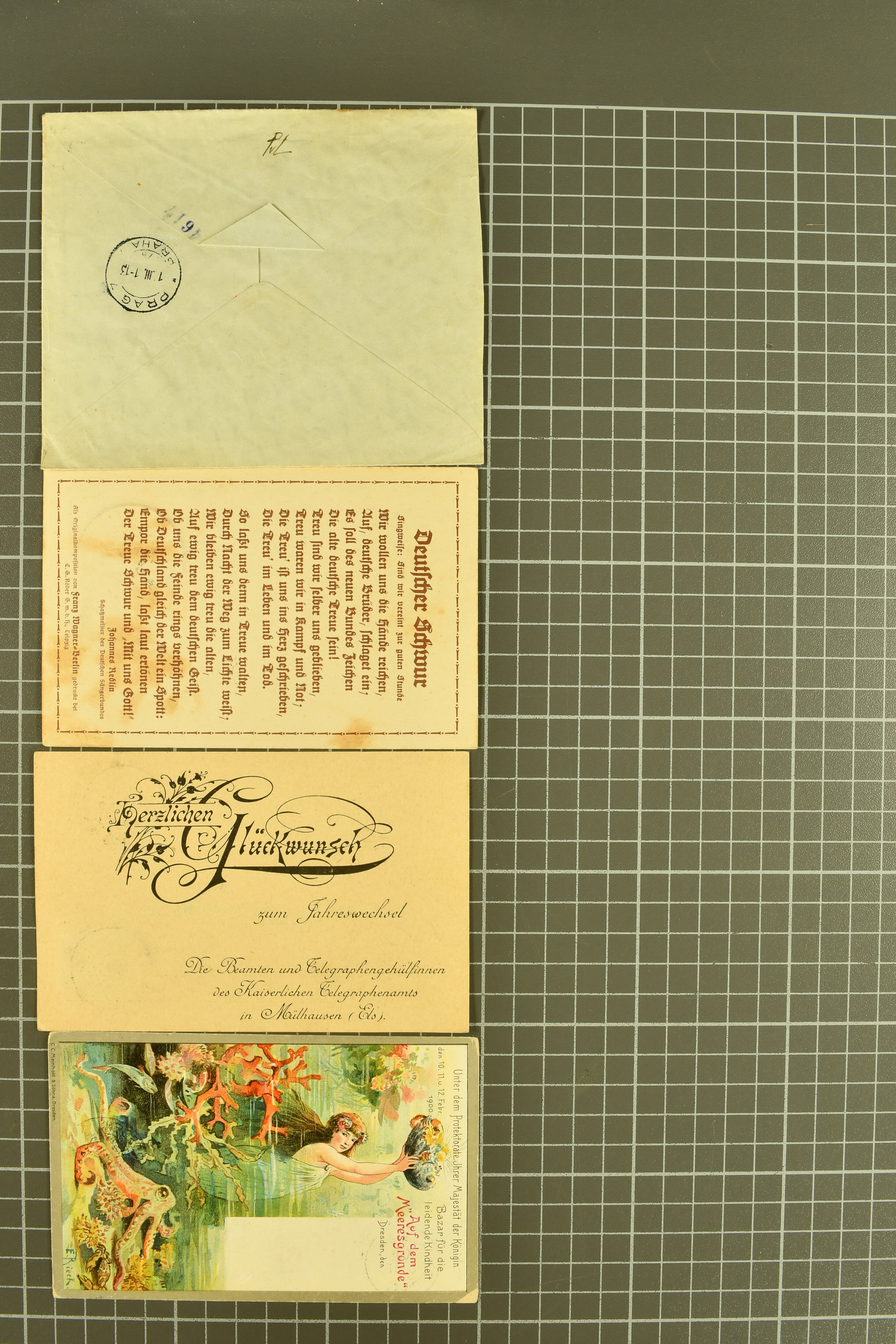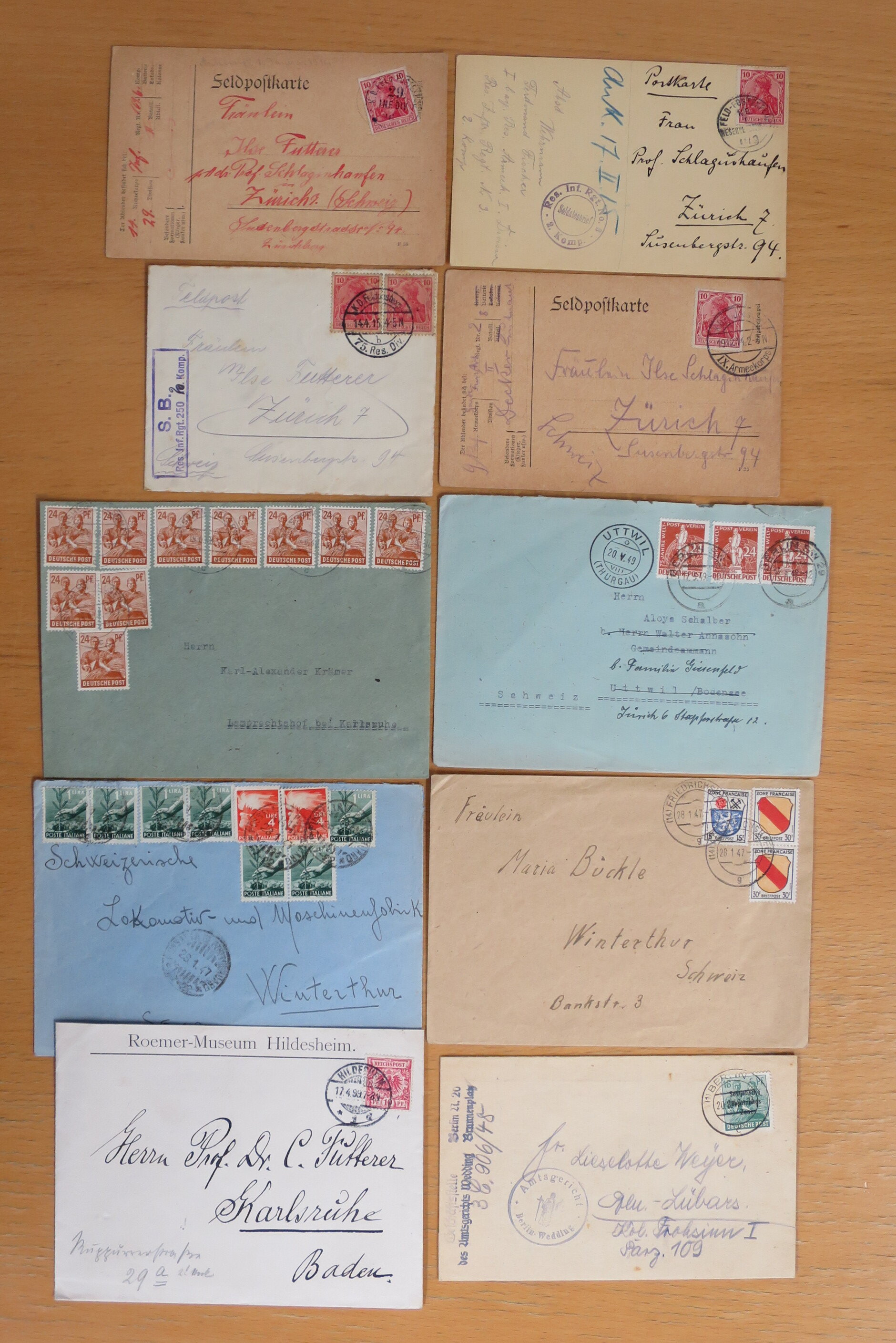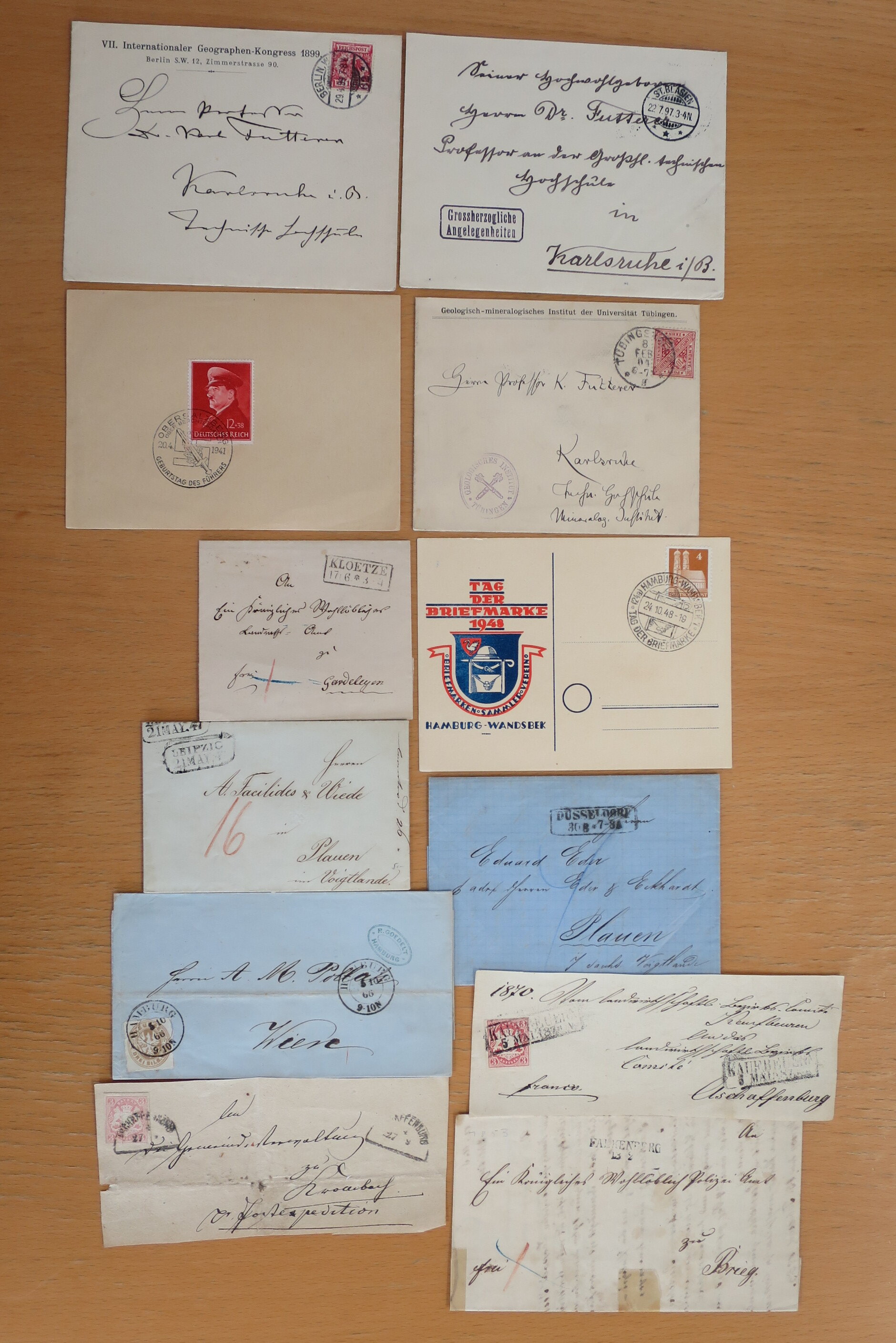 1831 cover image1851/1960ca: Vielfältiger Briefposten ab Vorphilatelie, dabei viele Ganzsachen, Inflation, 3. Reich, u.a. Propagandakarten, etliche besetzte Gebiete, 2. Weltkrieg, wie Generalgouvernement und Böhmen und Mähren, Zensur, Allgemeine Besetzungsausgabe, Gebühr bezahlt usw. Oft in die Schweiz gelaufen. Dabei Kiautschou-Vorläufer-Karten-Brief 1899m eingeschrieben mit R-Zettel (Einfeld 3I) und 4 als Zusatzfrankatur hinzugeklebten Marken von der Deutschen Post in China, Insgesamt ca. 320 Belege (Image 1) (Image 2) (Image 3) (Image 4) (Image 5) (Image 6) (Image 7) (Image 8)