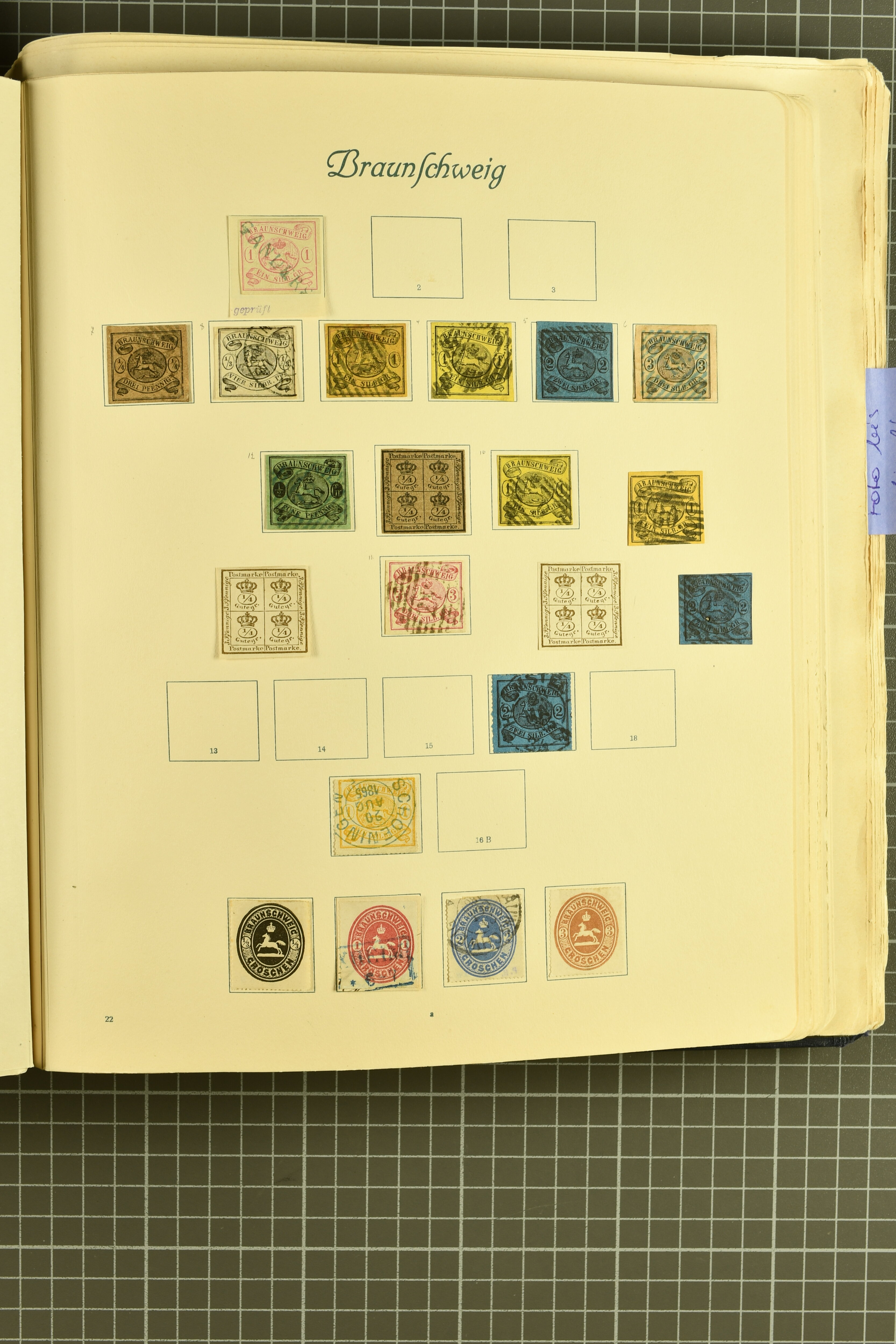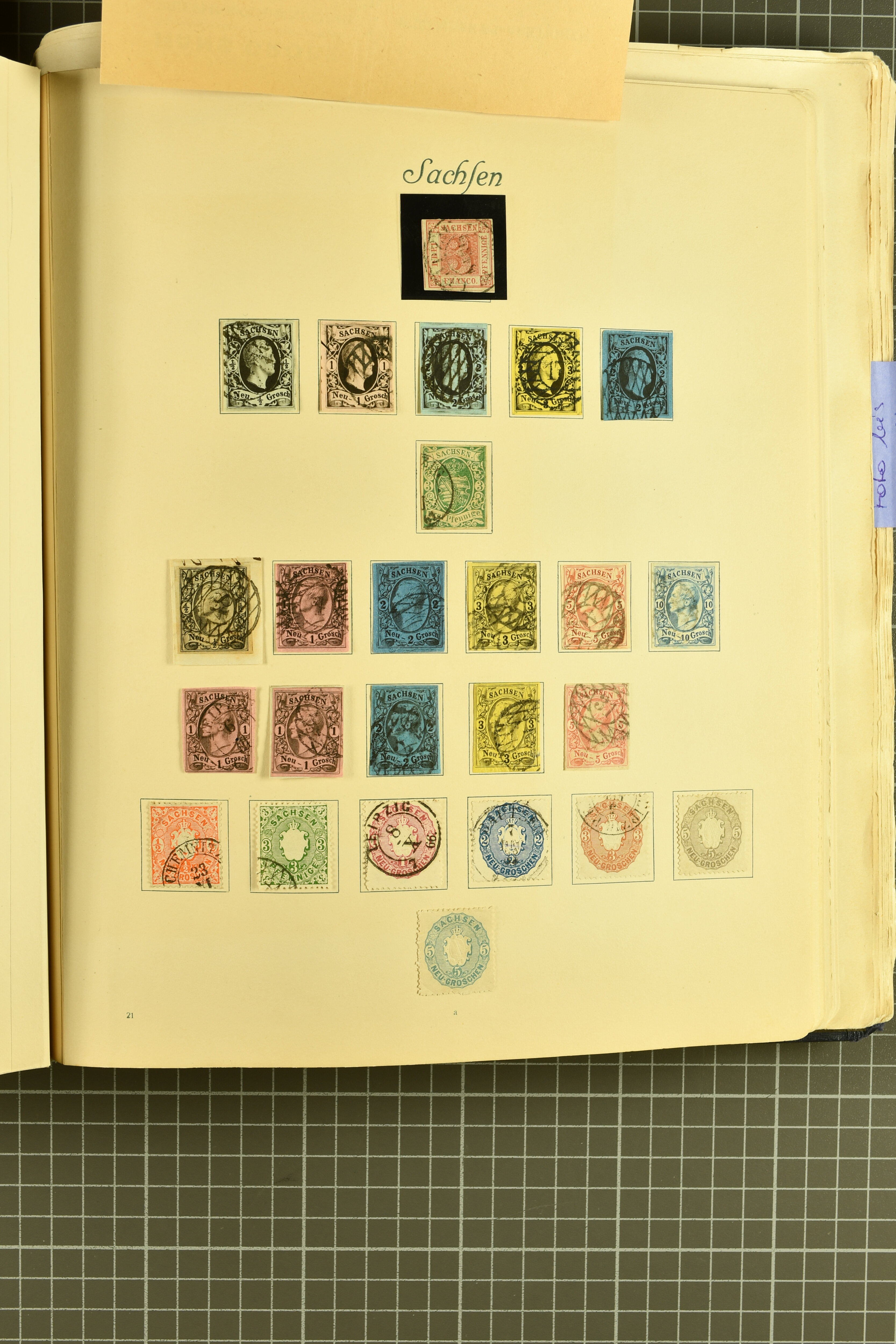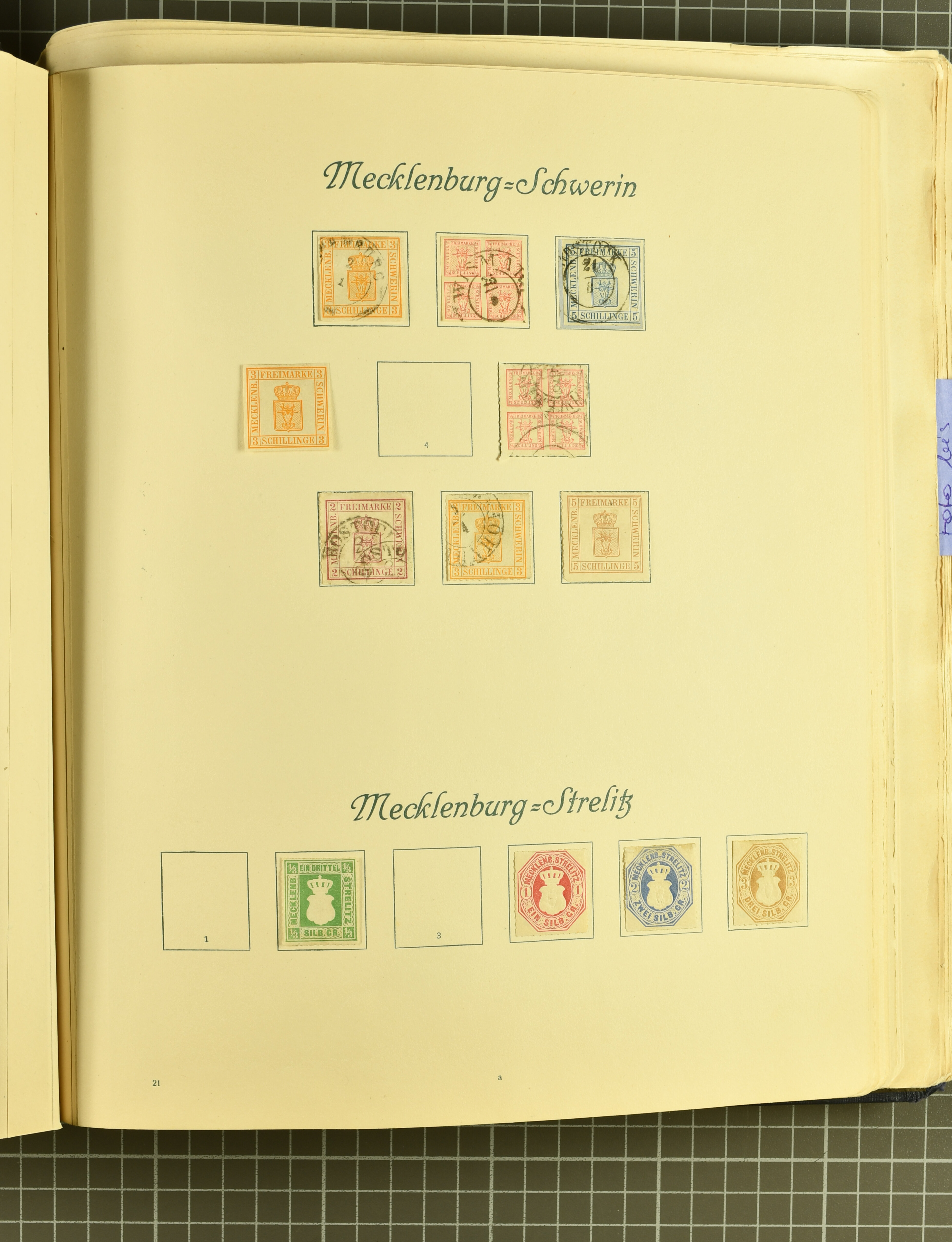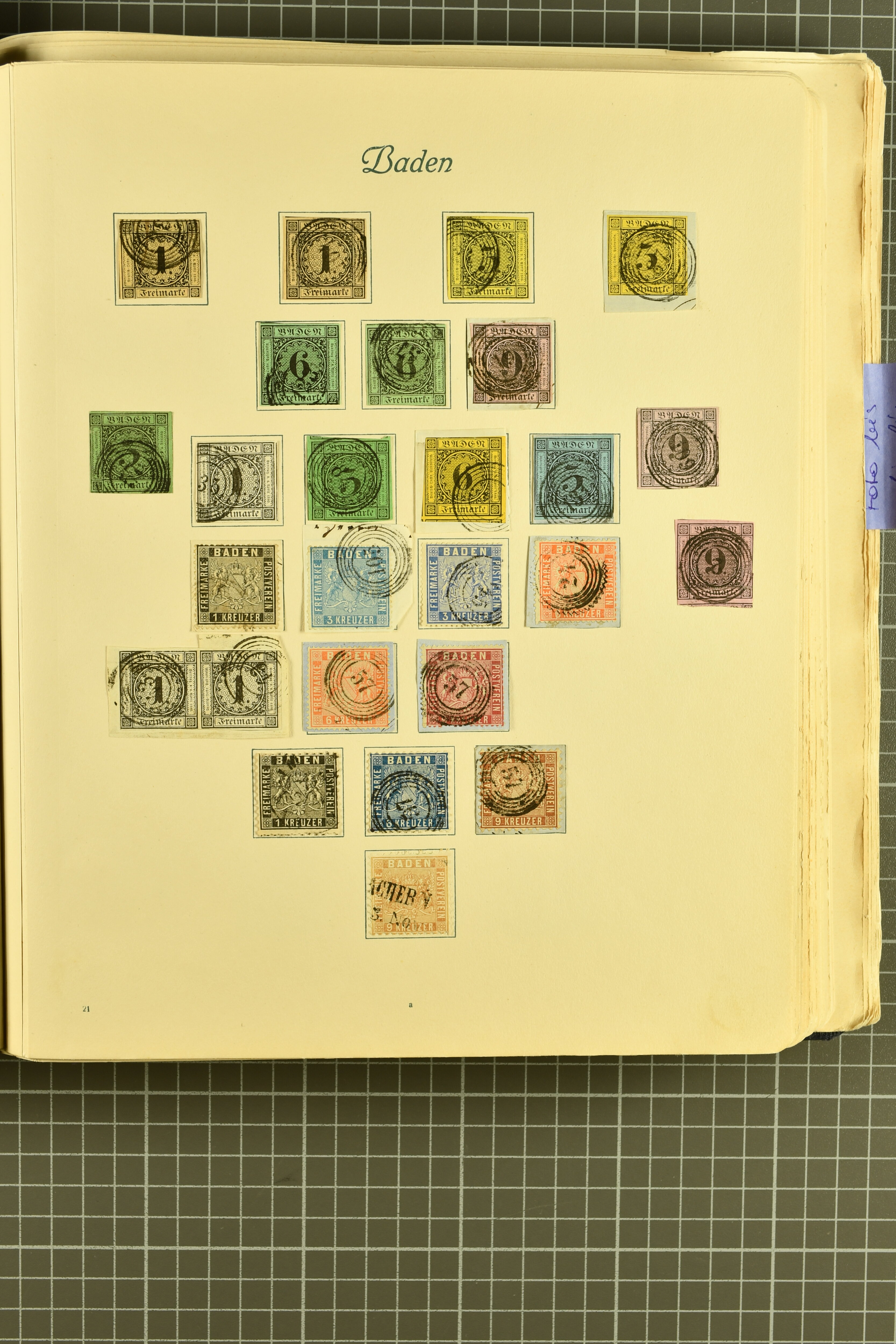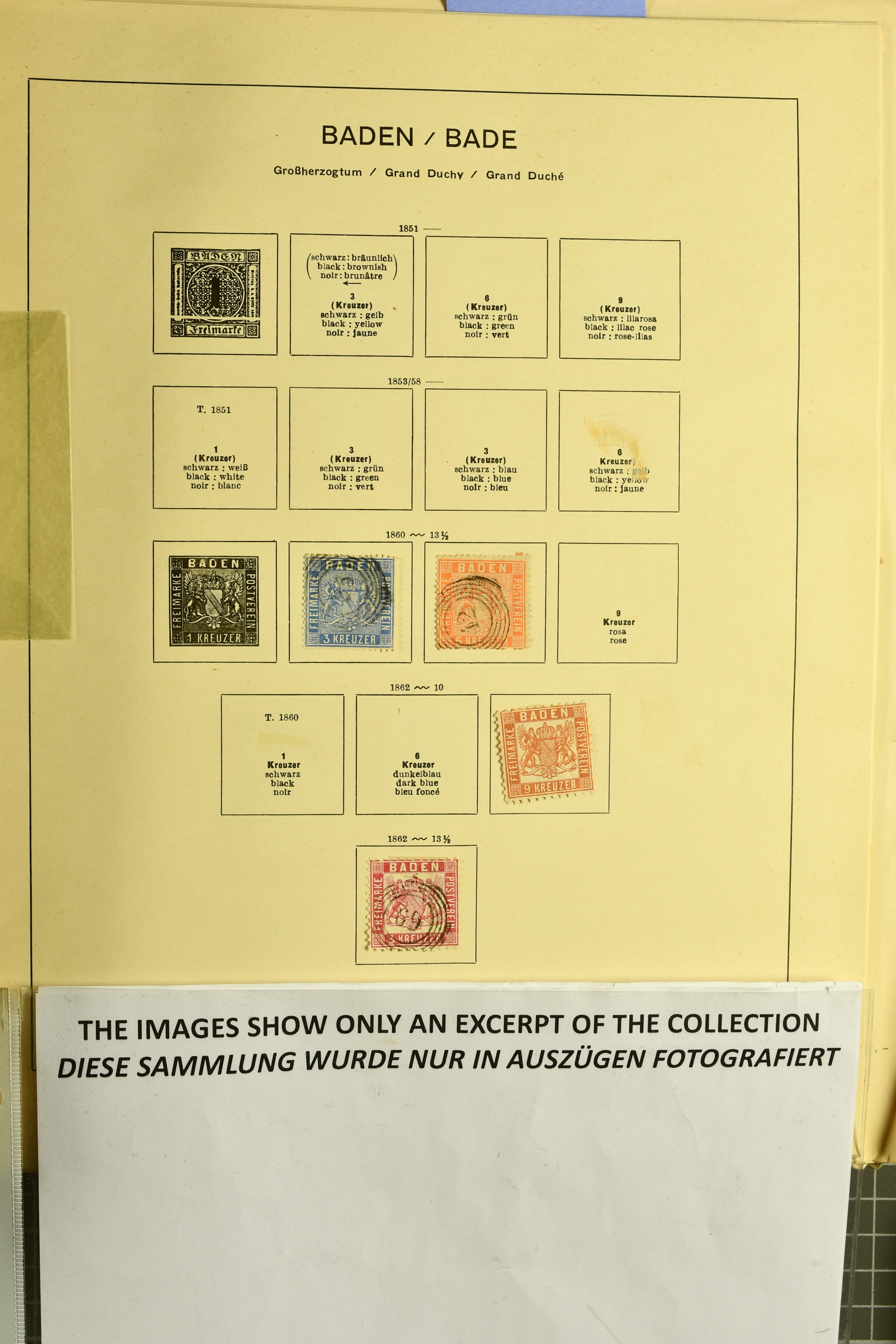 1694 imageSammlungen & Posten 1849/67: Ansprechende Sammlung 1000 vorab gest. Marken versch. altdeutscher Gebiete, überkomplett gesammelt, dabei Baden inkl. Landpost; Bayern mit Quadratausgaben bis zu 18 Kreuzern (3), Wappen ungez. bis 18 Kreuzer; Braunschweig 1852 1 Sgr. karmin; Bremen 3 Gr. schwarz, 1862 5 Gr. schwarz & 1867 3 Gr. schwarz; Hamburg ab 1859; Hannover, Lübeck; Mecklenburg-Schwerin mit beiden Wappenausgaben; NDP mit Elsass-Lothringen; Oldenburg ab 1852 mit 1861 1-3 Gr.; Sachsen mit Sachsendreier, oben lupenrandig, an zwei Seiten das sächsische Liniensystem erkennbar, undeutlicher Stempel LEIPZIG, Attest Grobe (1948), 1851 3 Pf. späte Auflage, Friedrich-August & Johann komplett bis 10 Ngr.; Holstein 1850 1 S. ungebraucht; Thurn & Taxis im üblichen Taxisschnitt bis 30 Kr.; Württemberg 1851 bis 18 Kr. sowie die Wappenausgaben alle drei 18 Kreuzer. Das Lot enthält weiterhin eine Basissammlung Deutsches Reich 1871/1931 ab den Kleinen Schilden mit der 18 Kreuzer. Die Qualität generell gut mit attraktiver Erscheinung, sollte besichtigt werden. Mi = € 22'200 nur für die besseren Werte (Image 1) (Image 2) (Image 3) (Image 4) (Image 5) (Image 6) (Image 7) (Image 8) (Image 9) (Image 10) (Image 11) (Image 12) (Image 13) (Image 14) (Image 15) (Image 16) (Image 17) (Image 18) (Image 19) (Image 20) (Image 21) (Image 22) (Image 23) (Image 24) (Image 25) (Image 26) (Image 27) (Image 28) (Image 29) (Image 30) (Image 31) (Image 32) (Image 33) (Image 34) (Image 35) (Image 36) (Image 37) (Image 38) (Image 39) (Image 40) (Image 41) (Image 42) (Image 43) (Image 44) (Image 45) (Image 46) (Image 47) (Image 48) (Image 49) (Image 50)