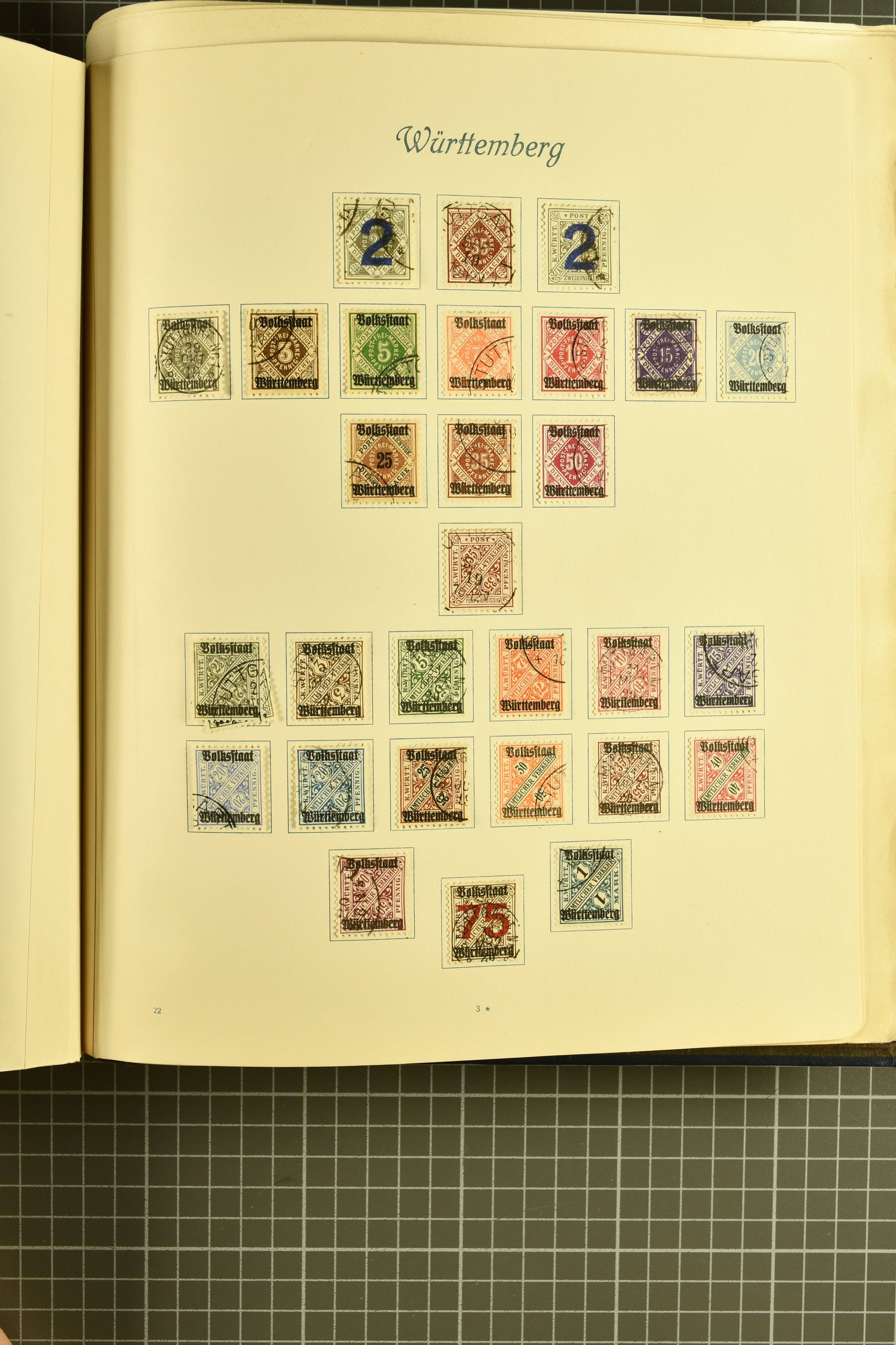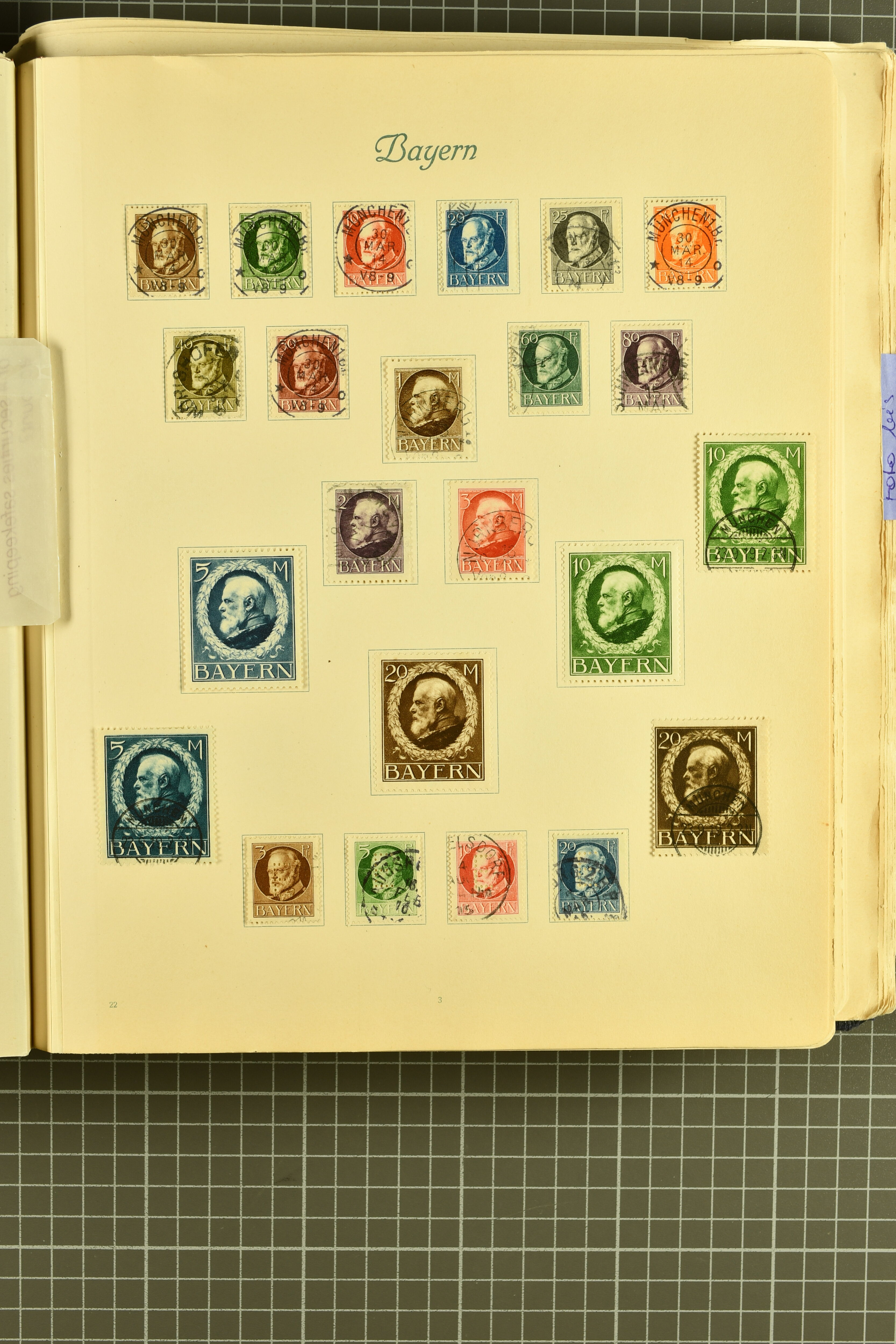 1827 1849/2017: Sammlung Deutschland ab Altdeutschland in 7 KaBe-Vordruckalben gebraucht und ungebraucht, Bayern und Württemberg mit zahlreichen besseren Stücken. Auch das Deutsche Reich ist reichhaltig vertreten, u. a. mit der 5 Mark Reichspost, sämtlichen Zeppelinwerten, dem IPOSTA- sowie dem OSTROPA-Block. Weiterhin Berlin komplett, Währungsgeschädigtenblock ungebraucht und gestempelt (ohne Obligo) und Bundesrepublik gut besetzt, jeweils sauber gestempelt und die neueren Jahre mit Bedarfs-Vollstempel; dazu etwas Besatzungsausgaben, Abstimmungsgebiete, Danzig und Memel. Teilweise unterschiedliche Erhaltung, hoher Katalogwert