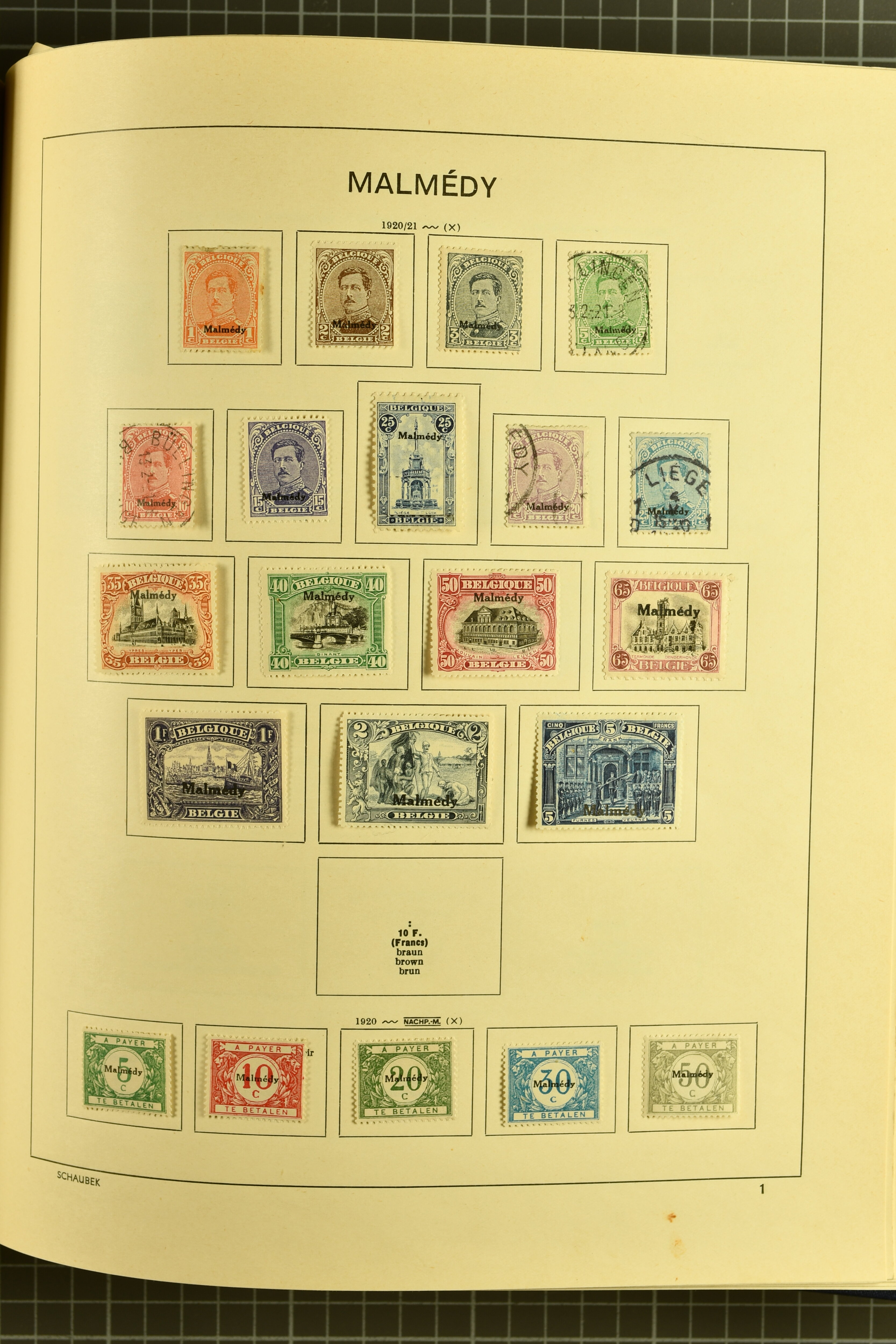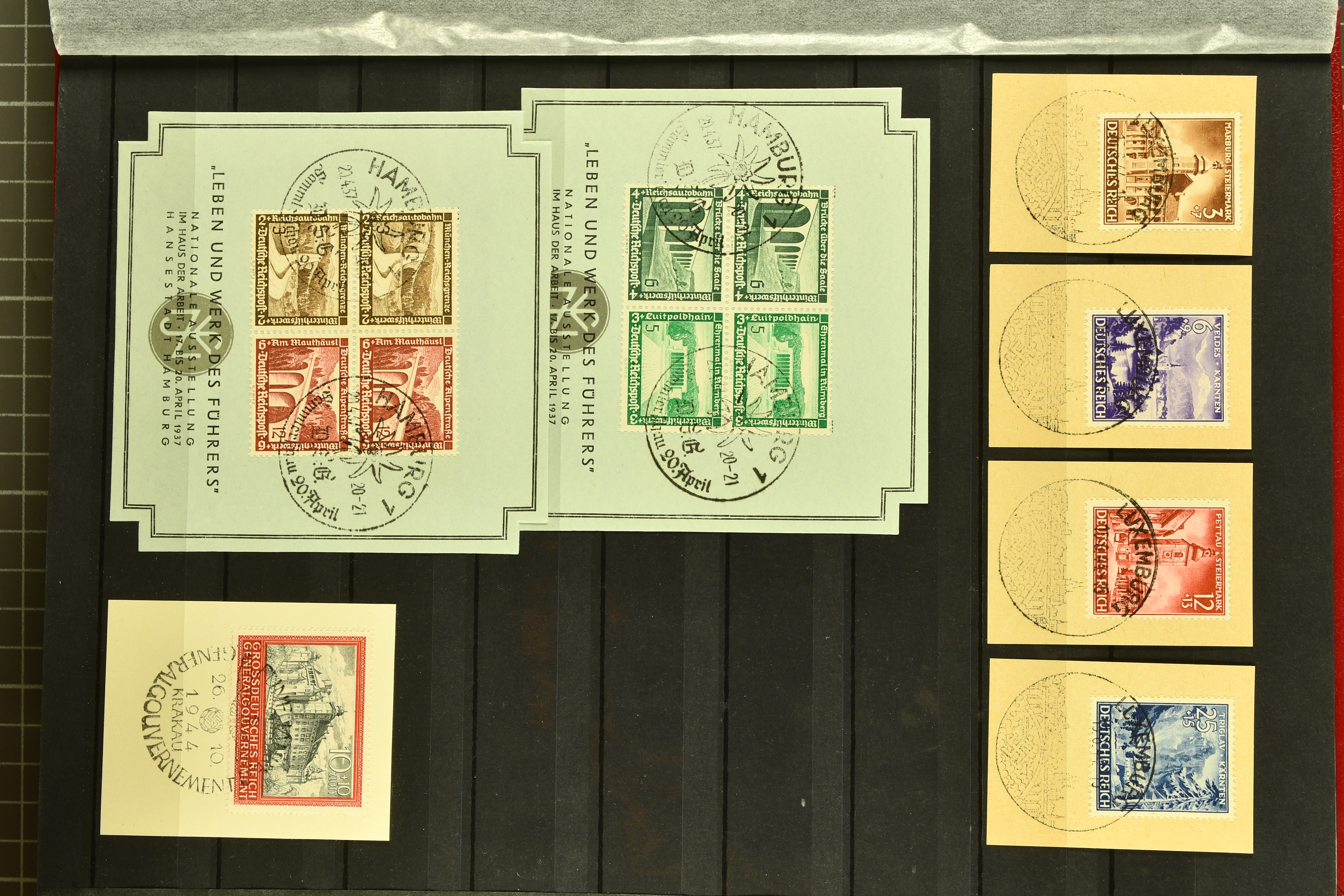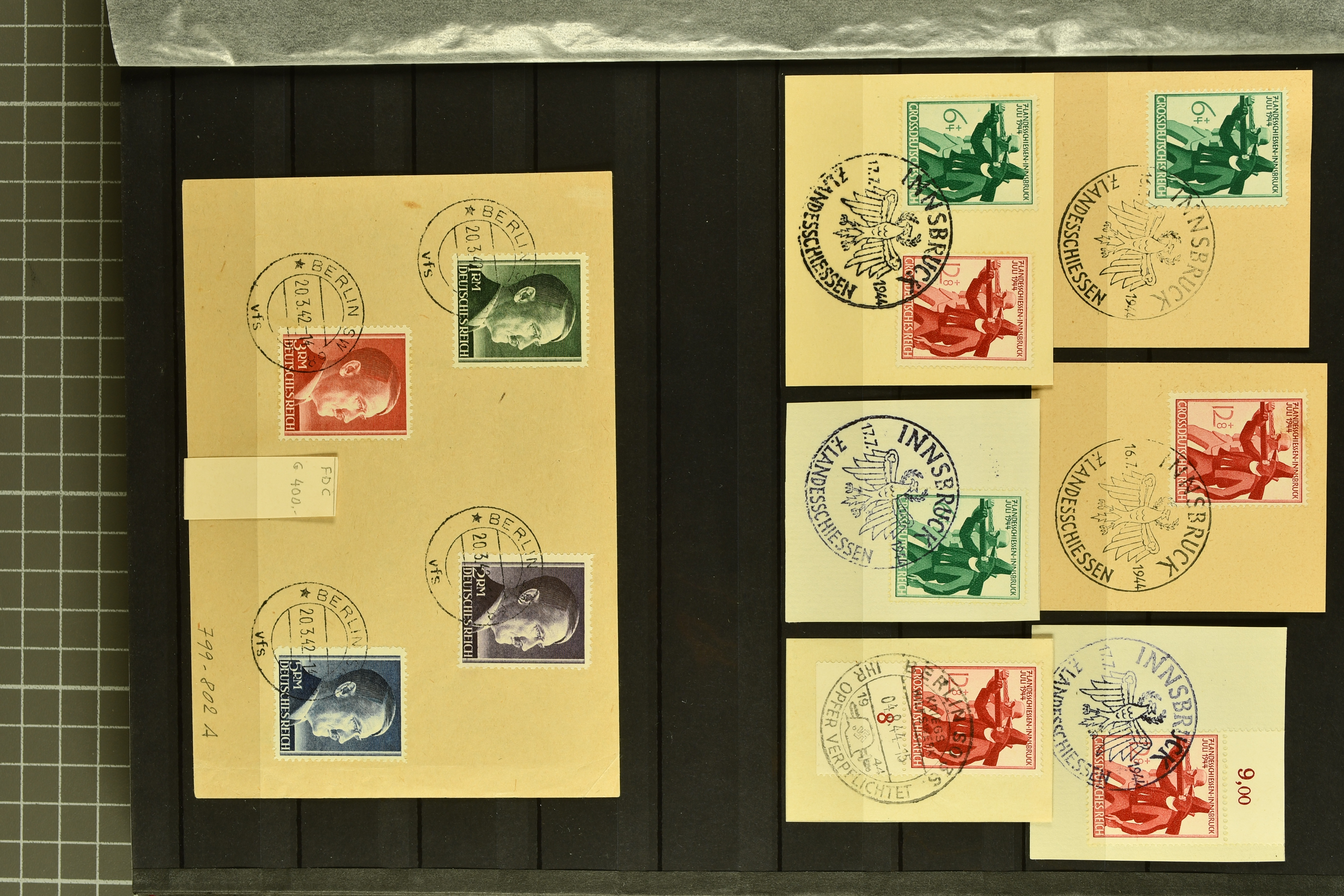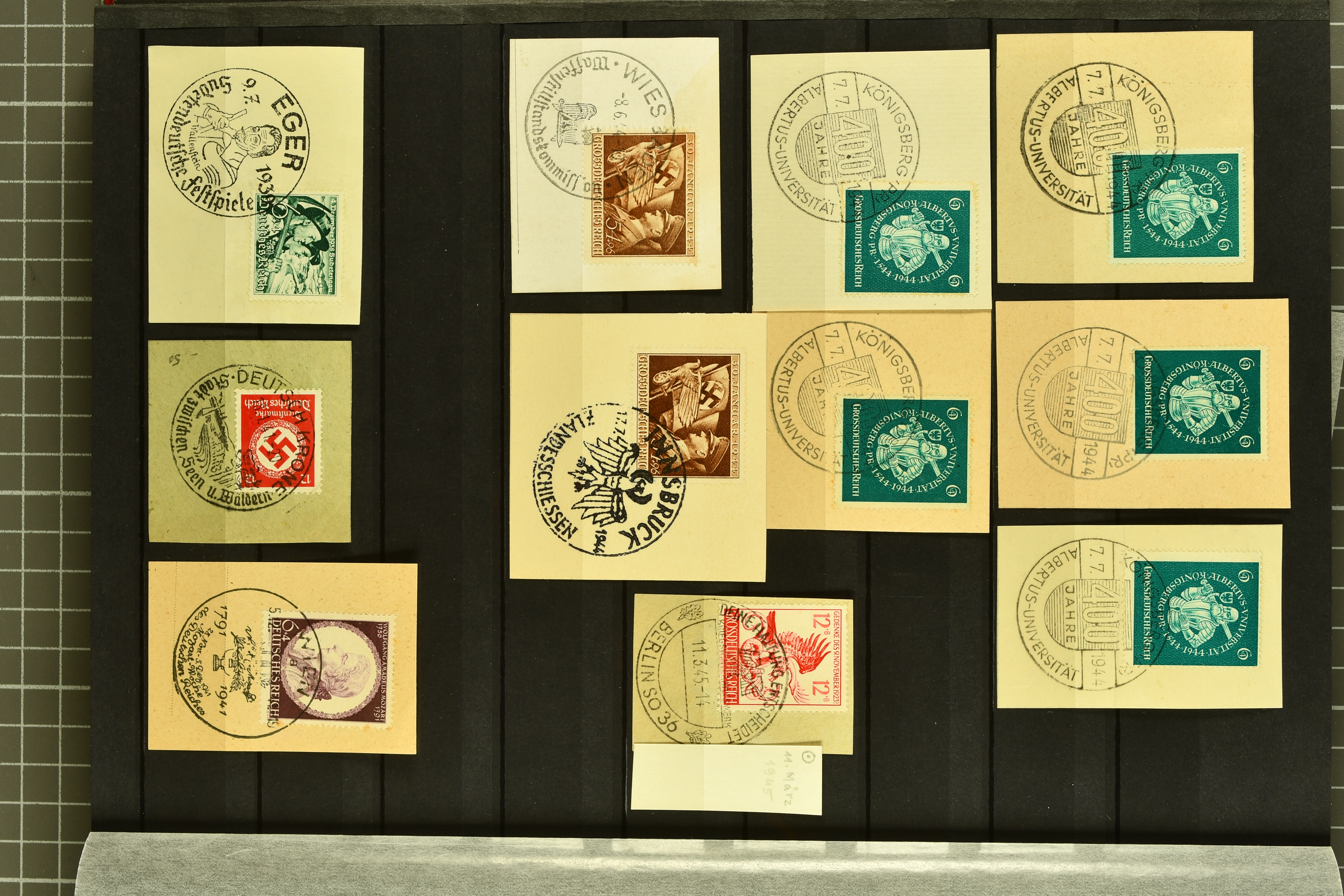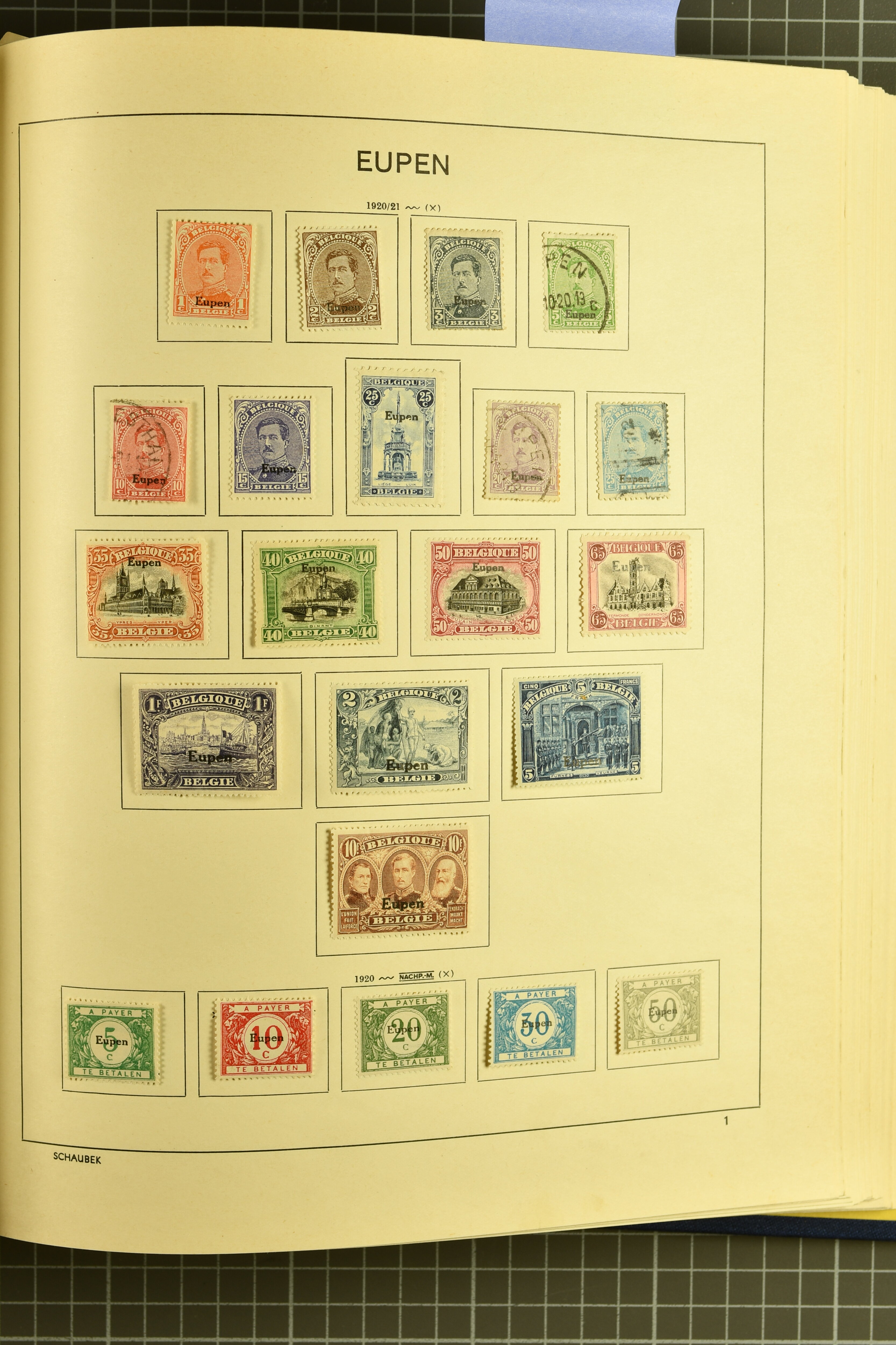 1826 1849/1960ca.: Sammlungskonvolut in insgesamt 9 Vordruckalben, davon 6 Schaubek und 3 mit Vordrucken in Mappen des Noltsch-Verlages, teils mehrfach geführt. Ein Album ab Altdeutschland ist reichhaltig bestückt, wenn auch in sehr unterschiedlicher Qualität. Weitere Bände mit Material in nun zumeist meist besserer Erhaltung vom Deutschen Reich, den Besetzungen und Abstimmungsgebieten, Danzig, Memel sowie den Kolonien. Ein Nachkriegsband mit u. a. mehreren Blättern Bezirkshandstempel (o. Obl.). Jeweils bis zu den mittleren Werte ausgebaut mit vielen Blocks und auch Lokalausgaben. Ungebrauchte Marken zumeist noch in älteren Zellophanhüllen eingepackt; Stichproben ergaben bei Vorkriegsmarken überwiegend Falz, Nachkriegsausgaben, wenn ungebraucht, dann meist postfrisch