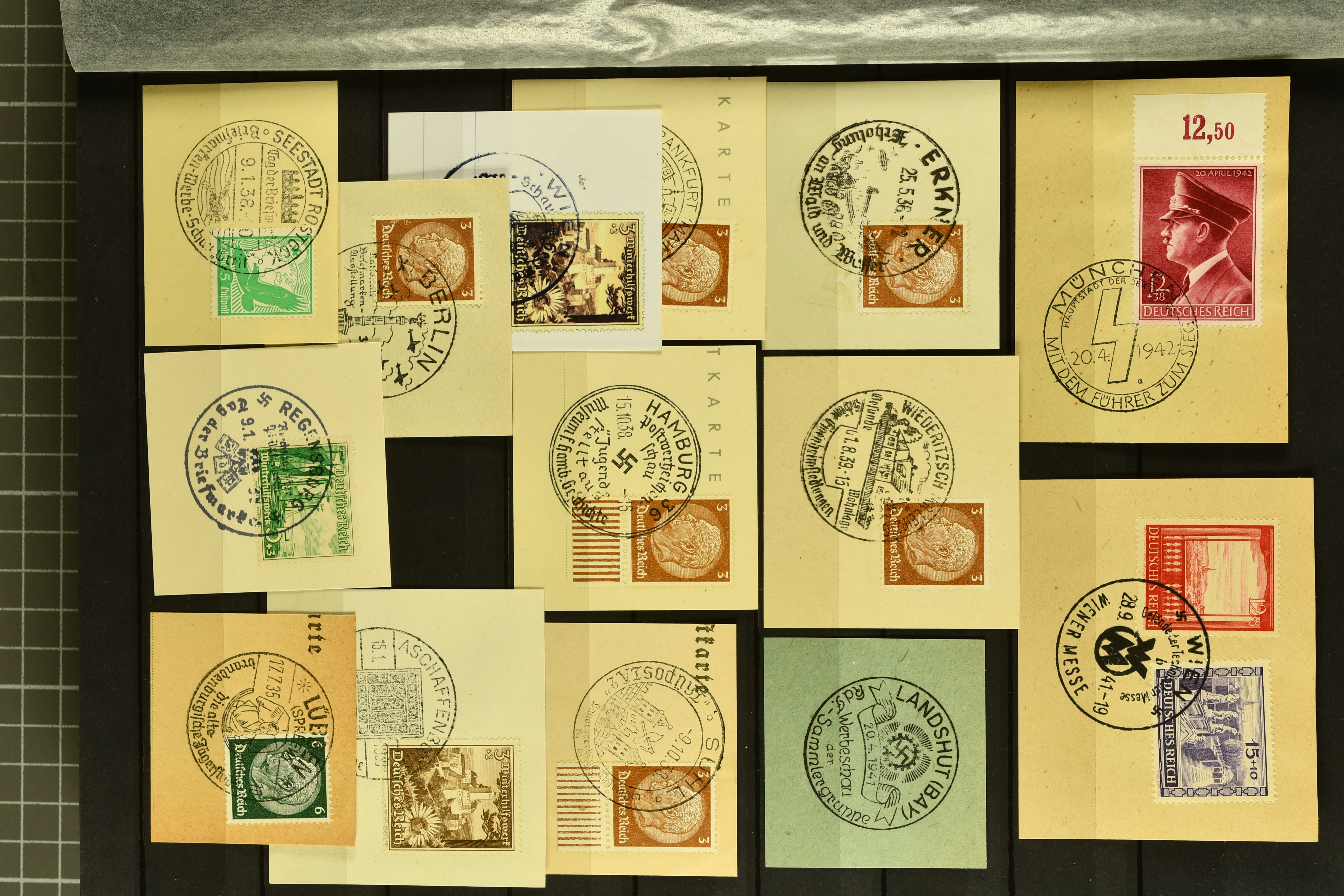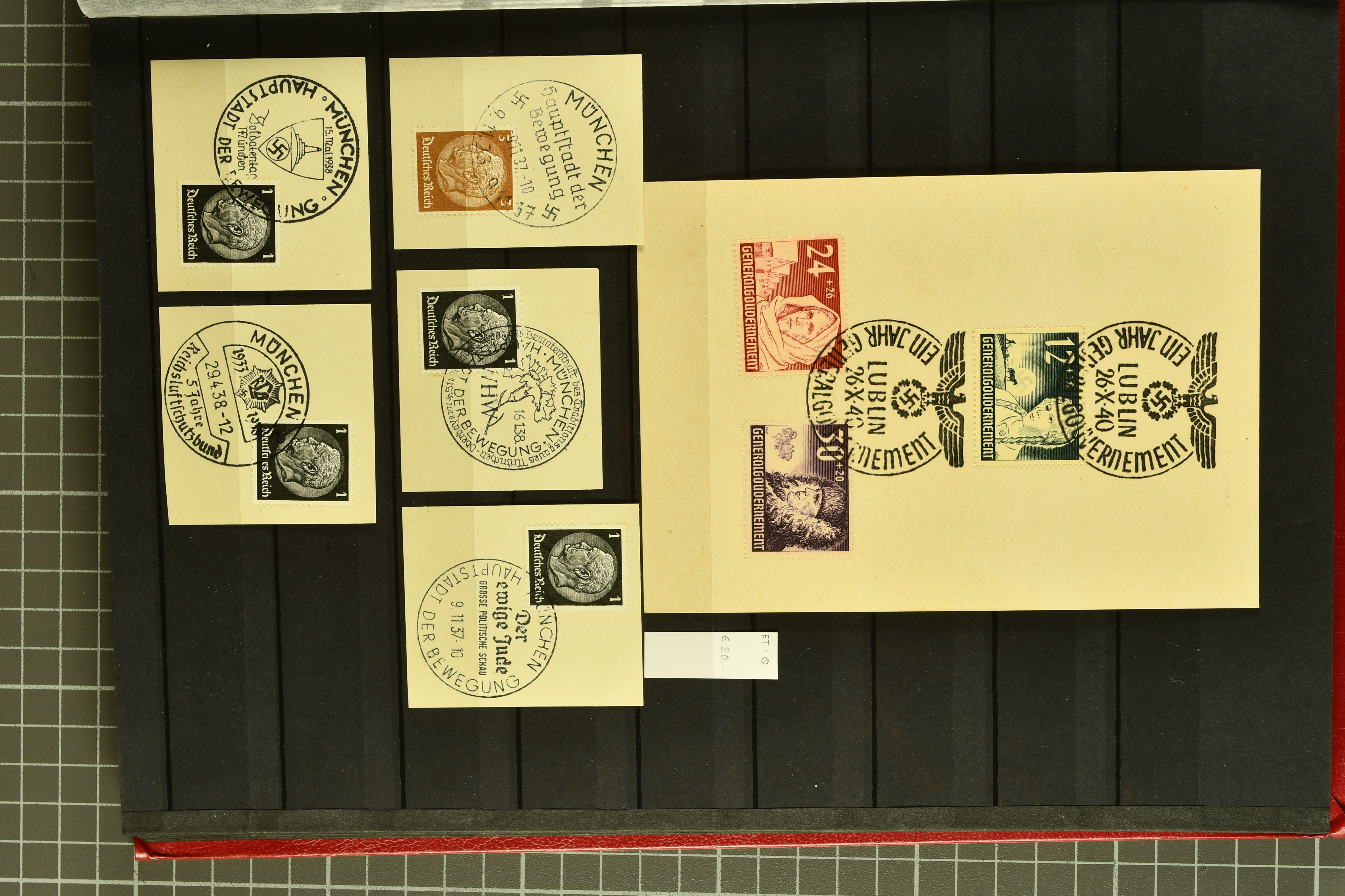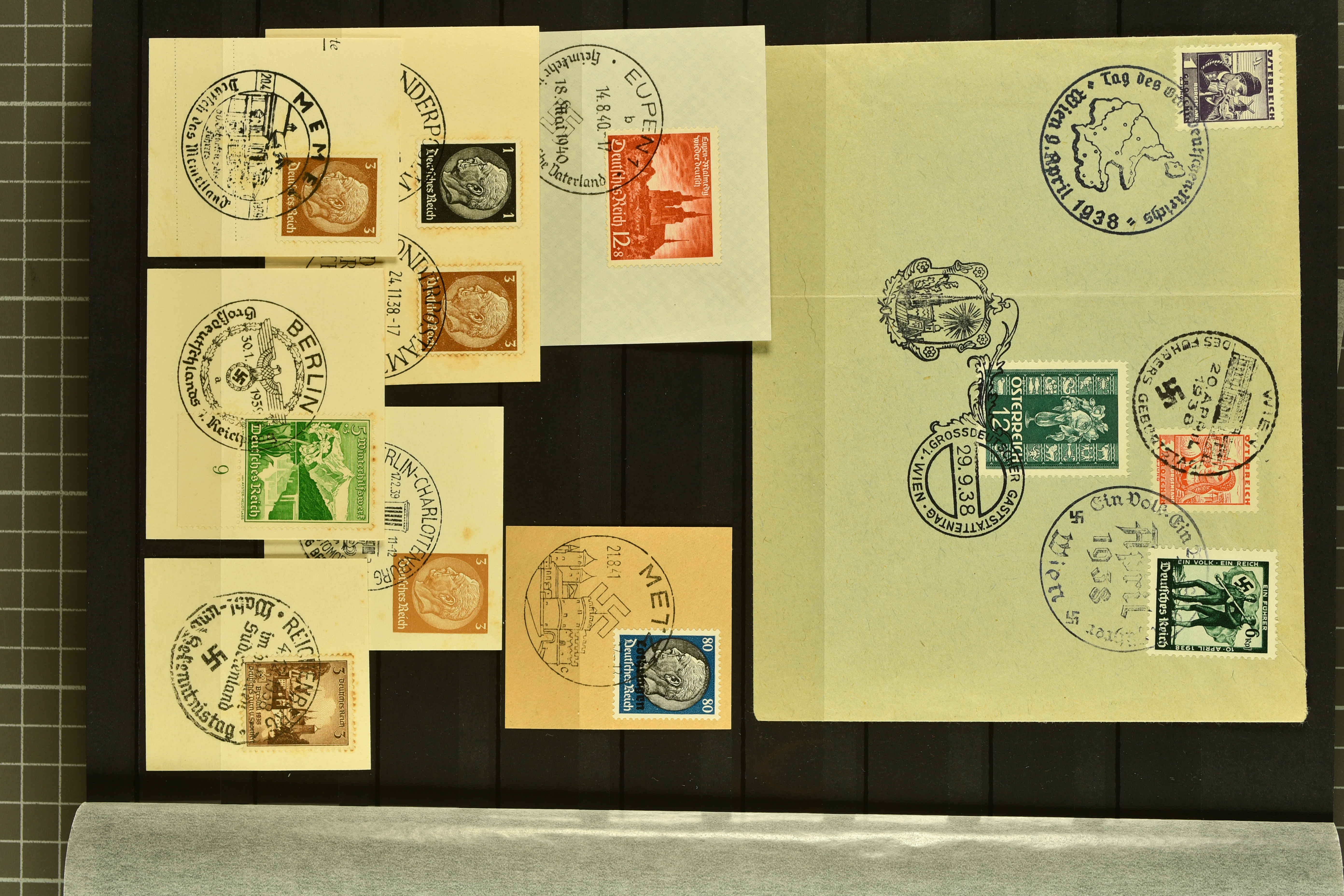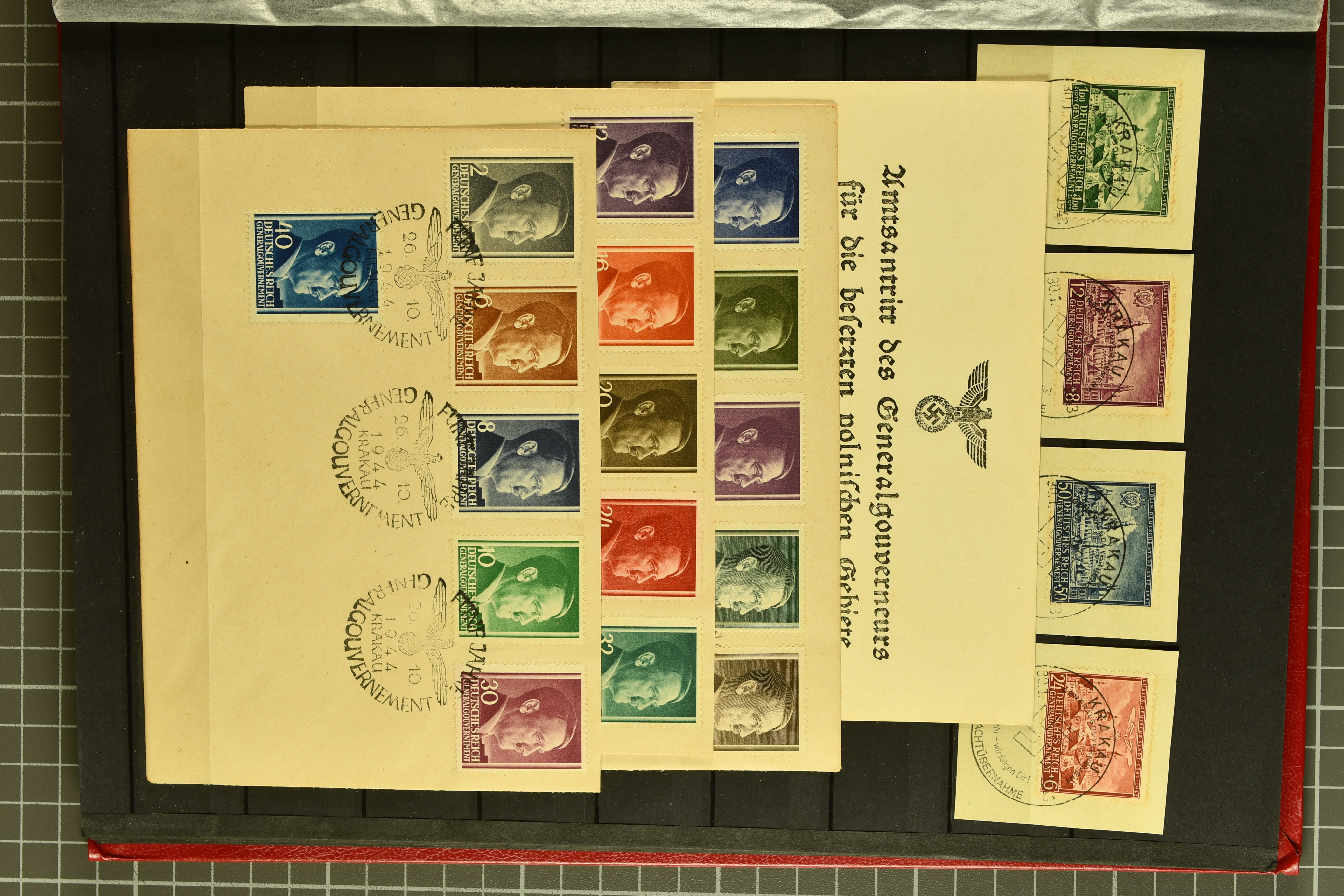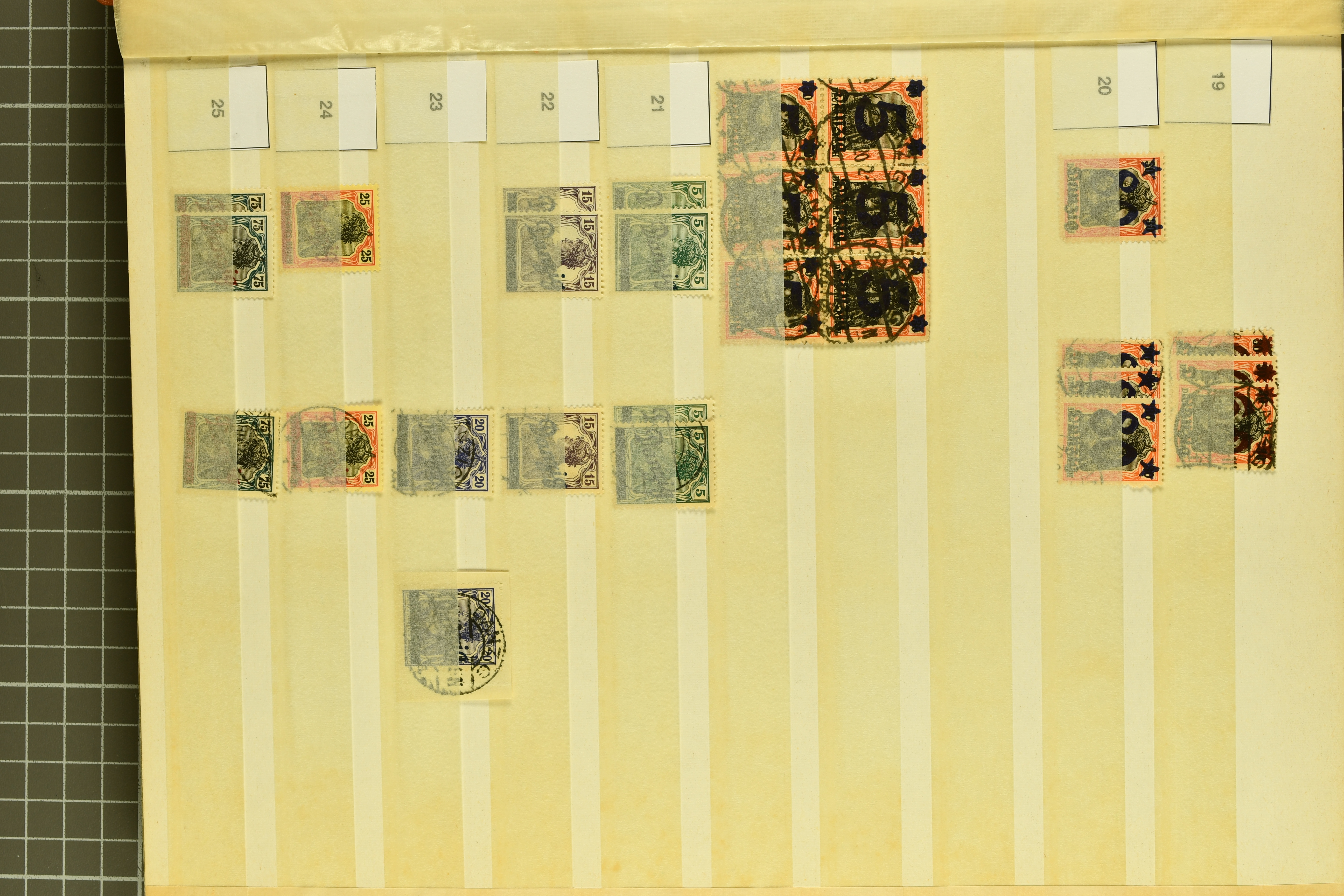 1826 1849/1960ca.: Sammlungskonvolut in insgesamt 9 Vordruckalben, davon 6 Schaubek und 3 mit Vordrucken in Mappen des Noltsch-Verlages, teils mehrfach geführt. Ein Album ab Altdeutschland ist reichhaltig bestückt, wenn auch in sehr unterschiedlicher Qualität. Weitere Bände mit Material in nun zumeist meist besserer Erhaltung vom Deutschen Reich, den Besetzungen und Abstimmungsgebieten, Danzig, Memel sowie den Kolonien. Ein Nachkriegsband mit u. a. mehreren Blättern Bezirkshandstempel (o. Obl.). Jeweils bis zu den mittleren Werte ausgebaut mit vielen Blocks und auch Lokalausgaben. Ungebrauchte Marken zumeist noch in älteren Zellophanhüllen eingepackt; Stichproben ergaben bei Vorkriegsmarken überwiegend Falz, Nachkriegsausgaben, wenn ungebraucht, dann meist postfrisch