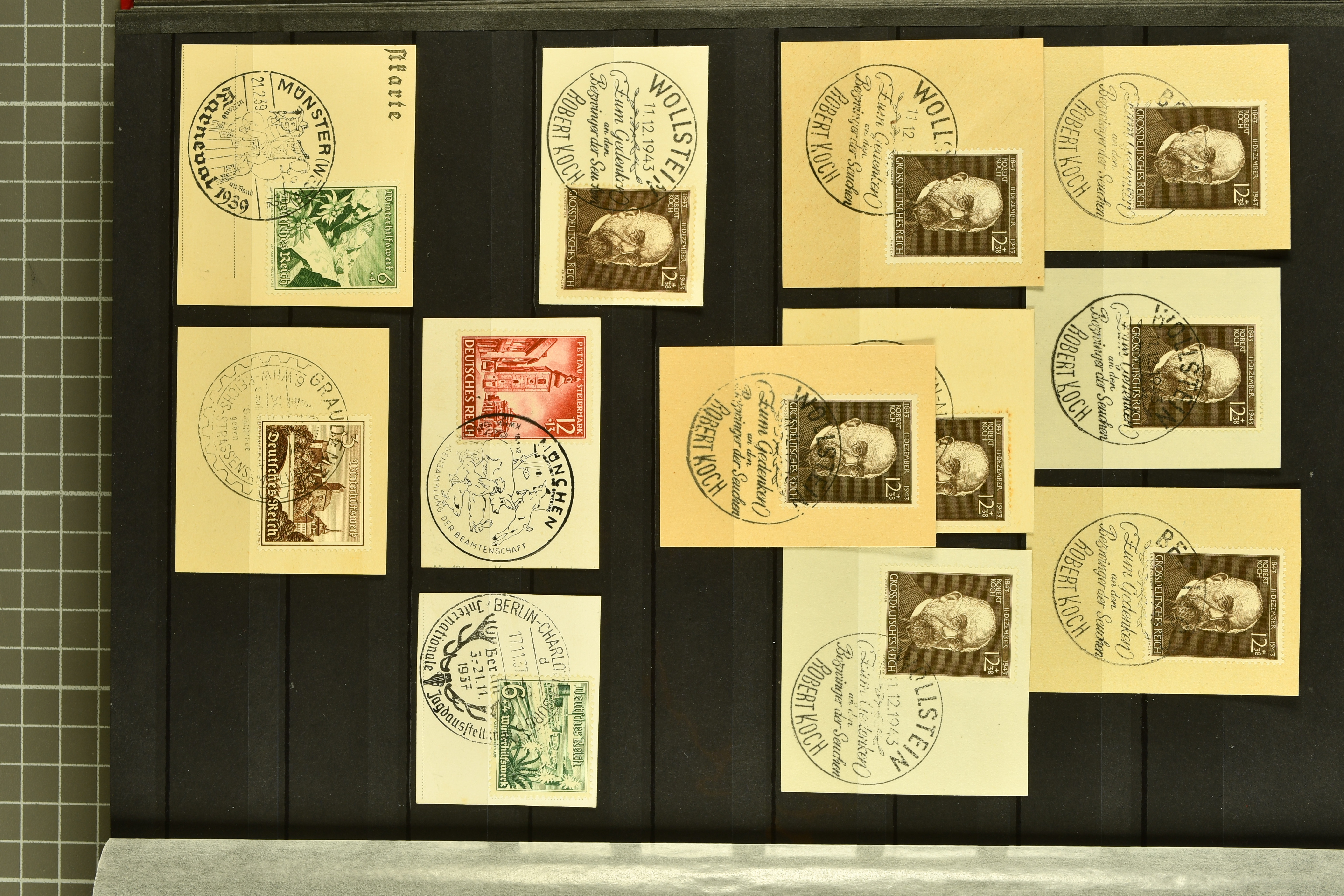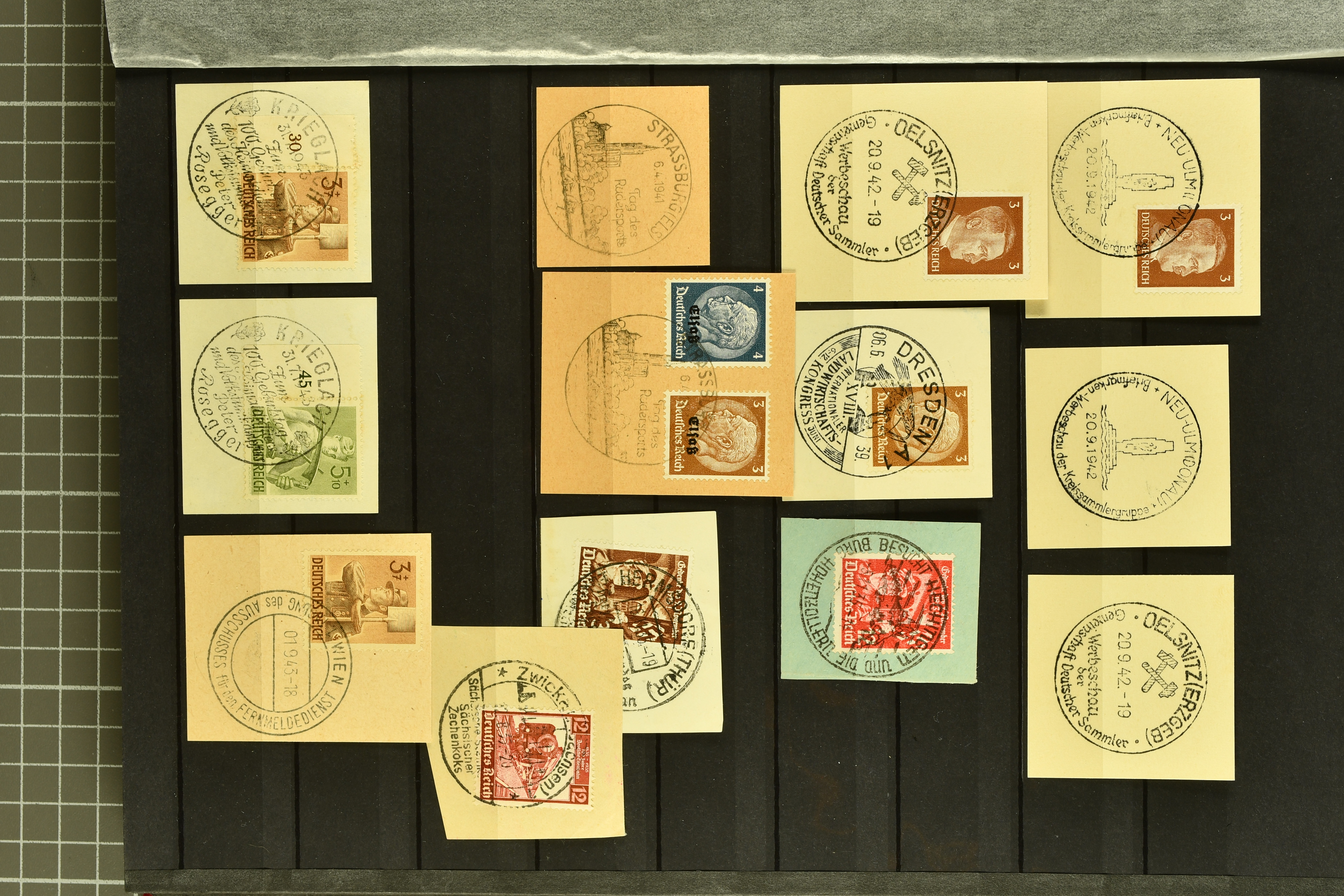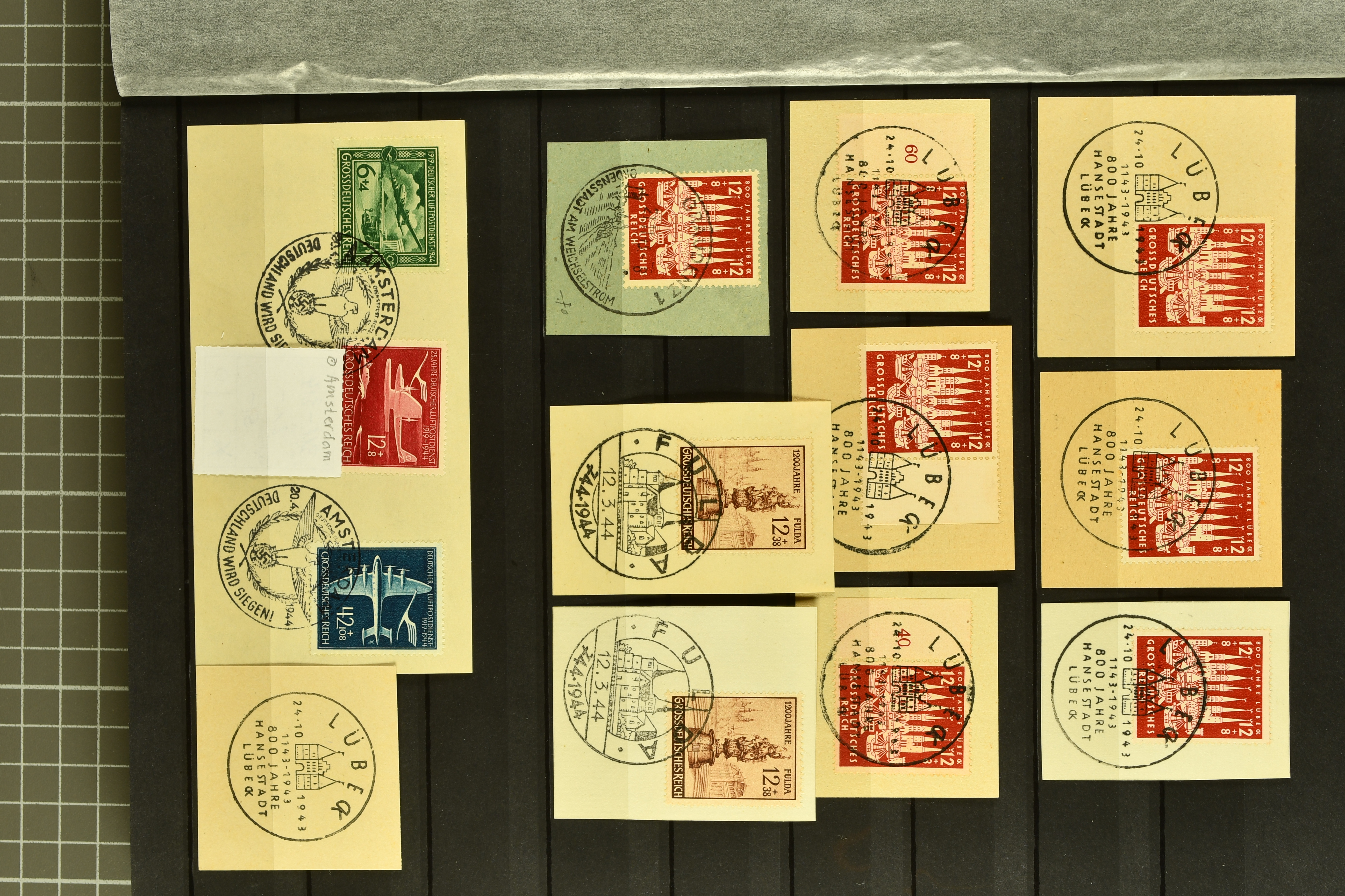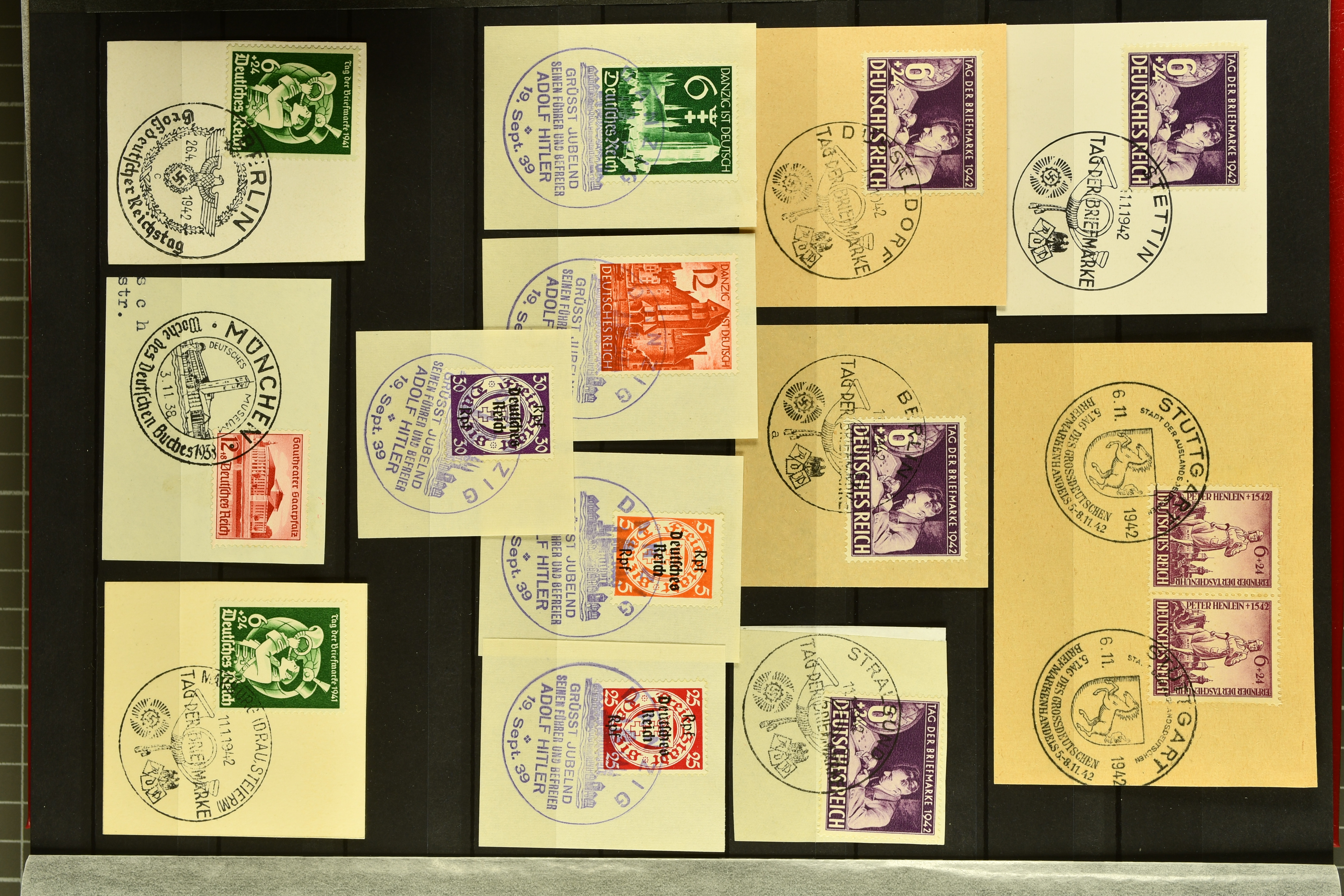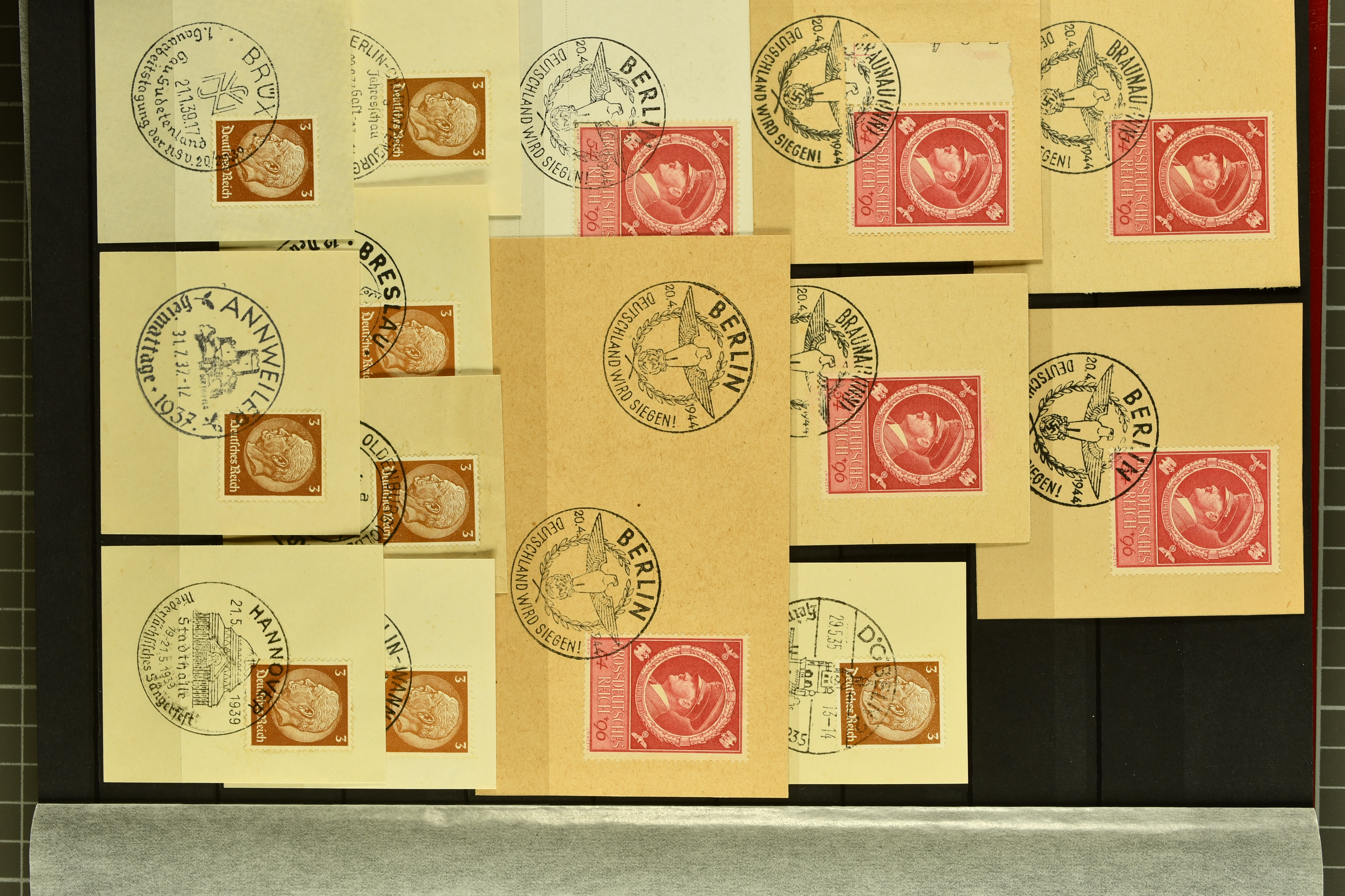 1826 1849/1960ca.: Sammlungskonvolut in insgesamt 9 Vordruckalben, davon 6 Schaubek und 3 mit Vordrucken in Mappen des Noltsch-Verlages, teils mehrfach geführt. Ein Album ab Altdeutschland ist reichhaltig bestückt, wenn auch in sehr unterschiedlicher Qualität. Weitere Bände mit Material in nun zumeist meist besserer Erhaltung vom Deutschen Reich, den Besetzungen und Abstimmungsgebieten, Danzig, Memel sowie den Kolonien. Ein Nachkriegsband mit u. a. mehreren Blättern Bezirkshandstempel (o. Obl.). Jeweils bis zu den mittleren Werte ausgebaut mit vielen Blocks und auch Lokalausgaben. Ungebrauchte Marken zumeist noch in älteren Zellophanhüllen eingepackt; Stichproben ergaben bei Vorkriegsmarken überwiegend Falz, Nachkriegsausgaben, wenn ungebraucht, dann meist postfrisch