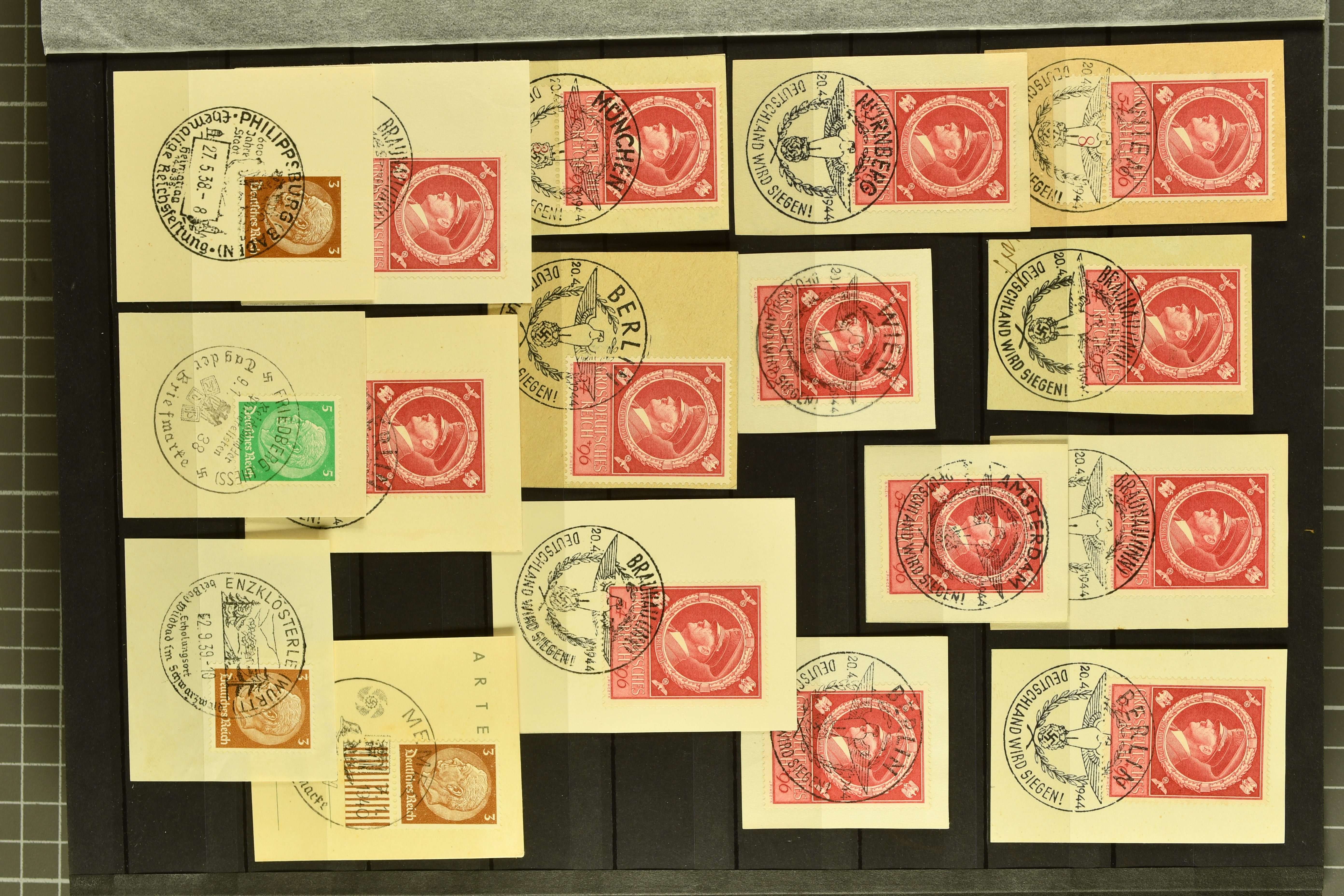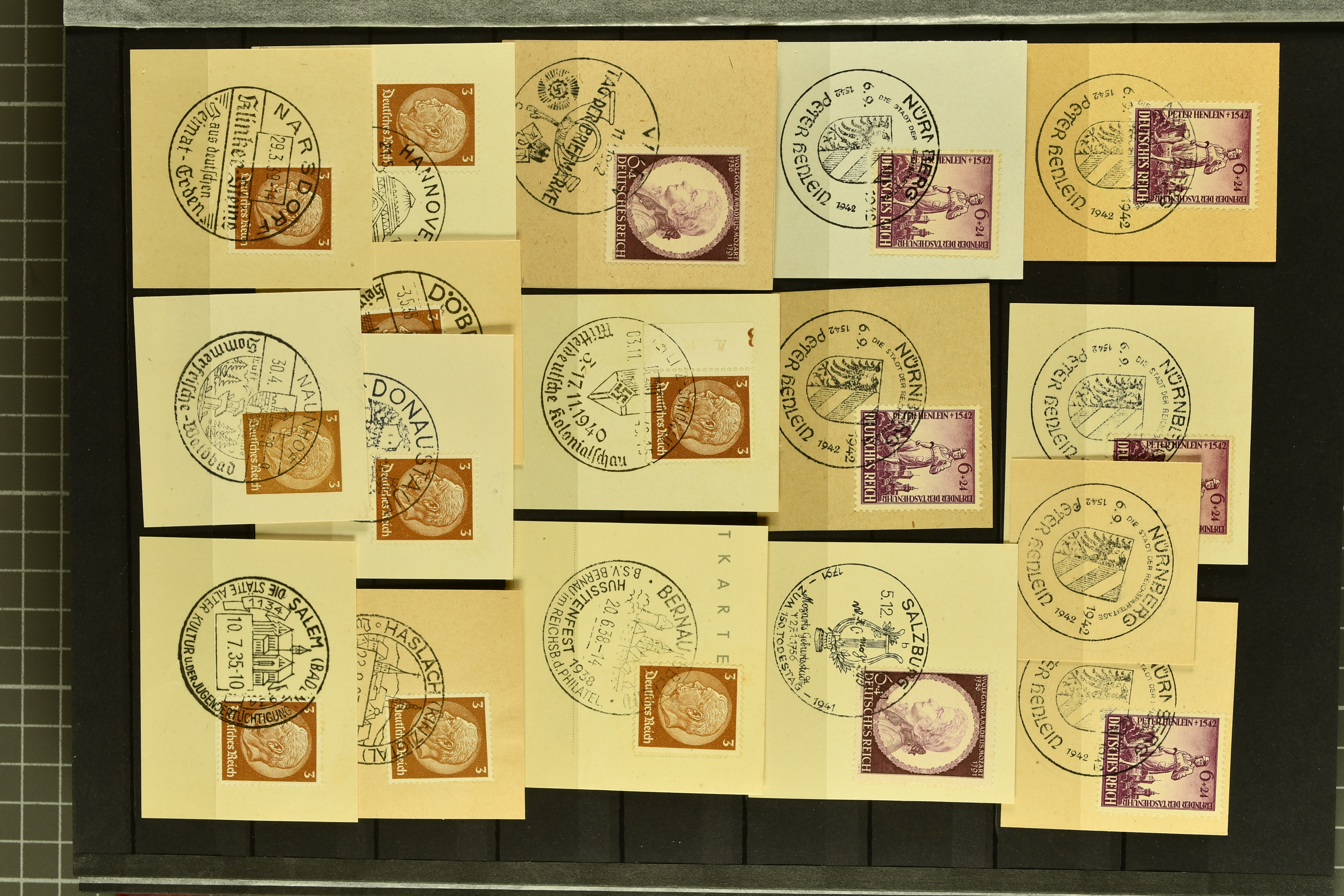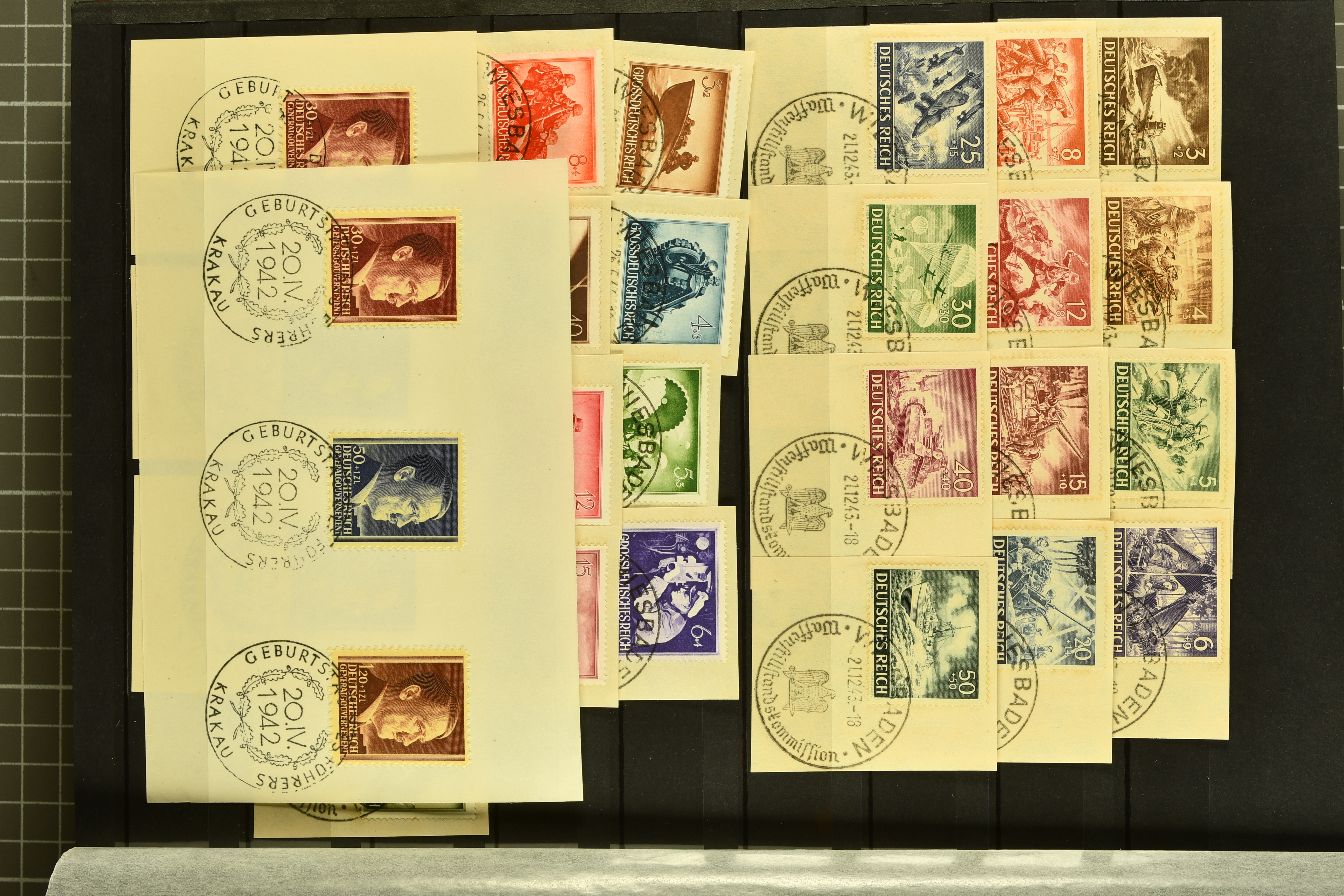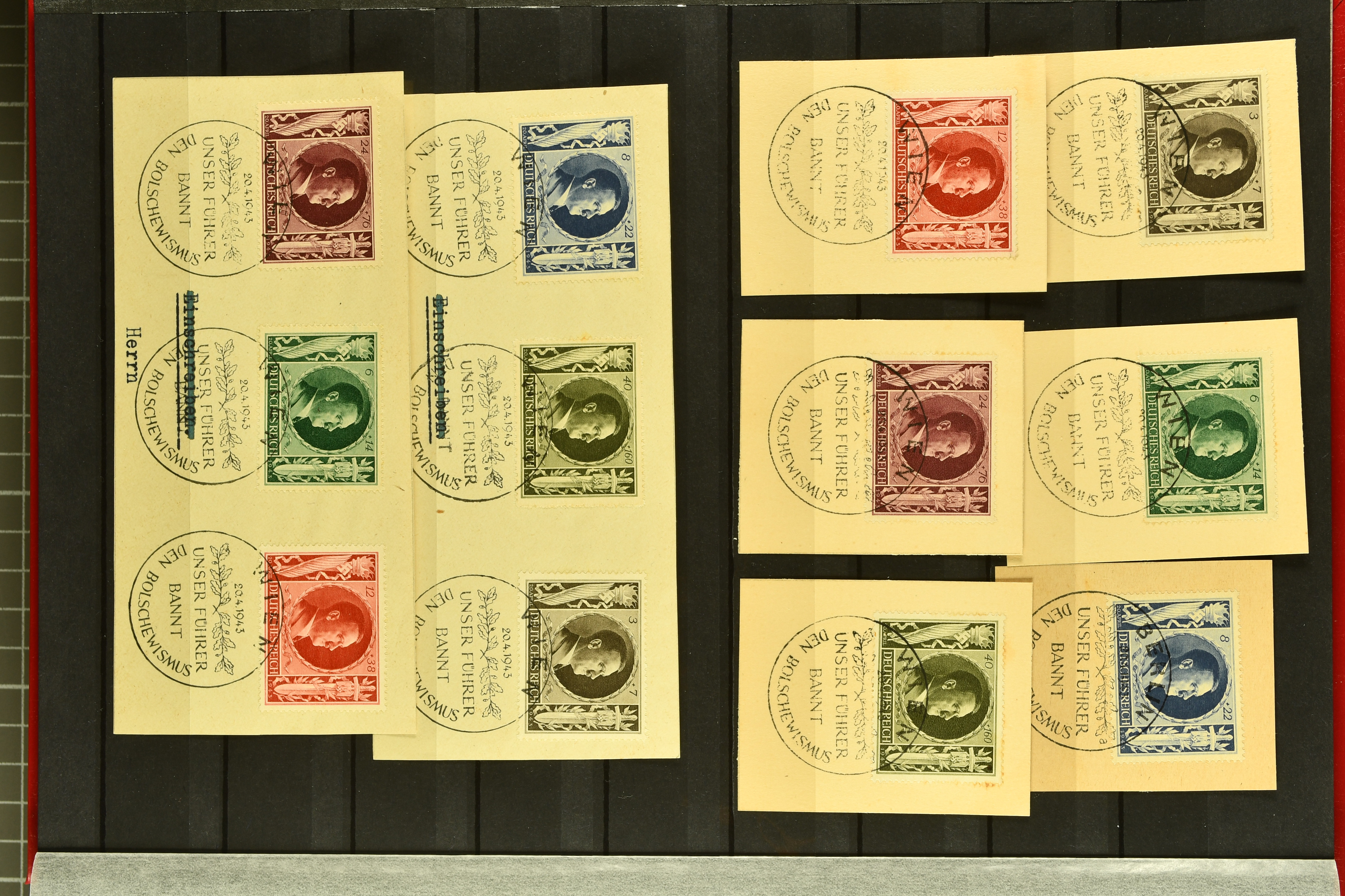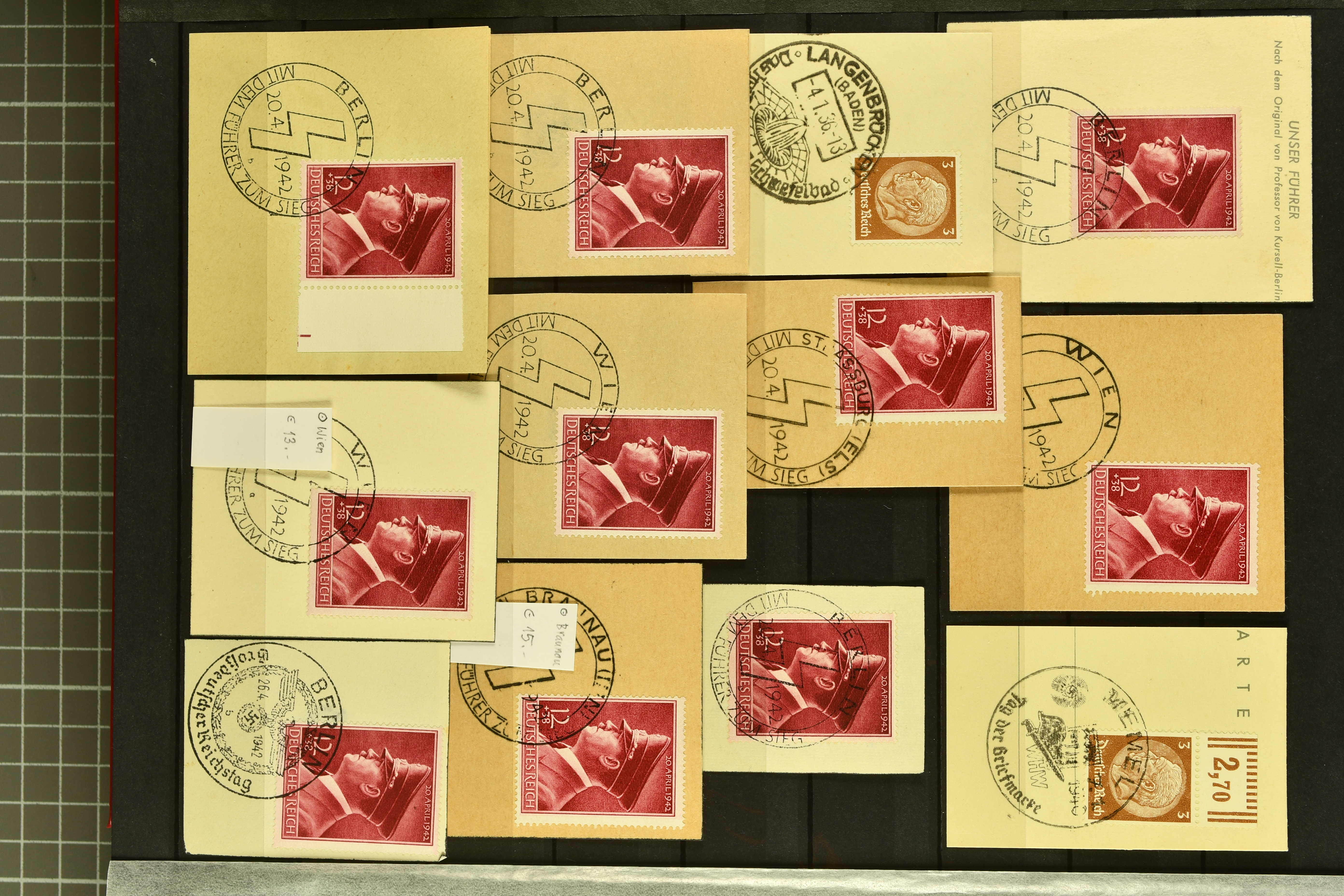 1826 1849/1960ca.: Sammlungskonvolut in insgesamt 9 Vordruckalben, davon 6 Schaubek und 3 mit Vordrucken in Mappen des Noltsch-Verlages, teils mehrfach geführt. Ein Album ab Altdeutschland ist reichhaltig bestückt, wenn auch in sehr unterschiedlicher Qualität. Weitere Bände mit Material in nun zumeist meist besserer Erhaltung vom Deutschen Reich, den Besetzungen und Abstimmungsgebieten, Danzig, Memel sowie den Kolonien. Ein Nachkriegsband mit u. a. mehreren Blättern Bezirkshandstempel (o. Obl.). Jeweils bis zu den mittleren Werte ausgebaut mit vielen Blocks und auch Lokalausgaben. Ungebrauchte Marken zumeist noch in älteren Zellophanhüllen eingepackt; Stichproben ergaben bei Vorkriegsmarken überwiegend Falz, Nachkriegsausgaben, wenn ungebraucht, dann meist postfrisch