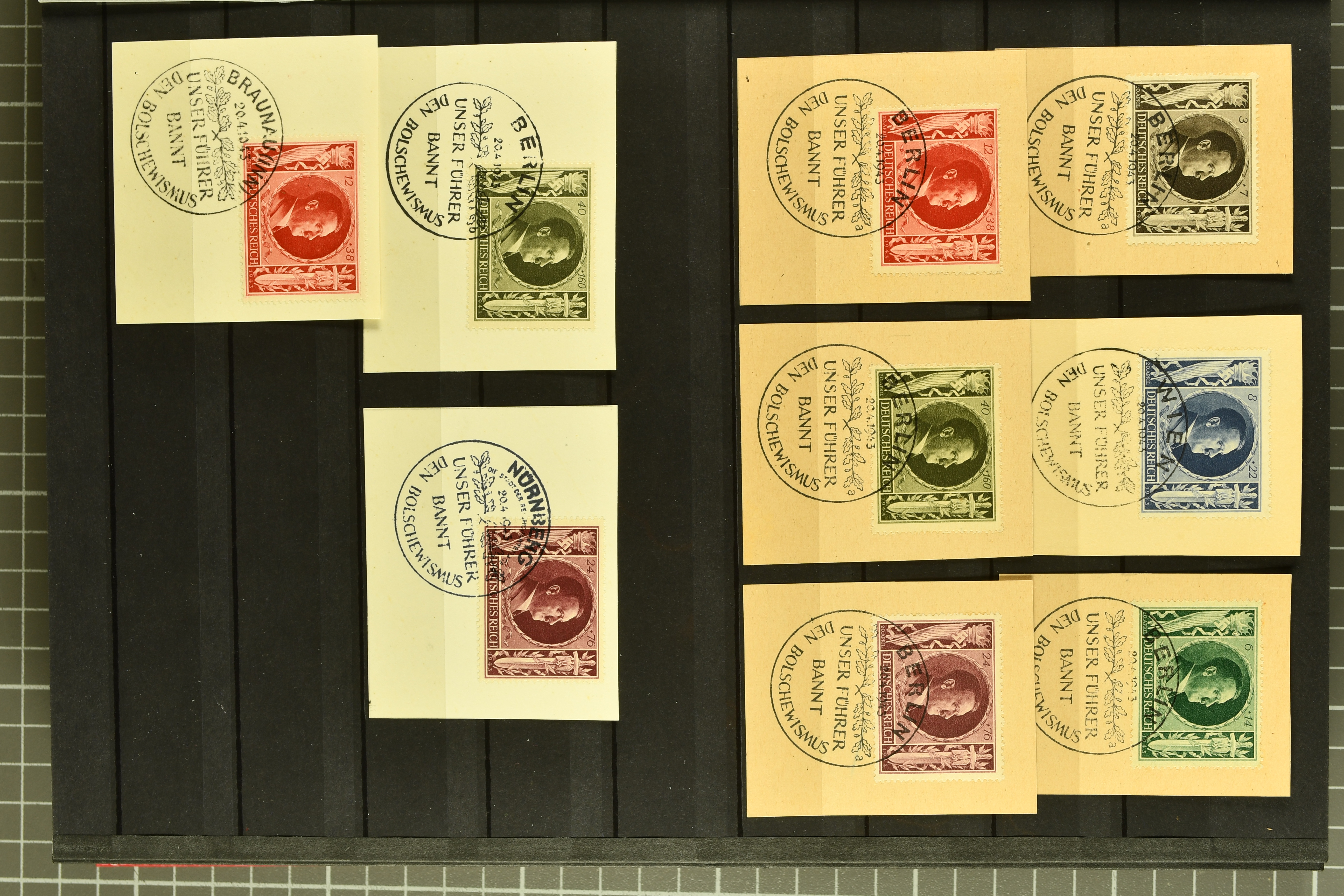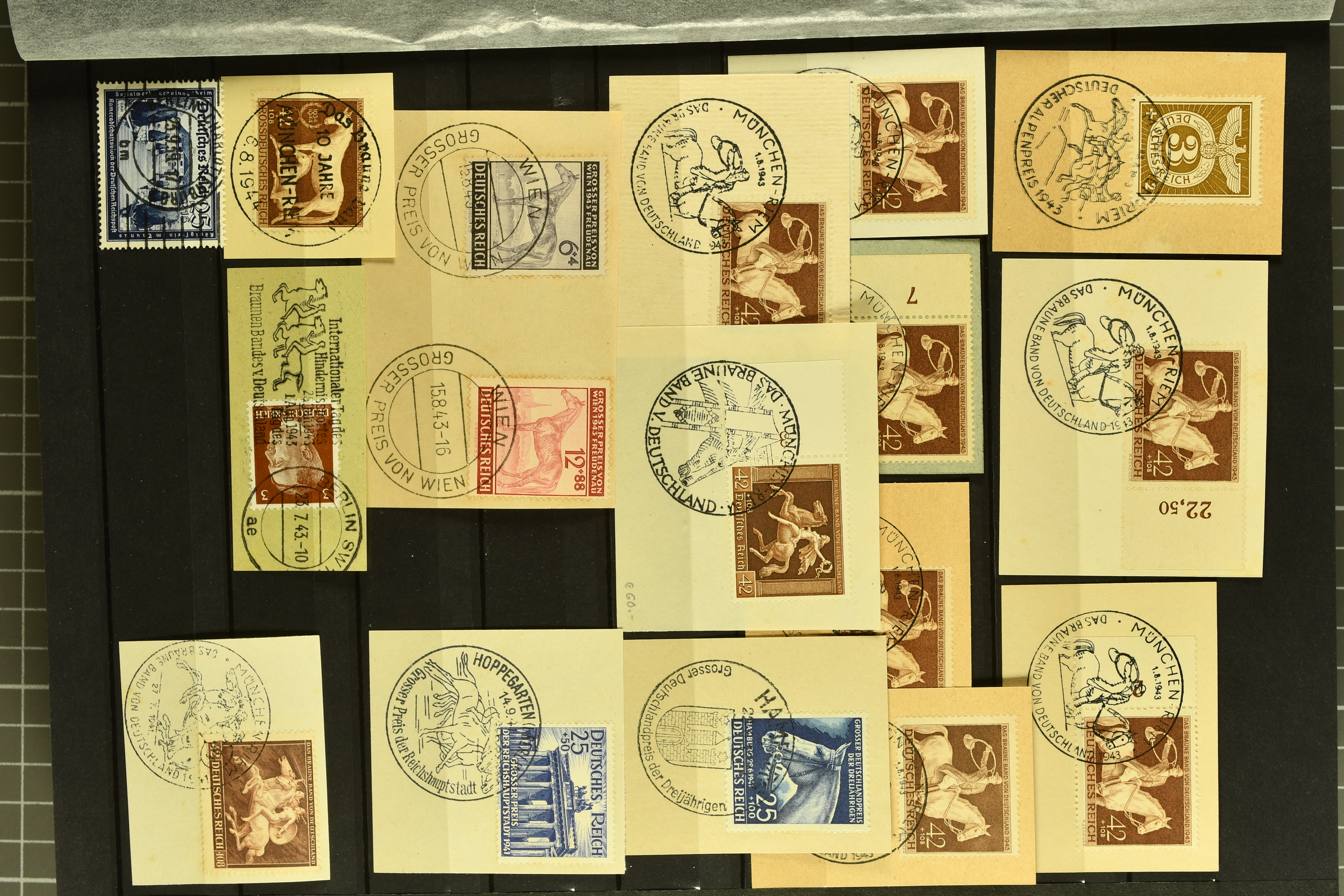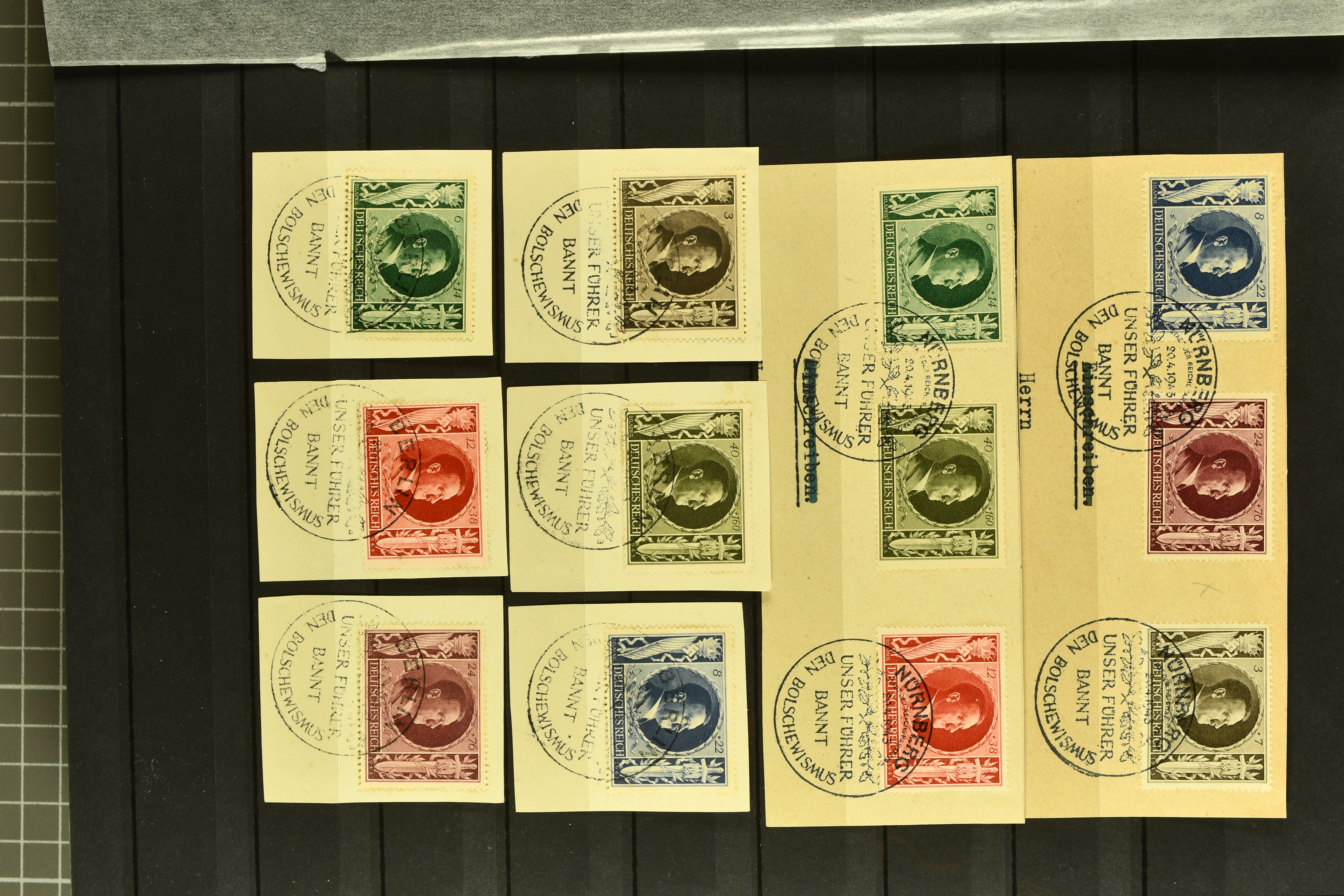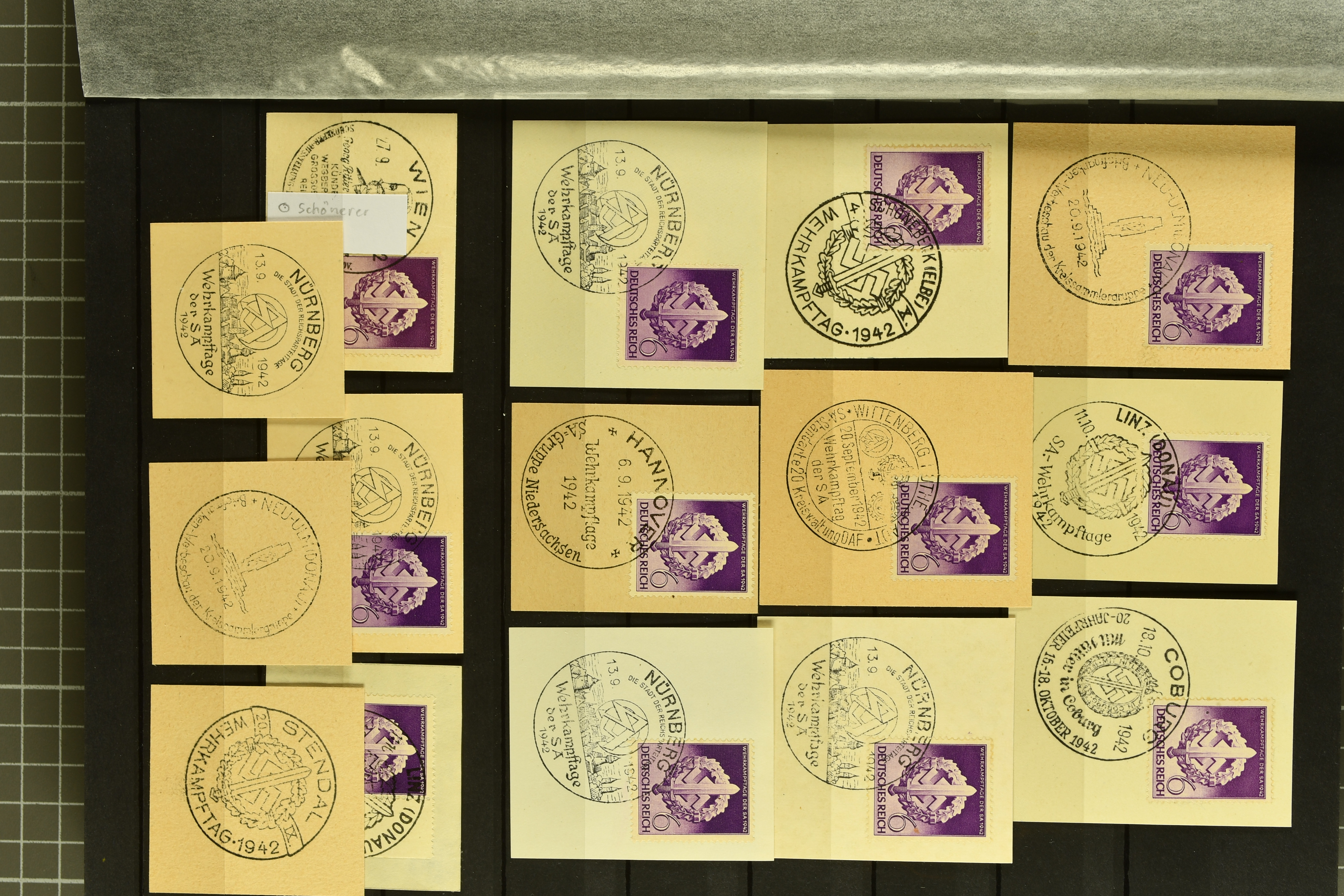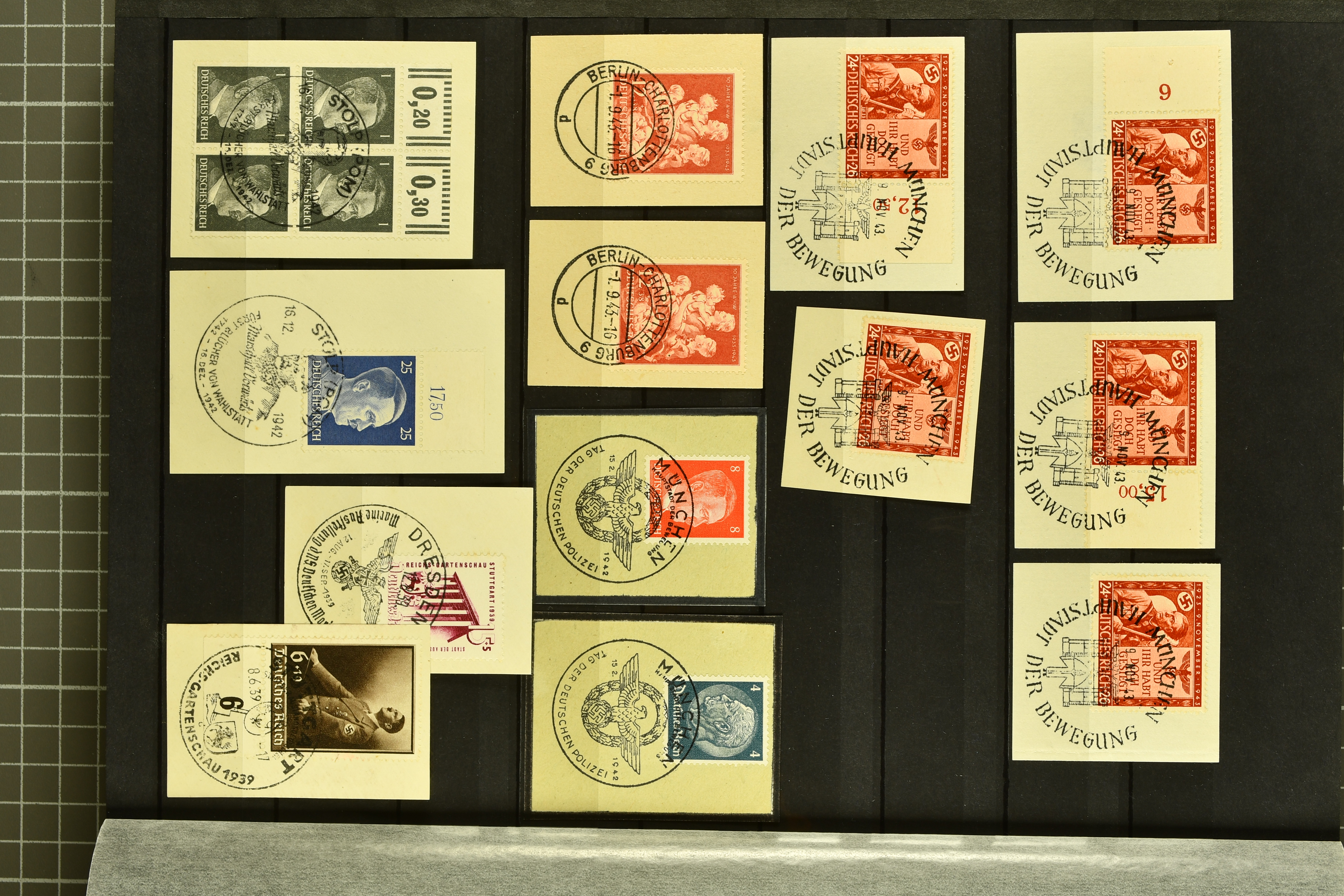 1826 1849/1960ca.: Sammlungskonvolut in insgesamt 9 Vordruckalben, davon 6 Schaubek und 3 mit Vordrucken in Mappen des Noltsch-Verlages, teils mehrfach geführt. Ein Album ab Altdeutschland ist reichhaltig bestückt, wenn auch in sehr unterschiedlicher Qualität. Weitere Bände mit Material in nun zumeist meist besserer Erhaltung vom Deutschen Reich, den Besetzungen und Abstimmungsgebieten, Danzig, Memel sowie den Kolonien. Ein Nachkriegsband mit u. a. mehreren Blättern Bezirkshandstempel (o. Obl.). Jeweils bis zu den mittleren Werte ausgebaut mit vielen Blocks und auch Lokalausgaben. Ungebrauchte Marken zumeist noch in älteren Zellophanhüllen eingepackt; Stichproben ergaben bei Vorkriegsmarken überwiegend Falz, Nachkriegsausgaben, wenn ungebraucht, dann meist postfrisch