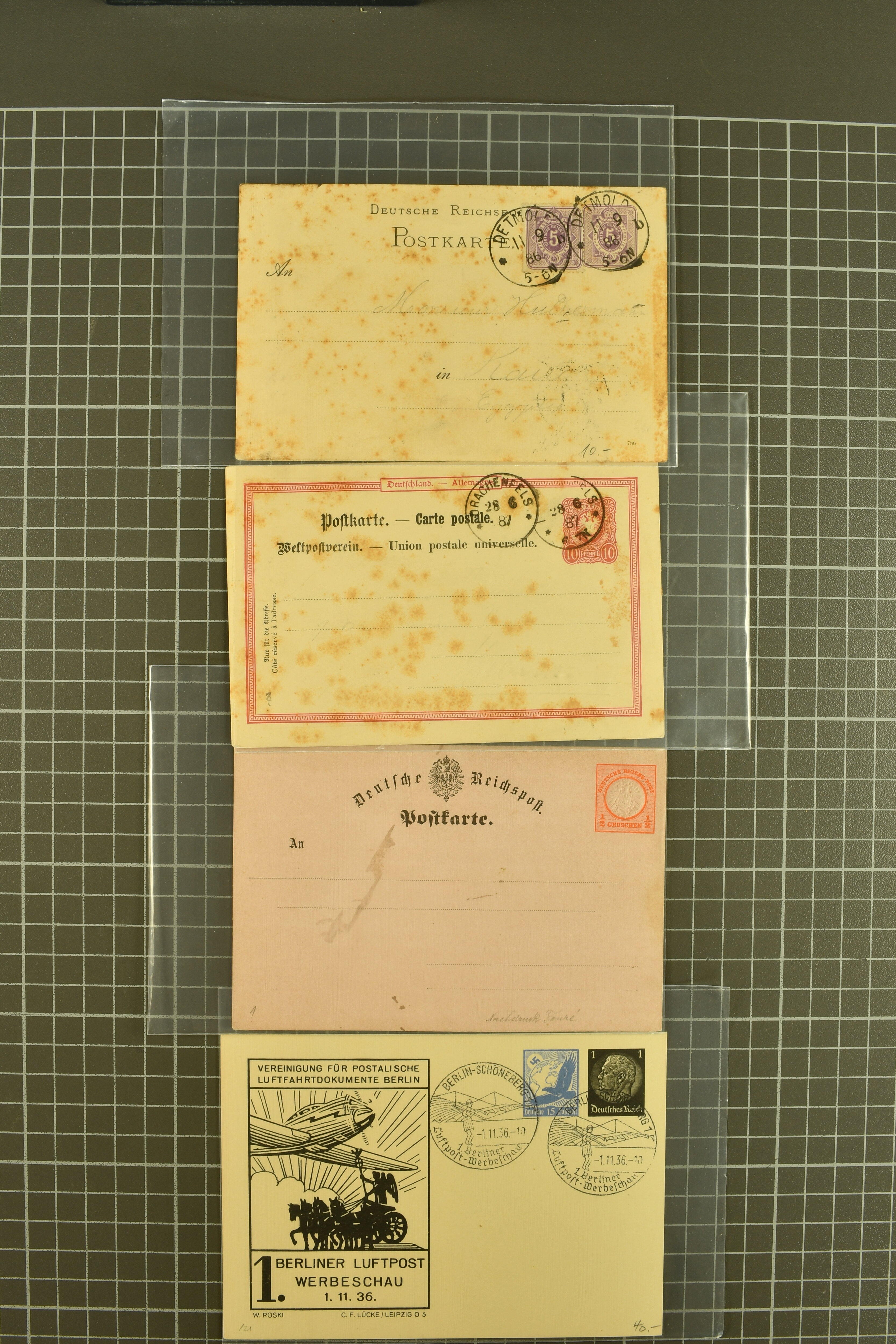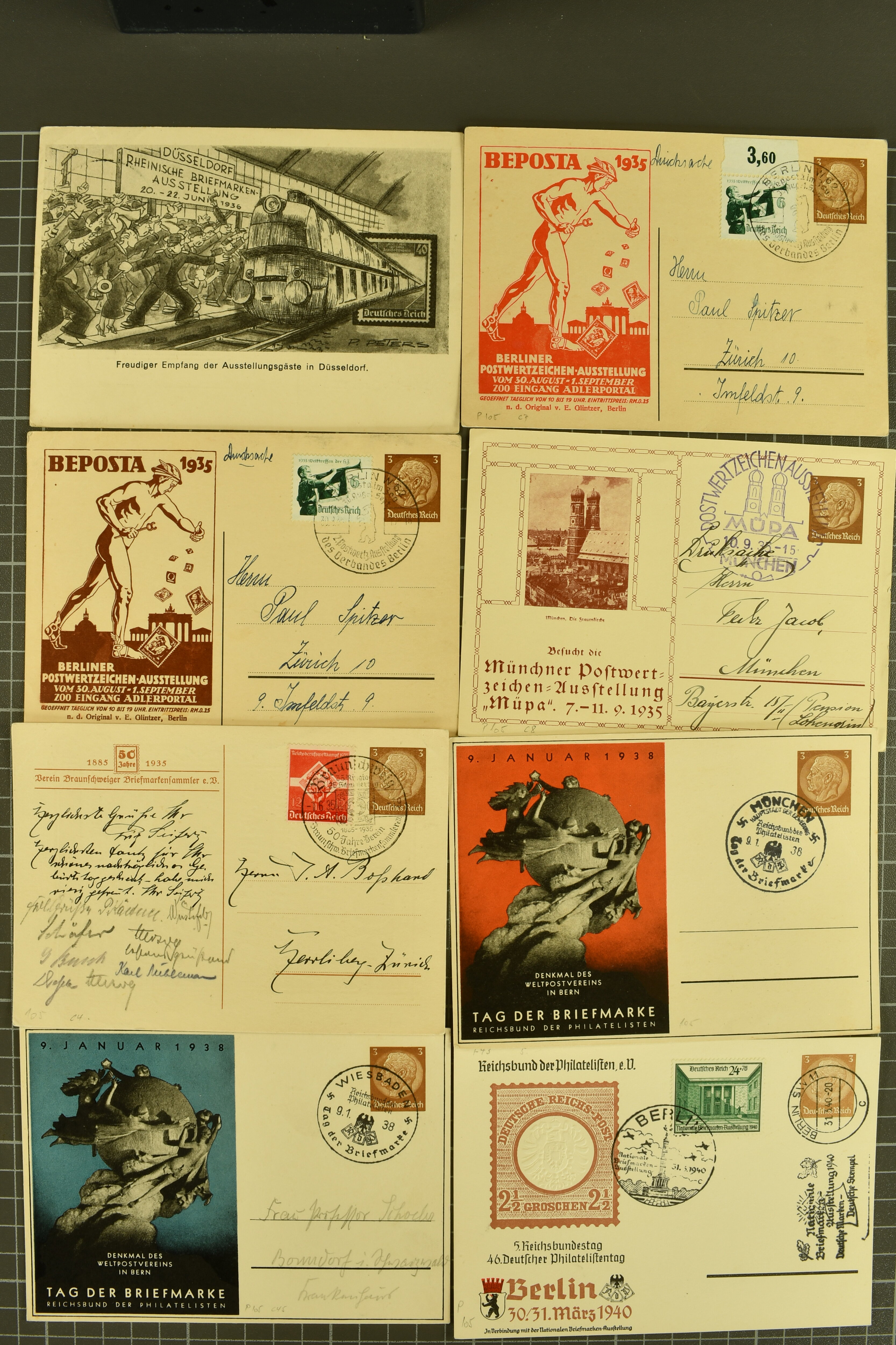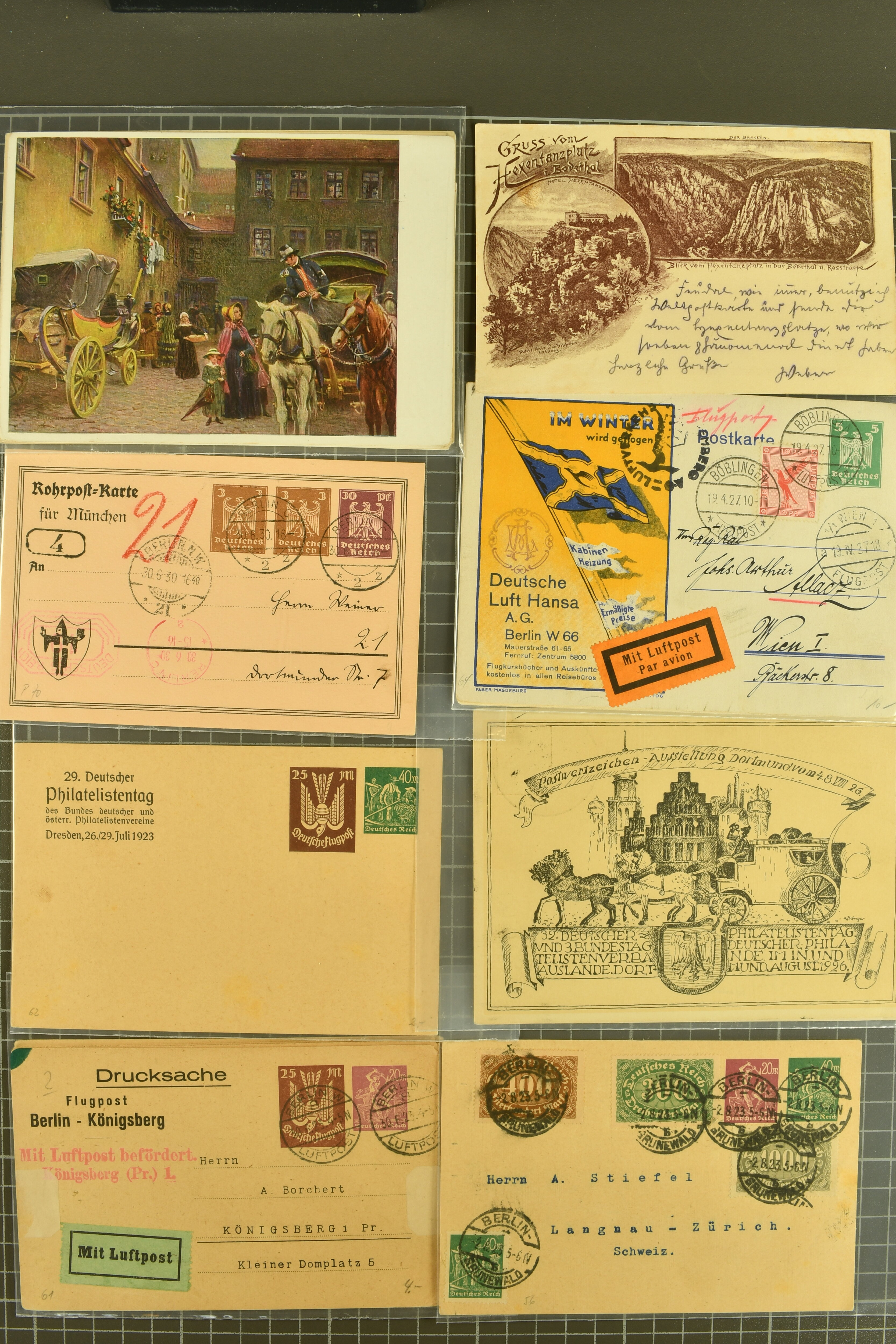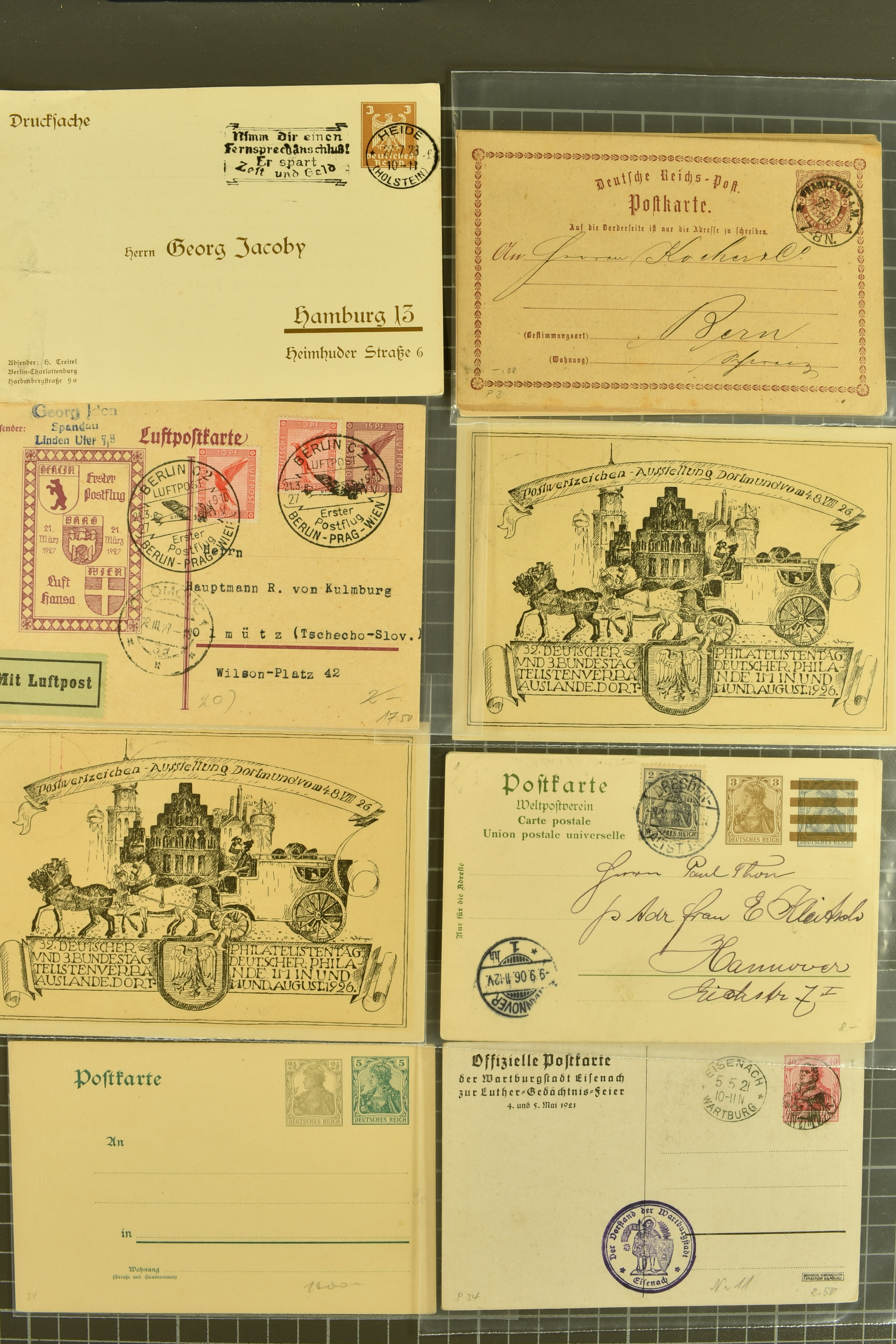 1834 cover image1872/1945ca.: Vielfältiger Posten Privatganzsachen und offizielle Ganzsachen mit Zudruck, dabei rein bedarfsmässige Belege mit Formzudruck oder Adressen von Firmen, Ansichtskarten-Druck auf der Rückseite von Ganzsachenpostkarten. Was die Privatganzsachen betrifft, etliche Flugpost-Privatganzsachen, Karten für Ausstellungen usw. Ca. 320 Stück, darunter nur wenige reguläre Ganzsachen ohne Zudruck. (Image 1) (Image 2) (Image 3) (Image 4) (Image 5) (Image 6) (Image 7) (Image 8) (Image 9) (Image 10) (Image 11) (Image 12) (Image 13) (Image 14) (Image 15) (Image 16) (Image 17) (Image 18) (Image 19) (Image 20) (Image 21) (Image 22) (Image 23) (Image 24) (Image 25) (Image 26) (Image 27) (Image 28) (Image 29) (Image 30)