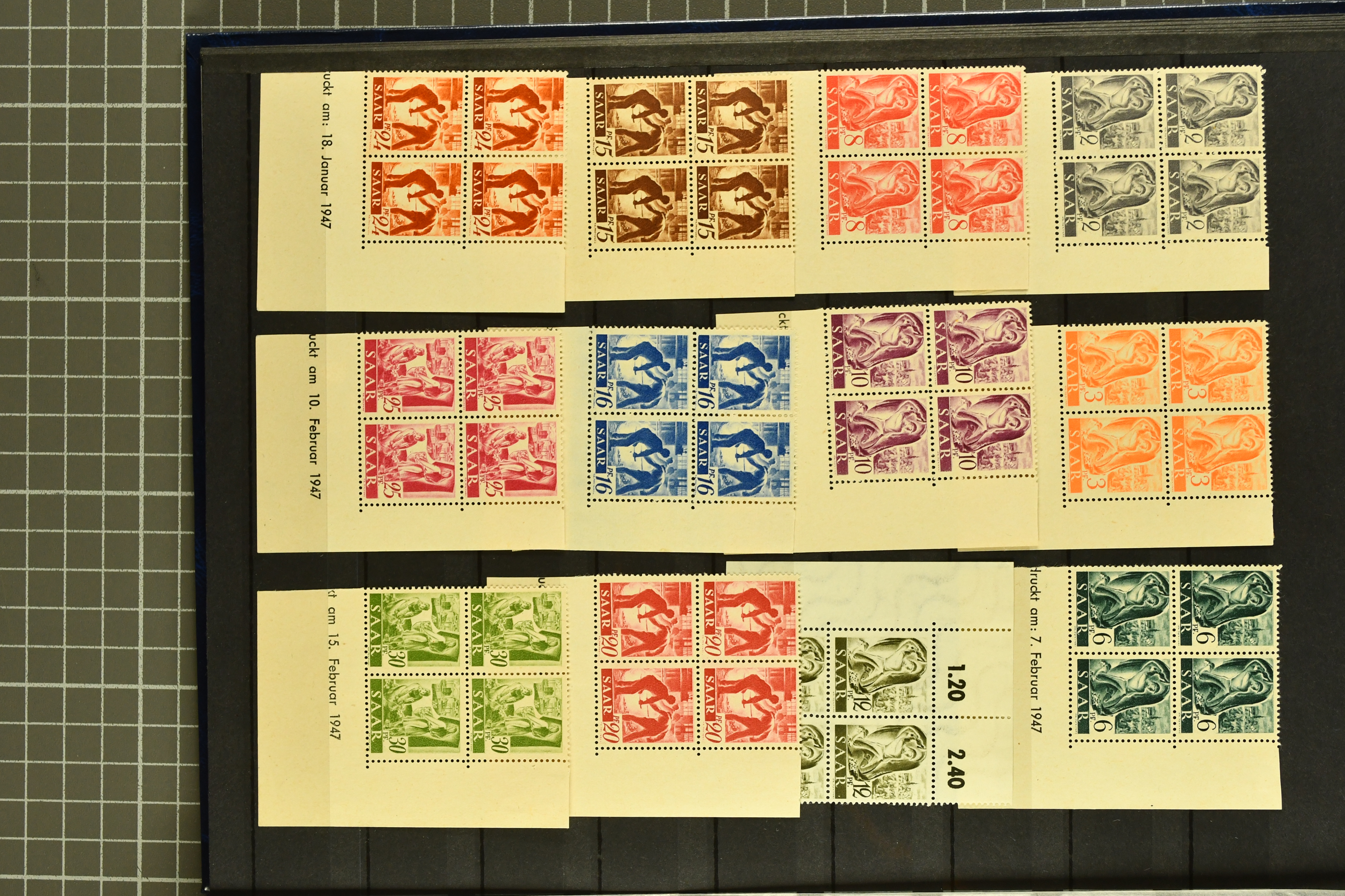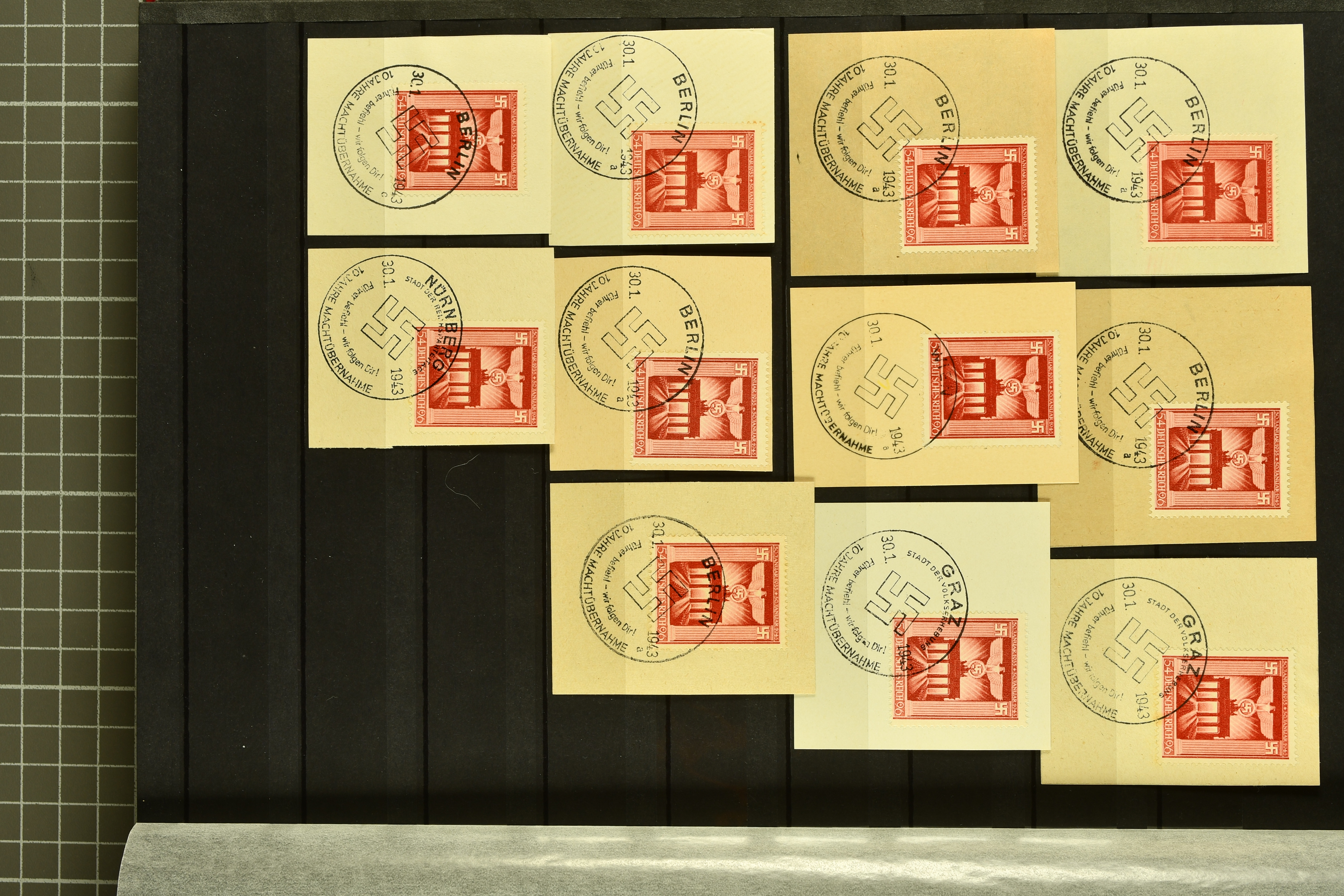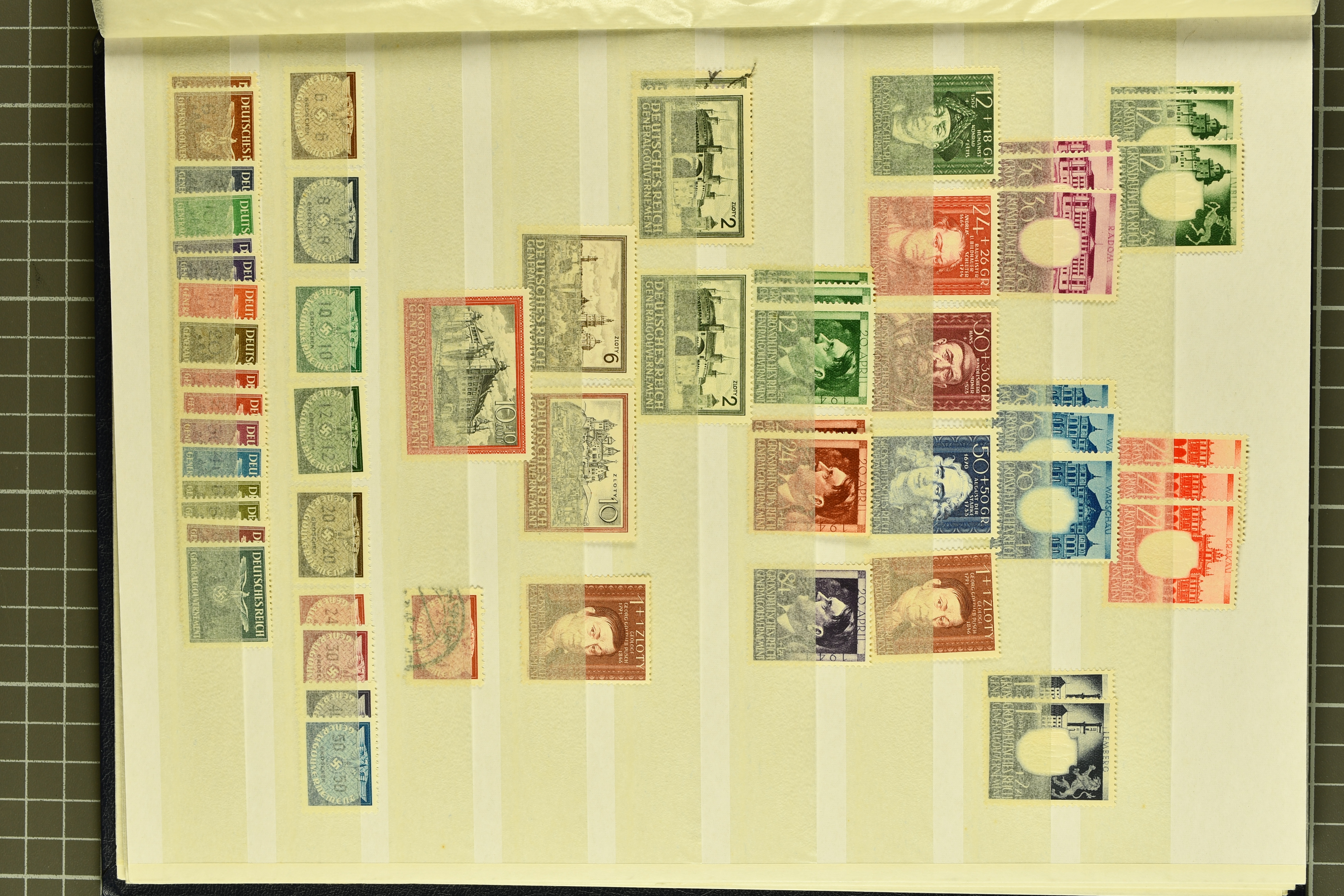 1830 1933-2009: Sammlung in prächtigem Vordruckalbum der Post, 10 Bände bis 2009. Der erste Band „Drittes Reich“ ist unvollständig. Berlin mit zahlreichen guten Ausgaben, jedoch ohne Rot- und Schwarzaufdruck, ohne Bauten und ohne Währungsgeschädigte, ansonsten wohl vollständig bis zur letzten Ausgabe. Bundesrepublik praktisch komplett bis ca. 1990, inklusive Posthorn-Satz und sämtlichen weiteren hochpreisigen Ausgaben (es fehlen lediglich 2–3 Billigstwerte). Alles postfrisch, ohne Falz; vereinzelt können minimale Stockpünktchen oder leicht getönter Gummi vorkommen. Neuere Jahre ab 2010 sporadisch bestückt
