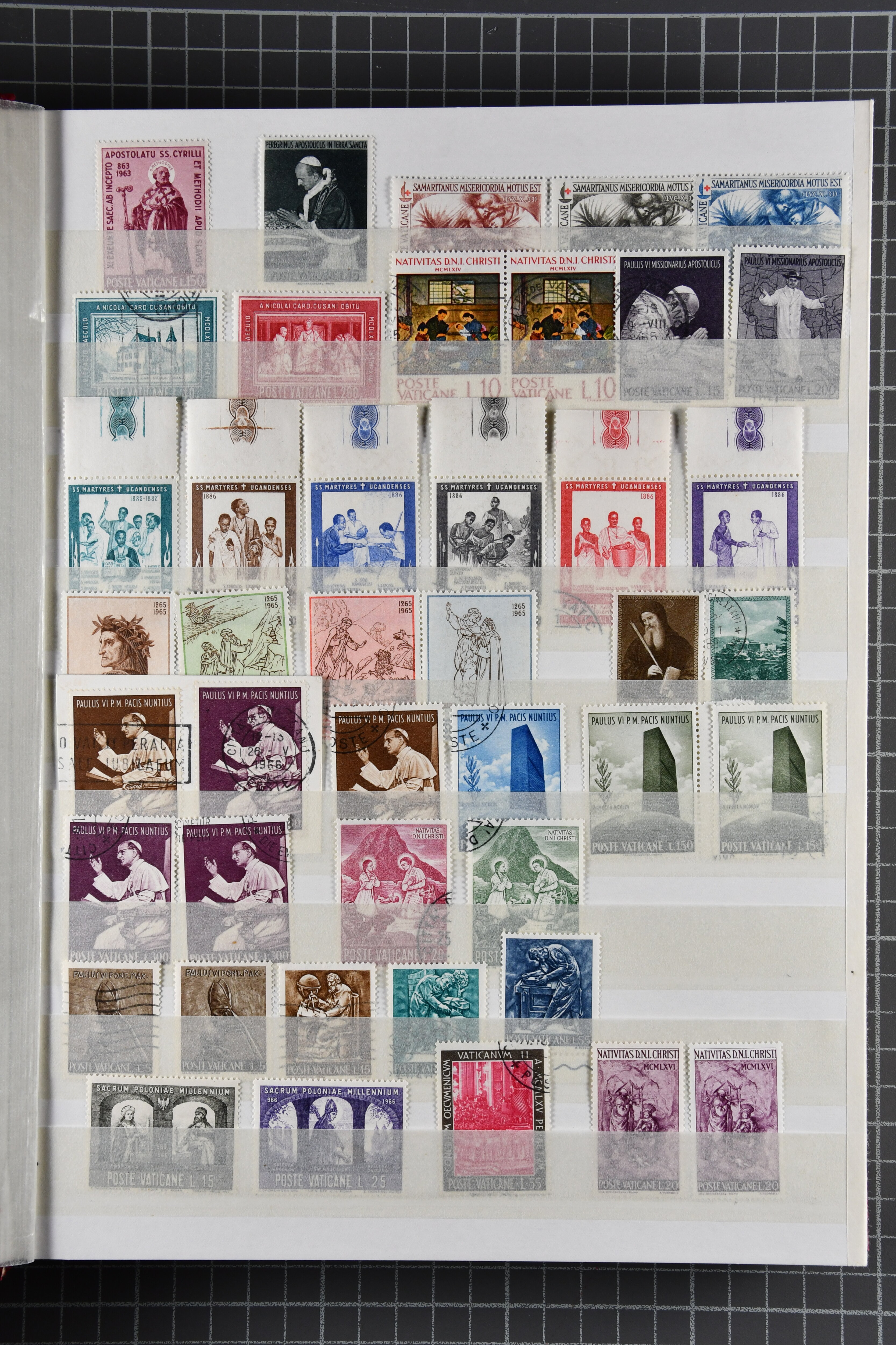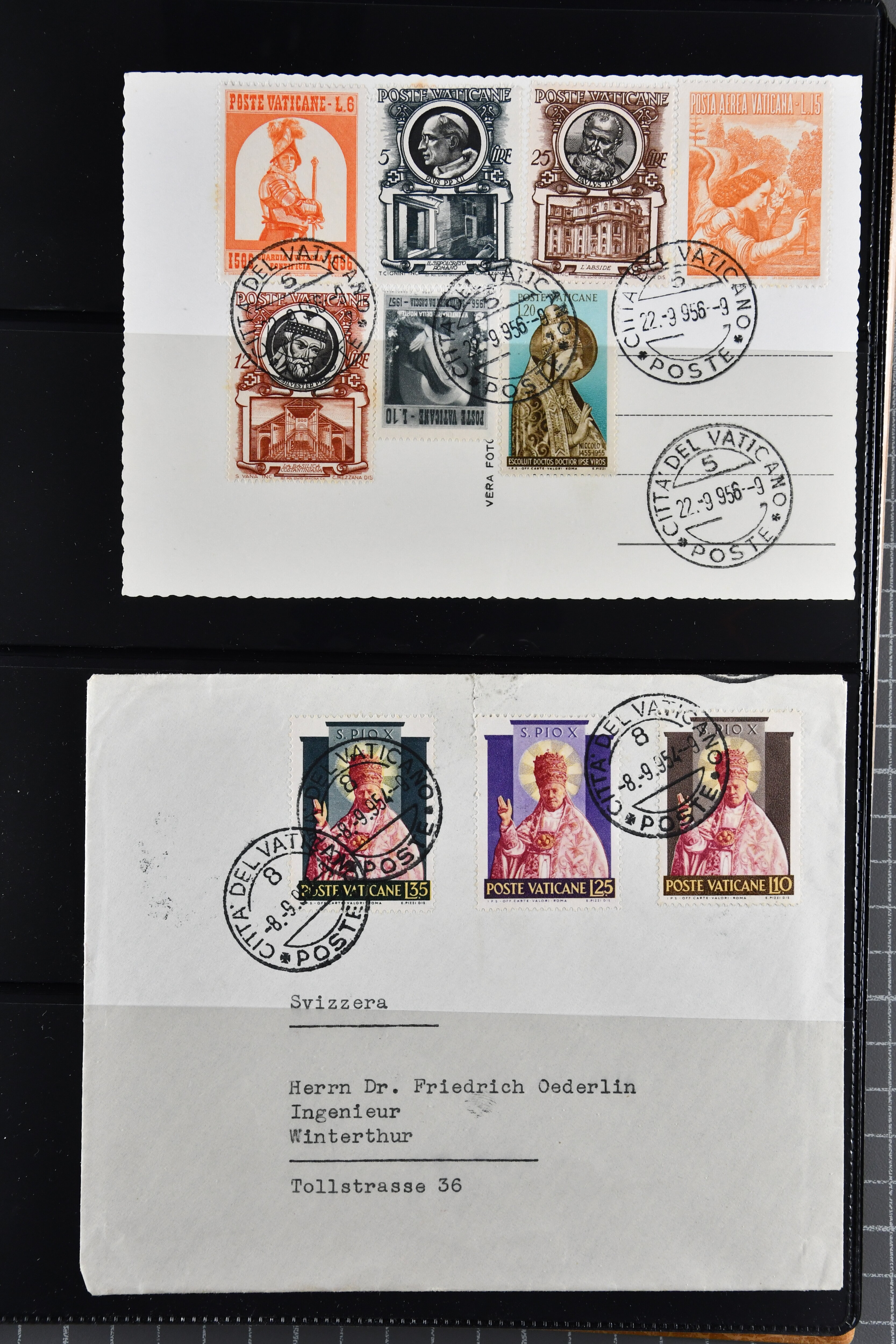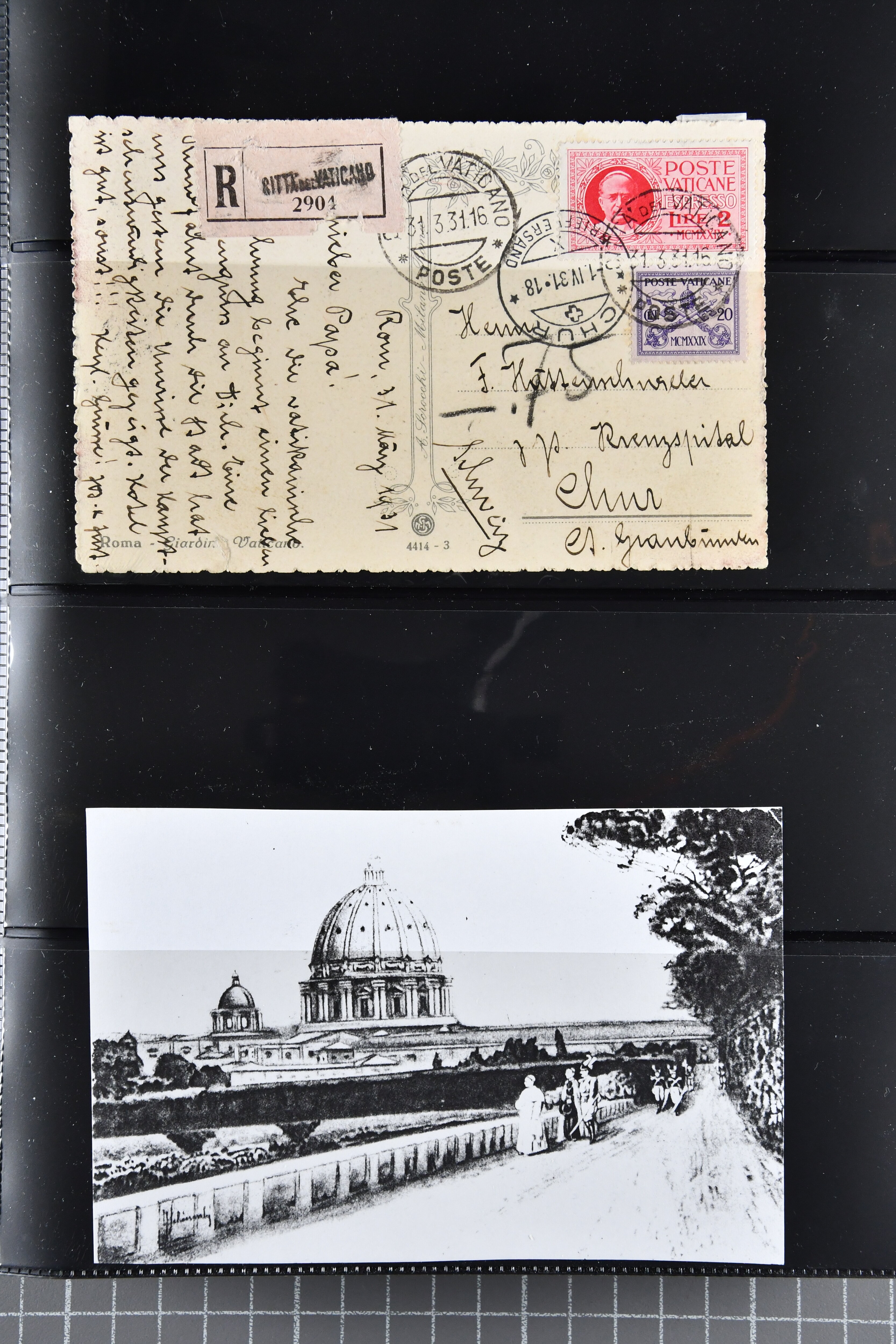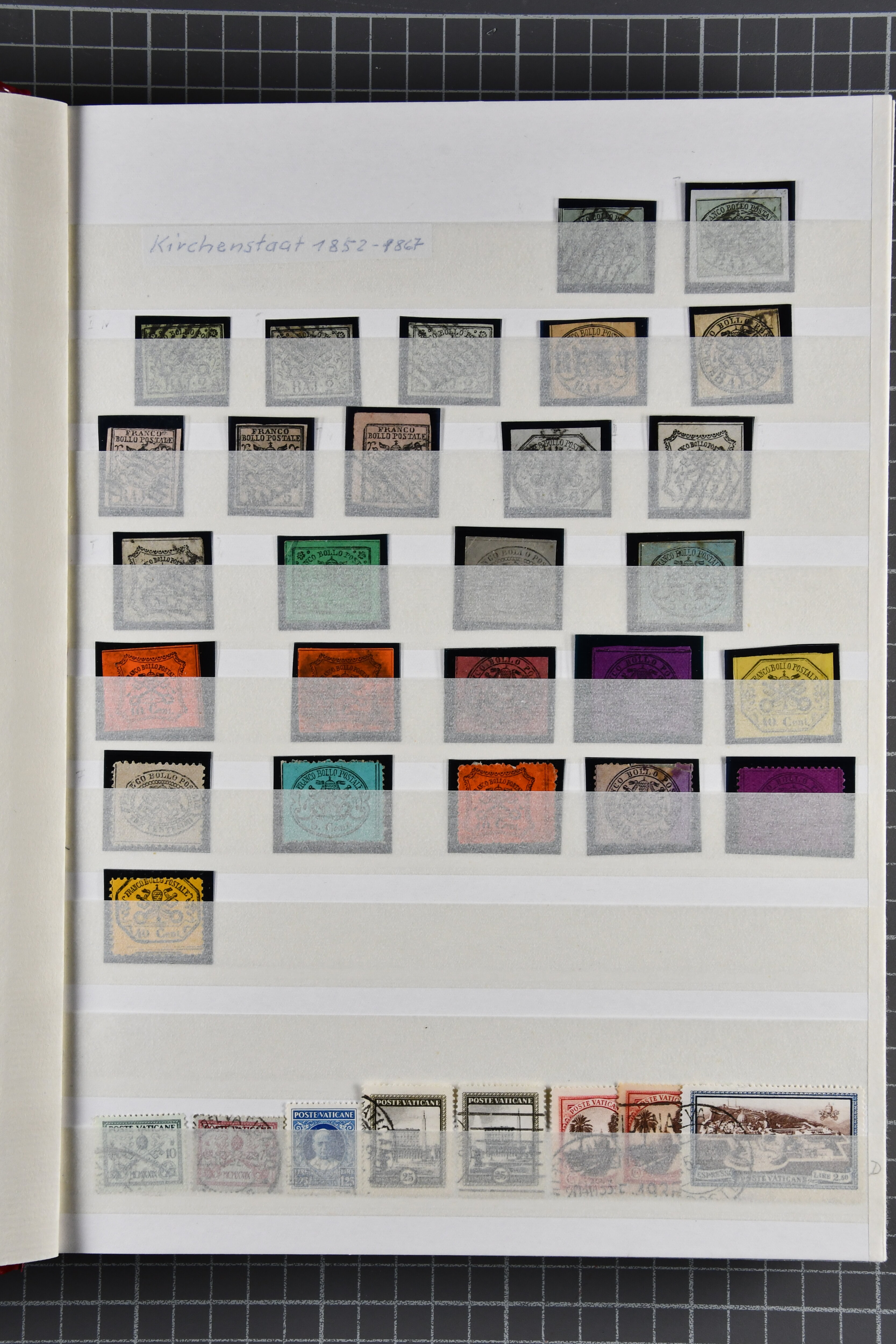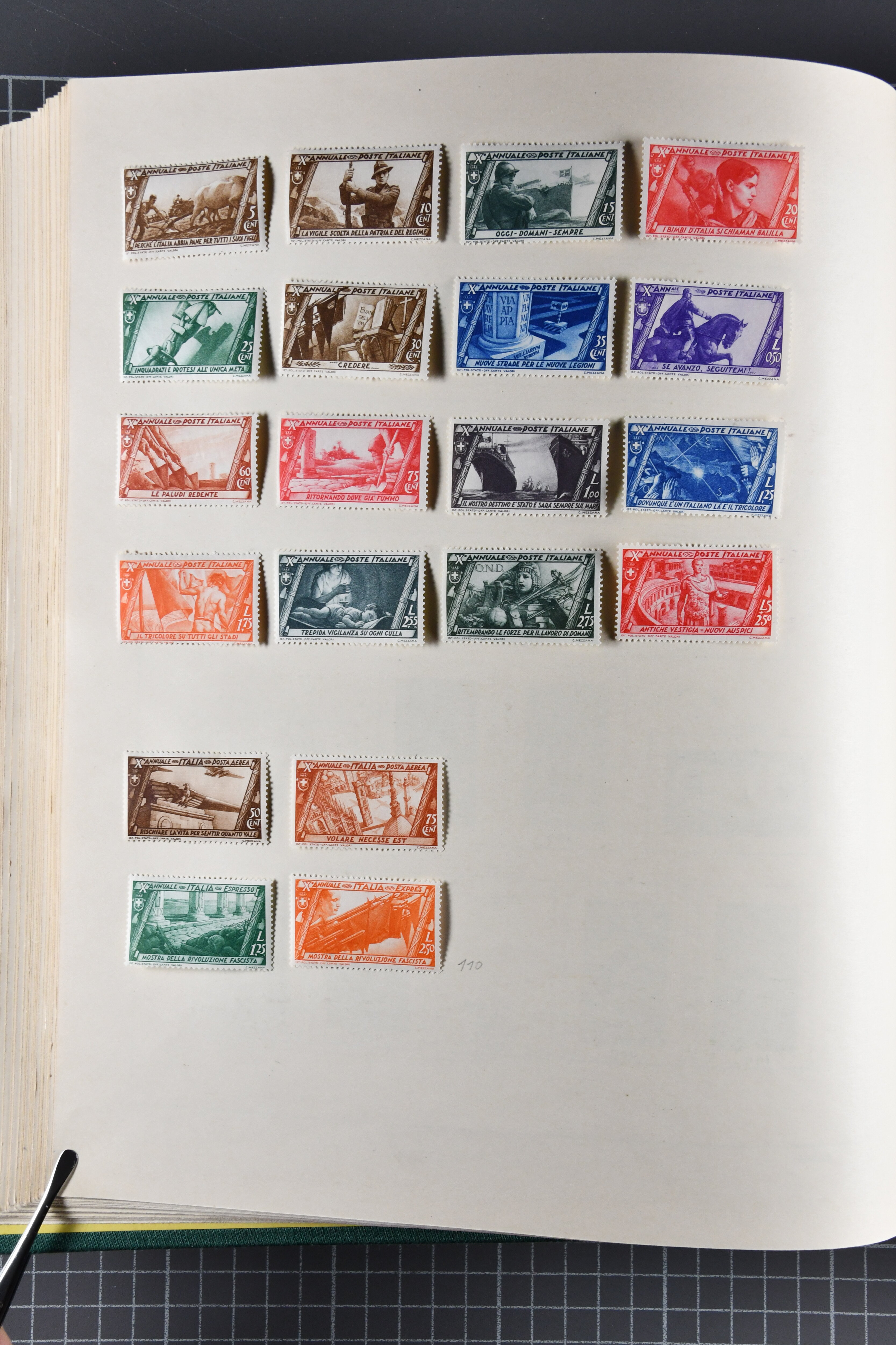 2050 image1851/1989: Old Italian States to Colonies – collection mounted on Schaubek pages in one volume, opening with a well-filled section of the Old Italian States, in very mixed condition. The Kingdom of Italy is well represented with a broad selection of mostly unused and some used sets, notably including the Manzoni issue (this part generally in good condition). The Republic is predominantly used, with Trieste, Fiume, a few occupation issues and colonies. Also included are two albums Papal States / Vatican City – one with loose stamps, the other with covers, including some better full sets incl. Catholic Press and Archaeological Congress on envelope and a set of Papal Voyages. Very high catalogue value (Image 1) (Image 2) (Image 3) (Image 4) (Image 5) (Image 6) (Image 7) (Image 8) (Image 9) (Image 10) (Image 11) (Image 12) (Image 13) (Image 14) (Image 15) (Image 16) (Image 17) (Image 18) (Image 19) (Image 20)