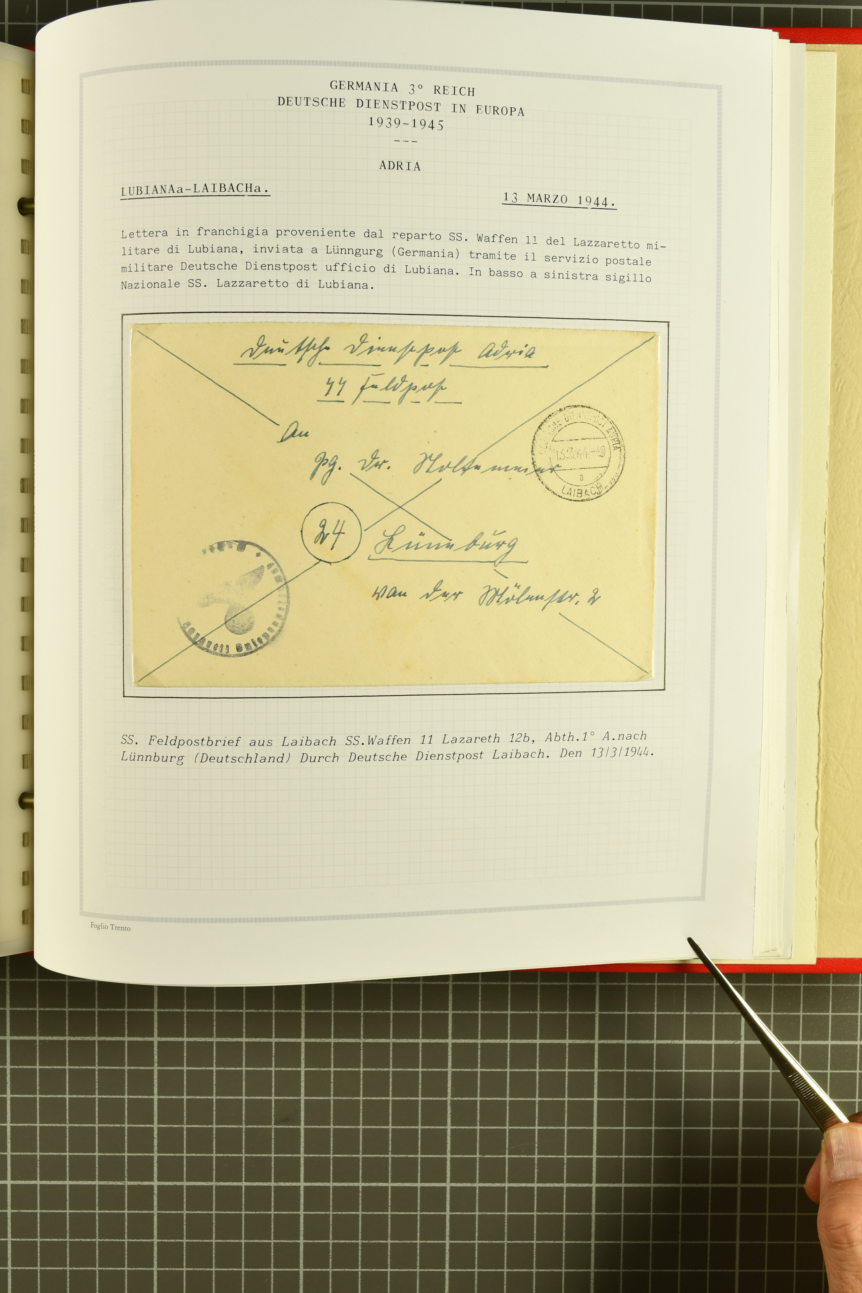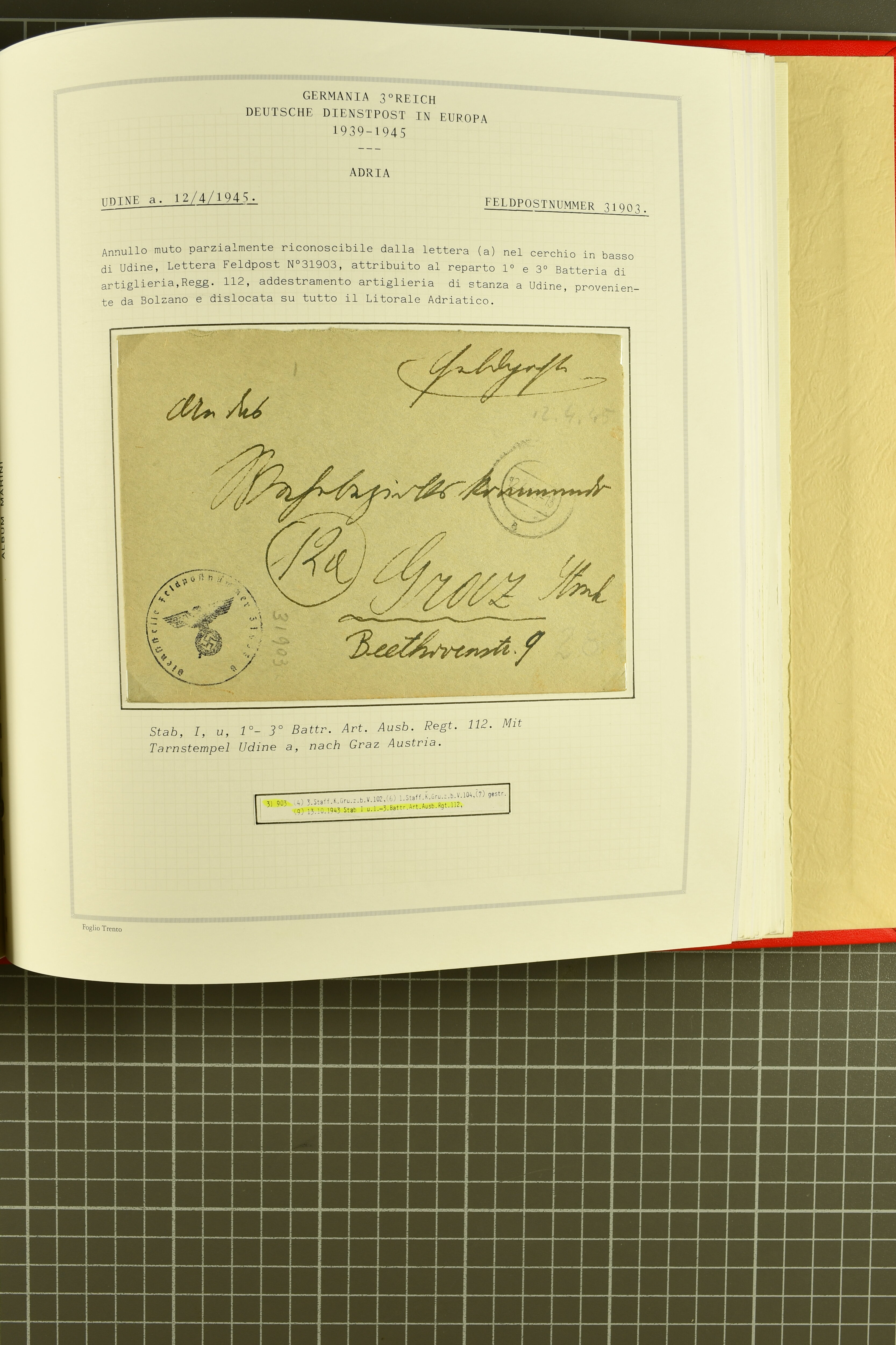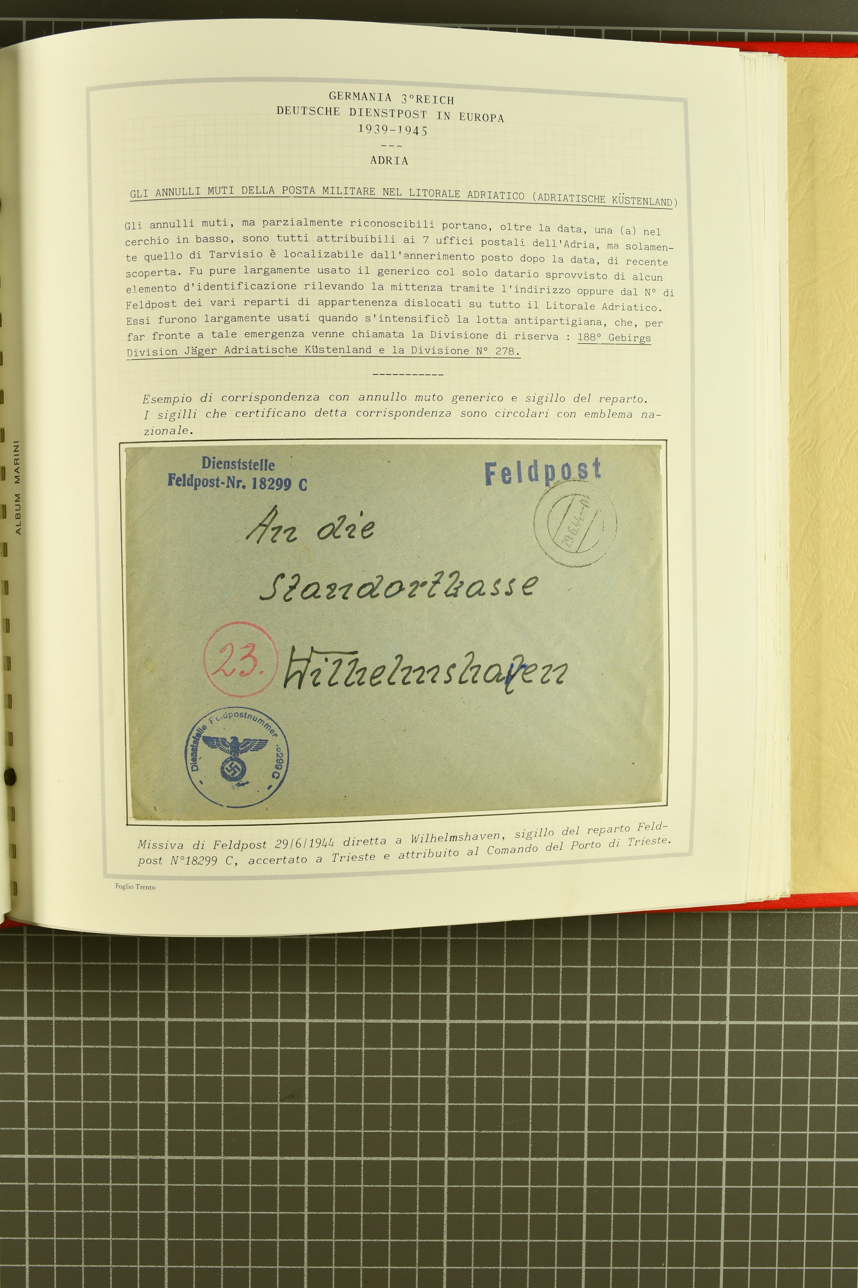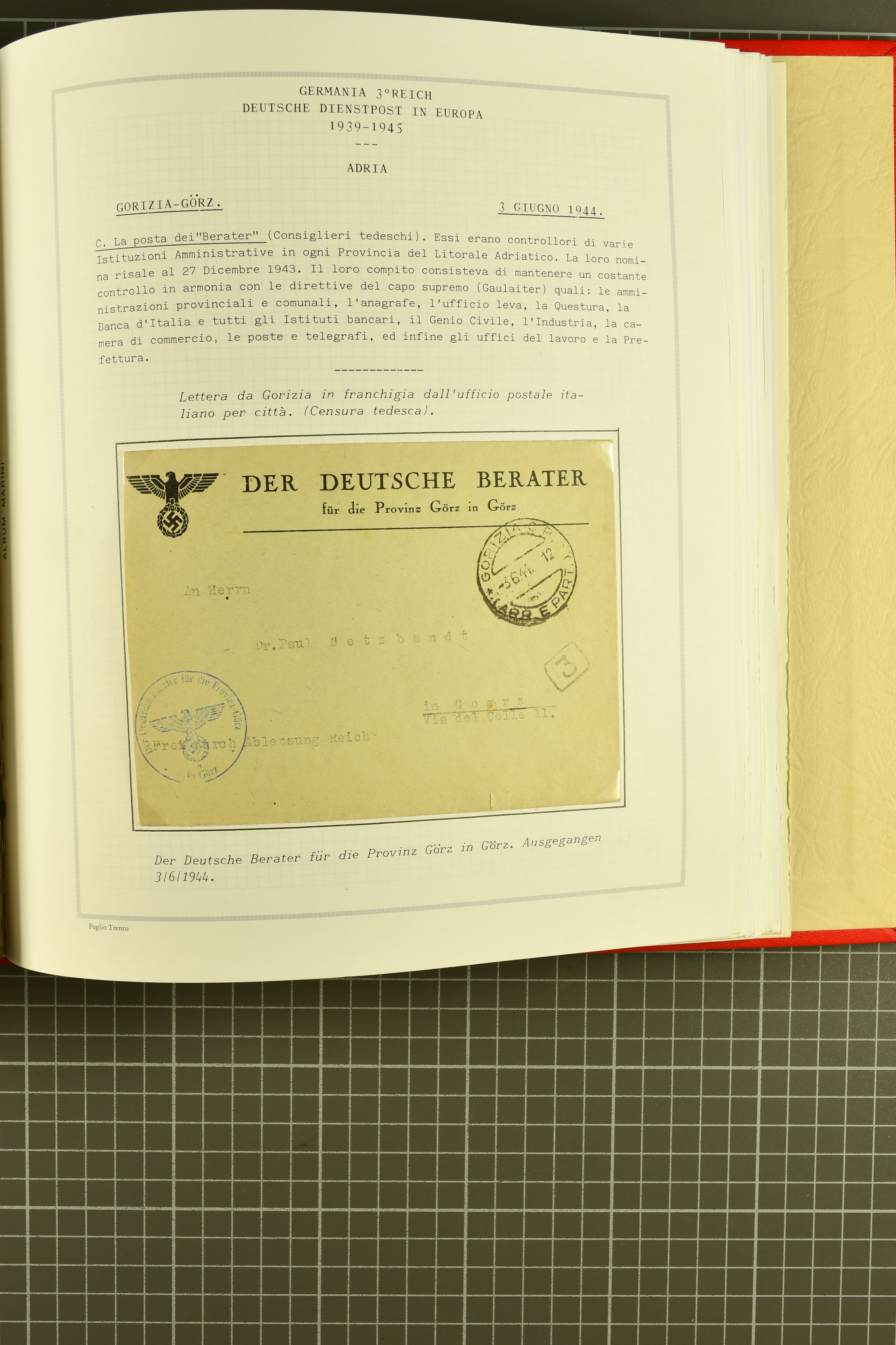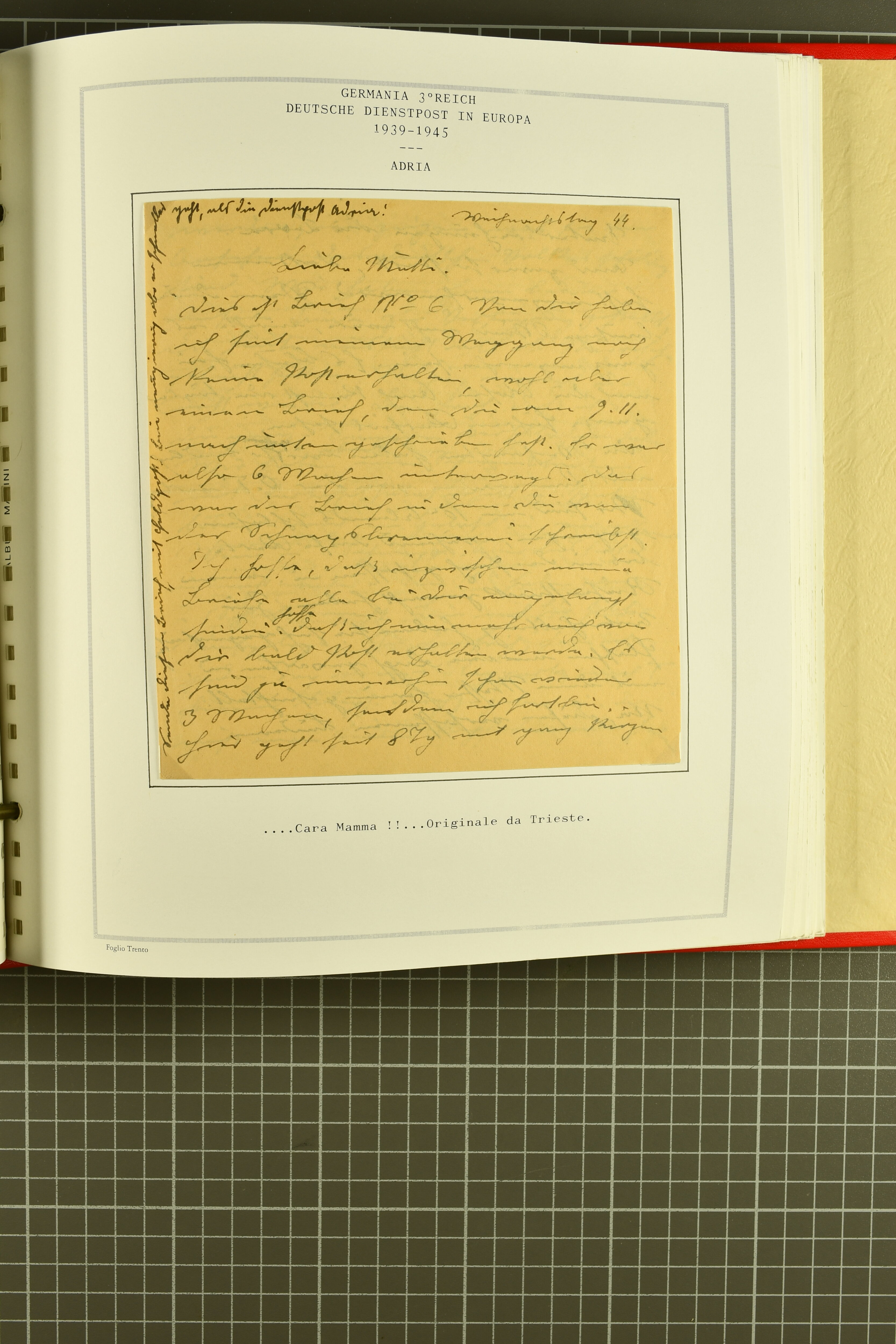 1818 cover image1944/45: Aufgezogene Sammlung „Adriatisches Küstenland“ mit deutschen und italienischen Briefmarken sowie portofreier Feldpost ohne Marken. Enthalten sind Zensurpost, Kriegsgefangenenpost, ein Absenderumschlag des Deutschen Beraters aus verschiedenen Orten -Triest, Fiume, Görz. Dann auch einige philatelistische Belege sowie zuletzt zwei Fotokopien (Image 1) (Image 2) (Image 3) (Image 4) (Image 5) (Image 6) (Image 7) (Image 8) (Image 9) (Image 10) (Image 11) (Image 12) (Image 13) (Image 14) (Image 15) (Image 16) (Image 17) (Image 18) (Image 19) (Image 20) (Image 21) (Image 22) (Image 23) (Image 24) (Image 25) (Image 26) (Image 27) (Image 28) (Image 29) (Image 30) (Image 31) (Image 32) (Image 33) (Image 34) (Image 35) (Image 36) (Image 37) (Image 38) (Image 39) (Image 40) (Image 41) (Image 42) (Image 43) (Image 44) (Image 45) (Image 46)