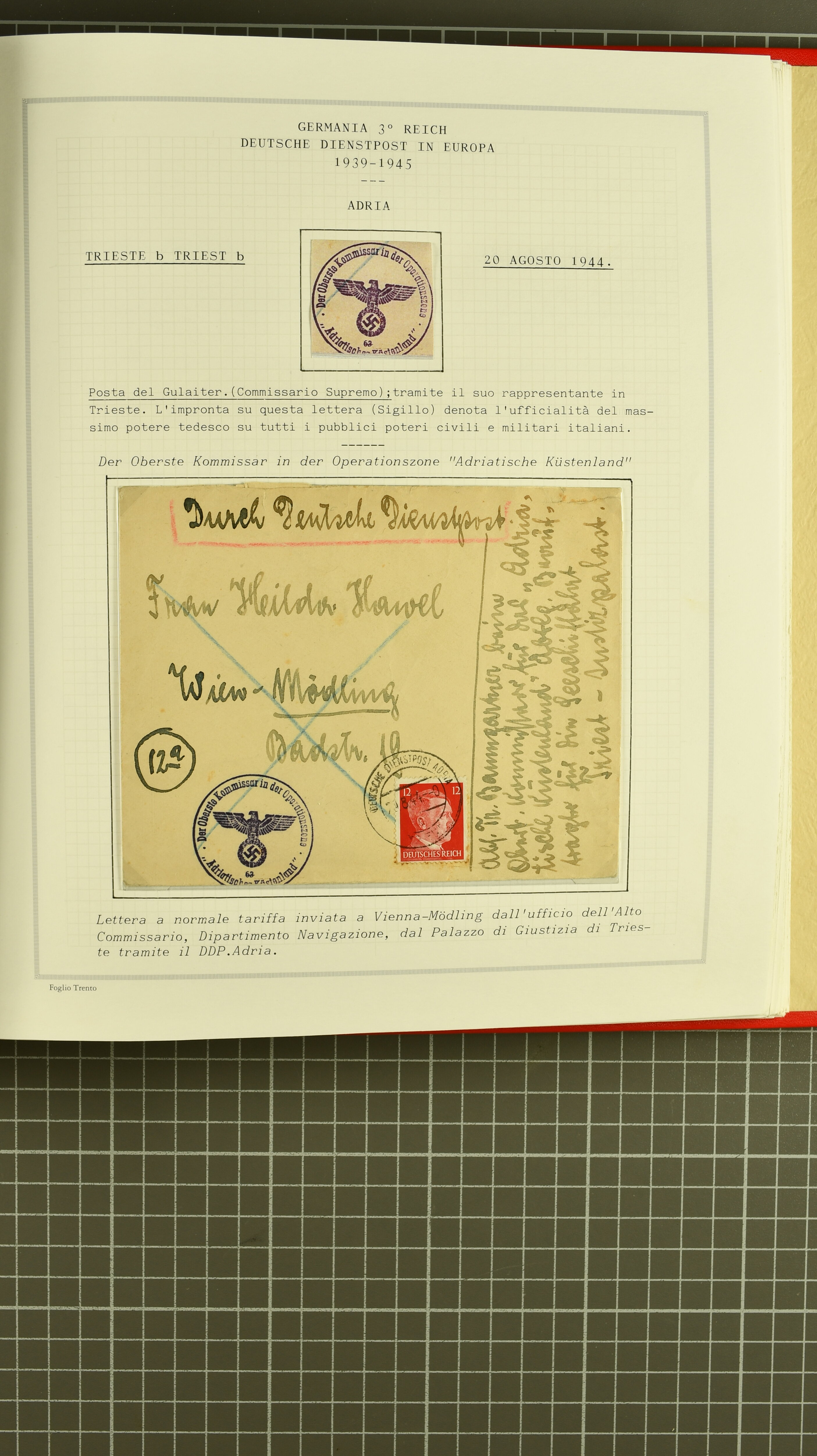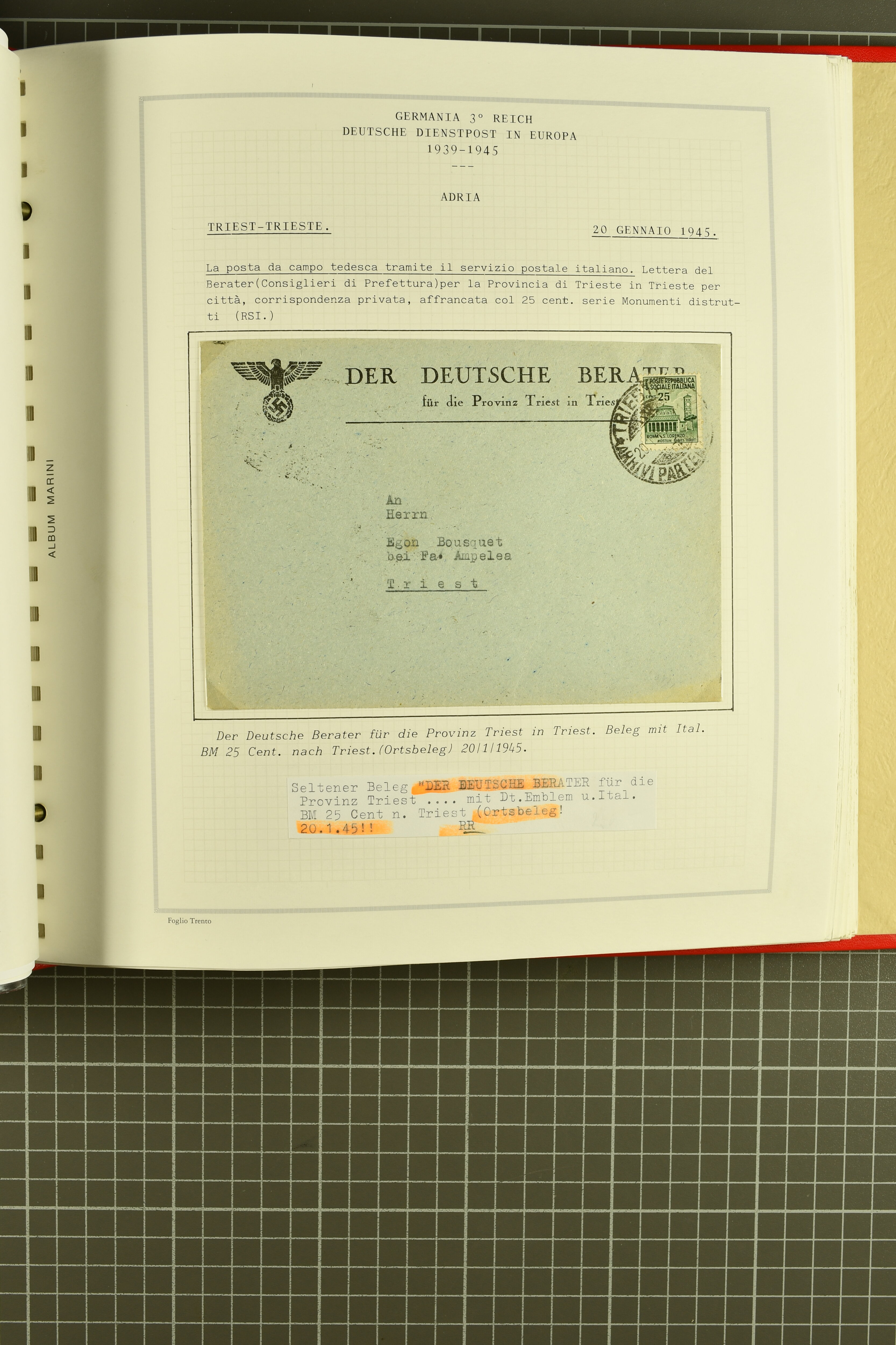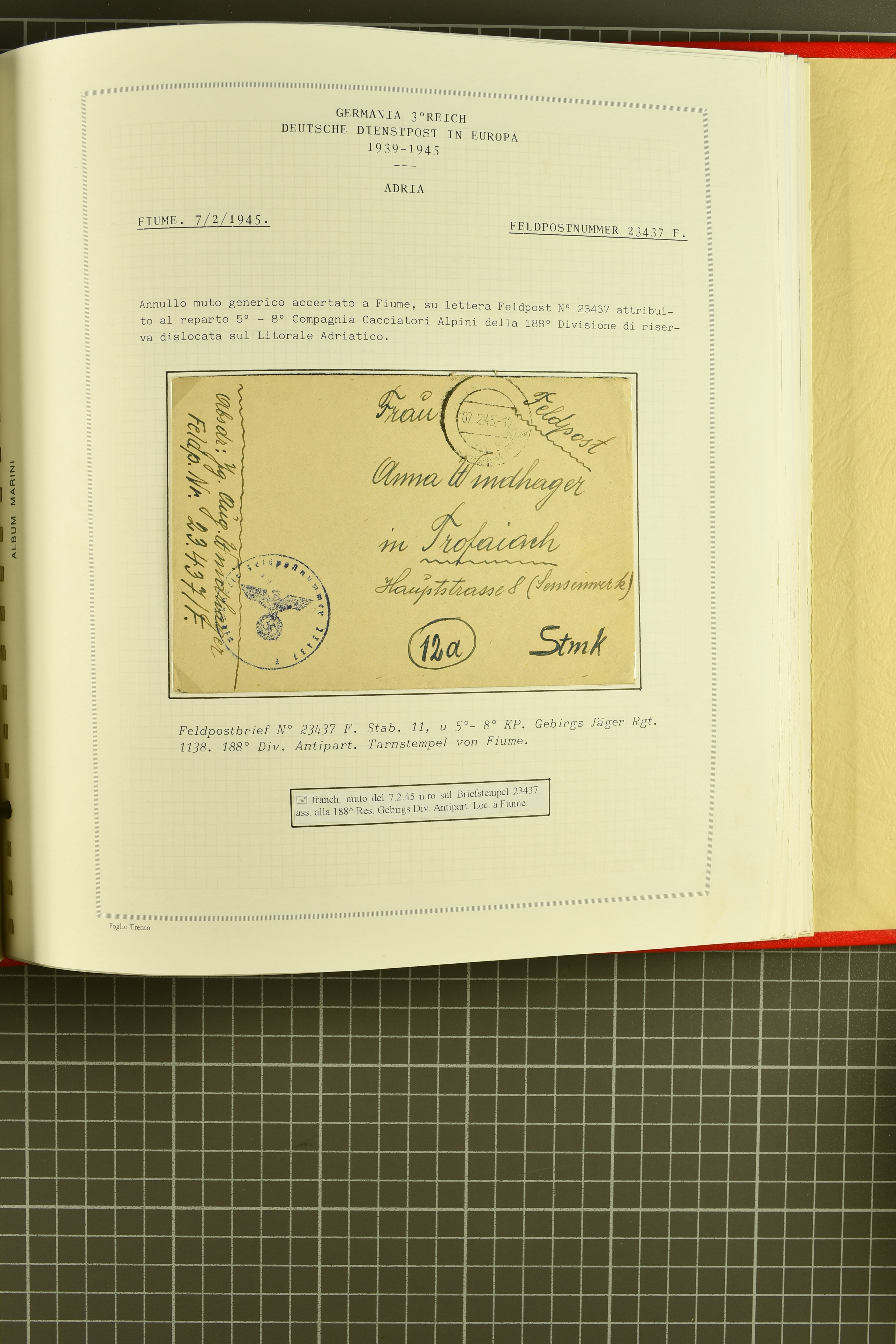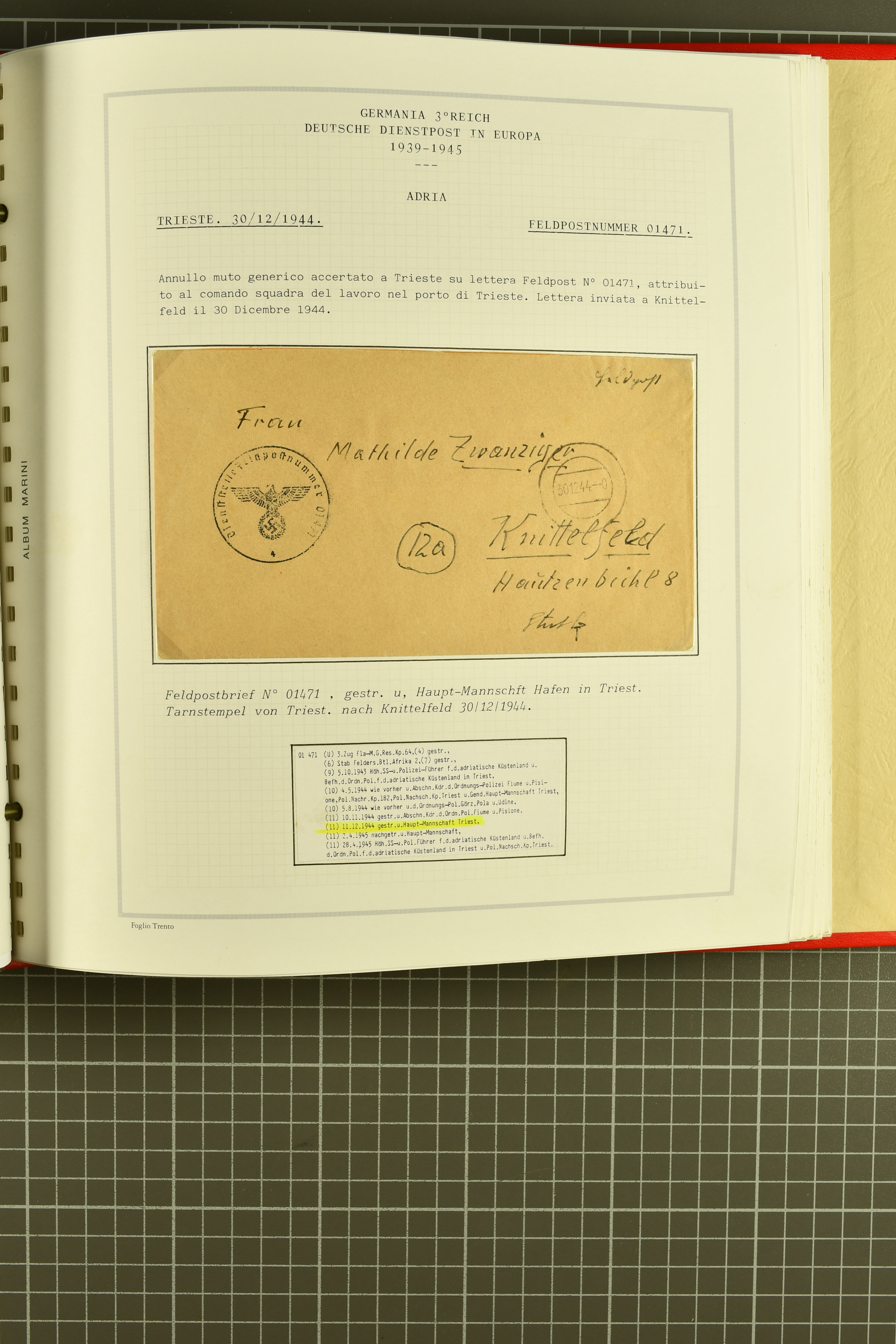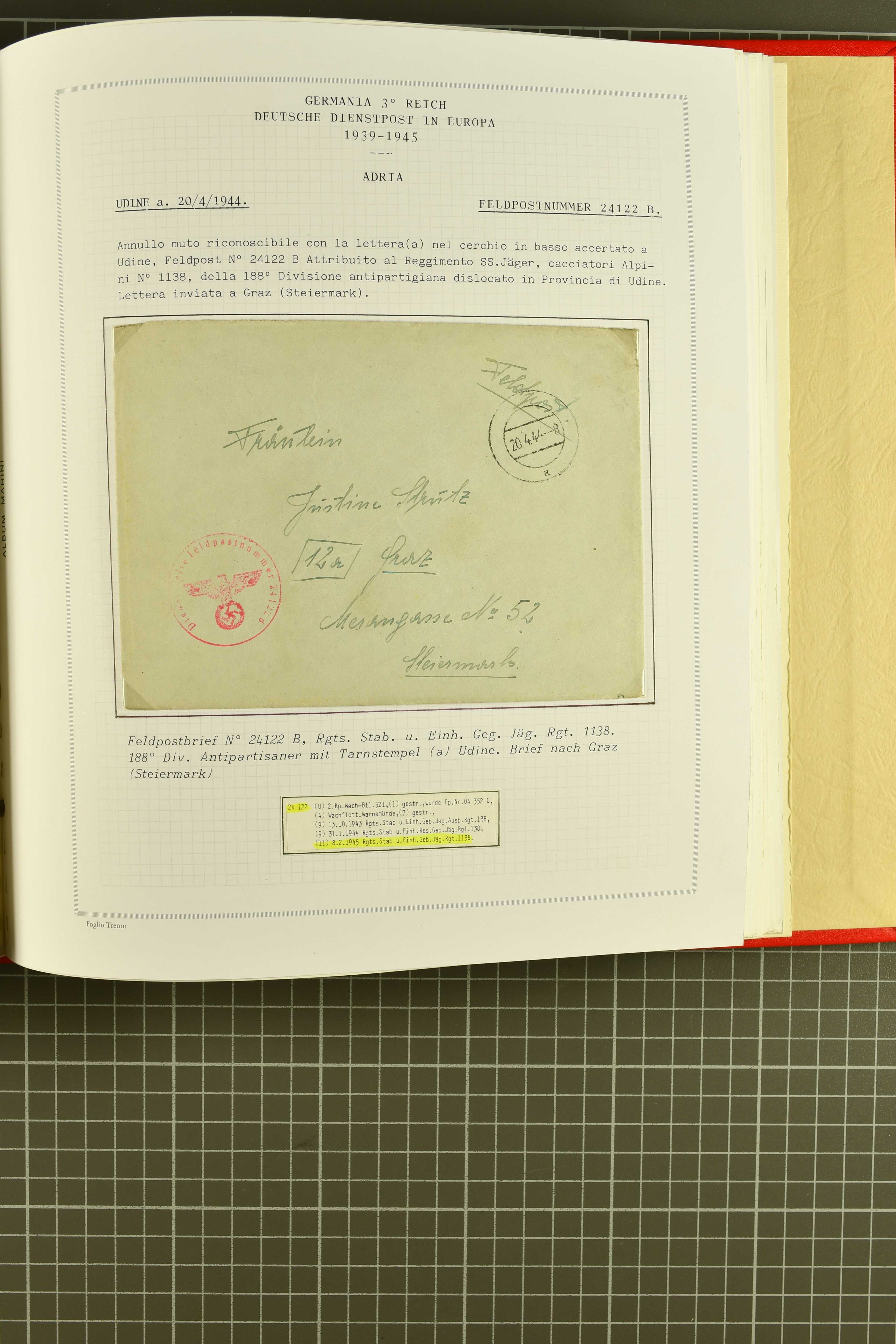 1818 cover image1944/45: Aufgezogene Sammlung „Adriatisches Küstenland“ mit deutschen und italienischen Briefmarken sowie portofreier Feldpost ohne Marken. Enthalten sind Zensurpost, Kriegsgefangenenpost, ein Absenderumschlag des Deutschen Beraters aus verschiedenen Orten -Triest, Fiume, Görz. Dann auch einige philatelistische Belege sowie zuletzt zwei Fotokopien (Image 1) (Image 2) (Image 3) (Image 4) (Image 5) (Image 6) (Image 7) (Image 8) (Image 9) (Image 10) (Image 11) (Image 12) (Image 13) (Image 14) (Image 15) (Image 16) (Image 17) (Image 18) (Image 19) (Image 20) (Image 21) (Image 22) (Image 23) (Image 24) (Image 25) (Image 26) (Image 27) (Image 28) (Image 29) (Image 30) (Image 31) (Image 32) (Image 33) (Image 34) (Image 35) (Image 36) (Image 37) (Image 38) (Image 39) (Image 40) (Image 41) (Image 42) (Image 43) (Image 44) (Image 45) (Image 46)