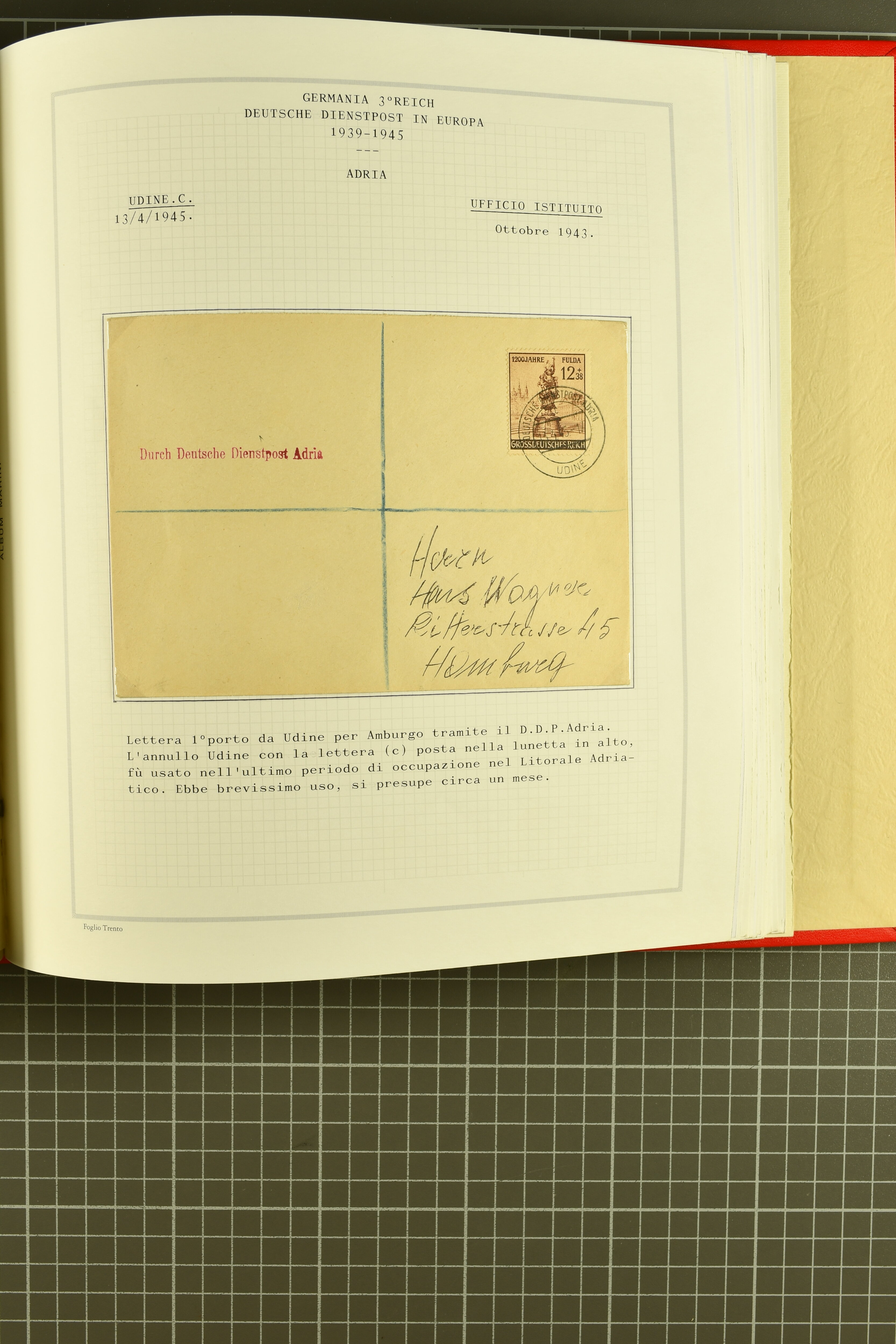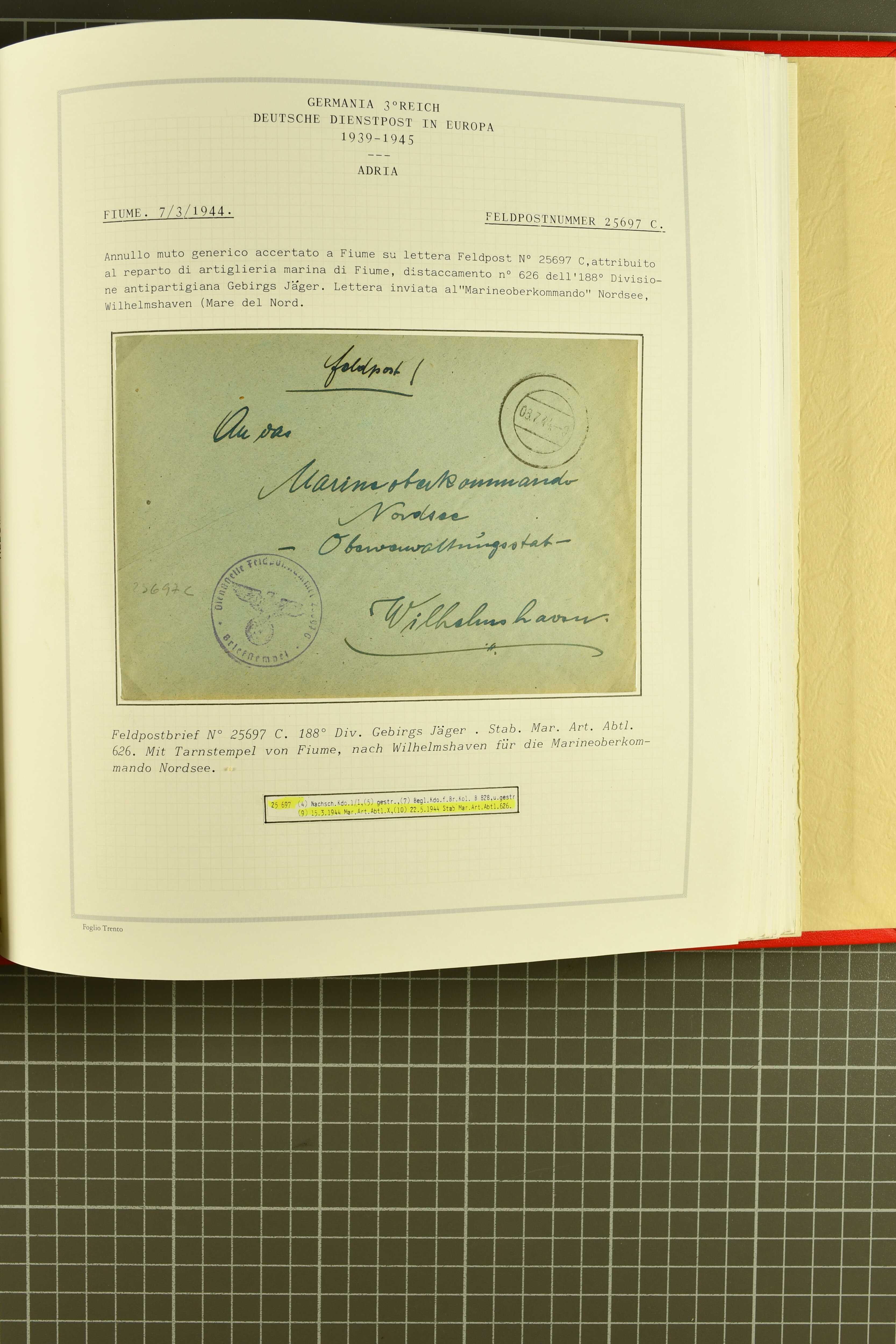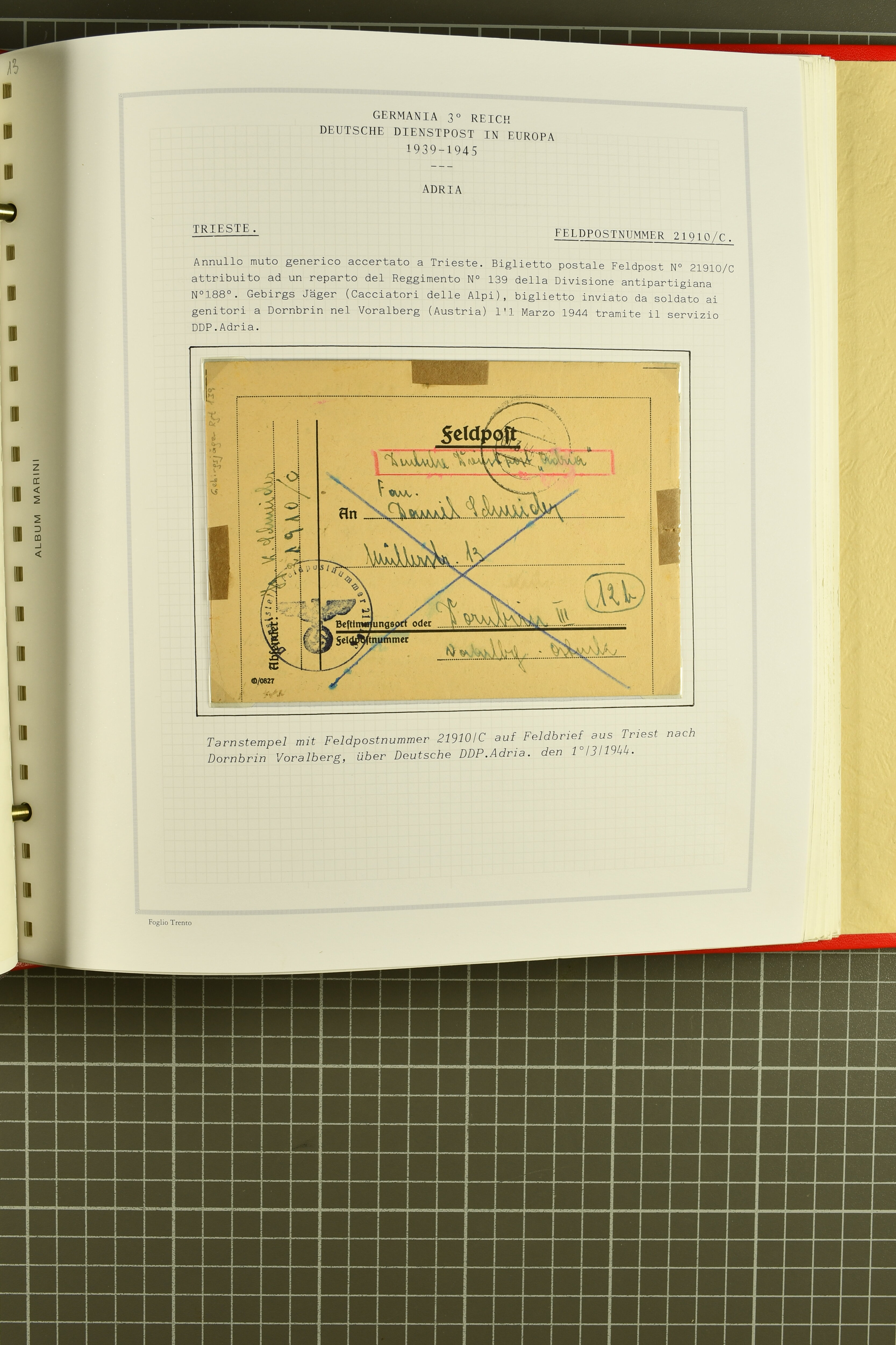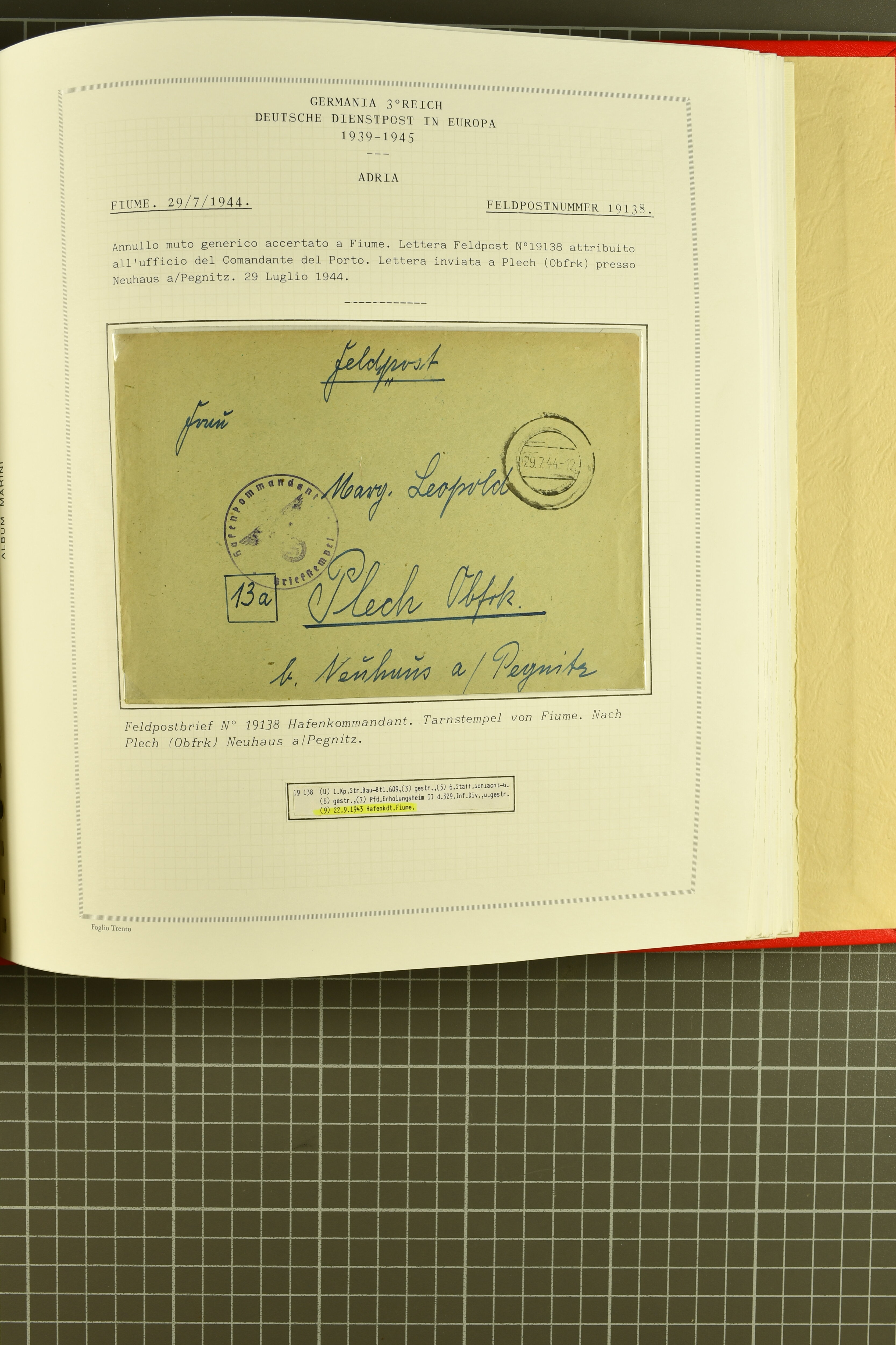 1818 cover image1944/45: Aufgezogene Sammlung „Adriatisches Küstenland“ mit deutschen und italienischen Briefmarken sowie portofreier Feldpost ohne Marken. Enthalten sind Zensurpost, Kriegsgefangenenpost, ein Absenderumschlag des Deutschen Beraters aus verschiedenen Orten -Triest, Fiume, Görz. Dann auch einige philatelistische Belege sowie zuletzt zwei Fotokopien (Image 1) (Image 2) (Image 3) (Image 4) (Image 5) (Image 6) (Image 7) (Image 8) (Image 9) (Image 10) (Image 11) (Image 12) (Image 13) (Image 14) (Image 15) (Image 16) (Image 17) (Image 18) (Image 19) (Image 20) (Image 21) (Image 22) (Image 23) (Image 24) (Image 25) (Image 26) (Image 27) (Image 28) (Image 29) (Image 30) (Image 31) (Image 32) (Image 33) (Image 34) (Image 35) (Image 36) (Image 37) (Image 38) (Image 39) (Image 40) (Image 41) (Image 42) (Image 43) (Image 44) (Image 45) (Image 46)