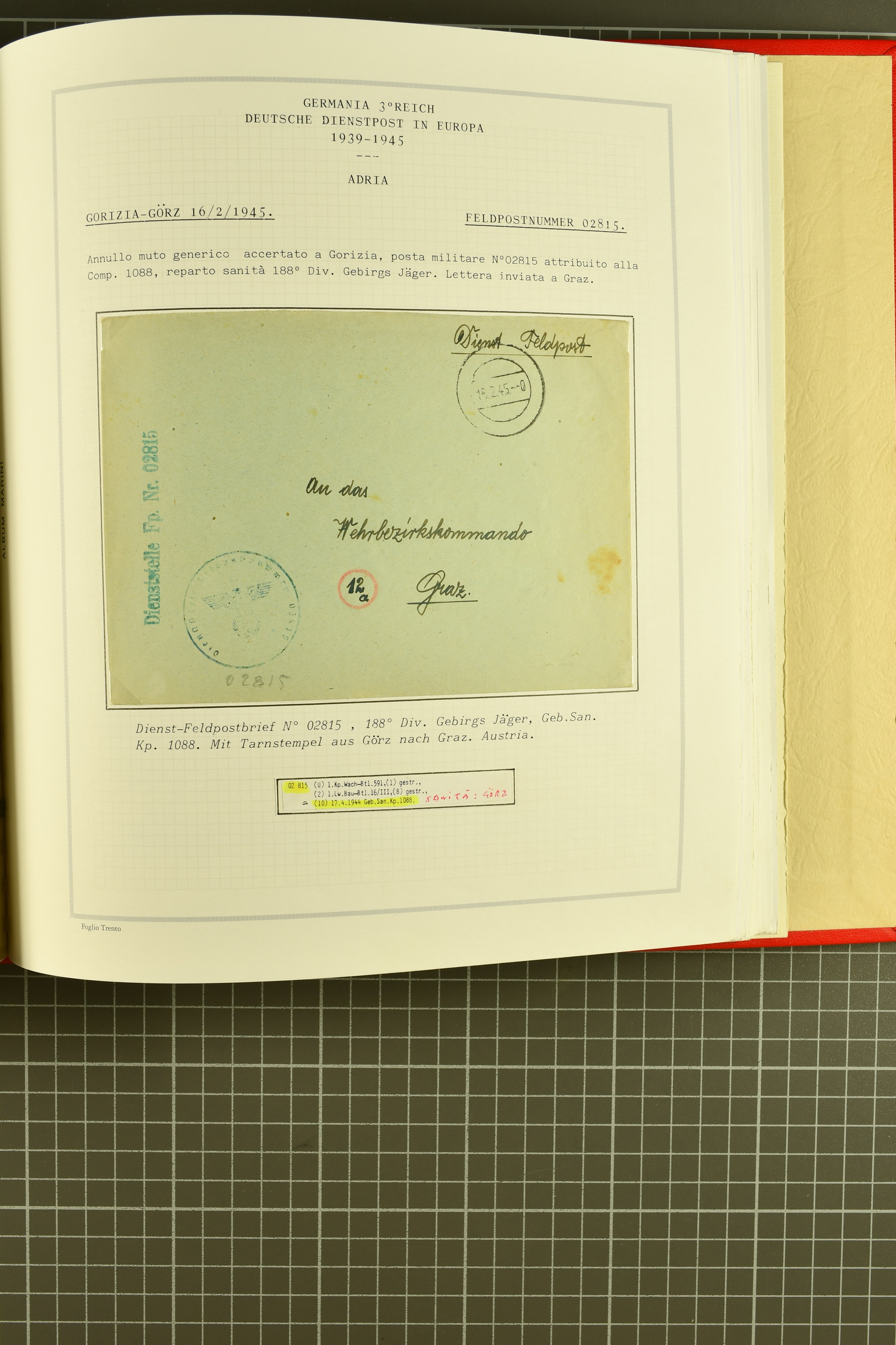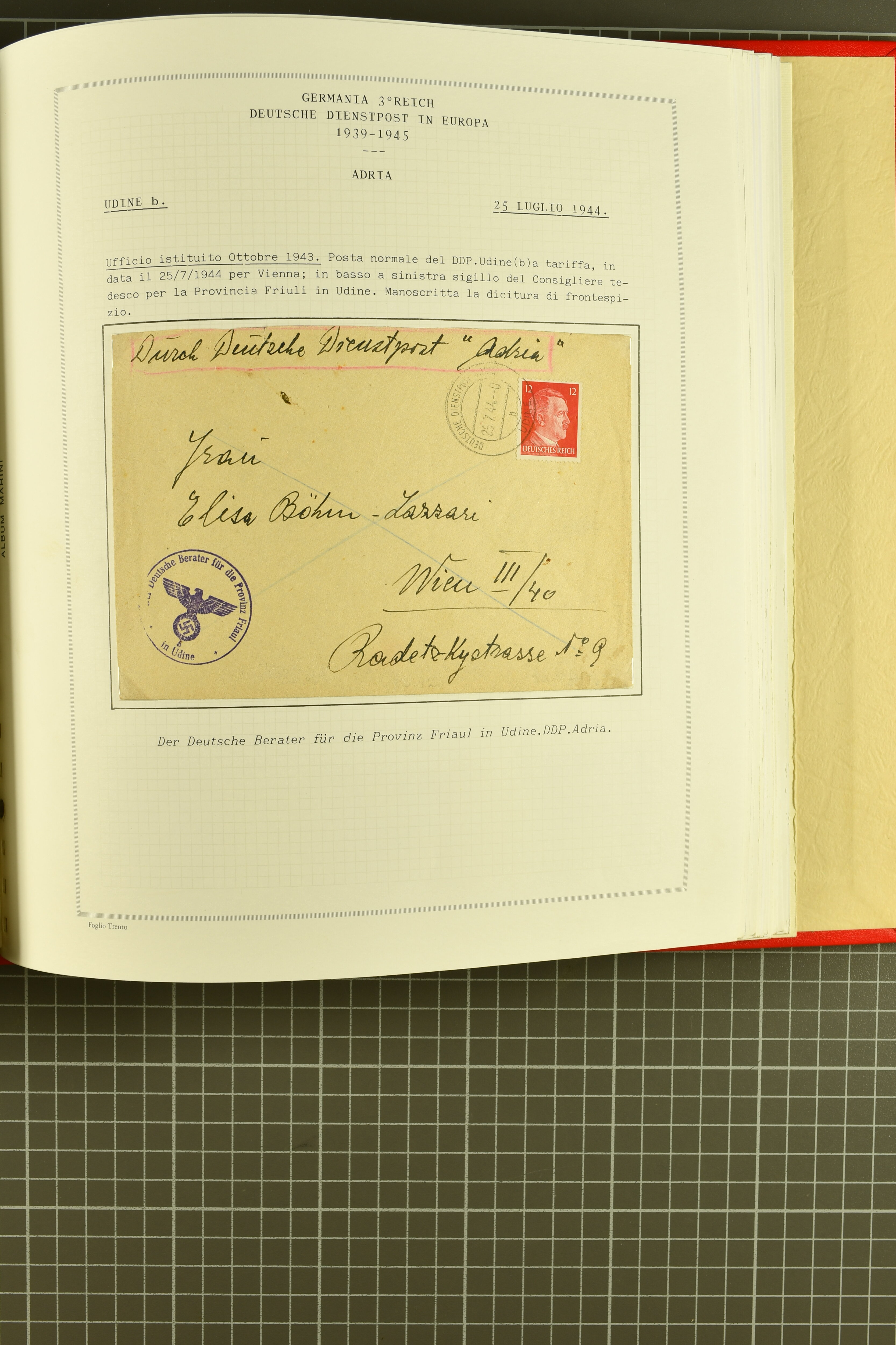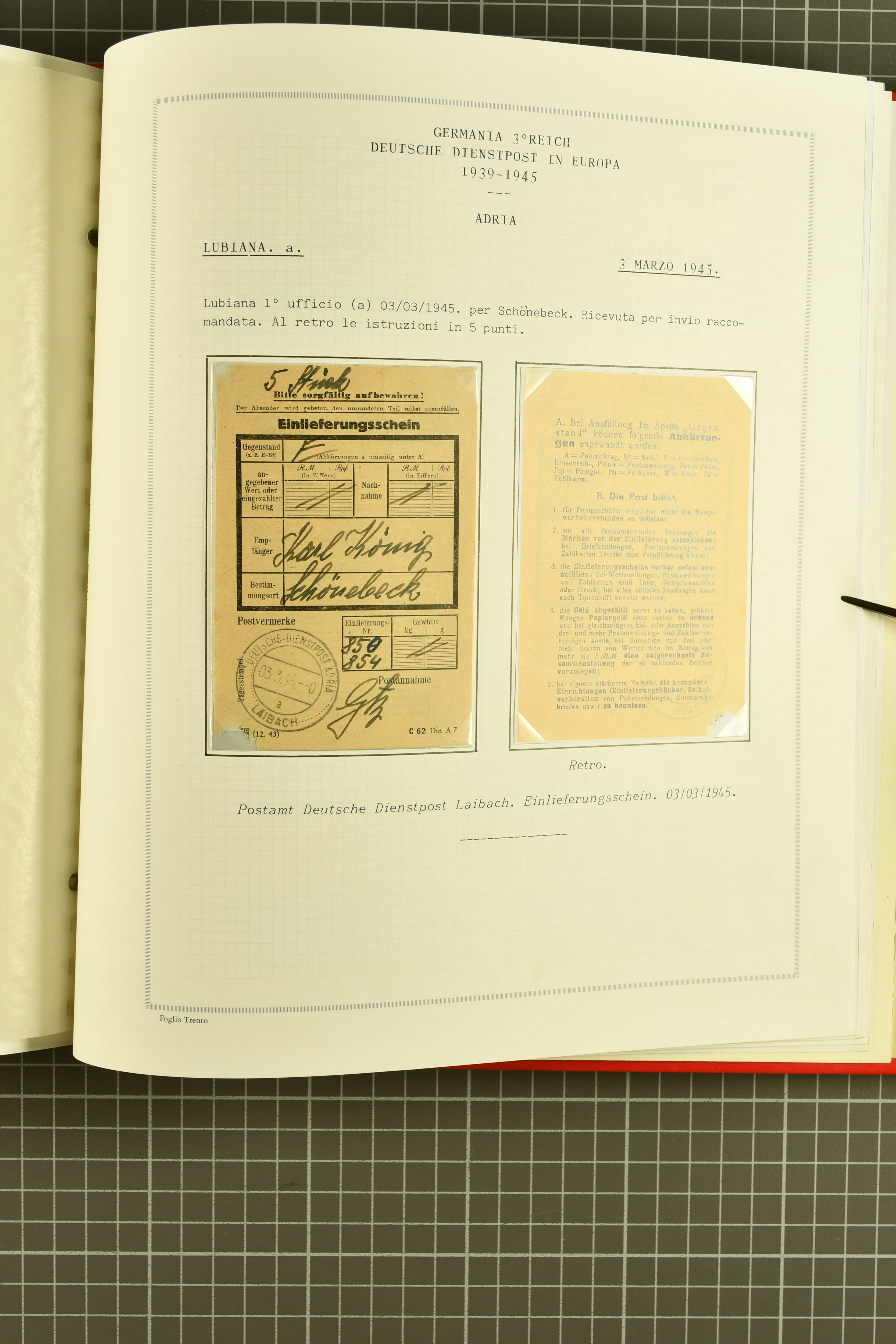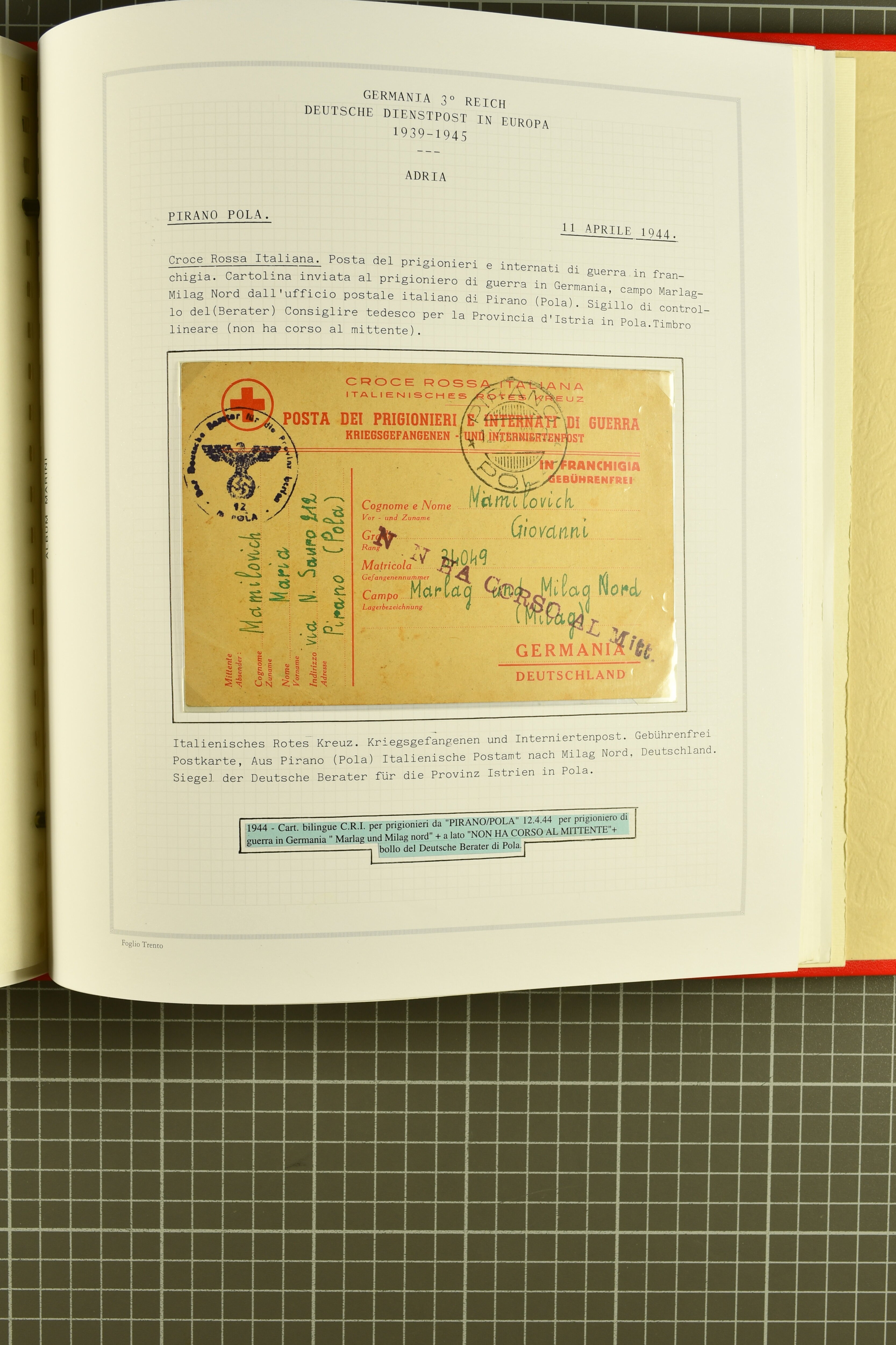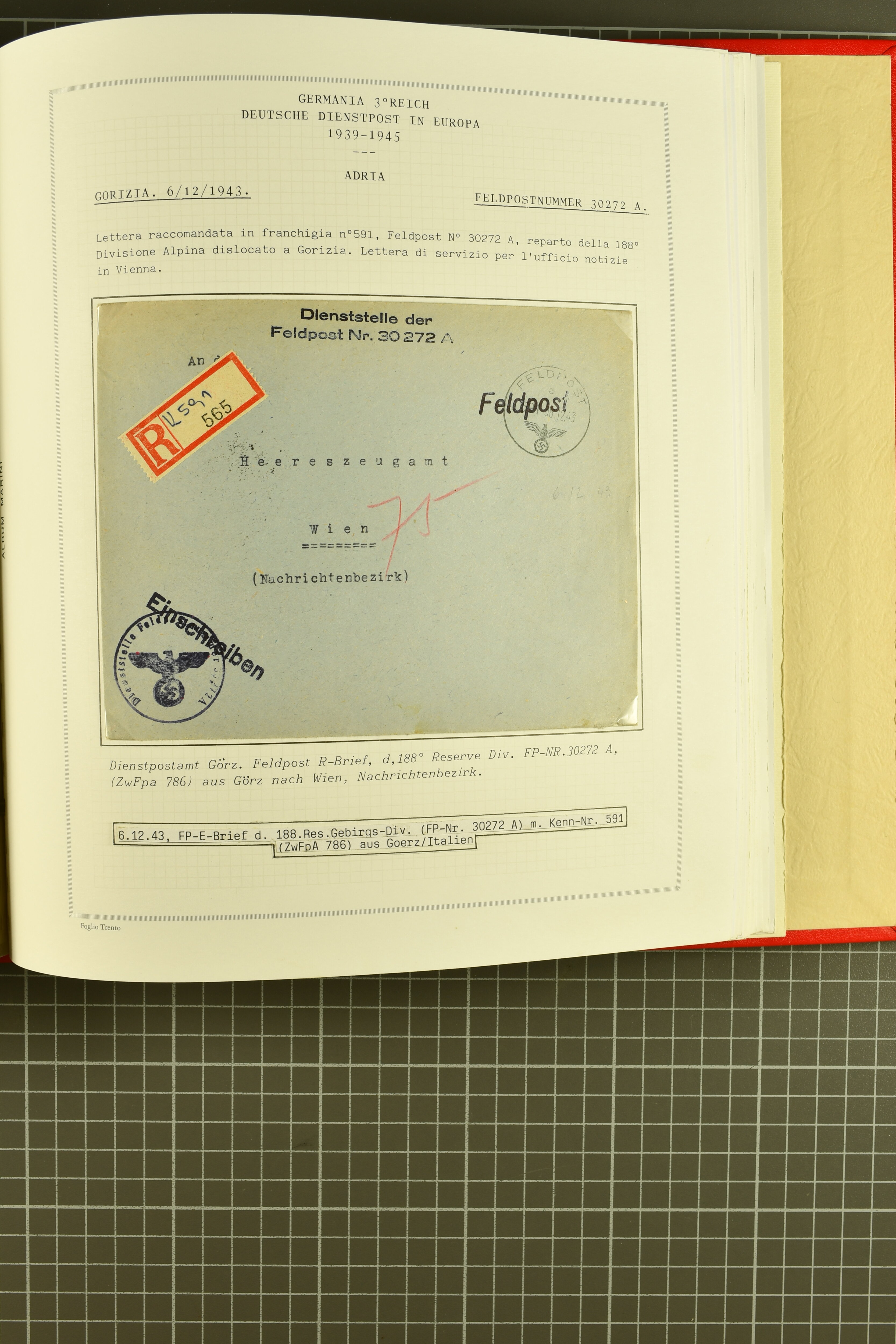 1818 cover image1944/45: Aufgezogene Sammlung „Adriatisches Küstenland“ mit deutschen und italienischen Briefmarken sowie portofreier Feldpost ohne Marken. Enthalten sind Zensurpost, Kriegsgefangenenpost, ein Absenderumschlag des Deutschen Beraters aus verschiedenen Orten -Triest, Fiume, Görz. Dann auch einige philatelistische Belege sowie zuletzt zwei Fotokopien (Image 1) (Image 2) (Image 3) (Image 4) (Image 5) (Image 6) (Image 7) (Image 8) (Image 9) (Image 10) (Image 11) (Image 12) (Image 13) (Image 14) (Image 15) (Image 16) (Image 17) (Image 18) (Image 19) (Image 20) (Image 21) (Image 22) (Image 23) (Image 24) (Image 25) (Image 26) (Image 27) (Image 28) (Image 29) (Image 30) (Image 31) (Image 32) (Image 33) (Image 34) (Image 35) (Image 36) (Image 37) (Image 38) (Image 39) (Image 40) (Image 41) (Image 42) (Image 43) (Image 44) (Image 45) (Image 46)