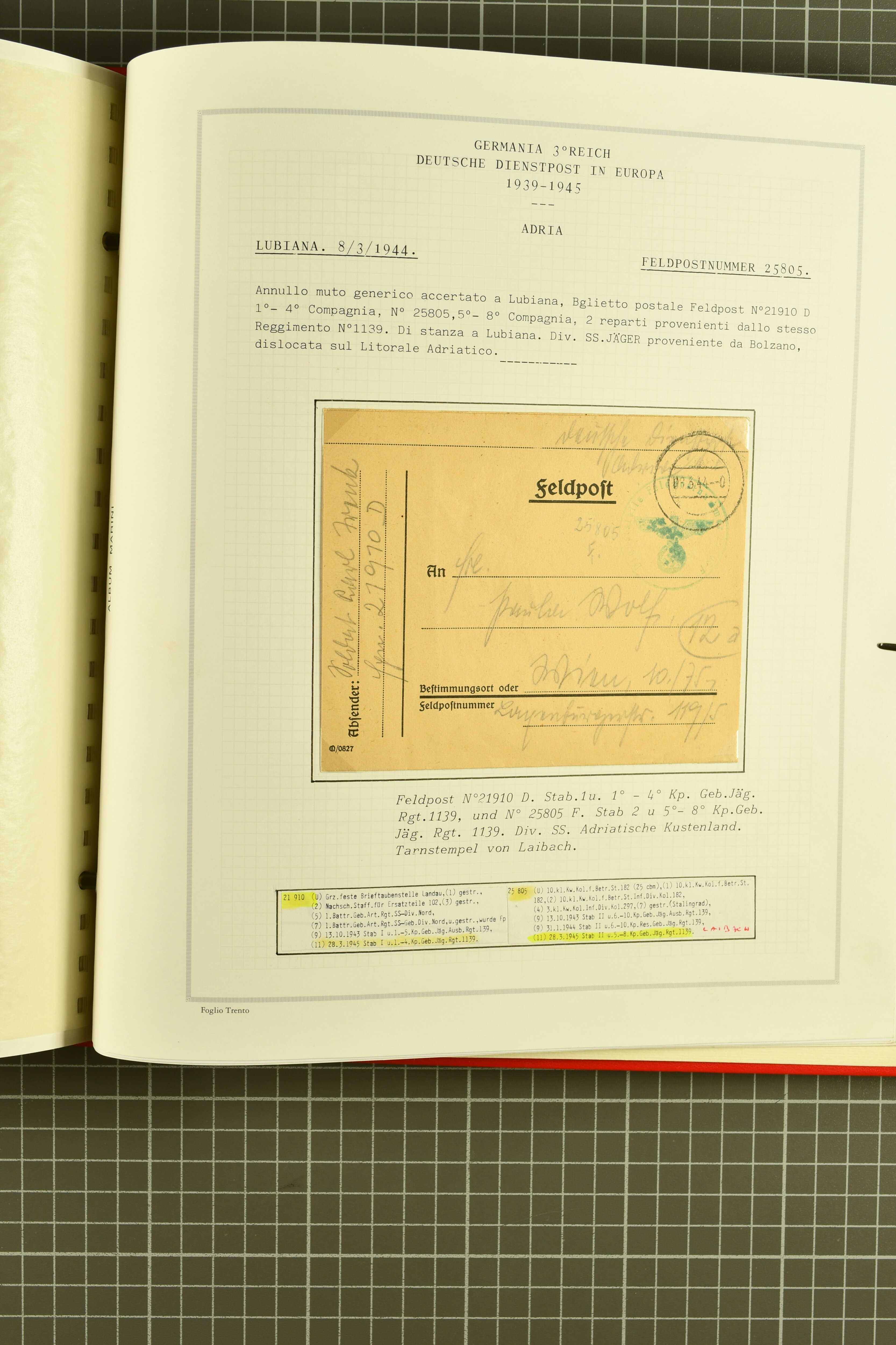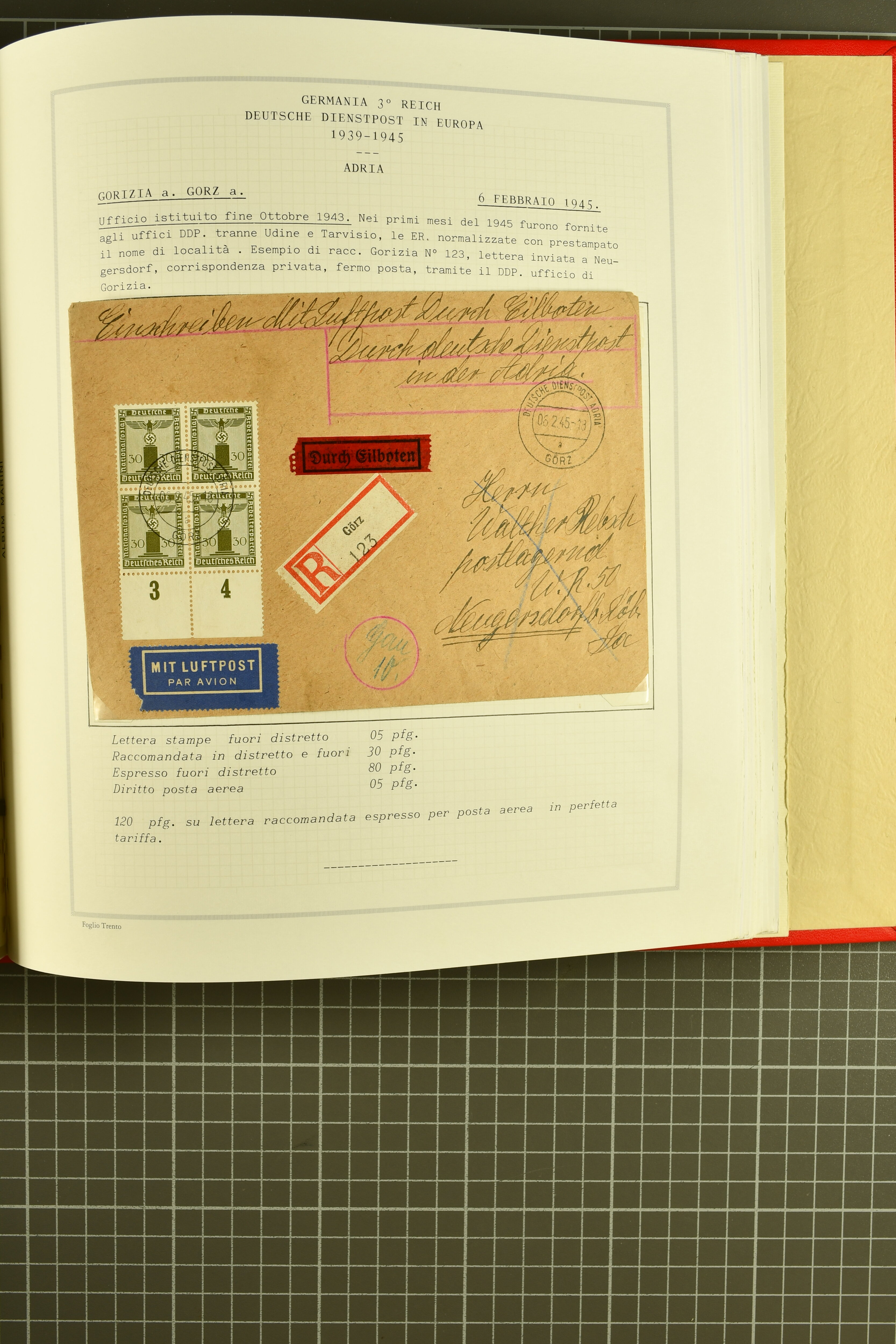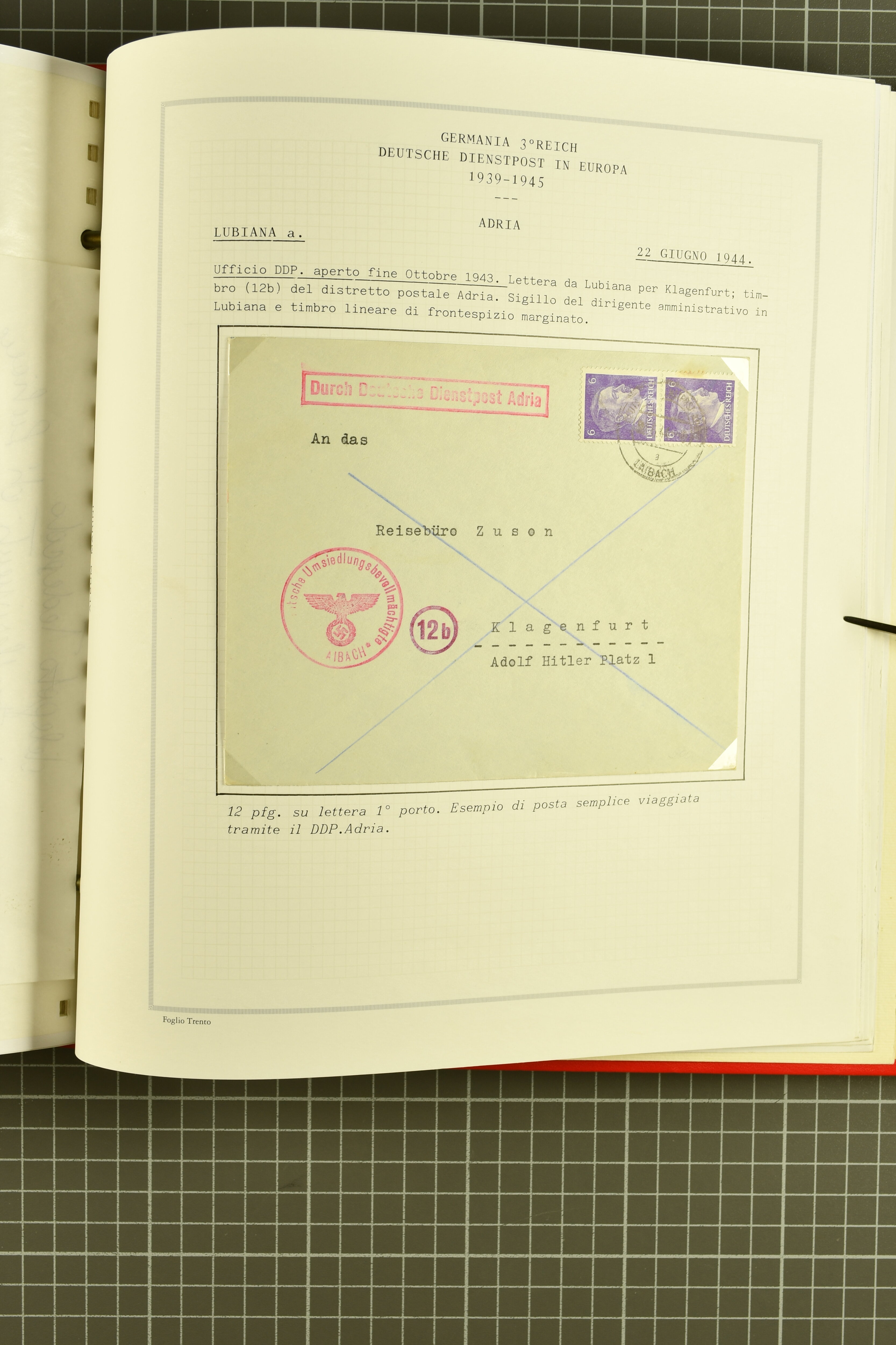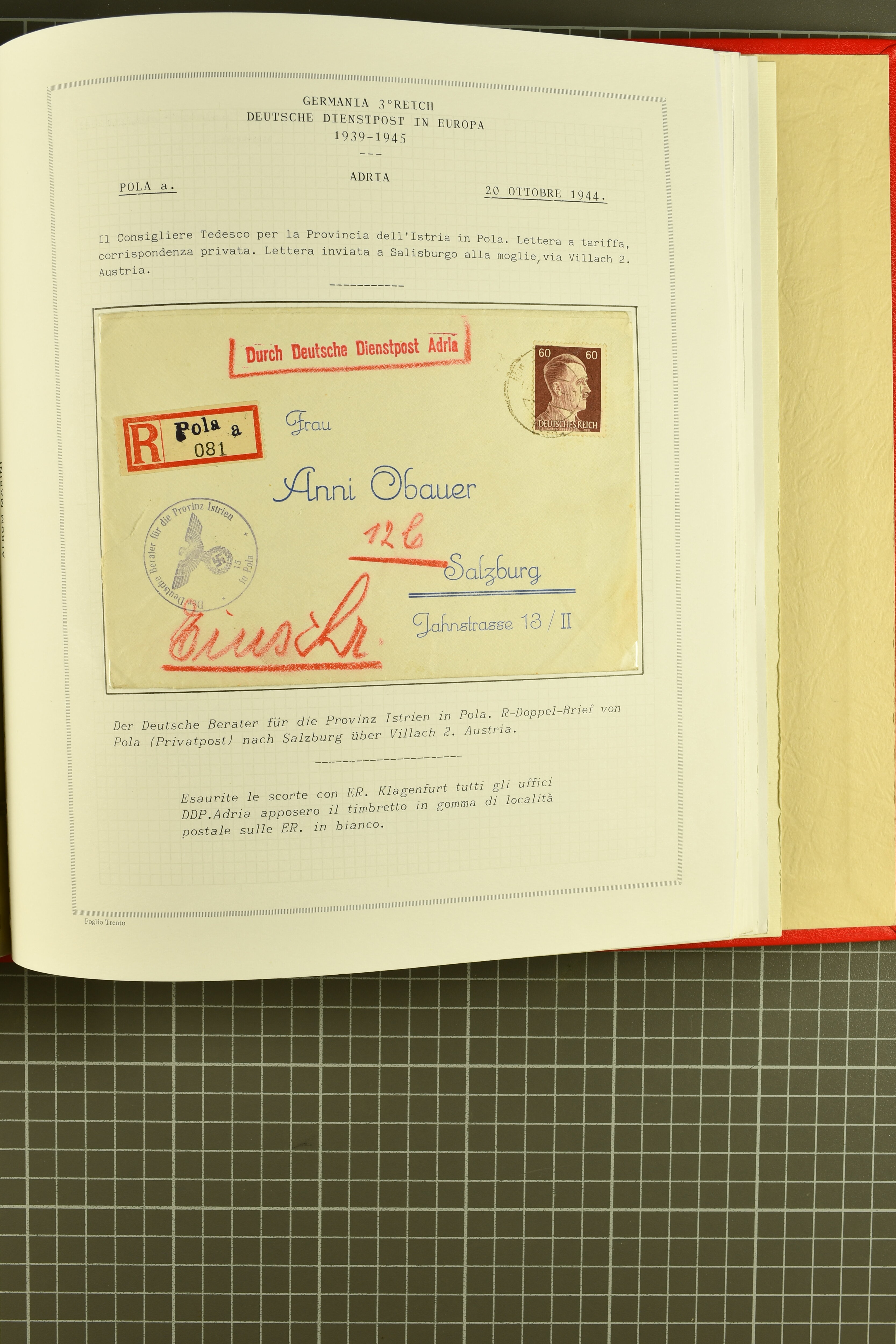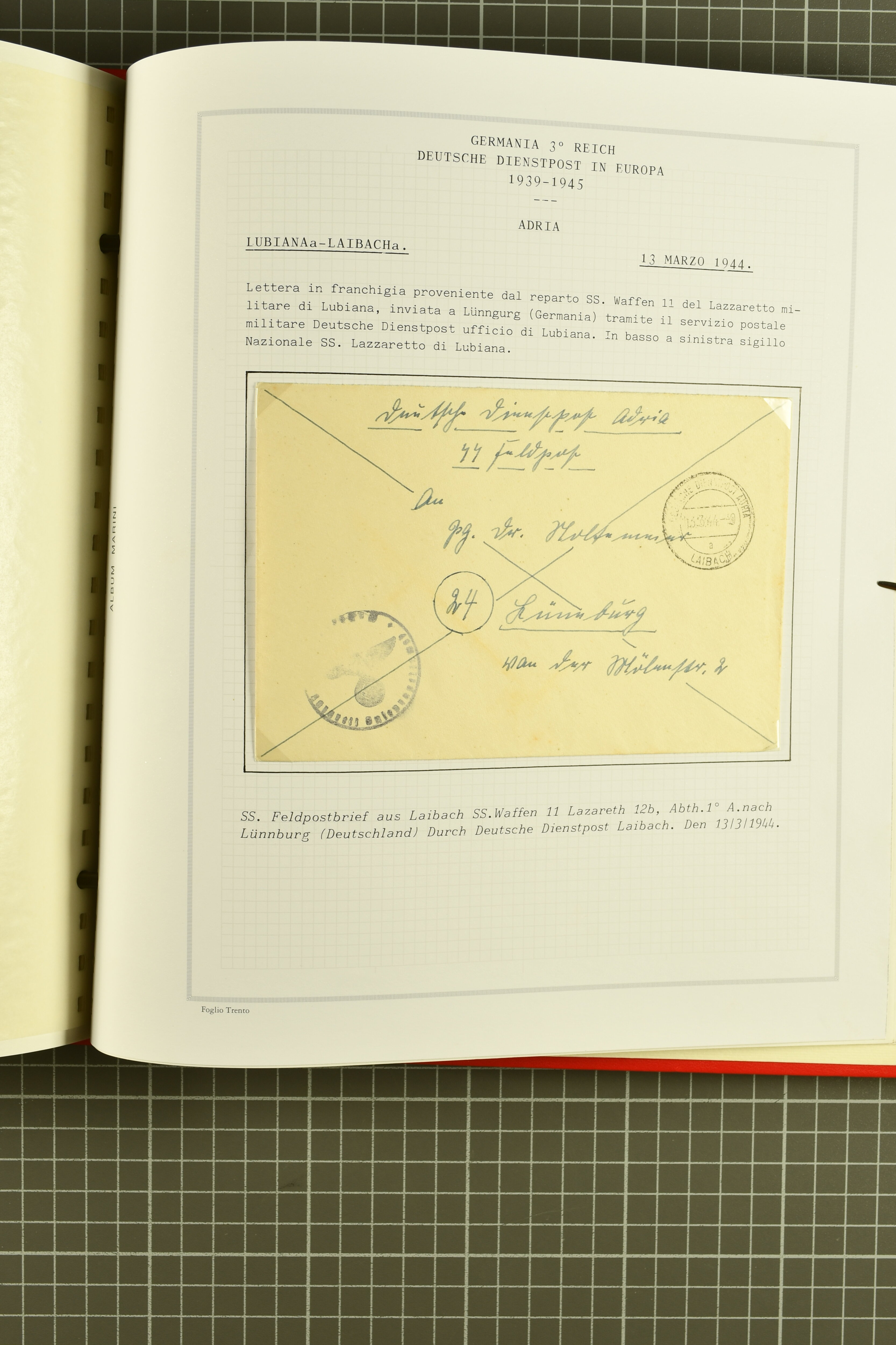 1818 cover image1944/45: Aufgezogene Sammlung „Adriatisches Küstenland“ mit deutschen und italienischen Briefmarken sowie portofreier Feldpost ohne Marken. Enthalten sind Zensurpost, Kriegsgefangenenpost, ein Absenderumschlag des Deutschen Beraters aus verschiedenen Orten -Triest, Fiume, Görz. Dann auch einige philatelistische Belege sowie zuletzt zwei Fotokopien (Image 1) (Image 2) (Image 3) (Image 4) (Image 5) (Image 6) (Image 7) (Image 8) (Image 9) (Image 10) (Image 11) (Image 12) (Image 13) (Image 14) (Image 15) (Image 16) (Image 17) (Image 18) (Image 19) (Image 20) (Image 21) (Image 22) (Image 23) (Image 24) (Image 25) (Image 26) (Image 27) (Image 28) (Image 29) (Image 30) (Image 31) (Image 32) (Image 33) (Image 34) (Image 35) (Image 36) (Image 37) (Image 38) (Image 39) (Image 40) (Image 41) (Image 42) (Image 43) (Image 44) (Image 45) (Image 46)