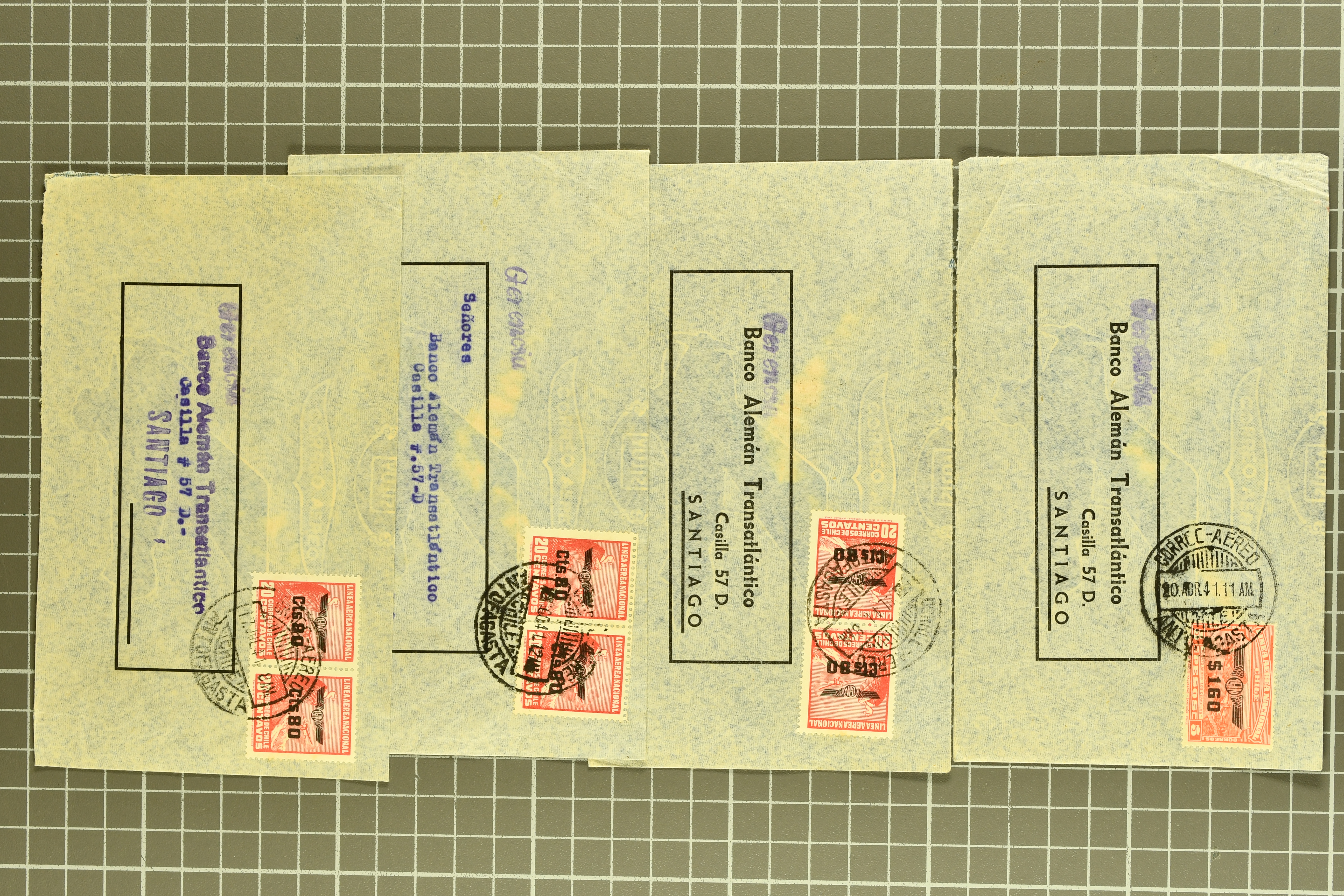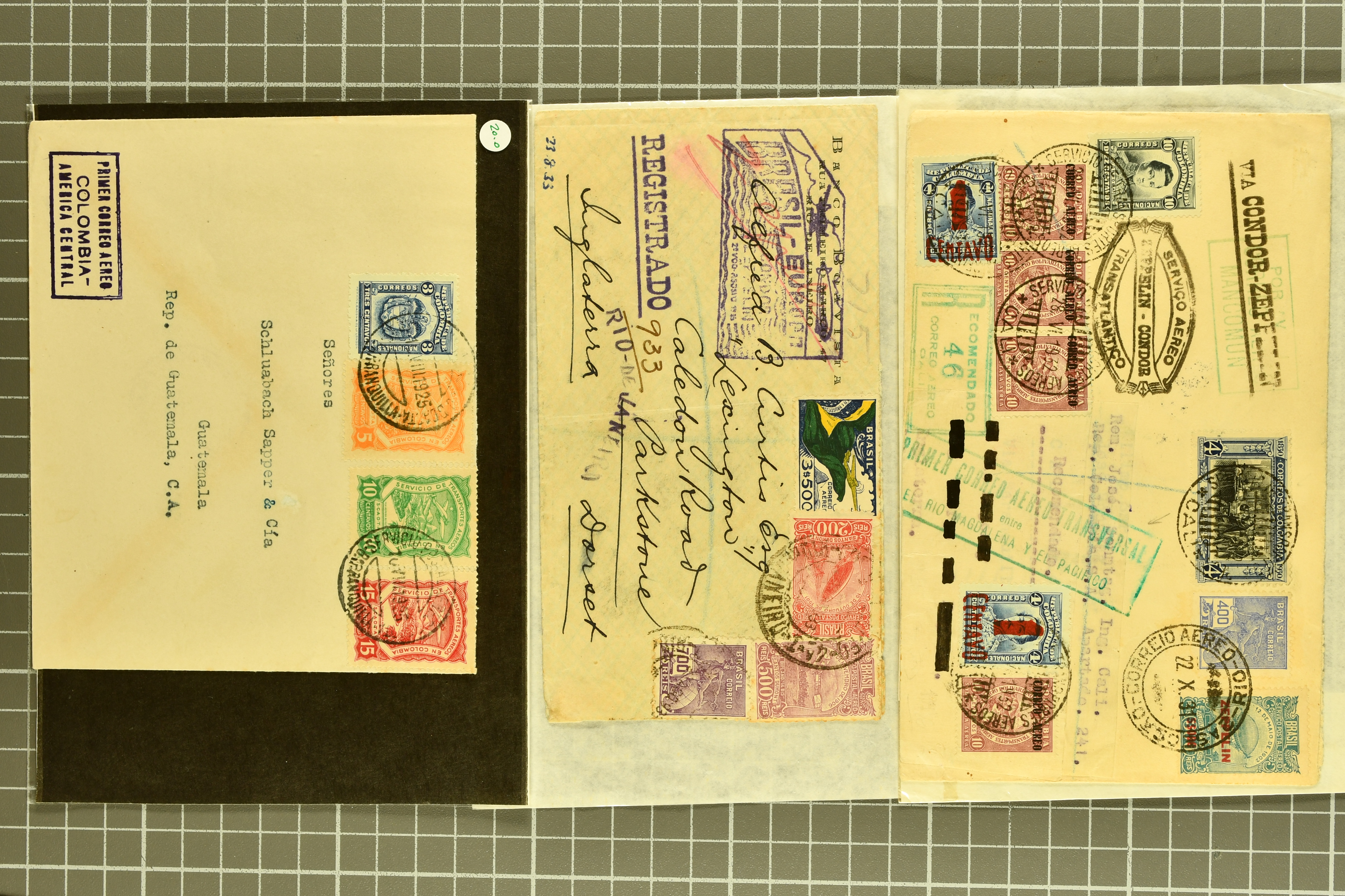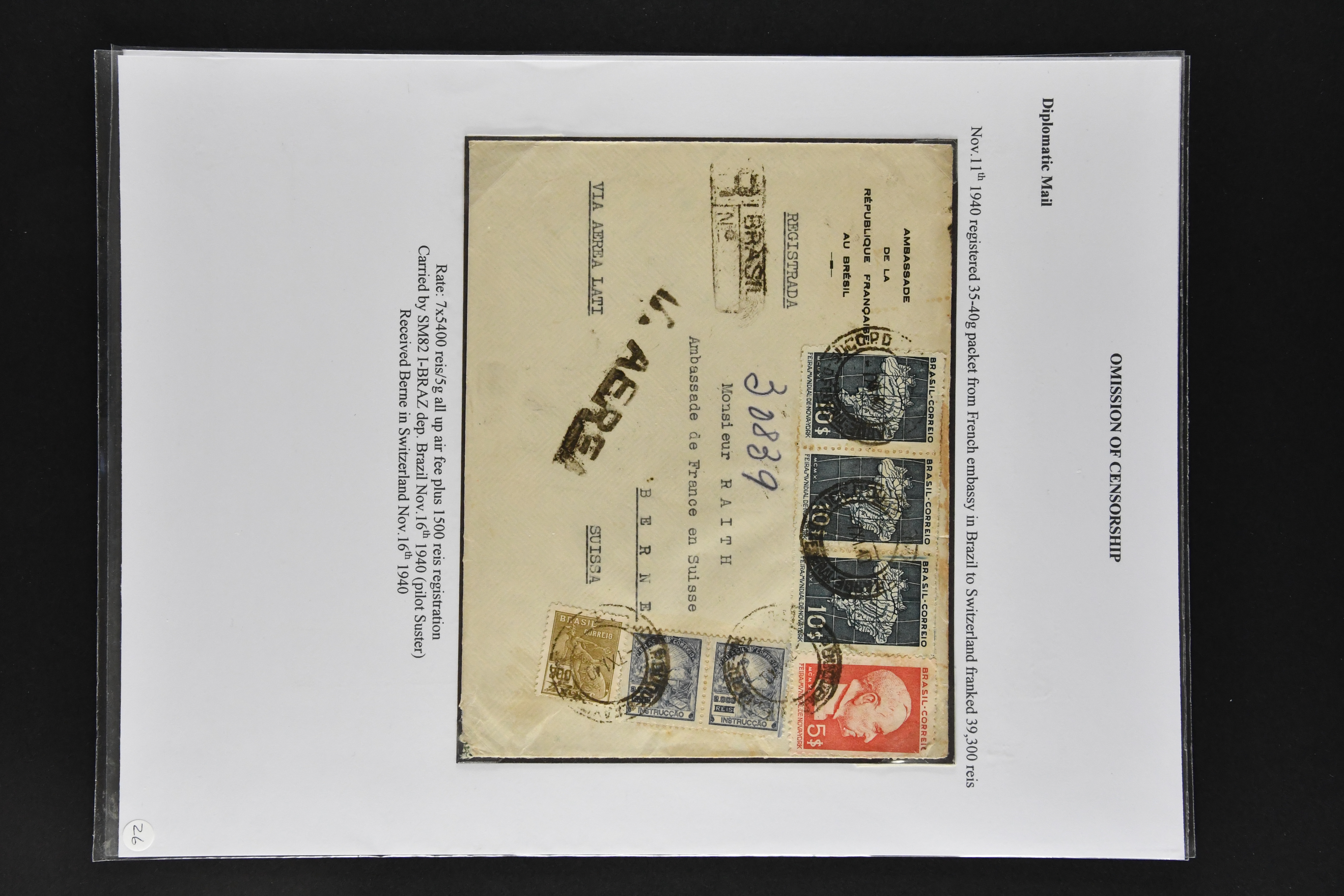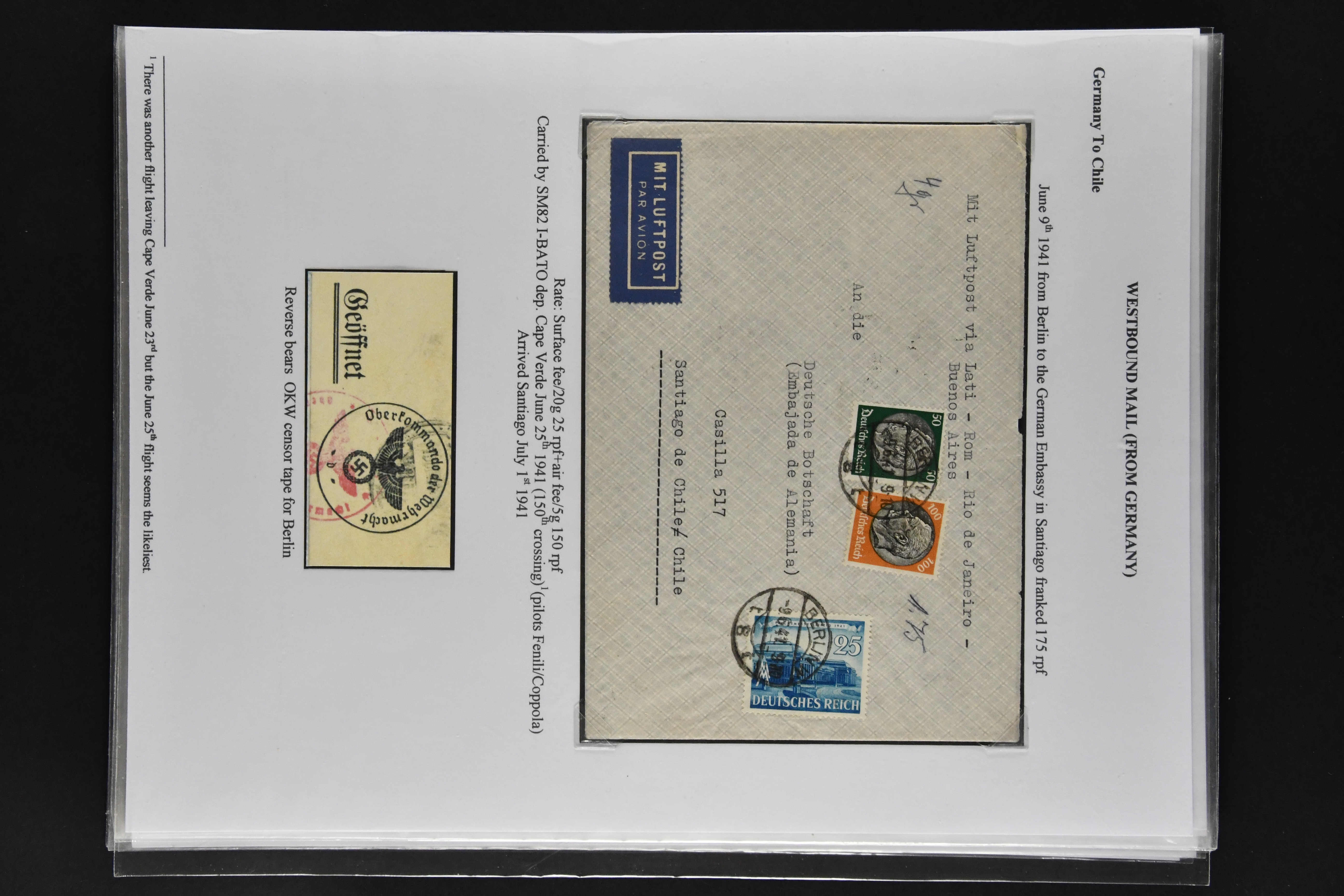 1467 cover imageLATI - Diplomatic Mail 1940/41: Interesting assembly of Consular Mail with ten envelopes without censorship, incl. cover franked with 13 L. from Genoa to German Consulate in Lima showing instructional 'Via L.A.T.I.' handstamp in violet, three envelopes to German Embassy in Santiago de Chile, registered envelope from the Brazilian Embassy in Berlin to Rio, vice-versa with cover from German Consulate in Sao Paulo with boxed hs. 'VIA "CONDOR"-"LATI" to Berlin, cover from Italian Consulate 'VIA "CONDOR L.A.T.I.' hs. (CLO3) back to Rome as well as two covers to Switzerland and a LATI printed envelope addressed to 'Wagons Lits // Cook' to Sweden (Image 1) (Image 2) (Image 3) (Image 4) (Image 5) (Image 6) (Image 7) (Image 8) (Image 9) (Image 10)