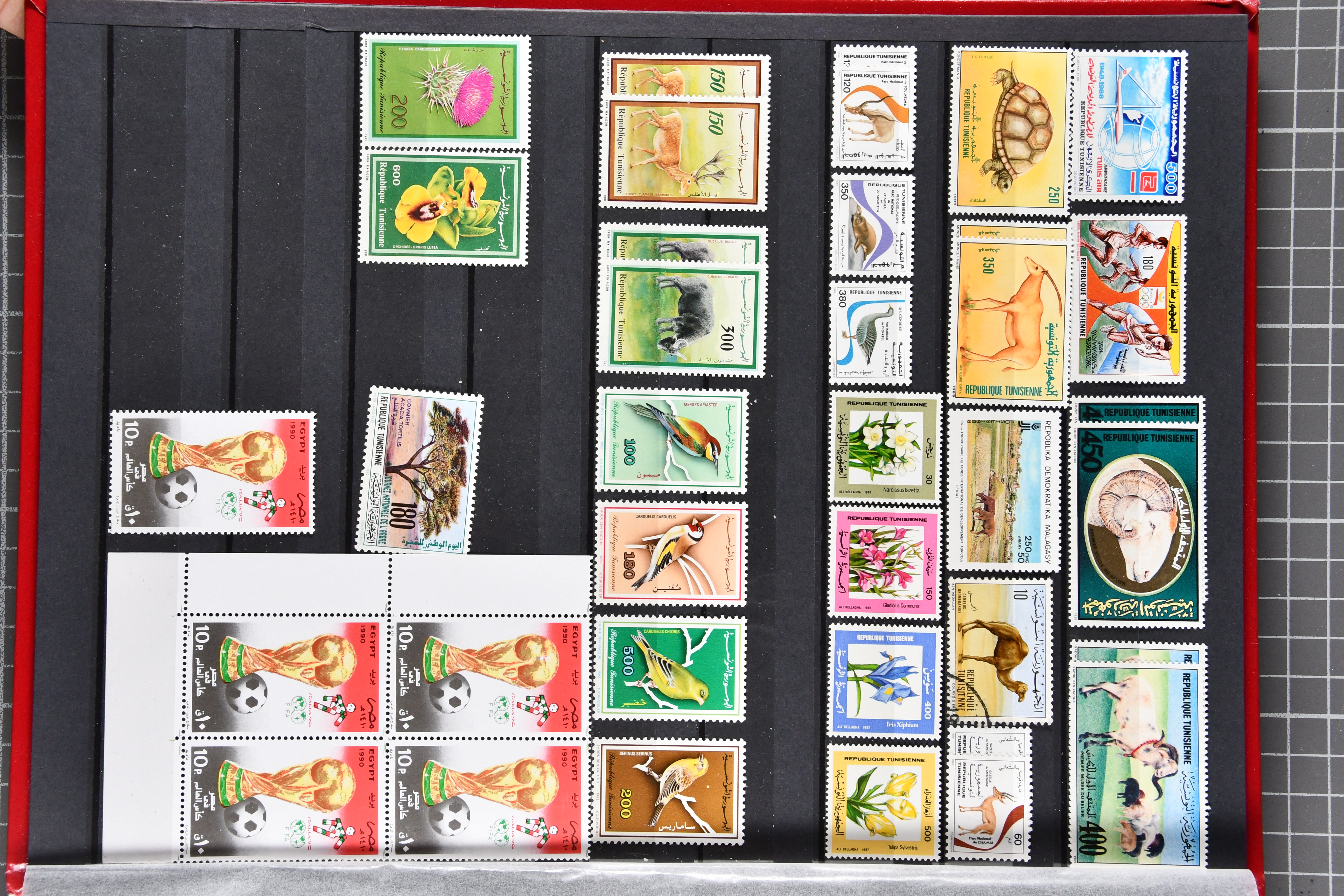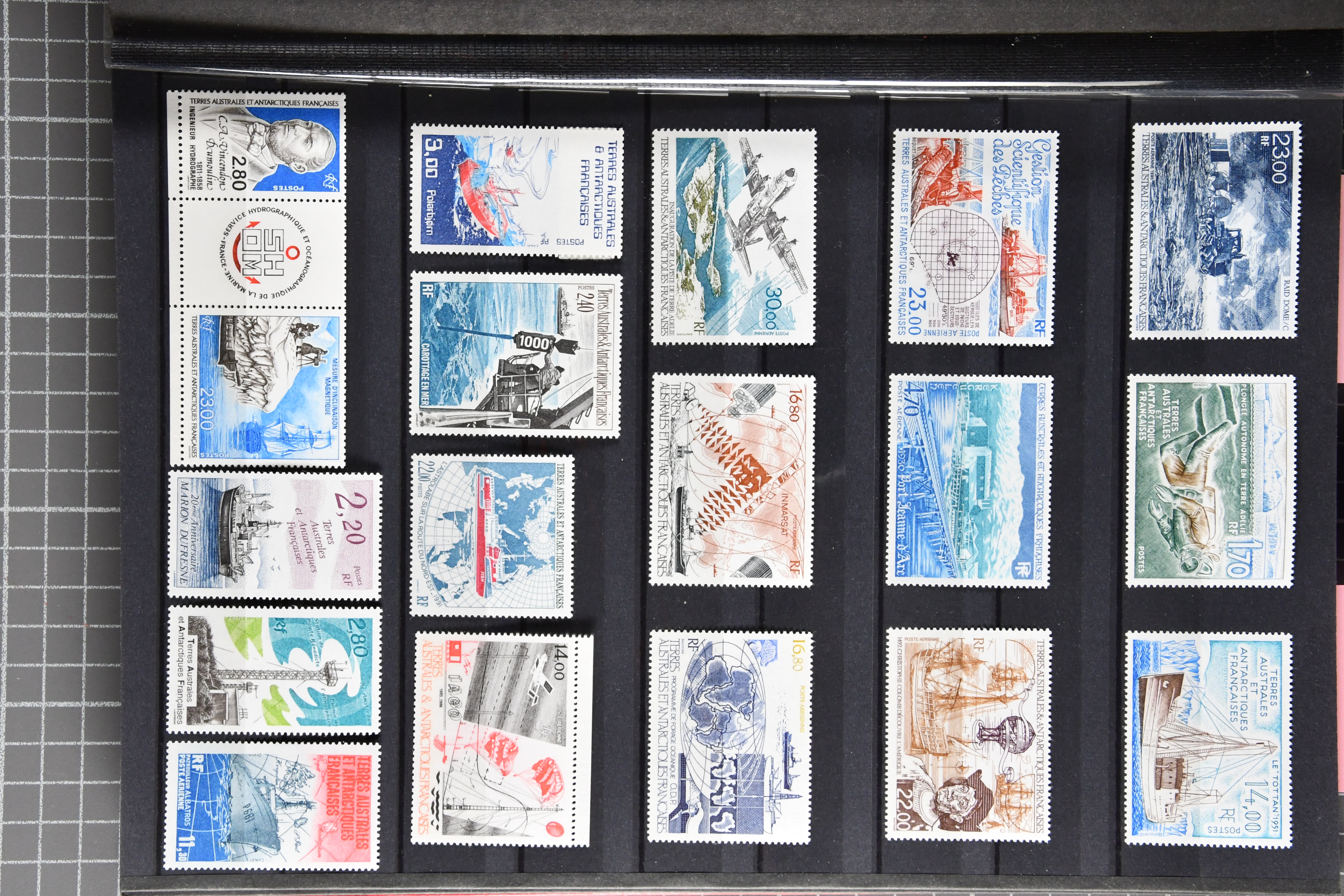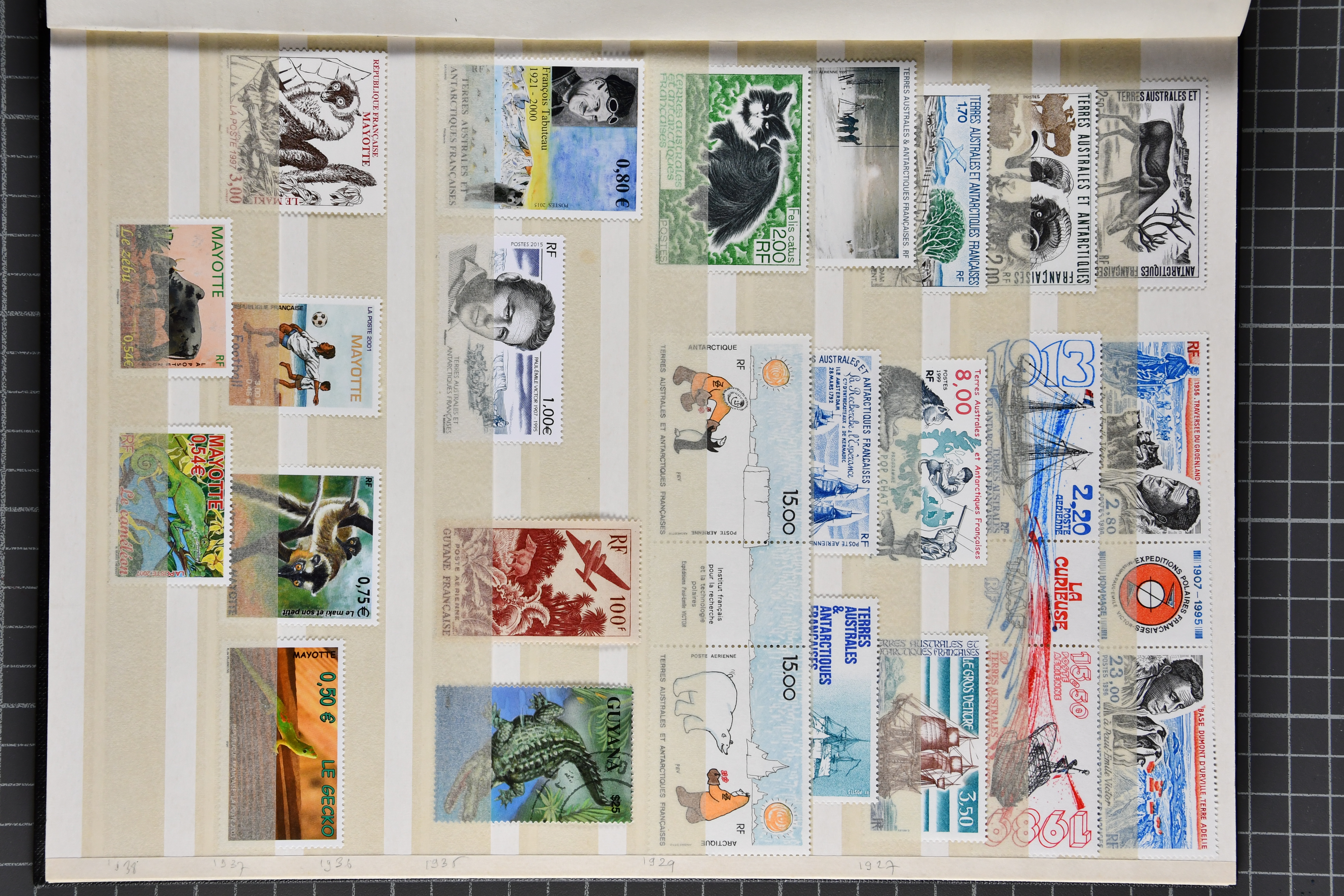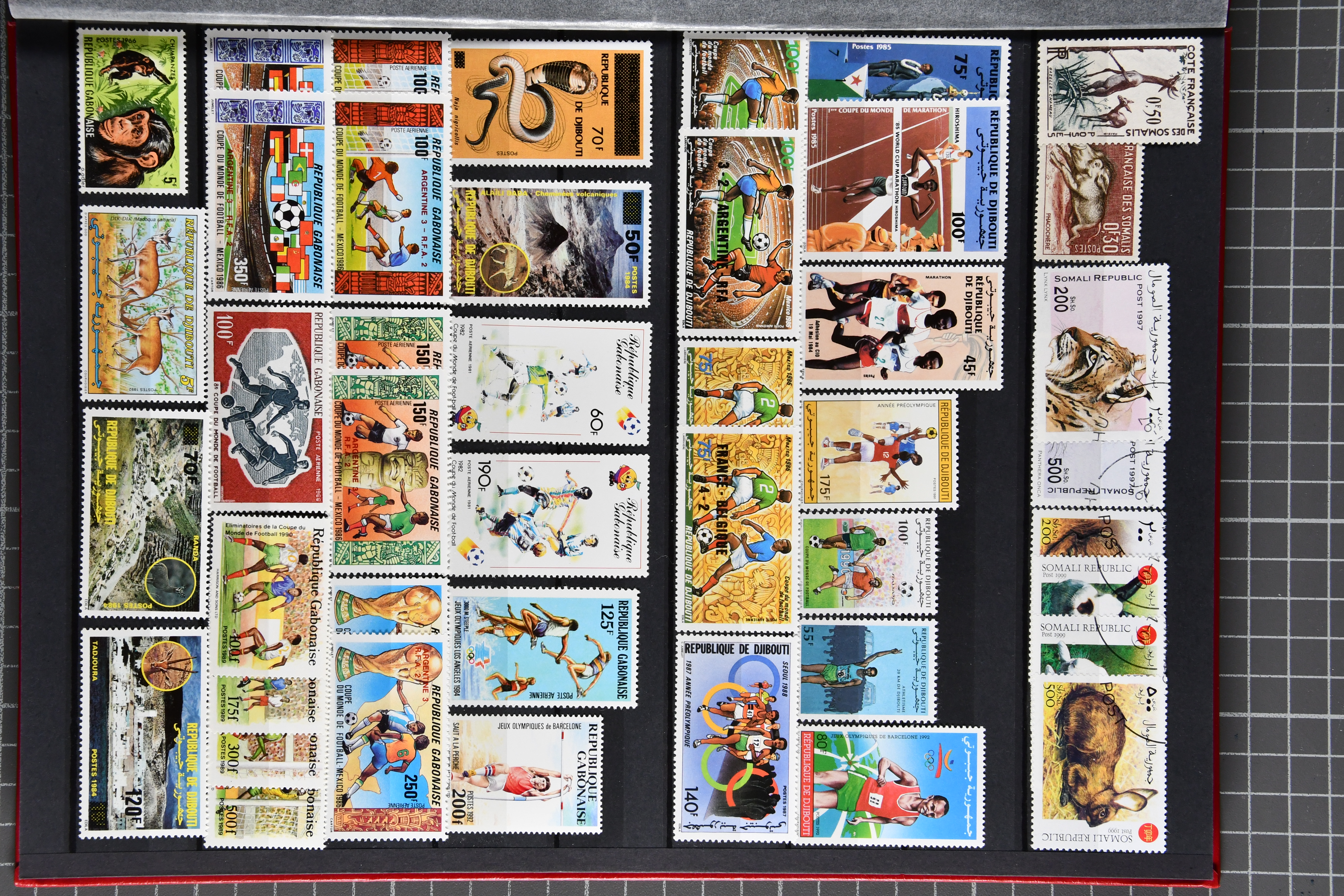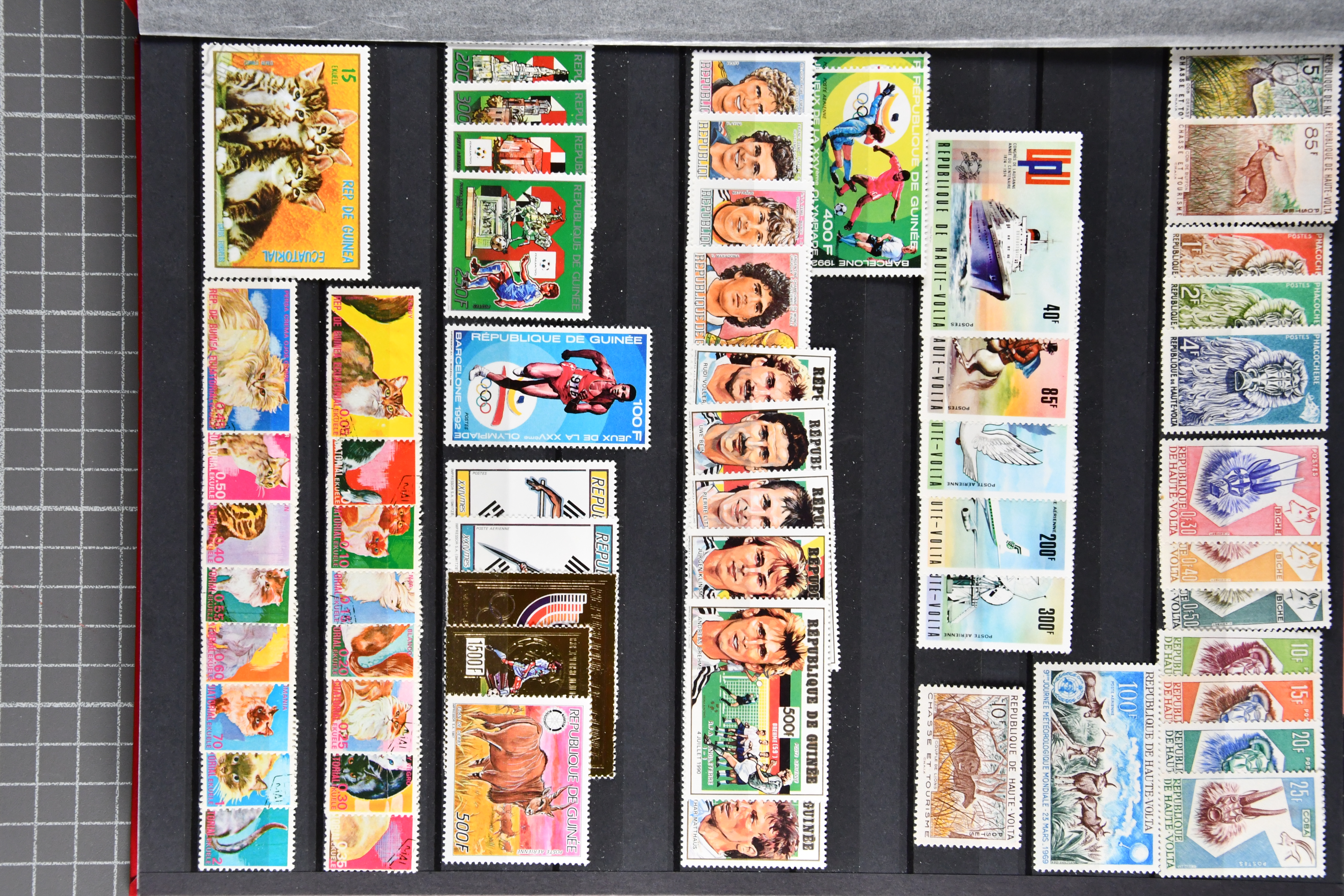1453 image1924/2010ca.: Lot comprising 12 large stockbooks with a substantial holding of modern issues, mainly from French possessions such as French Southern and Antarctic Territories, French Polynesia, New Caledonia and former French colonies, predominantly in Africa. The material is well presented and shows considerable variety, covering a wide range of themes including animals, sport, transport, space and more. Additional material from other countries is also included, some cancelled-to-order. Very high original subscription cost (Image 1) (Image 2) (Image 3) (Image 4) (Image 5) (Image 6) (Image 7) (Image 8) (Image 9) (Image 10) (Image 11) (Image 12) (Image 13)