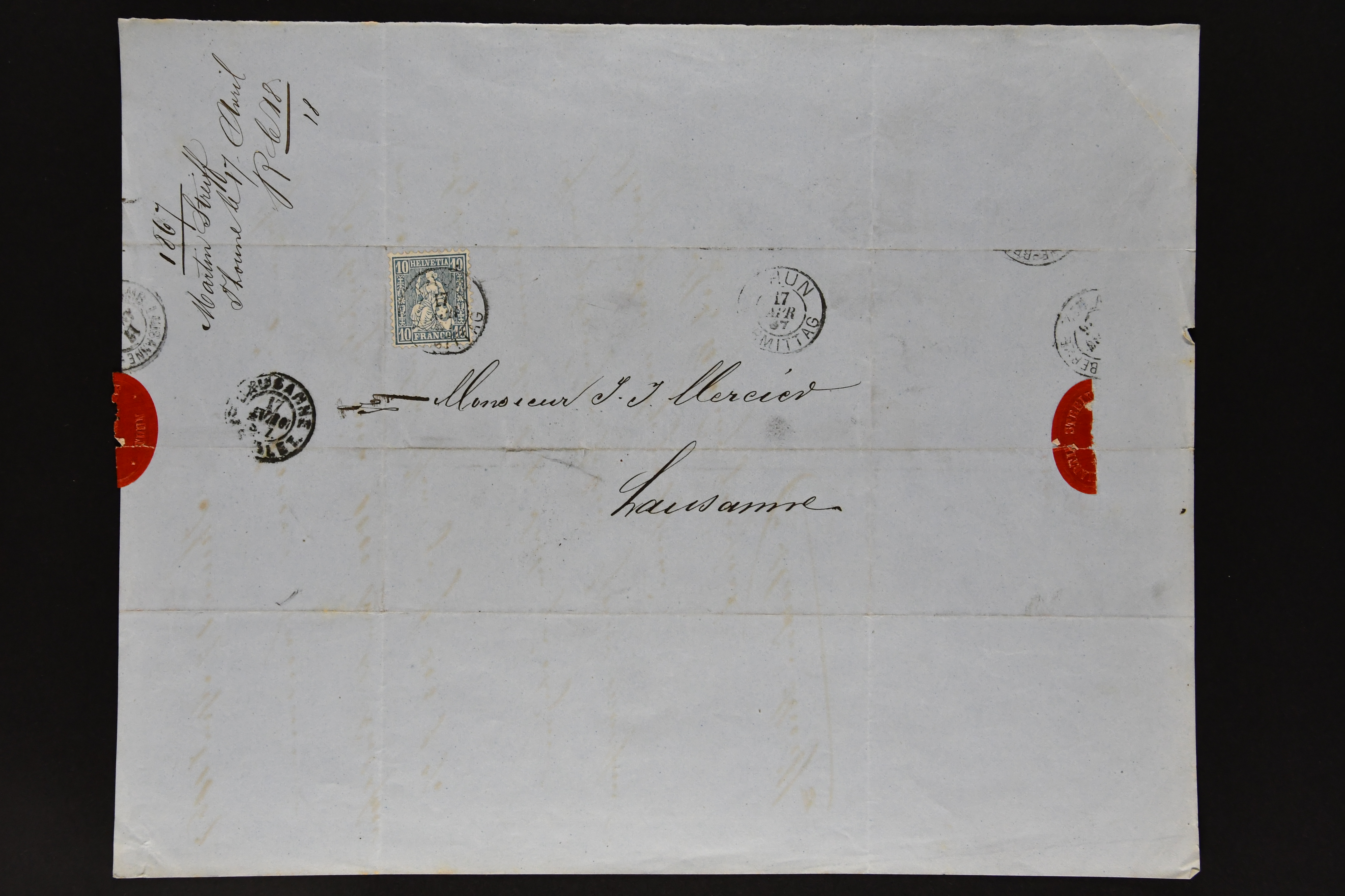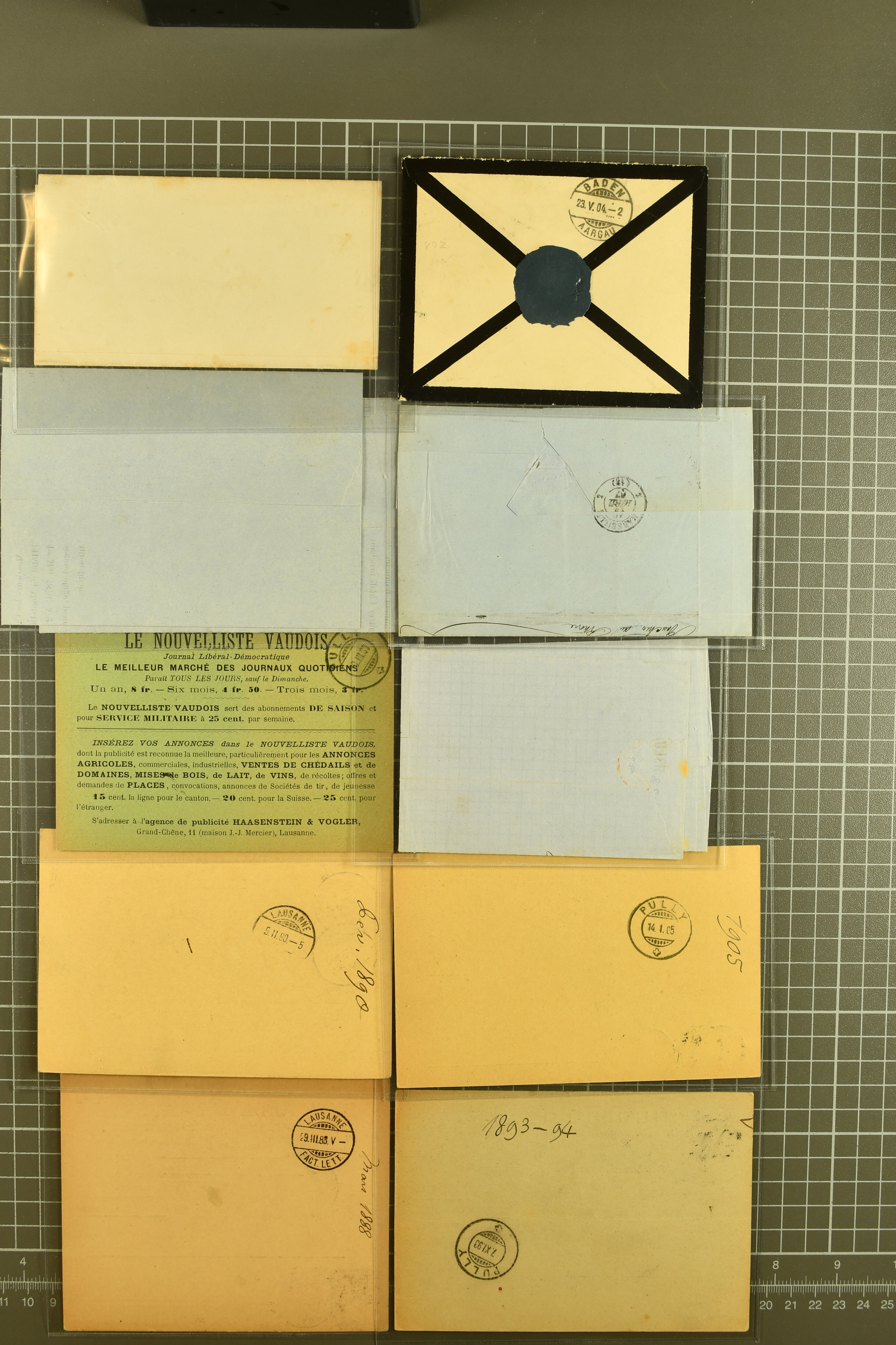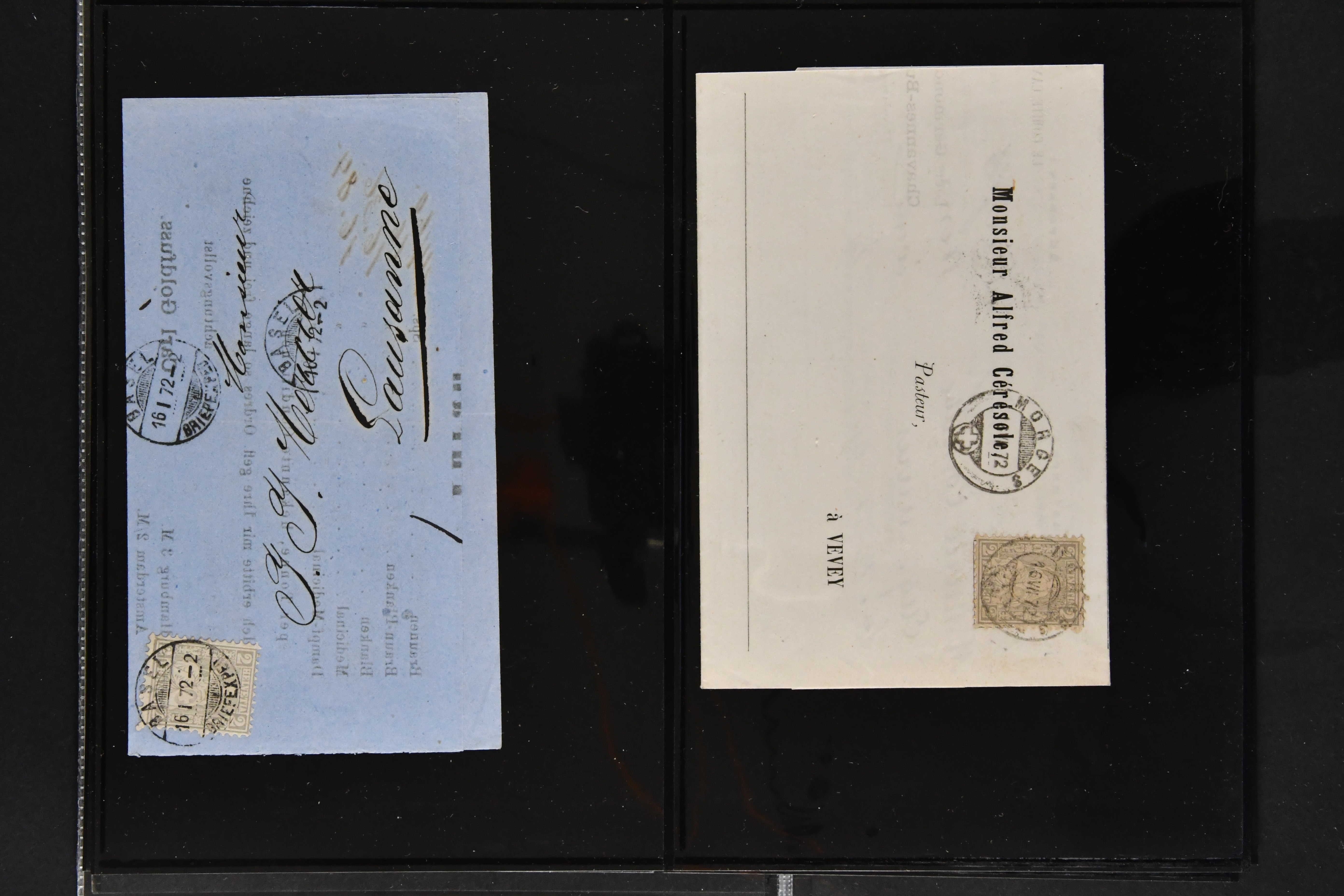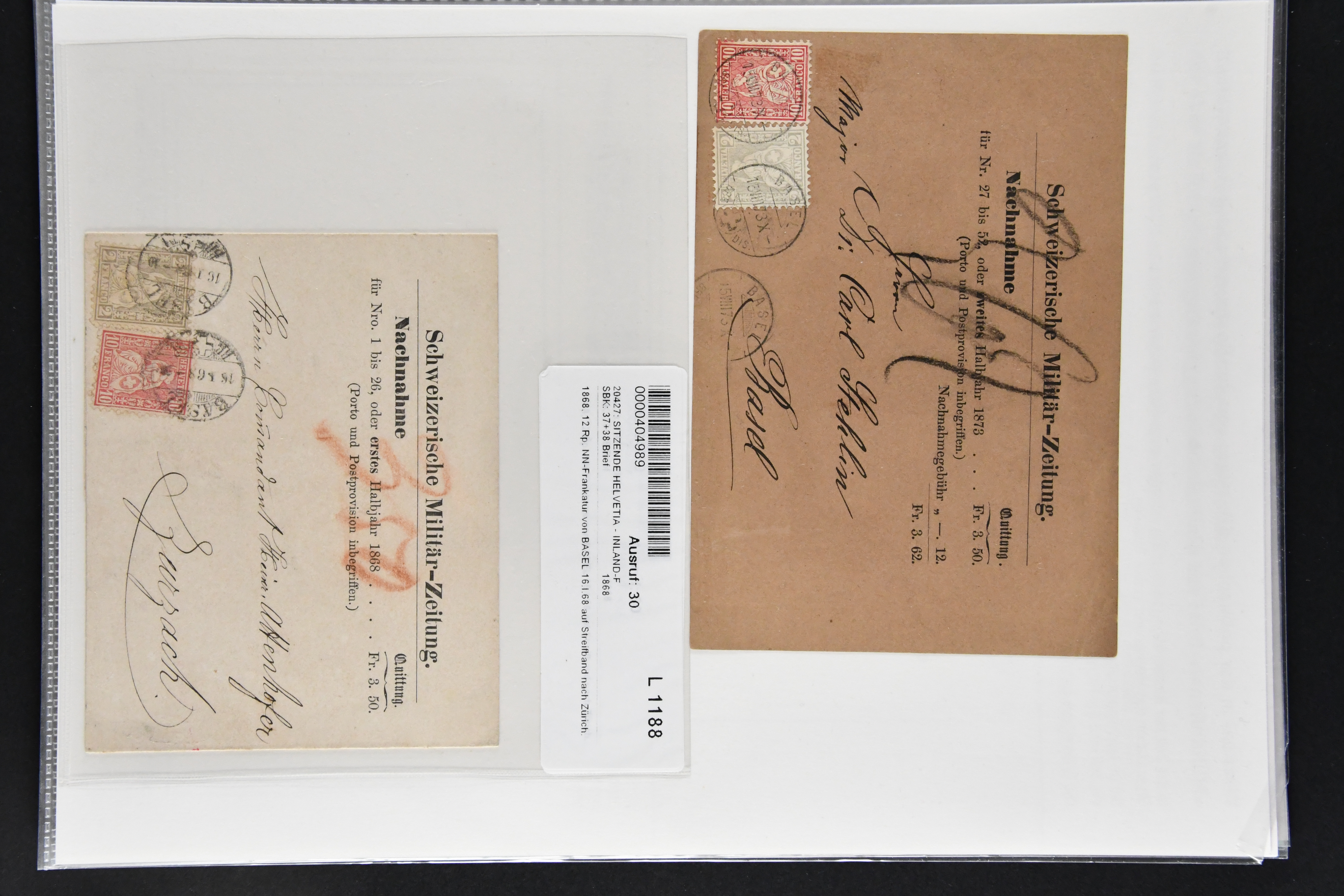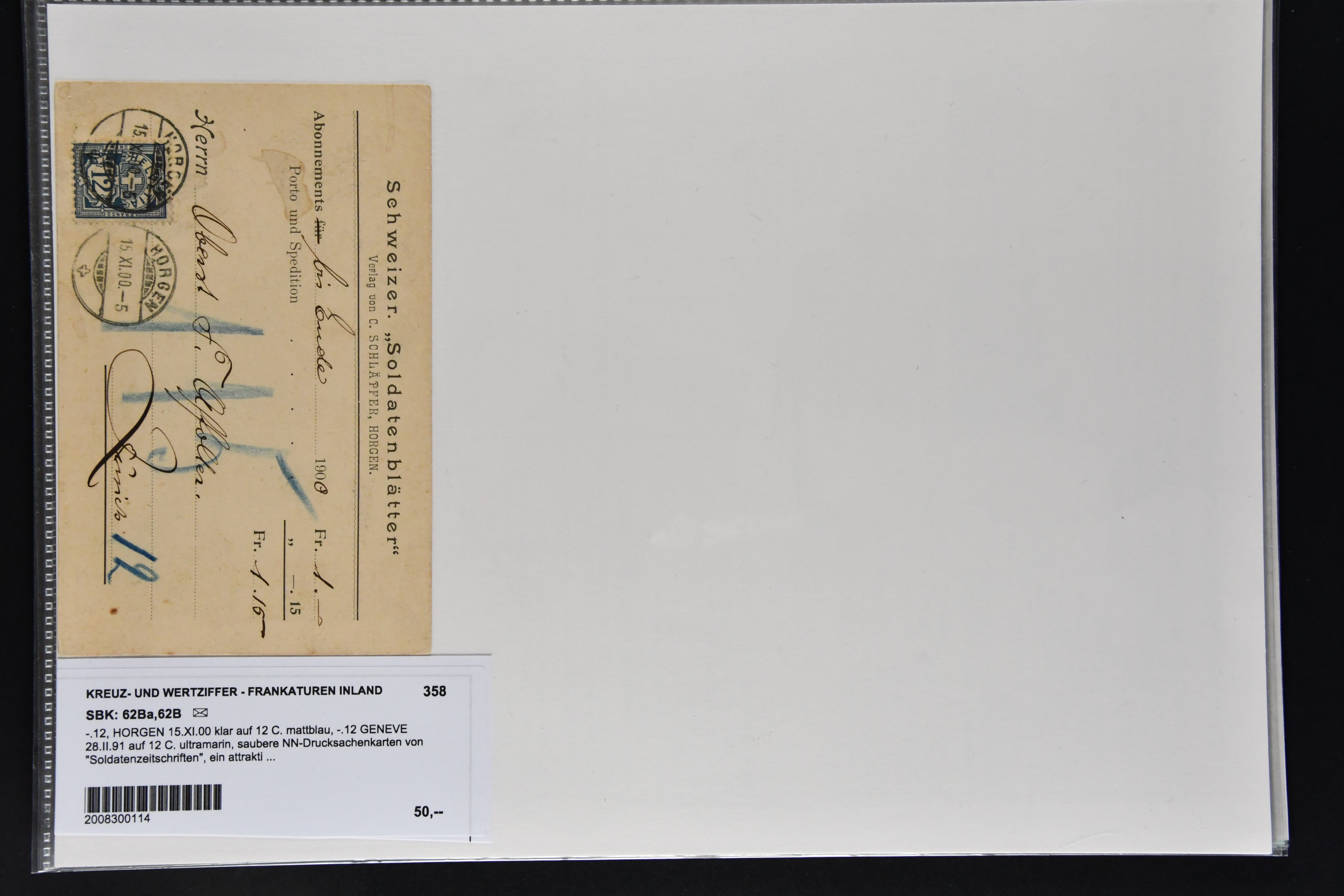 9864 cover image1851/1904: Lot 60 Briefe mit generell einfachen Inlands-Frankaturen in durchschnittlicher Erhaltung, dabei 3 Briefe mit Rayon II und III, 15 Strubelbriefe, 40 Briefe mit Frankaturen der Sitzenden, dabei 13 Drucksachen mit 2 Rp. grau / oliv, Besonderheiten wie abgenutztes Klischee, drei doppelgewichtige Briefe aus Lausanne & Genf, bei einem fälschlicherweise ein PD abgeschlagen, zwei korrespondierende Gepäckanhänger für das gleiche Gepäck zu 13 kg mit Einzelfrankatur Stehende 1 Fr. von Lausanne nach Vulpera und retour im Sommer 1904, weiterhin Tüblibrief (Image 1) (Image 2) (Image 3) (Image 4) (Image 5) (Image 6) (Image 7) (Image 8) (Image 9) (Image 10) (Image 11) (Image 12) (Image 13) (Image 14) (Image 15) (Image 16) (Image 17) (Image 18) (Image 19) (Image 20) (Image 21) (Image 22) (Image 23) (Image 24) (Image 25) (Image 26) (Image 27) (Image 28) (Image 29) (Image 30) (Image 31) (Image 32) (Image 33) (Image 34) (Image 35) (Image 36) (Image 37) (Image 38) (Image 39) (Image 40) (Image 41) (Image 42) (Image 43) (Image 44) (Image 45) (Image 46) (Image 47) (Image 48) (Image 49) (Image 50)