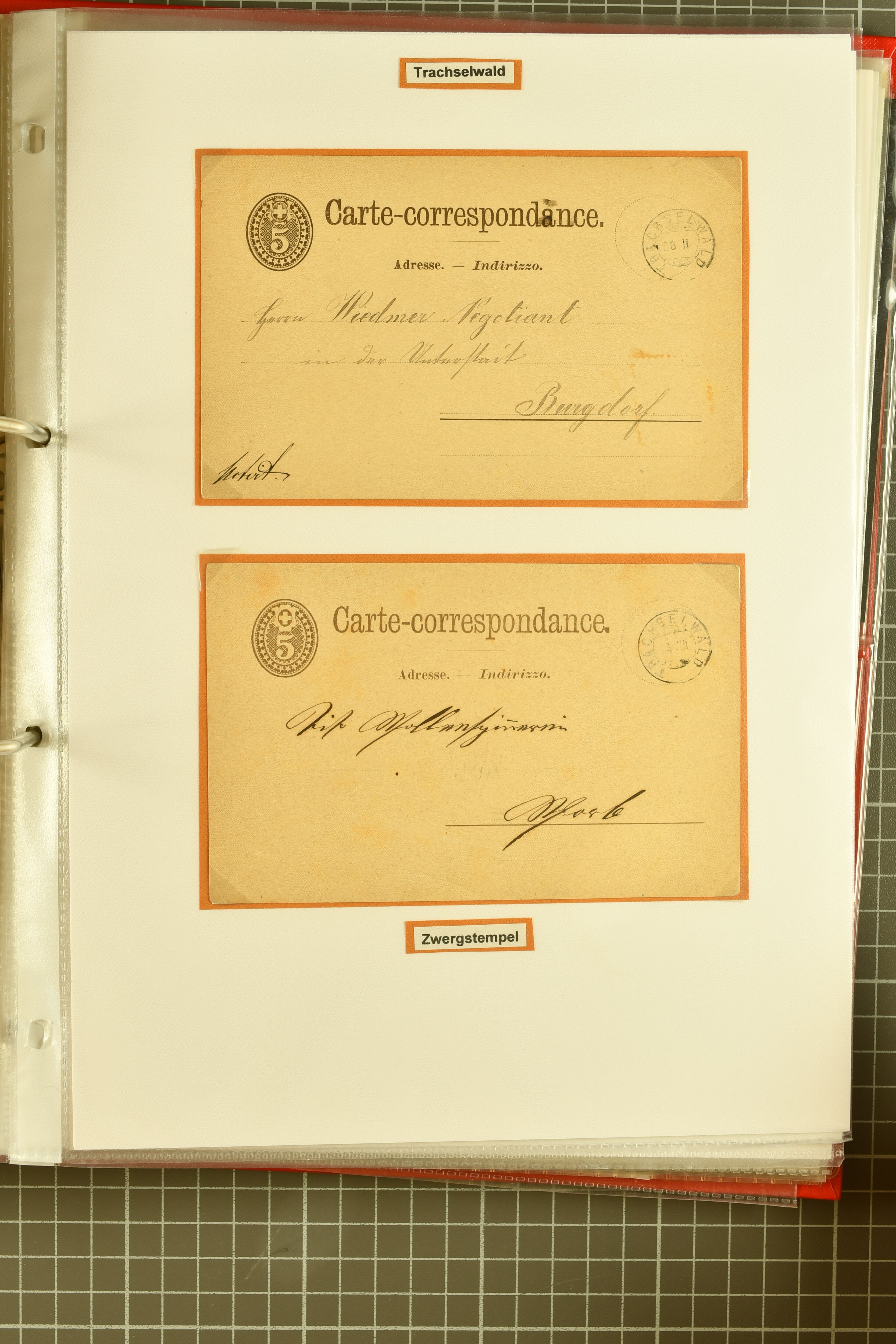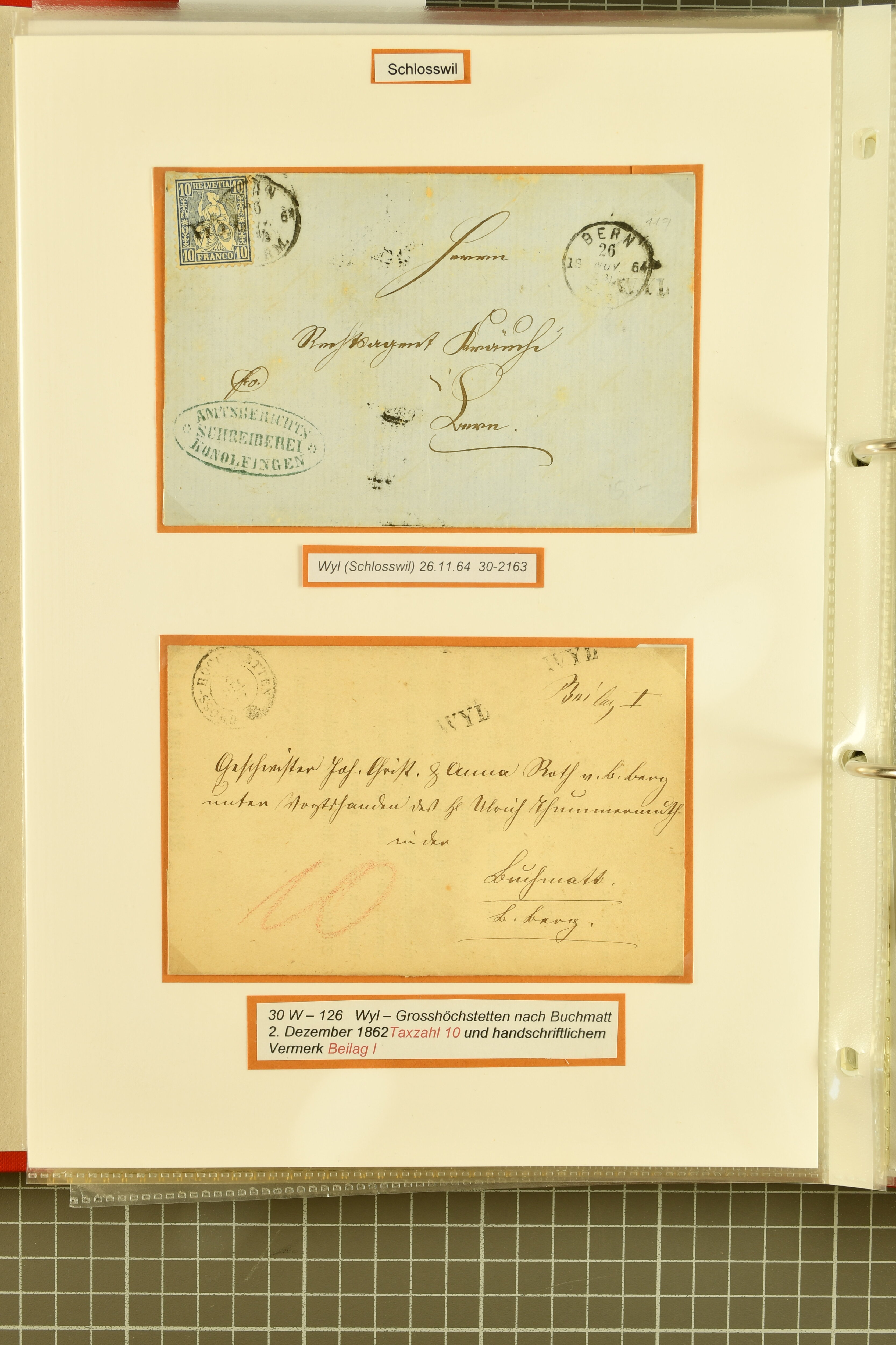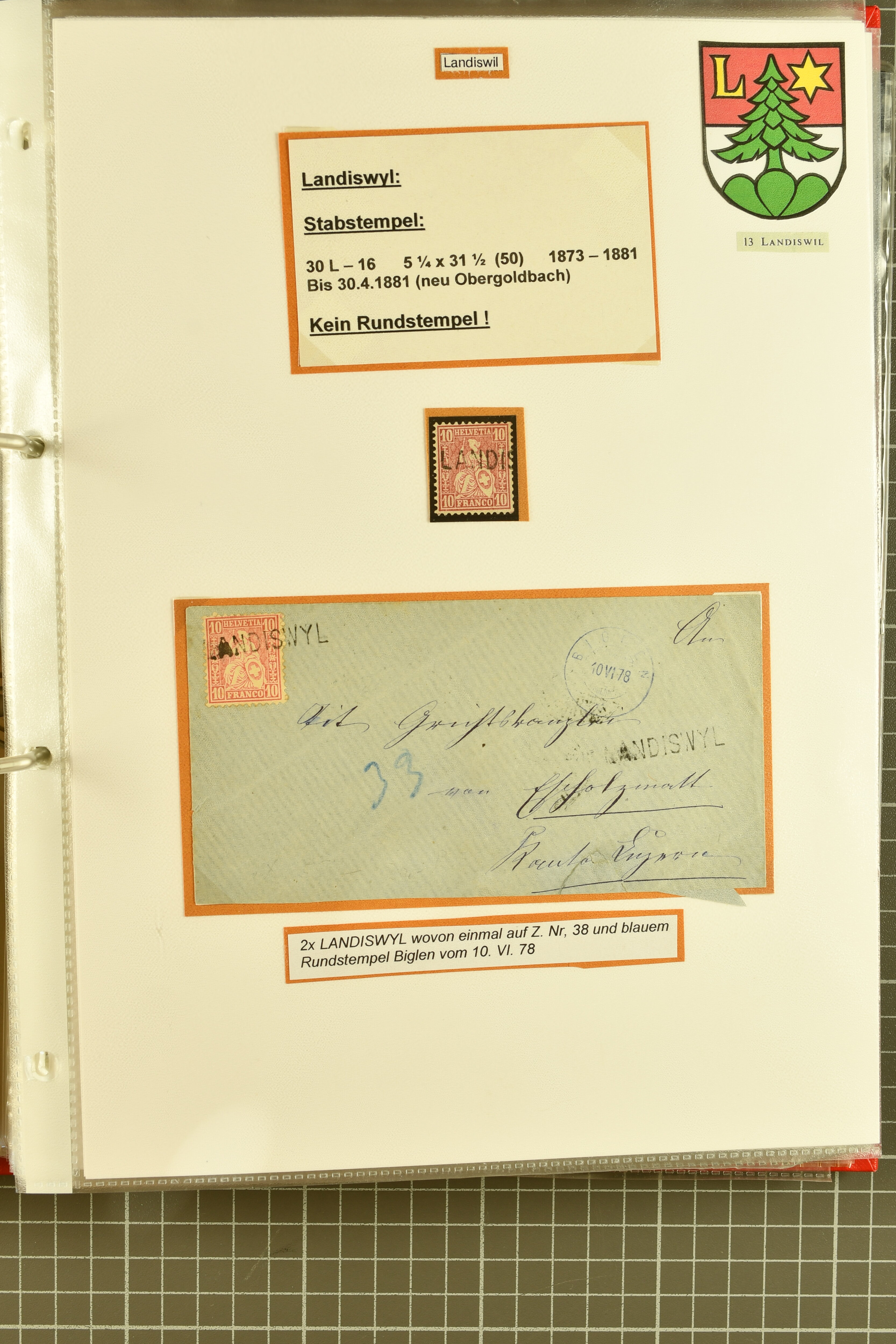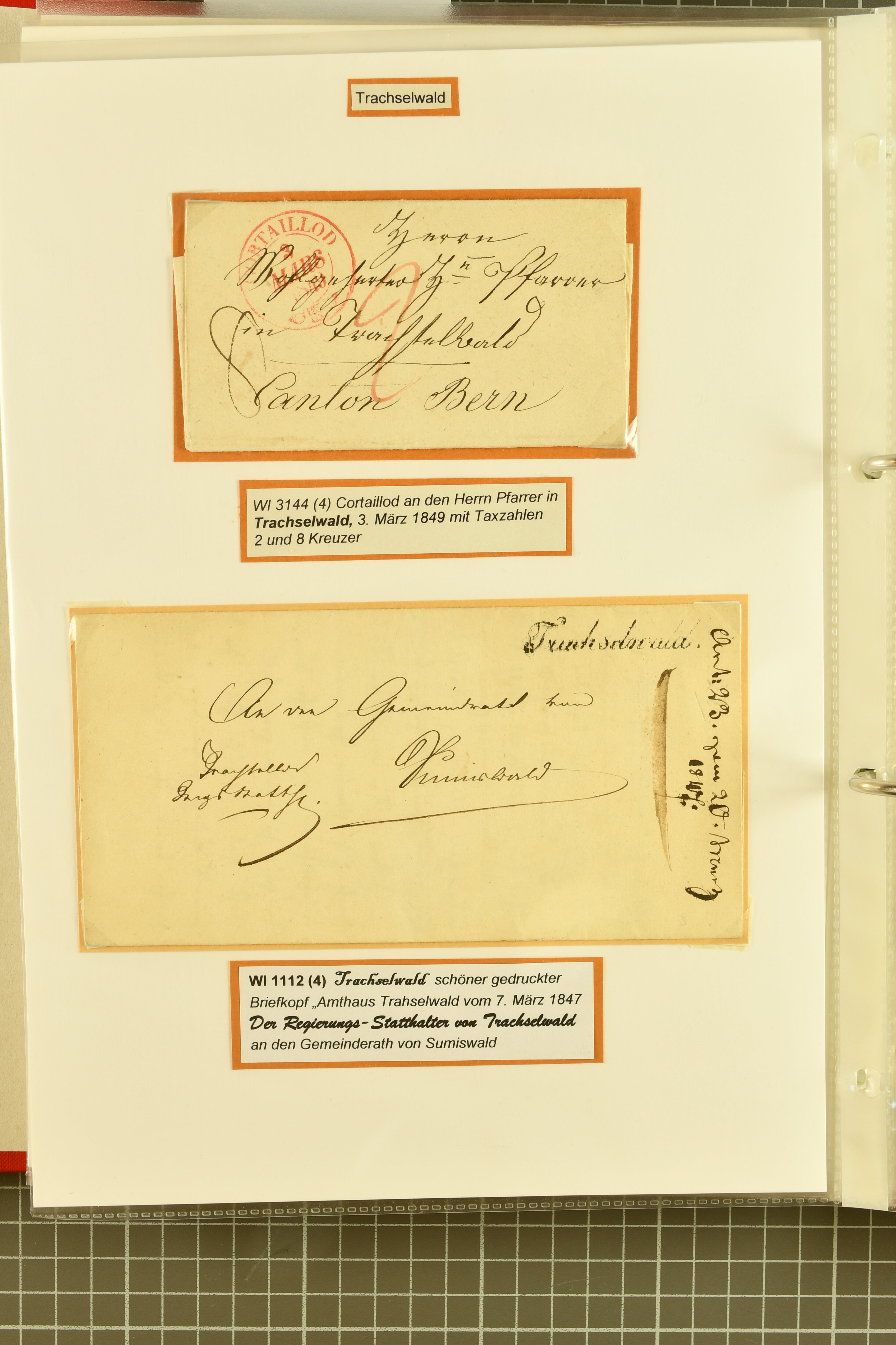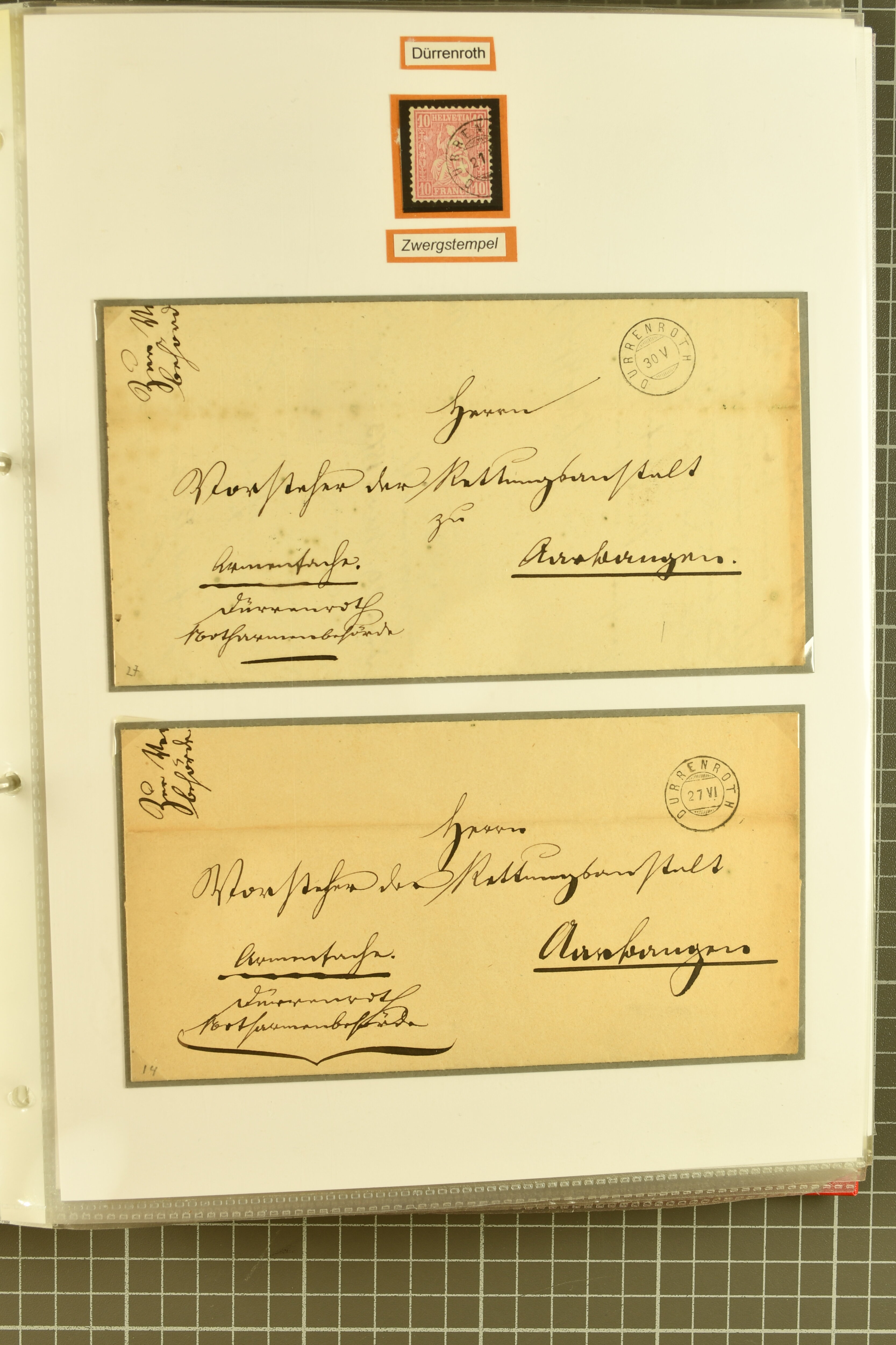 9862 image1834/1906ca.: Partie von Belegen aus Berner Ortschaften, aufgezogen auf Blättern, dabei ein Rayon-Brief von Lützelflüh, ferner ein Vorphilabrief und ein Brief ohne Marke. Je ein Vorphila- oder Brief ohne Marke aus Eriswil (2), Zäzwil (2) und Wichtrach (1); aus Dürrenroth ein Beleg mit 10 Rp. Sitzende Helvetia sowie zwei Briefe ohne Marke, beide mit Zwergstempel. Aus Sumiswald zwei Vorphilabriefe; aus Affoltern i. E. insgesamt 10 Belege, Vorphila und Markenbriefe, darunter auch ein Tüblibrief. Münsingen mit acht Marken und vier Belegen vertreten. Landiswil mit Stempel "LANDYSWYL" 10 Rp. Sitzende Helvetia rot einmal lose und einmal auf Brief. Aus "LUZELFLÜH" ein Vorphilabrief, aus Schlosswil drei Belege, Rubigen drei Belege, Oberthal fünf Belege, Arni bei Biglen mit Ganzsachenpostkarte sowie zwei lose 10 Rp. Sitzende Helvetia rot. Aus Trachselwald zehn Belege, darunter acht Vorphila/BoM (einer mit Zwergstempel) und zwei Ganzsachenpostkarten. Walterswil mit zwei Belegen, Waltringen mit einer Marke Stehende Helvetia 30 Rp. und einem Vorphilabrief, Walkringen mit zwei Vorphilabriefen, Zollbrück mit vier Belegen. Ergänzt durch 21 weitere Belege, teils von den genannten Ortschaften, sowie drei lose Werte. Mit dabei u. a. Zwergstempel von "GRÜNENMATT" (2) sowie "KIESEN" im Kästchen, beide auf Ganzsachenpostkarten (Image 1) (Image 2) (Image 3) (Image 4) (Image 5) (Image 6) (Image 7) (Image 8) (Image 9) (Image 10) (Image 11) (Image 12) (Image 13) (Image 14) (Image 15) (Image 16) (Image 17) (Image 18) (Image 19) (Image 20) (Image 21) (Image 22) (Image 23) (Image 24) (Image 25) (Image 26) (Image 27) (Image 28) (Image 29) (Image 30) (Image 31) (Image 32) (Image 33) (Image 34) (Image 35) (Image 36) (Image 37) (Image 38) (Image 39) (Image 40) (Image 41) (Image 42) (Image 43) (Image 44) (Image 45) (Image 46) (Image 47) (Image 48)