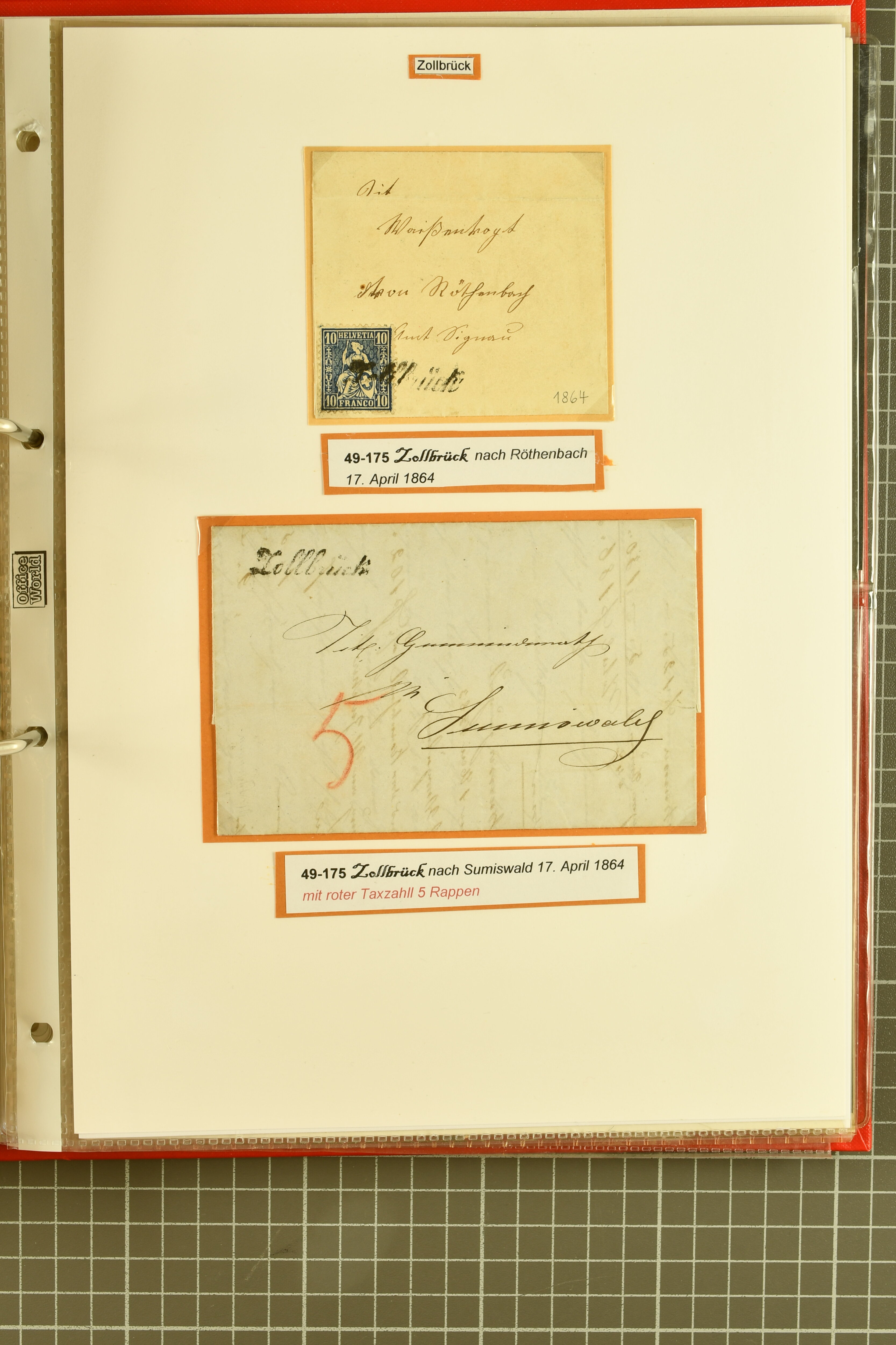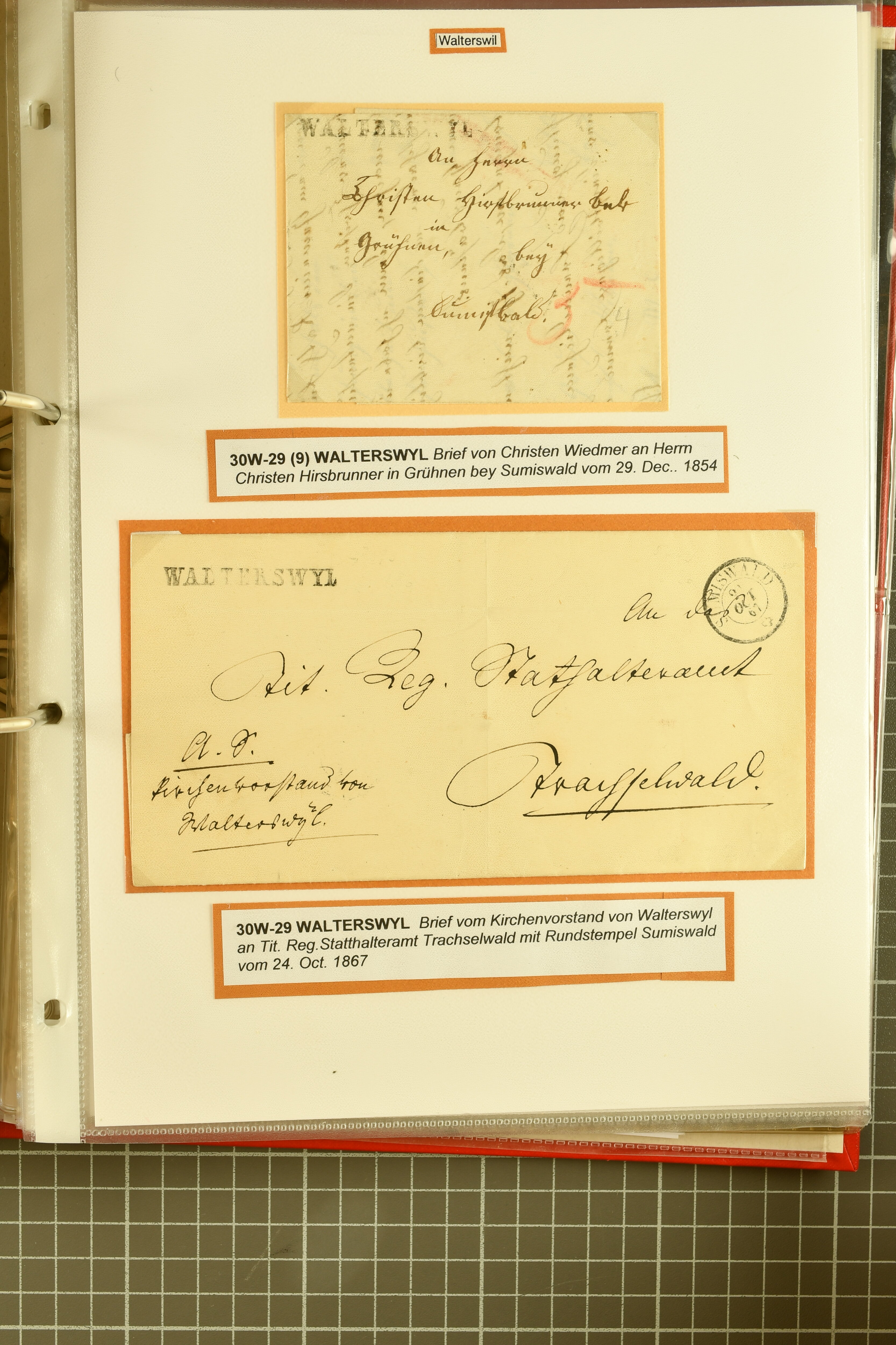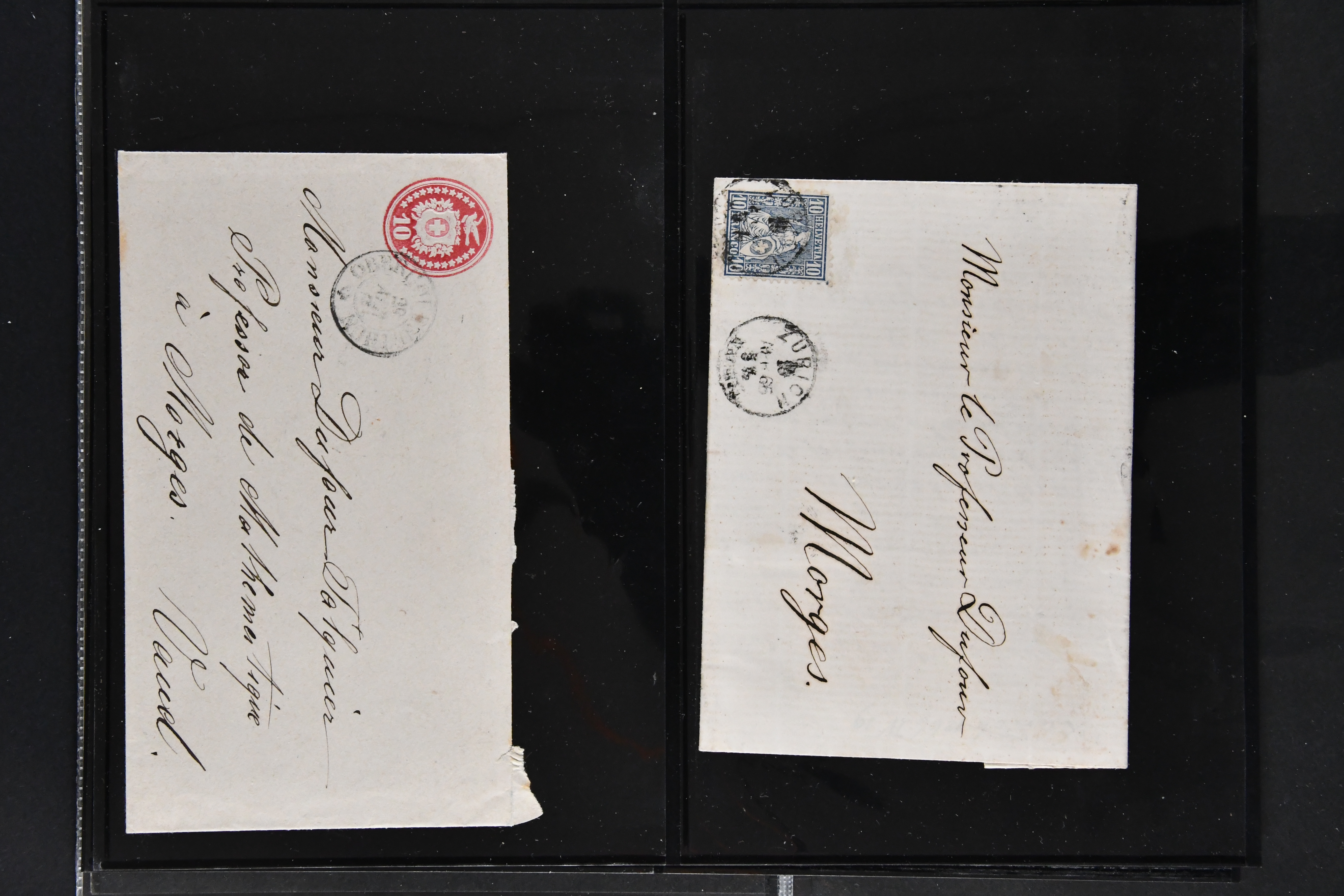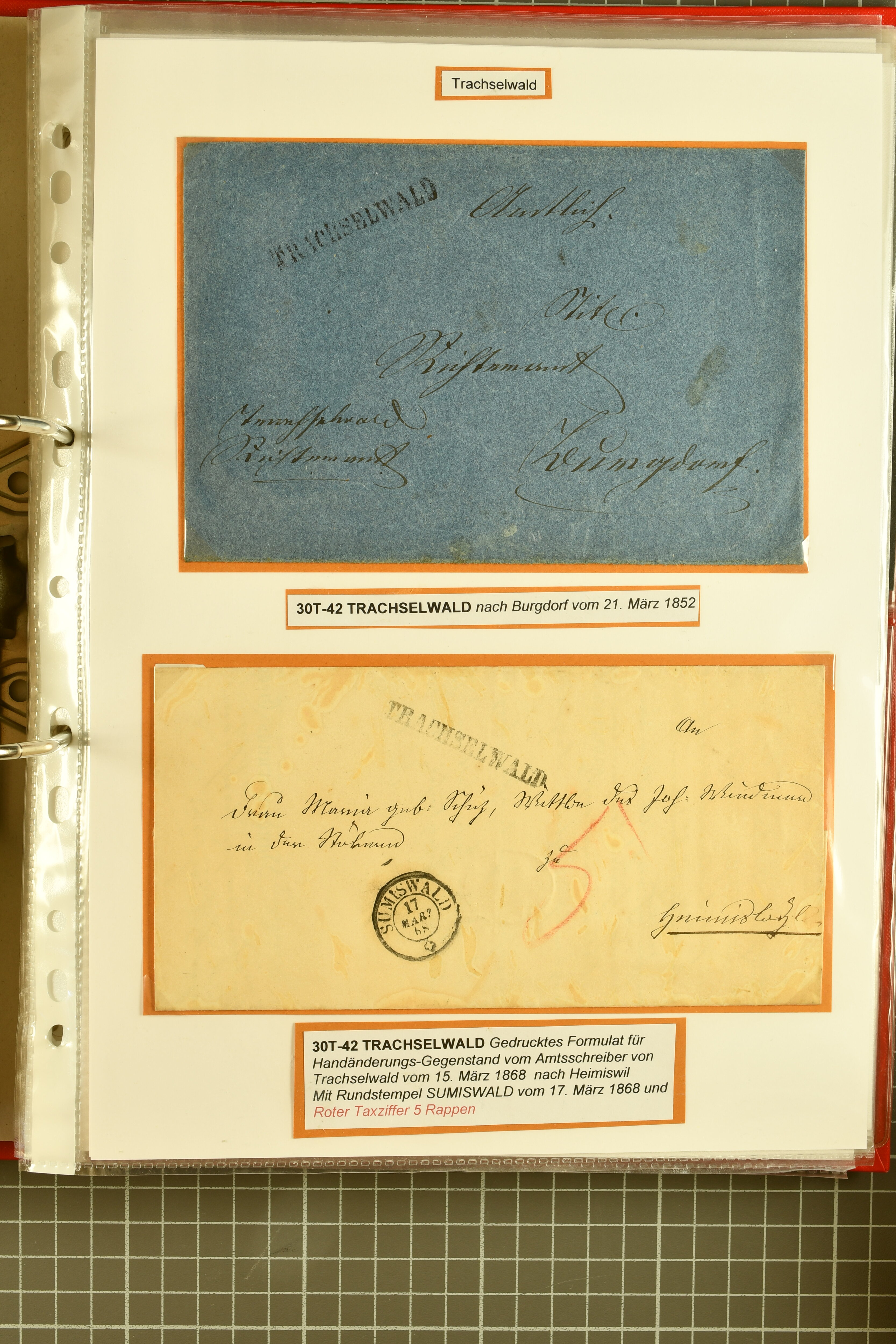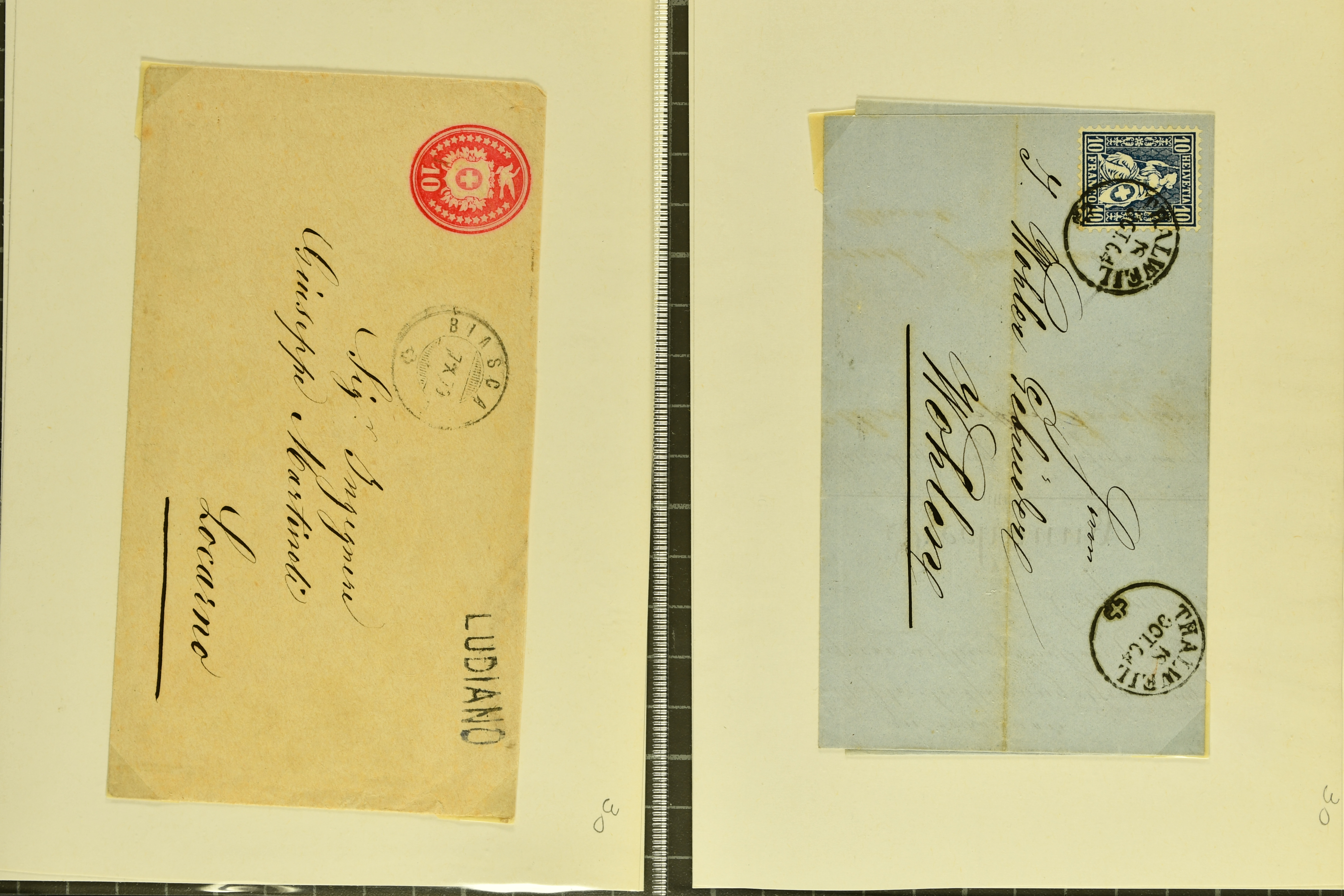 9862 image1834/1906ca.: Partie von Belegen aus Berner Ortschaften, aufgezogen auf Blättern, dabei ein Rayon-Brief von Lützelflüh, ferner ein Vorphilabrief und ein Brief ohne Marke. Je ein Vorphila- oder Brief ohne Marke aus Eriswil (2), Zäzwil (2) und Wichtrach (1); aus Dürrenroth ein Beleg mit 10 Rp. Sitzende Helvetia sowie zwei Briefe ohne Marke, beide mit Zwergstempel. Aus Sumiswald zwei Vorphilabriefe; aus Affoltern i. E. insgesamt 10 Belege, Vorphila und Markenbriefe, darunter auch ein Tüblibrief. Münsingen mit acht Marken und vier Belegen vertreten. Landiswil mit Stempel "LANDYSWYL" 10 Rp. Sitzende Helvetia rot einmal lose und einmal auf Brief. Aus "LUZELFLÜH" ein Vorphilabrief, aus Schlosswil drei Belege, Rubigen drei Belege, Oberthal fünf Belege, Arni bei Biglen mit Ganzsachenpostkarte sowie zwei lose 10 Rp. Sitzende Helvetia rot. Aus Trachselwald zehn Belege, darunter acht Vorphila/BoM (einer mit Zwergstempel) und zwei Ganzsachenpostkarten. Walterswil mit zwei Belegen, Waltringen mit einer Marke Stehende Helvetia 30 Rp. und einem Vorphilabrief, Walkringen mit zwei Vorphilabriefen, Zollbrück mit vier Belegen. Ergänzt durch 21 weitere Belege, teils von den genannten Ortschaften, sowie drei lose Werte. Mit dabei u. a. Zwergstempel von "GRÜNENMATT" (2) sowie "KIESEN" im Kästchen, beide auf Ganzsachenpostkarten (Image 1) (Image 2) (Image 3) (Image 4) (Image 5) (Image 6) (Image 7) (Image 8) (Image 9) (Image 10) (Image 11) (Image 12) (Image 13) (Image 14) (Image 15) (Image 16) (Image 17) (Image 18) (Image 19) (Image 20) (Image 21) (Image 22) (Image 23) (Image 24) (Image 25) (Image 26) (Image 27) (Image 28) (Image 29) (Image 30) (Image 31) (Image 32) (Image 33) (Image 34) (Image 35) (Image 36) (Image 37) (Image 38) (Image 39) (Image 40) (Image 41) (Image 42) (Image 43) (Image 44) (Image 45) (Image 46) (Image 47) (Image 48)