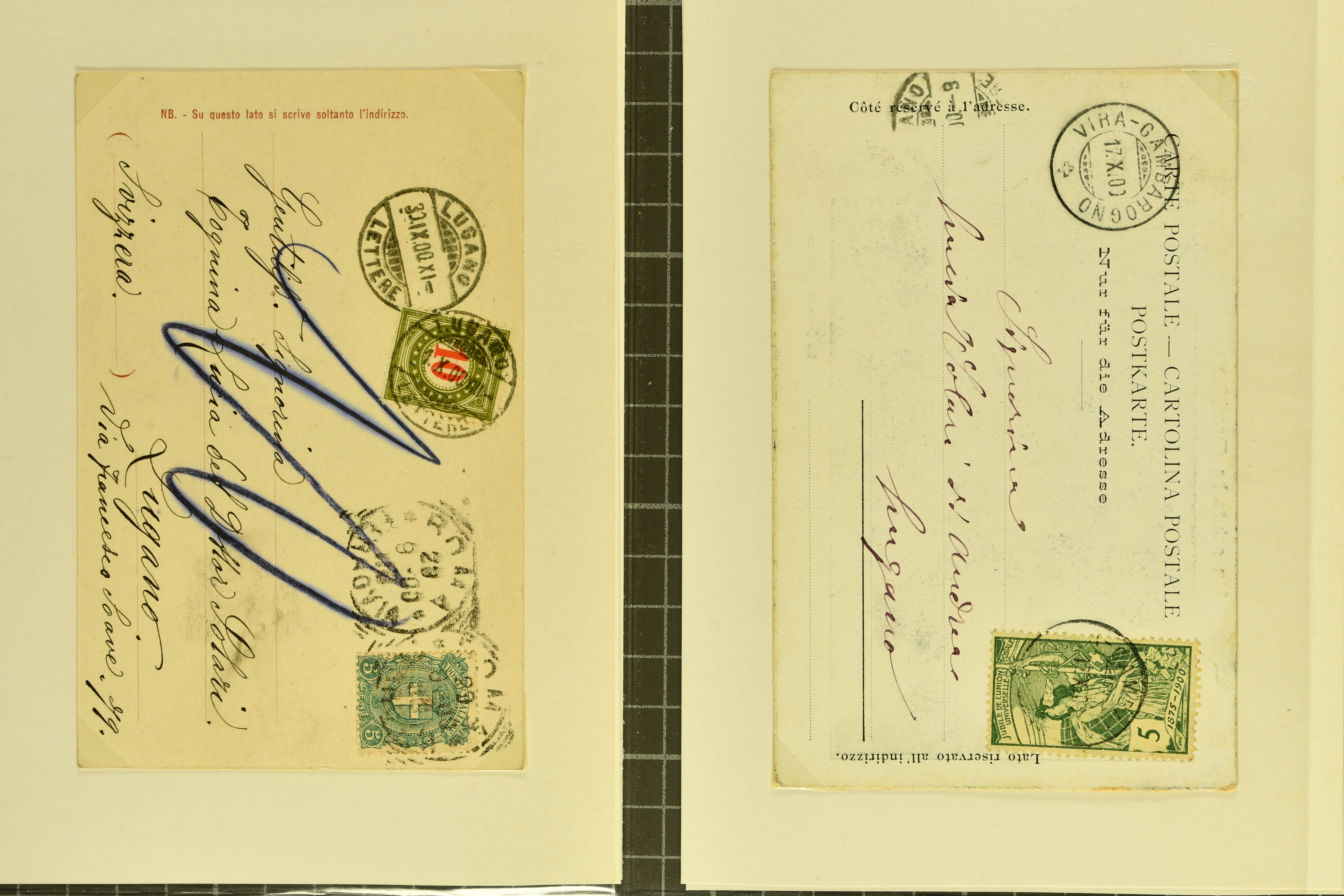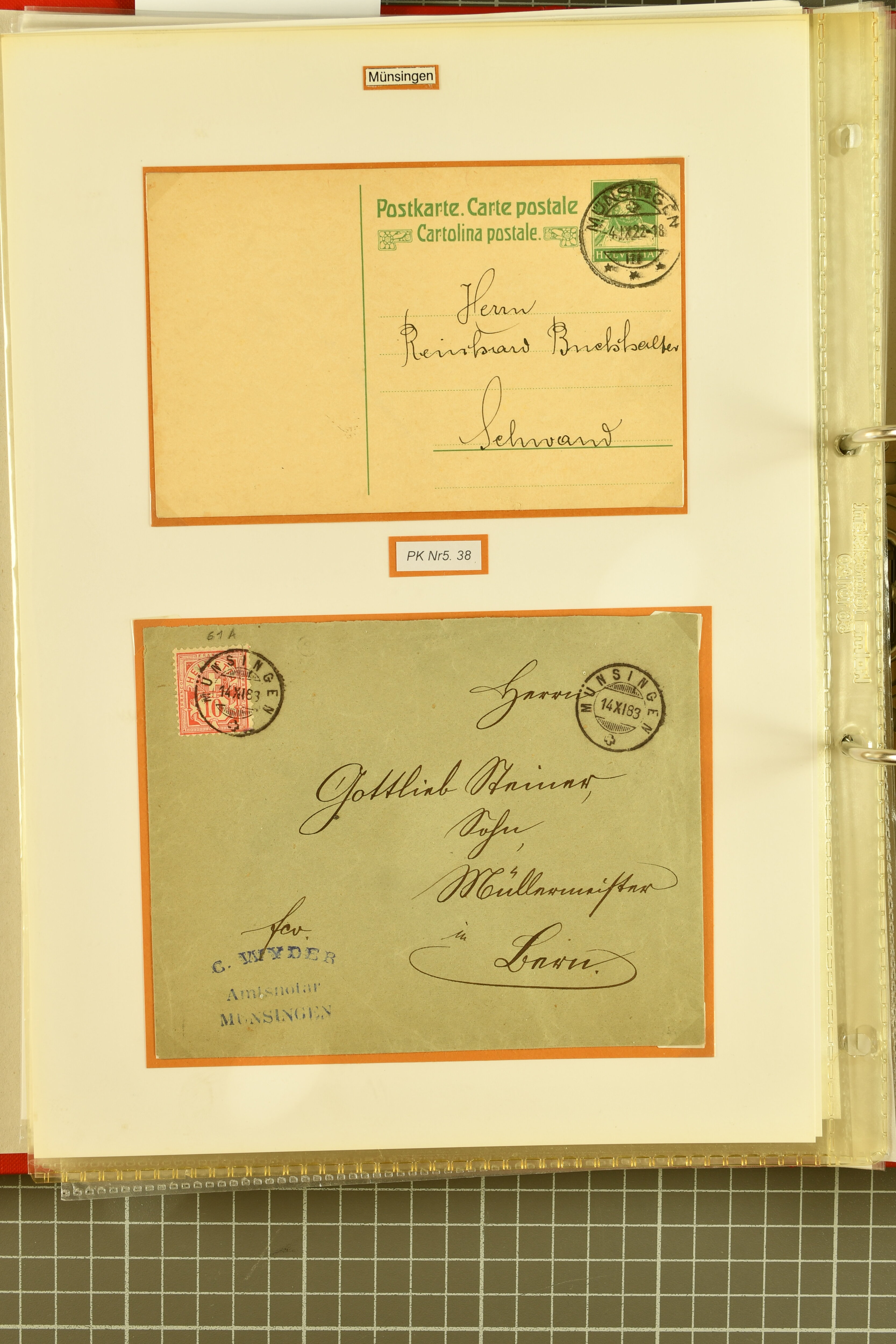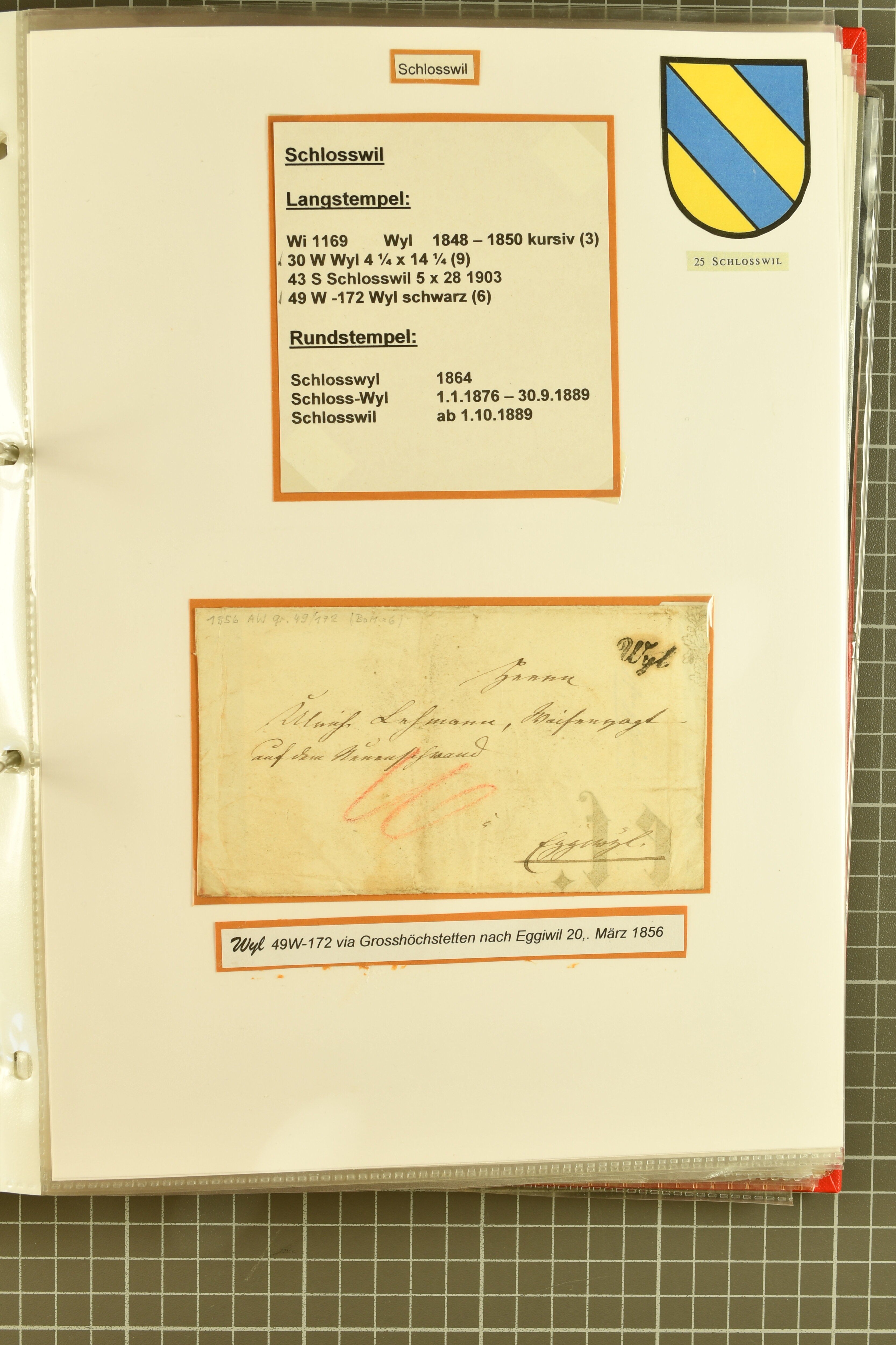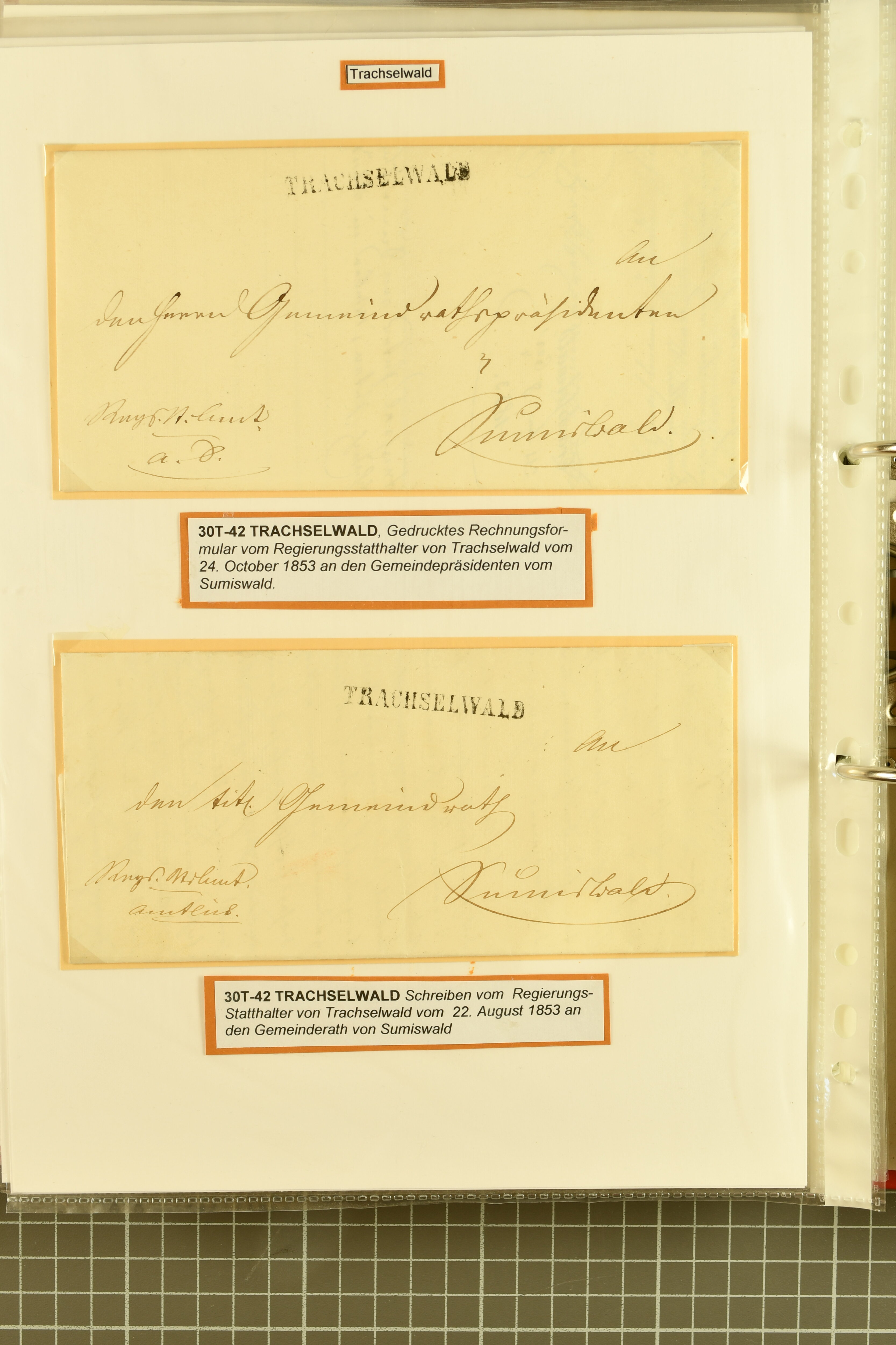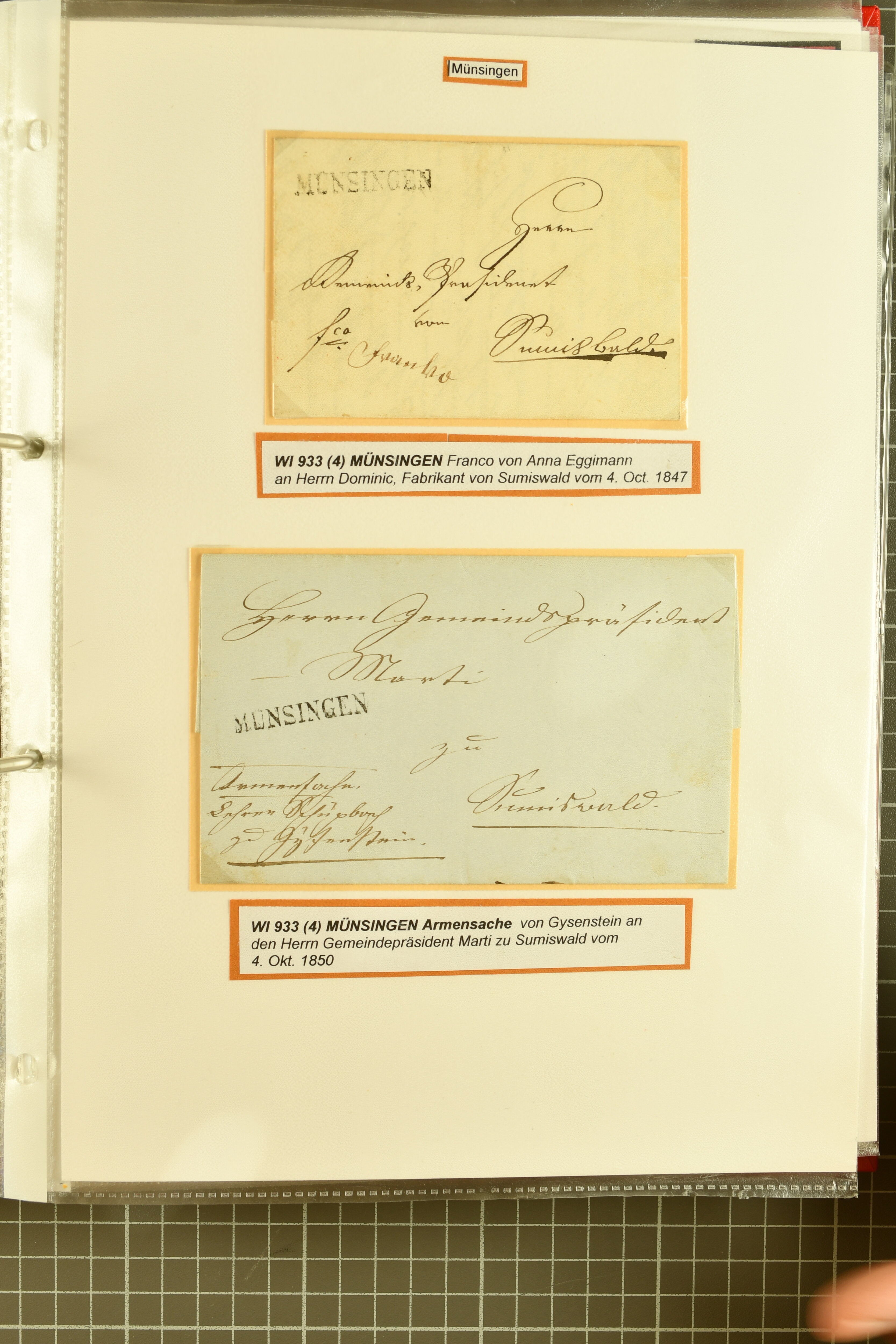 9862 image1834/1906ca.: Partie von Belegen aus Berner Ortschaften, aufgezogen auf Blättern, dabei ein Rayon-Brief von Lützelflüh, ferner ein Vorphilabrief und ein Brief ohne Marke. Je ein Vorphila- oder Brief ohne Marke aus Eriswil (2), Zäzwil (2) und Wichtrach (1); aus Dürrenroth ein Beleg mit 10 Rp. Sitzende Helvetia sowie zwei Briefe ohne Marke, beide mit Zwergstempel. Aus Sumiswald zwei Vorphilabriefe; aus Affoltern i. E. insgesamt 10 Belege, Vorphila und Markenbriefe, darunter auch ein Tüblibrief. Münsingen mit acht Marken und vier Belegen vertreten. Landiswil mit Stempel "LANDYSWYL" 10 Rp. Sitzende Helvetia rot einmal lose und einmal auf Brief. Aus "LUZELFLÜH" ein Vorphilabrief, aus Schlosswil drei Belege, Rubigen drei Belege, Oberthal fünf Belege, Arni bei Biglen mit Ganzsachenpostkarte sowie zwei lose 10 Rp. Sitzende Helvetia rot. Aus Trachselwald zehn Belege, darunter acht Vorphila/BoM (einer mit Zwergstempel) und zwei Ganzsachenpostkarten. Walterswil mit zwei Belegen, Waltringen mit einer Marke Stehende Helvetia 30 Rp. und einem Vorphilabrief, Walkringen mit zwei Vorphilabriefen, Zollbrück mit vier Belegen. Ergänzt durch 21 weitere Belege, teils von den genannten Ortschaften, sowie drei lose Werte. Mit dabei u. a. Zwergstempel von "GRÜNENMATT" (2) sowie "KIESEN" im Kästchen, beide auf Ganzsachenpostkarten (Image 1) (Image 2) (Image 3) (Image 4) (Image 5) (Image 6) (Image 7) (Image 8) (Image 9) (Image 10) (Image 11) (Image 12) (Image 13) (Image 14) (Image 15) (Image 16) (Image 17) (Image 18) (Image 19) (Image 20) (Image 21) (Image 22) (Image 23) (Image 24) (Image 25) (Image 26) (Image 27) (Image 28) (Image 29) (Image 30) (Image 31) (Image 32) (Image 33) (Image 34) (Image 35) (Image 36) (Image 37) (Image 38) (Image 39) (Image 40) (Image 41) (Image 42) (Image 43) (Image 44) (Image 45) (Image 46) (Image 47) (Image 48)