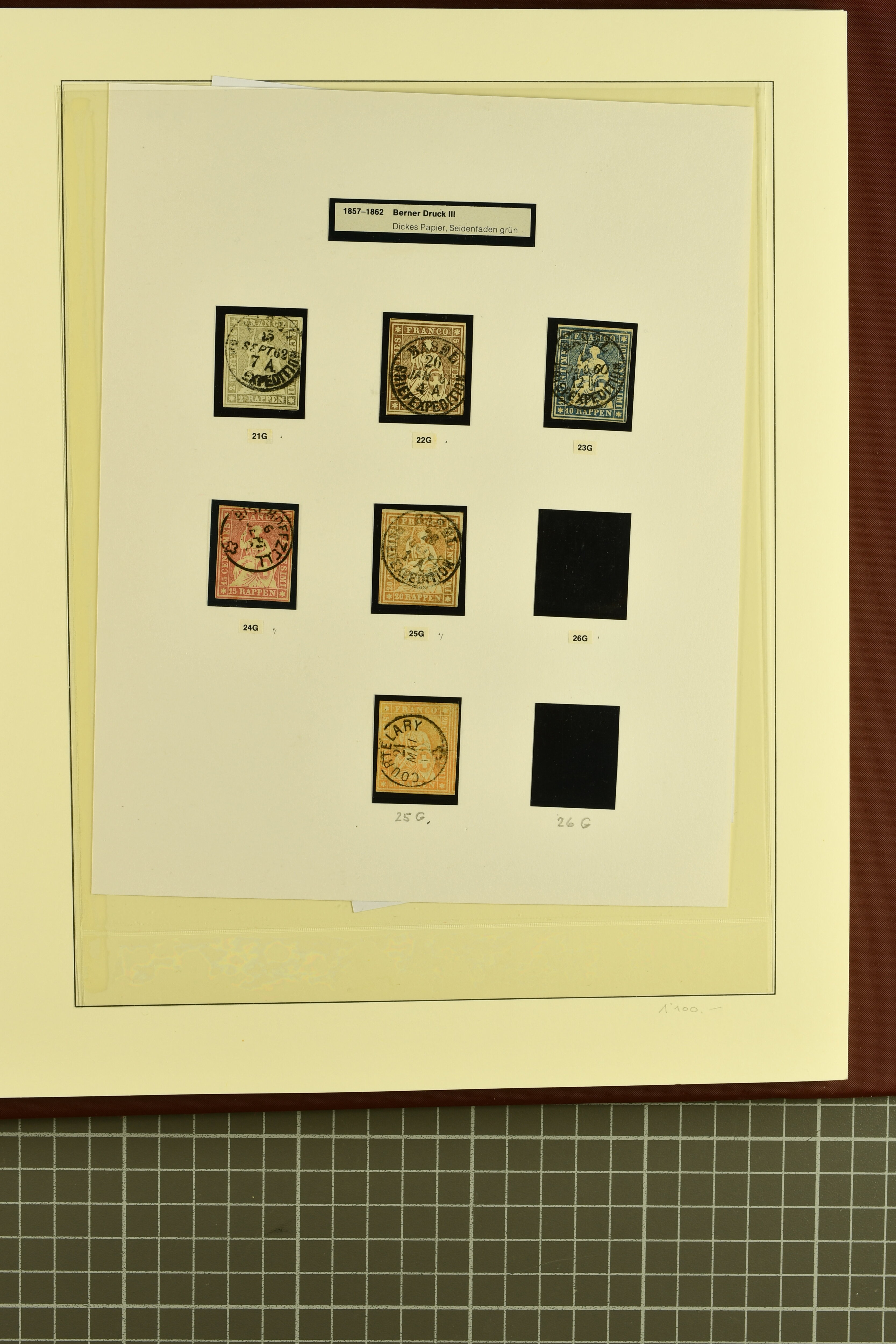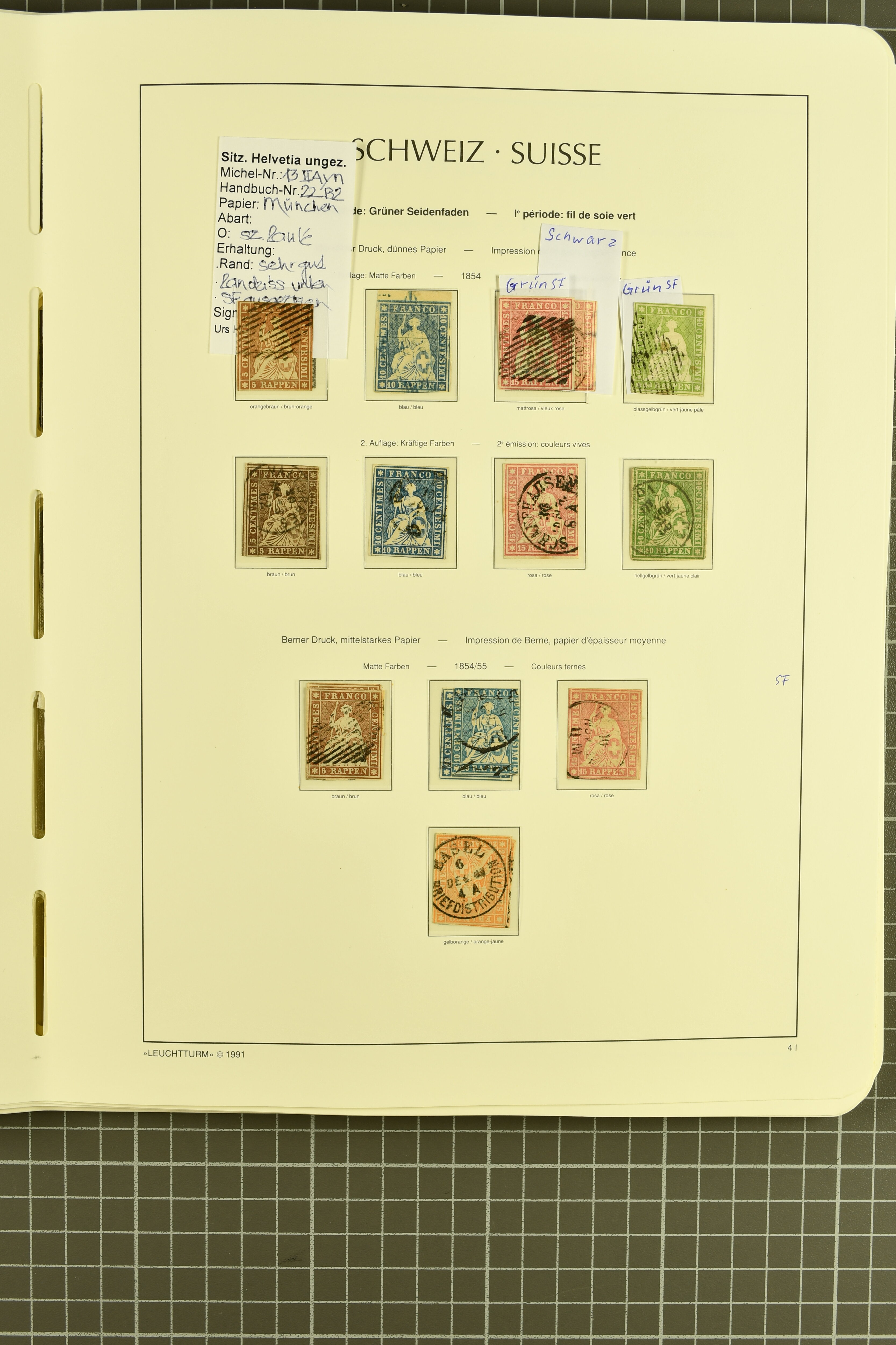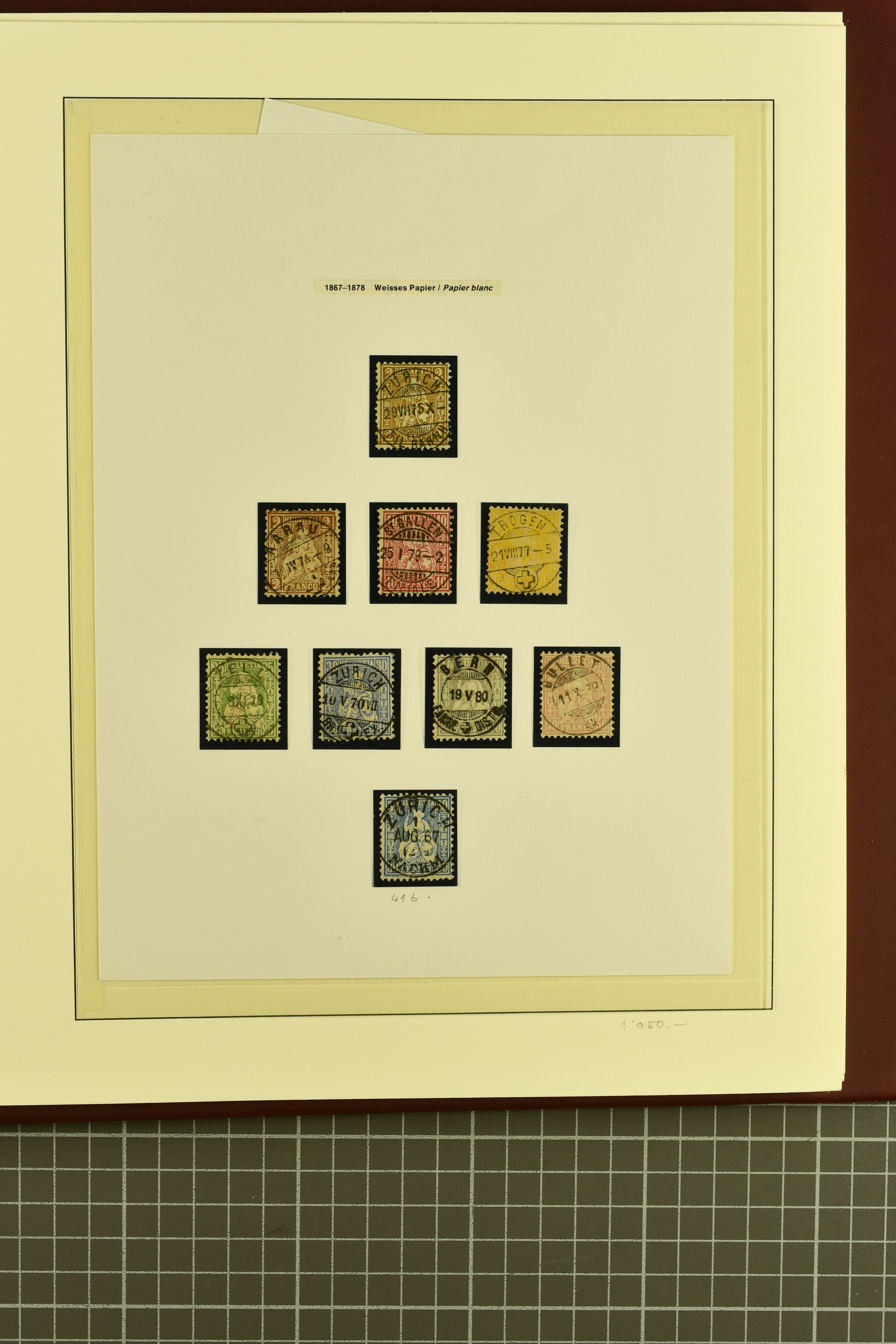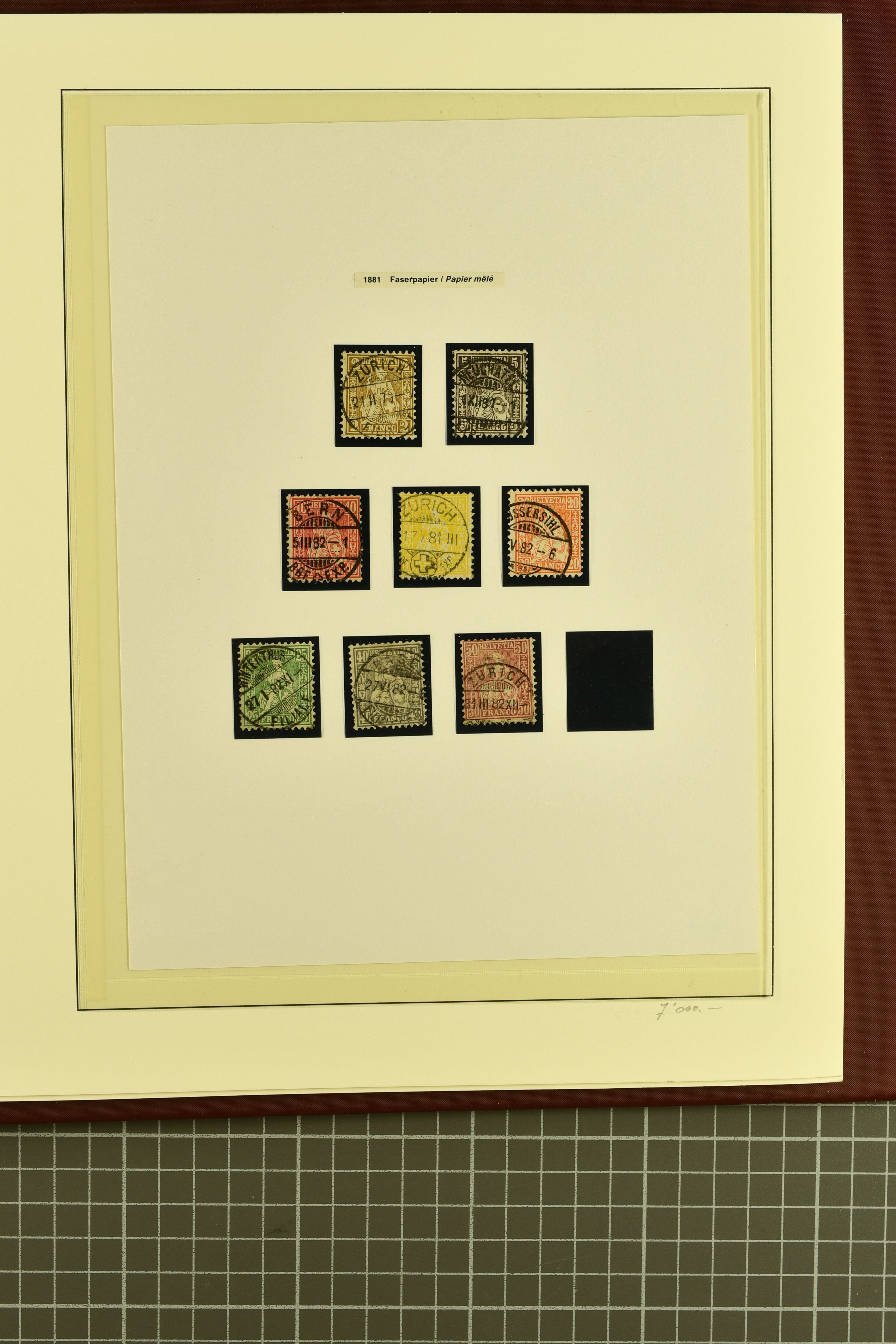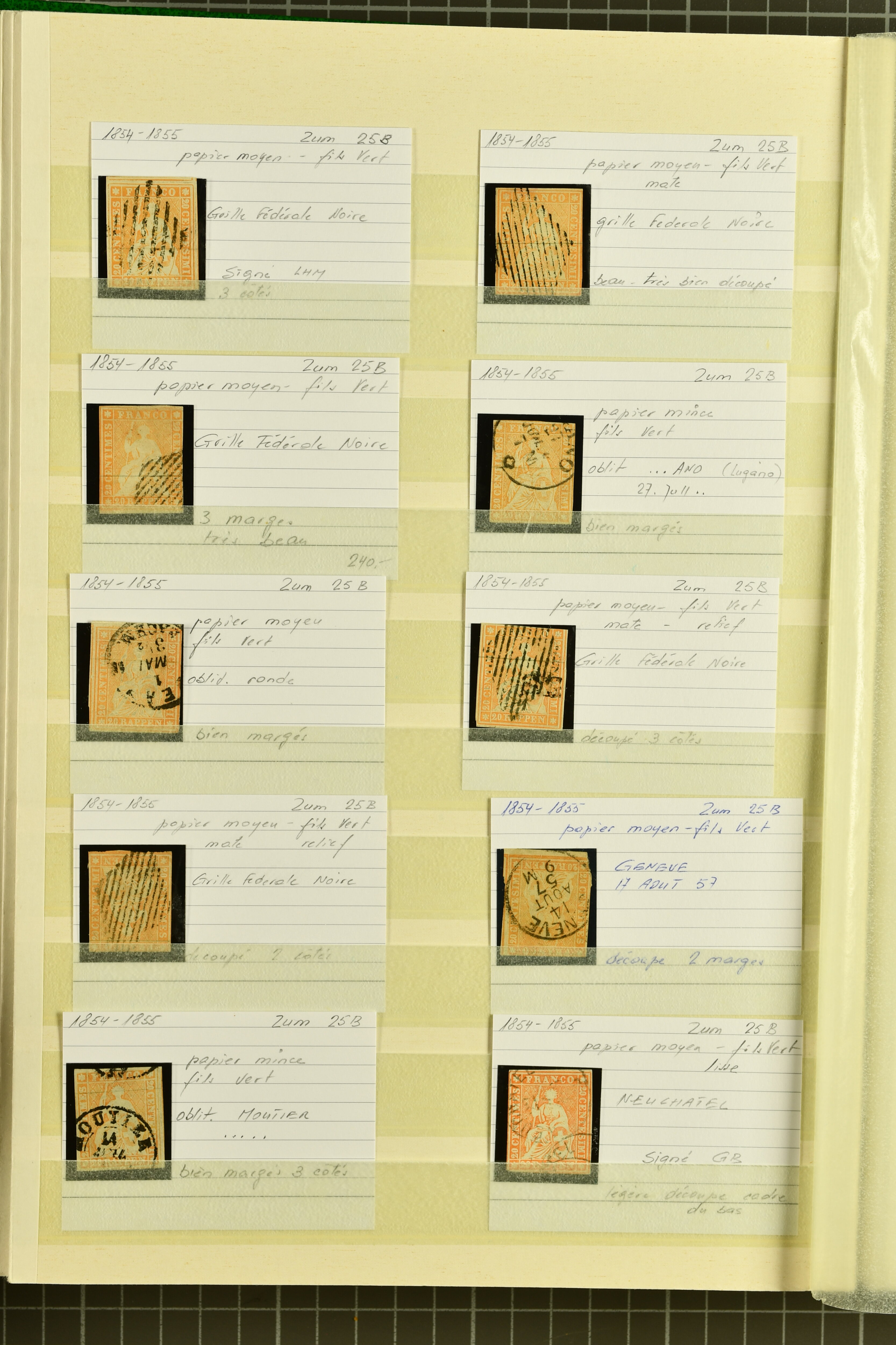 9852 image1850/1906: Umfangreiche Sammlung hunderter meist gestempelter Marken der Ausgaben Rayon I bis UPU 1900, sauber in zwei grossen Einsteckbüchern. Dabei Rayon I (3), Rayon II (14) und Rayon I hellblau (7) inkl. vereinzelten selteneren Drucksteinen und schönen Entwertungen, Rayon III kl. Wertziffer, Centimes und gr. Wertziffer (7), Strubel (130) mit besseren wie 5 Rp. braunorange (SBK 22Aa), 1 Fr. grau (SBK 27C/D, 2) oder 2 Rp. grau (SBK 21G), Sitzende Helvetia (210) mit allen Wertstufen mehrfach vorhanden inkl. einigen besseren Nuancen wie 1 Fr. goldbronze mit rötlichem Unterdruck (SBK 36a) oder 2 Rp. hellrotbraun (SBK 37a, 2) und einigen Werten bis 25 Rp. auf Faserpapier, Ziffermuster inkl. 5 Rp. hellbraunlila (SBK 54, 3), 10 Rp. hellrosa (SBK 55) und 15 Rp. gelb (SBK 57) auf weissem Papier, Stehende Helvetia (350) inkl. 50 Rp. blau (SBK 70B) und 1 Fr. lila (SBK 71B, 3) in der "groben" Zähnung 9¾:9¼, 3 Fr. hellbraun gez. 11½:11 auf Papier mit Wz. (SBK 92A, 3) oder 30 Rp. orangebraun gez. 11½:11 auf Papier mit Wz. (SBK 96B) sowie 40 Rp. grau (SBK 69E) schön diagonal entw. mit Stabstp. "LAUPEN" und UPU 1900 (50) inkl. 5 Rp. grün (SBK 77B) mit starkem rücks. Abklatsch. Meist gute Erhaltung; teils signiert, fünf Befunde, ein Attest. SBK=CHF 32'000 (n. Ang. d. Einl.) (Image 1) (Image 2) (Image 3) (Image 4) (Image 5) (Image 6) (Image 7) (Image 8) (Image 9) (Image 10) (Image 11) (Image 12) (Image 13) (Image 14) (Image 15) (Image 16) (Image 17) (Image 18) (Image 19) (Image 20) (Image 21) (Image 22) (Image 23) (Image 24) (Image 25) (Image 26) (Image 27) (Image 28) (Image 29) (Image 30) (Image 31) (Image 32) (Image 33) (Image 34) (Image 35) (Image 36) (Image 37) (Image 38) (Image 39) (Image 40) (Image 41) (Image 42) (Image 43) (Image 44) (Image 45) (Image 46) (Image 47) (Image 48) (Image 49) (Image 50)