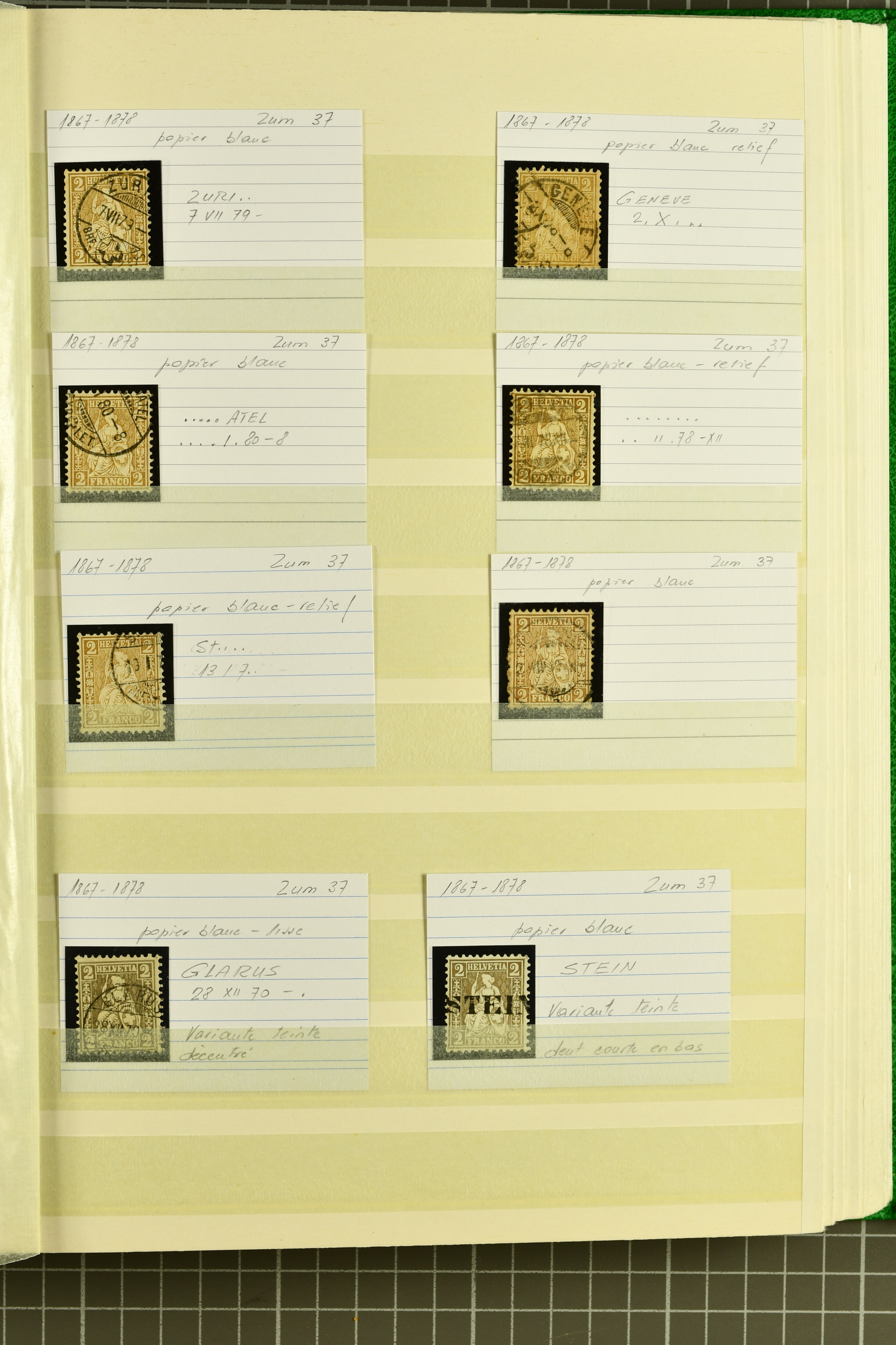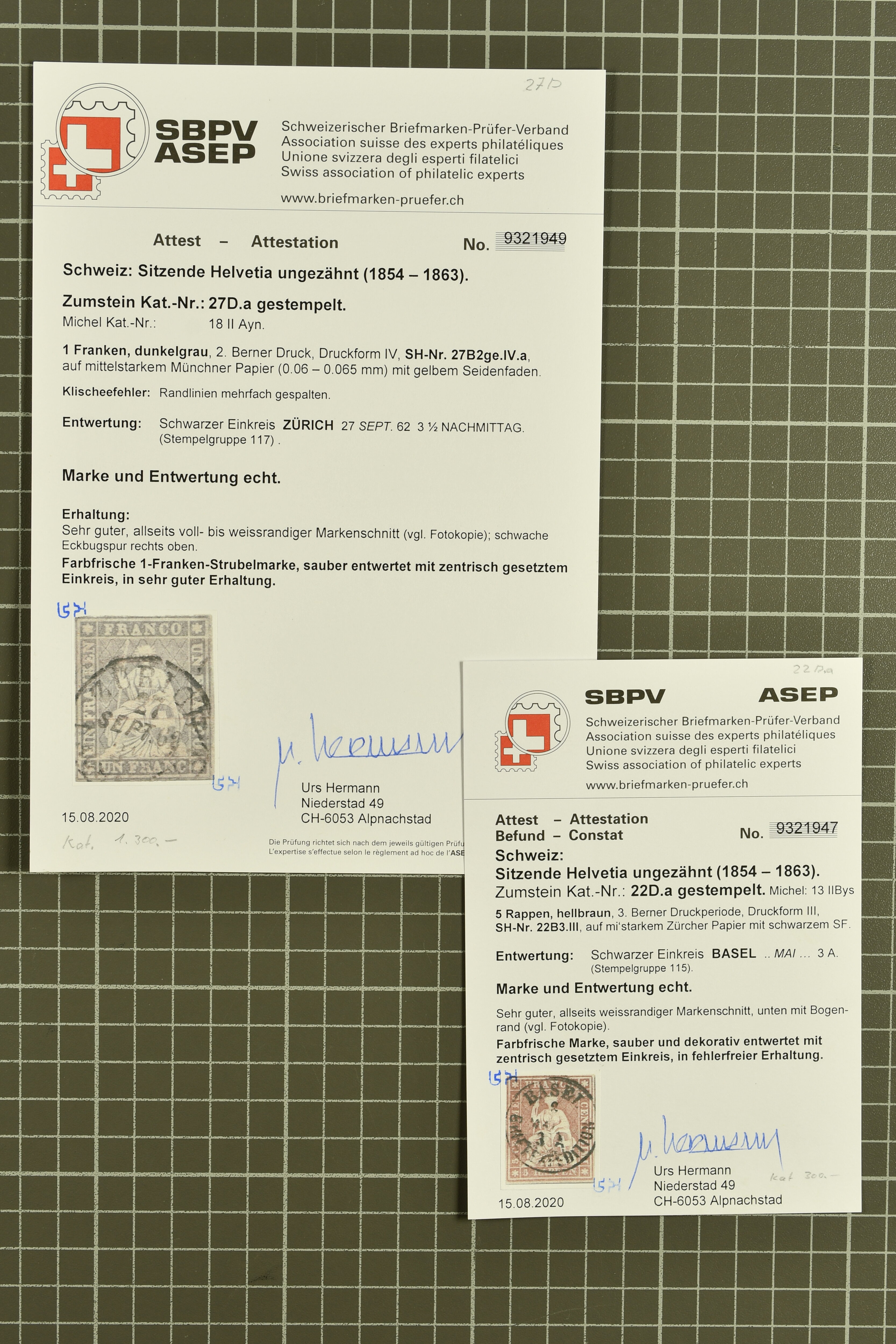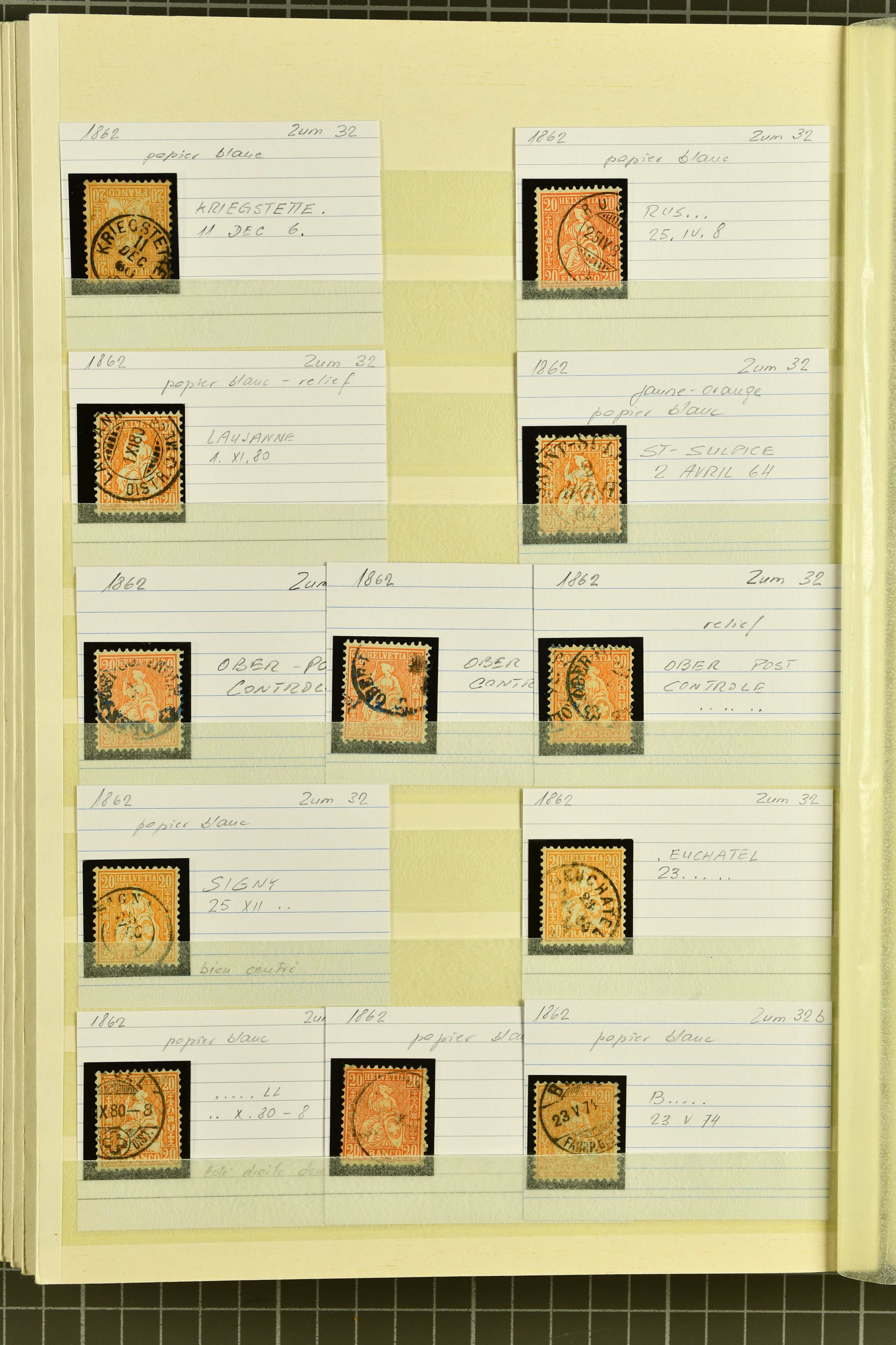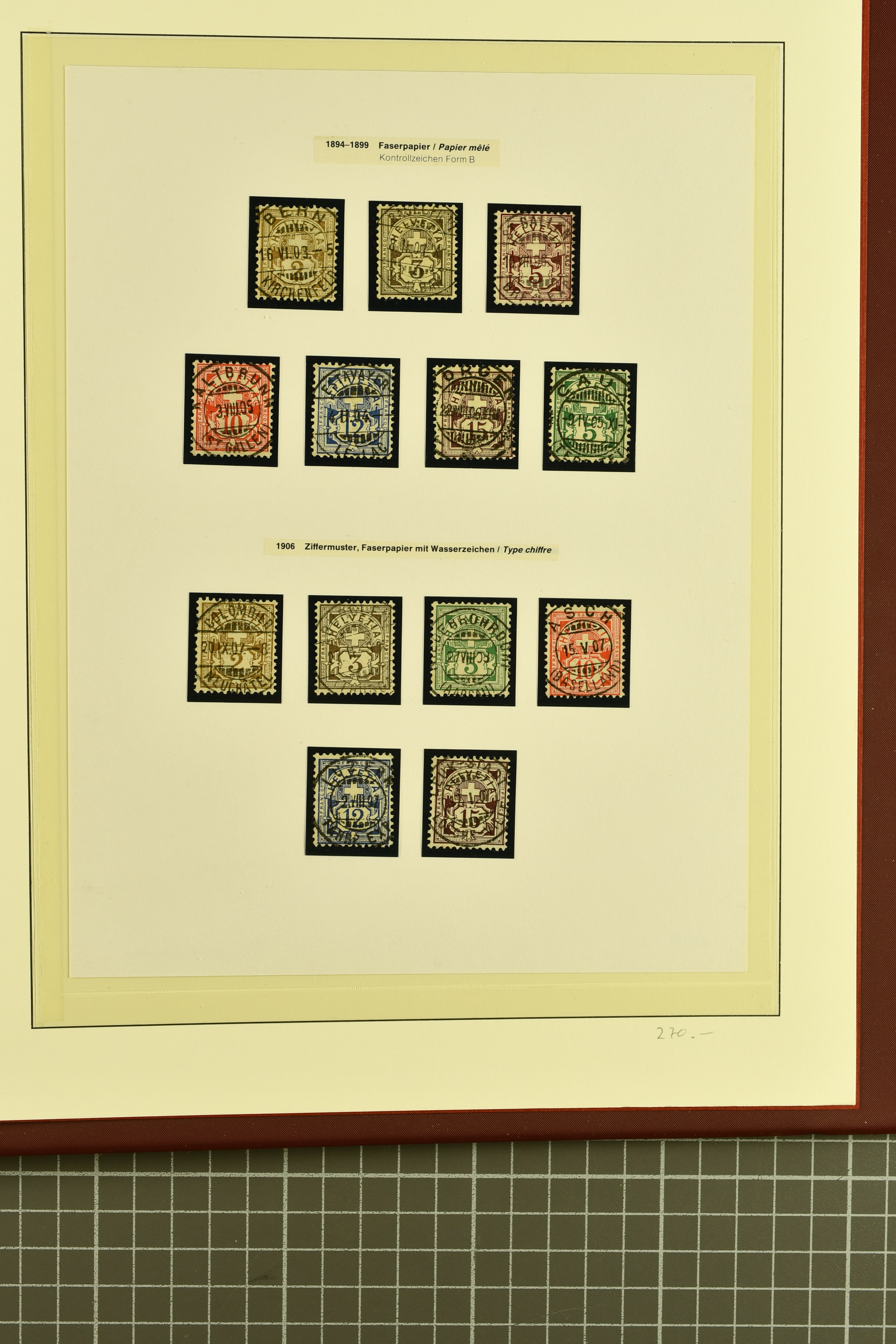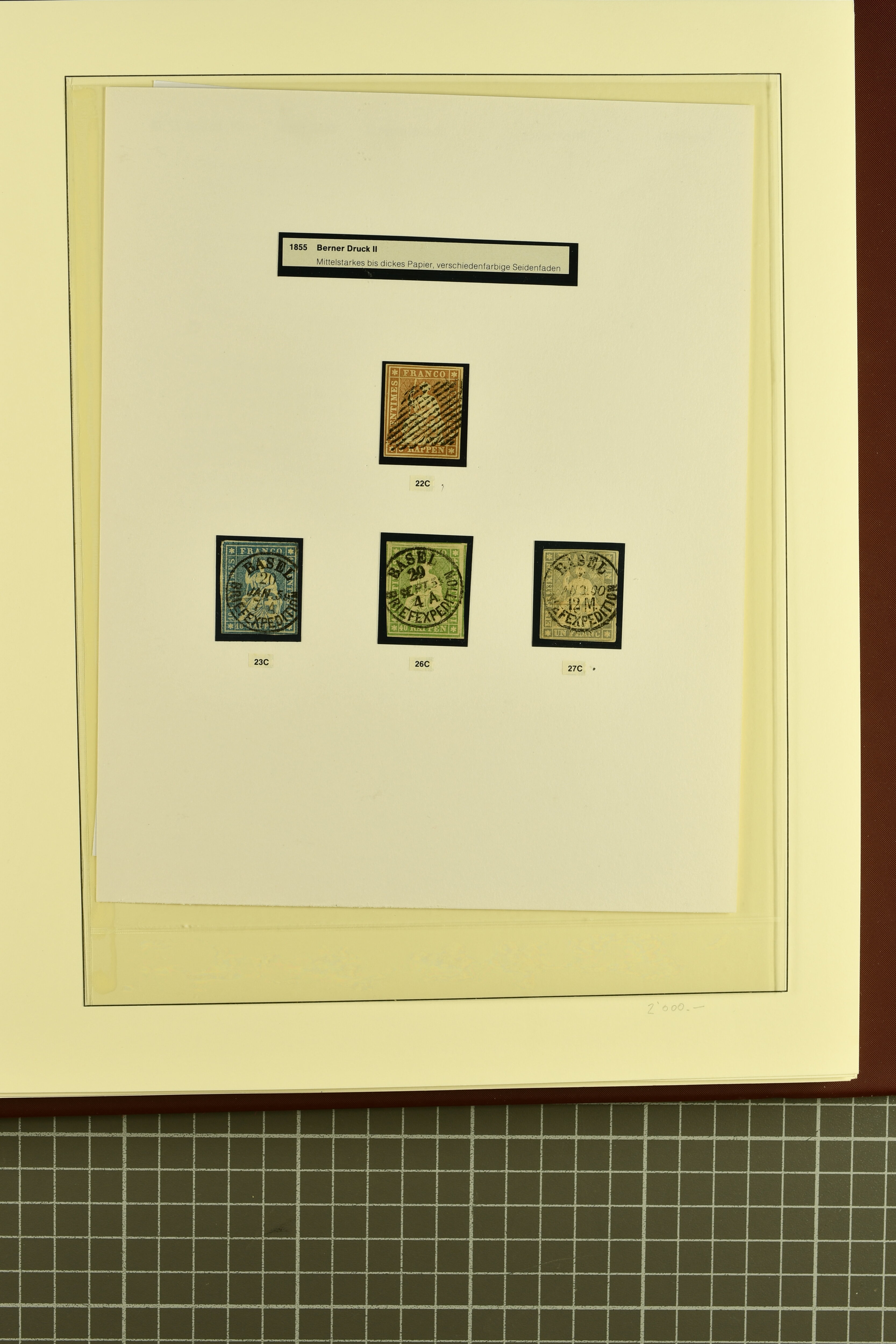 9852 image1850/1906: Umfangreiche Sammlung hunderter meist gestempelter Marken der Ausgaben Rayon I bis UPU 1900, sauber in zwei grossen Einsteckbüchern. Dabei Rayon I (3), Rayon II (14) und Rayon I hellblau (7) inkl. vereinzelten selteneren Drucksteinen und schönen Entwertungen, Rayon III kl. Wertziffer, Centimes und gr. Wertziffer (7), Strubel (130) mit besseren wie 5 Rp. braunorange (SBK 22Aa), 1 Fr. grau (SBK 27C/D, 2) oder 2 Rp. grau (SBK 21G), Sitzende Helvetia (210) mit allen Wertstufen mehrfach vorhanden inkl. einigen besseren Nuancen wie 1 Fr. goldbronze mit rötlichem Unterdruck (SBK 36a) oder 2 Rp. hellrotbraun (SBK 37a, 2) und einigen Werten bis 25 Rp. auf Faserpapier, Ziffermuster inkl. 5 Rp. hellbraunlila (SBK 54, 3), 10 Rp. hellrosa (SBK 55) und 15 Rp. gelb (SBK 57) auf weissem Papier, Stehende Helvetia (350) inkl. 50 Rp. blau (SBK 70B) und 1 Fr. lila (SBK 71B, 3) in der "groben" Zähnung 9¾:9¼, 3 Fr. hellbraun gez. 11½:11 auf Papier mit Wz. (SBK 92A, 3) oder 30 Rp. orangebraun gez. 11½:11 auf Papier mit Wz. (SBK 96B) sowie 40 Rp. grau (SBK 69E) schön diagonal entw. mit Stabstp. "LAUPEN" und UPU 1900 (50) inkl. 5 Rp. grün (SBK 77B) mit starkem rücks. Abklatsch. Meist gute Erhaltung; teils signiert, fünf Befunde, ein Attest. SBK=CHF 32'000 (n. Ang. d. Einl.) (Image 1) (Image 2) (Image 3) (Image 4) (Image 5) (Image 6) (Image 7) (Image 8) (Image 9) (Image 10) (Image 11) (Image 12) (Image 13) (Image 14) (Image 15) (Image 16) (Image 17) (Image 18) (Image 19) (Image 20) (Image 21) (Image 22) (Image 23) (Image 24) (Image 25) (Image 26) (Image 27) (Image 28) (Image 29) (Image 30) (Image 31) (Image 32) (Image 33) (Image 34) (Image 35) (Image 36) (Image 37) (Image 38) (Image 39) (Image 40) (Image 41) (Image 42) (Image 43) (Image 44) (Image 45) (Image 46) (Image 47) (Image 48) (Image 49) (Image 50)