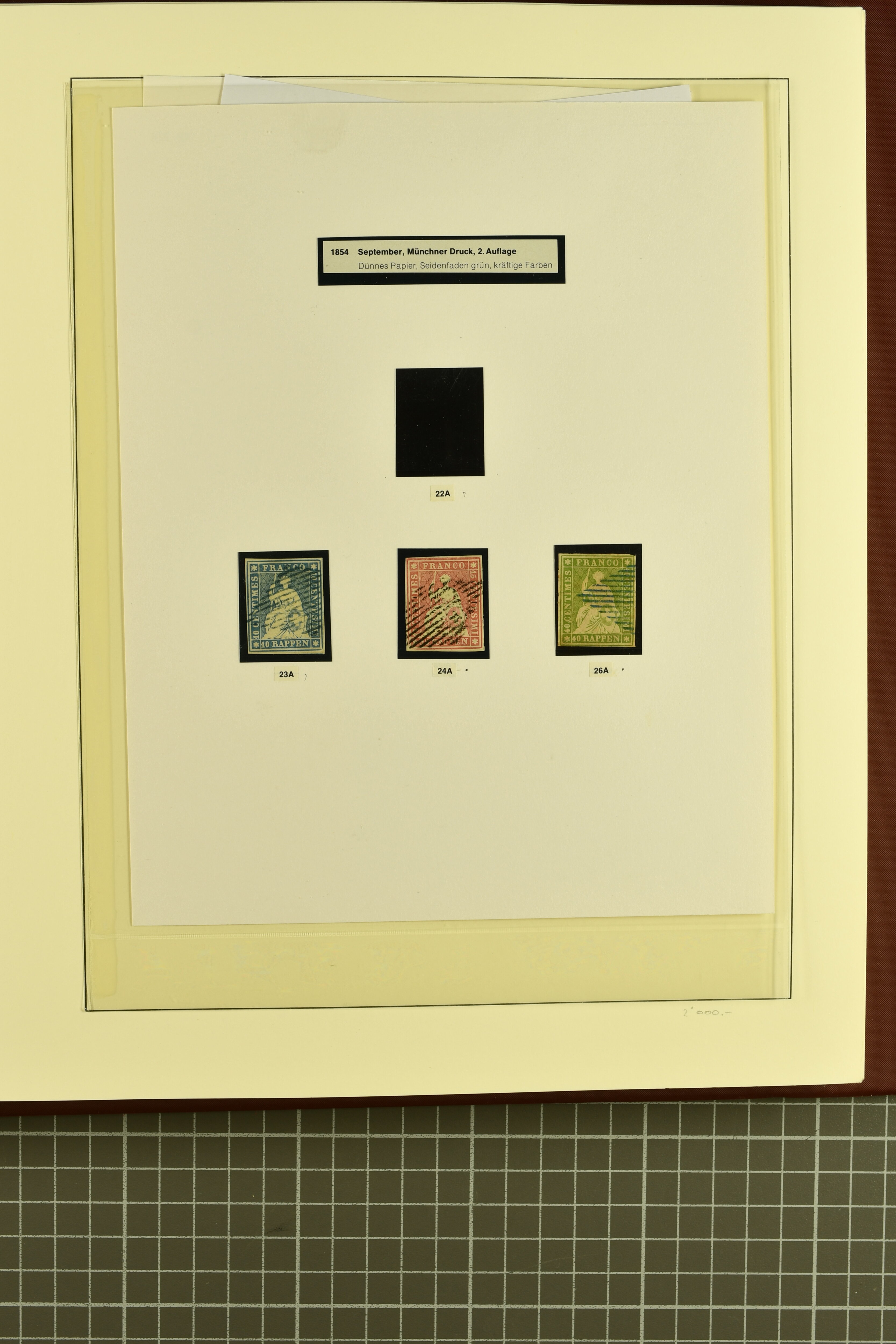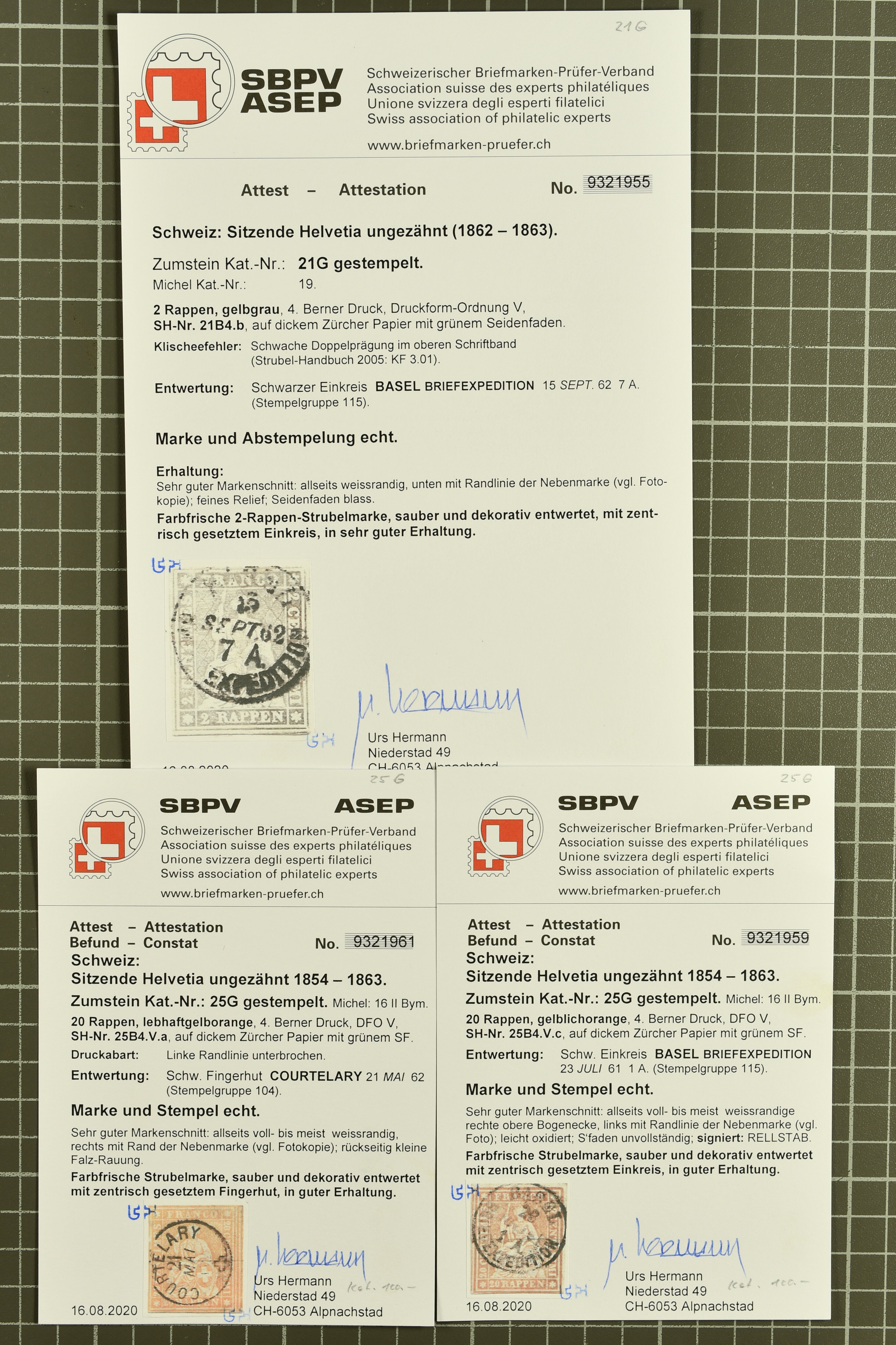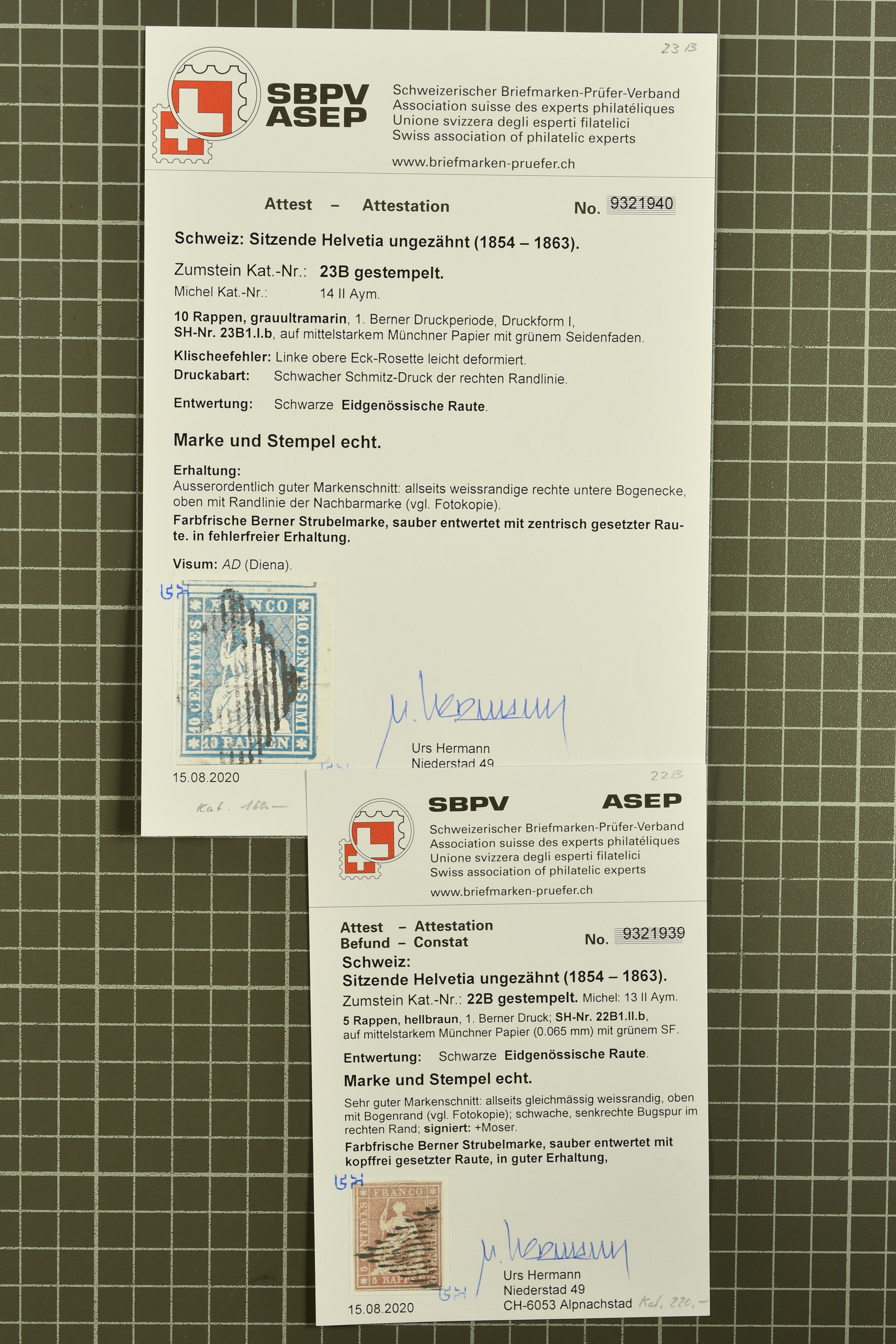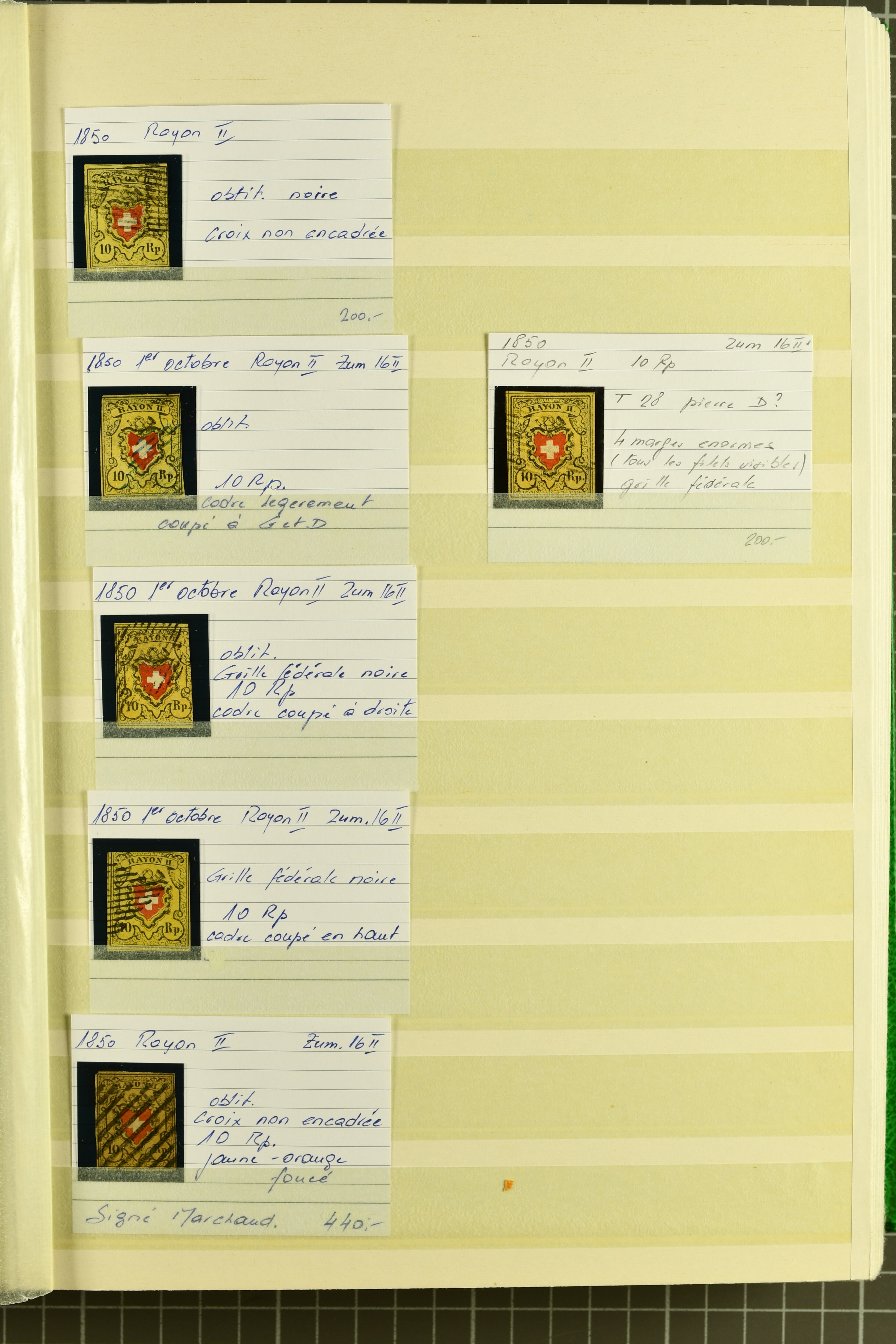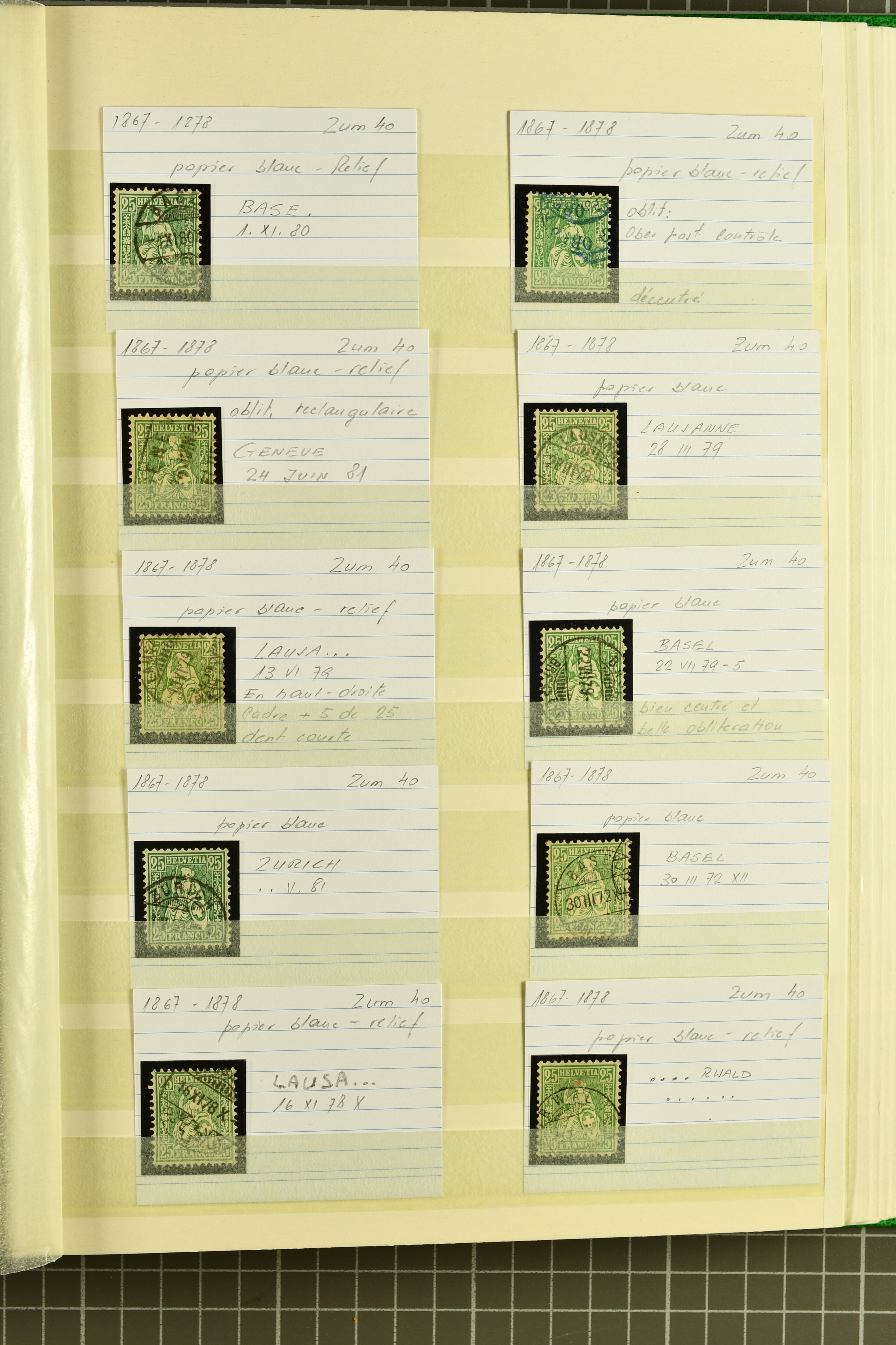 9852 image1850/1906: Umfangreiche Sammlung hunderter meist gestempelter Marken der Ausgaben Rayon I bis UPU 1900, sauber in zwei grossen Einsteckbüchern. Dabei Rayon I (3), Rayon II (14) und Rayon I hellblau (7) inkl. vereinzelten selteneren Drucksteinen und schönen Entwertungen, Rayon III kl. Wertziffer, Centimes und gr. Wertziffer (7), Strubel (130) mit besseren wie 5 Rp. braunorange (SBK 22Aa), 1 Fr. grau (SBK 27C/D, 2) oder 2 Rp. grau (SBK 21G), Sitzende Helvetia (210) mit allen Wertstufen mehrfach vorhanden inkl. einigen besseren Nuancen wie 1 Fr. goldbronze mit rötlichem Unterdruck (SBK 36a) oder 2 Rp. hellrotbraun (SBK 37a, 2) und einigen Werten bis 25 Rp. auf Faserpapier, Ziffermuster inkl. 5 Rp. hellbraunlila (SBK 54, 3), 10 Rp. hellrosa (SBK 55) und 15 Rp. gelb (SBK 57) auf weissem Papier, Stehende Helvetia (350) inkl. 50 Rp. blau (SBK 70B) und 1 Fr. lila (SBK 71B, 3) in der "groben" Zähnung 9¾:9¼, 3 Fr. hellbraun gez. 11½:11 auf Papier mit Wz. (SBK 92A, 3) oder 30 Rp. orangebraun gez. 11½:11 auf Papier mit Wz. (SBK 96B) sowie 40 Rp. grau (SBK 69E) schön diagonal entw. mit Stabstp. "LAUPEN" und UPU 1900 (50) inkl. 5 Rp. grün (SBK 77B) mit starkem rücks. Abklatsch. Meist gute Erhaltung; teils signiert, fünf Befunde, ein Attest. SBK=CHF 32'000 (n. Ang. d. Einl.) (Image 1) (Image 2) (Image 3) (Image 4) (Image 5) (Image 6) (Image 7) (Image 8) (Image 9) (Image 10) (Image 11) (Image 12) (Image 13) (Image 14) (Image 15) (Image 16) (Image 17) (Image 18) (Image 19) (Image 20) (Image 21) (Image 22) (Image 23) (Image 24) (Image 25) (Image 26) (Image 27) (Image 28) (Image 29) (Image 30) (Image 31) (Image 32) (Image 33) (Image 34) (Image 35) (Image 36) (Image 37) (Image 38) (Image 39) (Image 40) (Image 41) (Image 42) (Image 43) (Image 44) (Image 45) (Image 46) (Image 47) (Image 48) (Image 49) (Image 50)