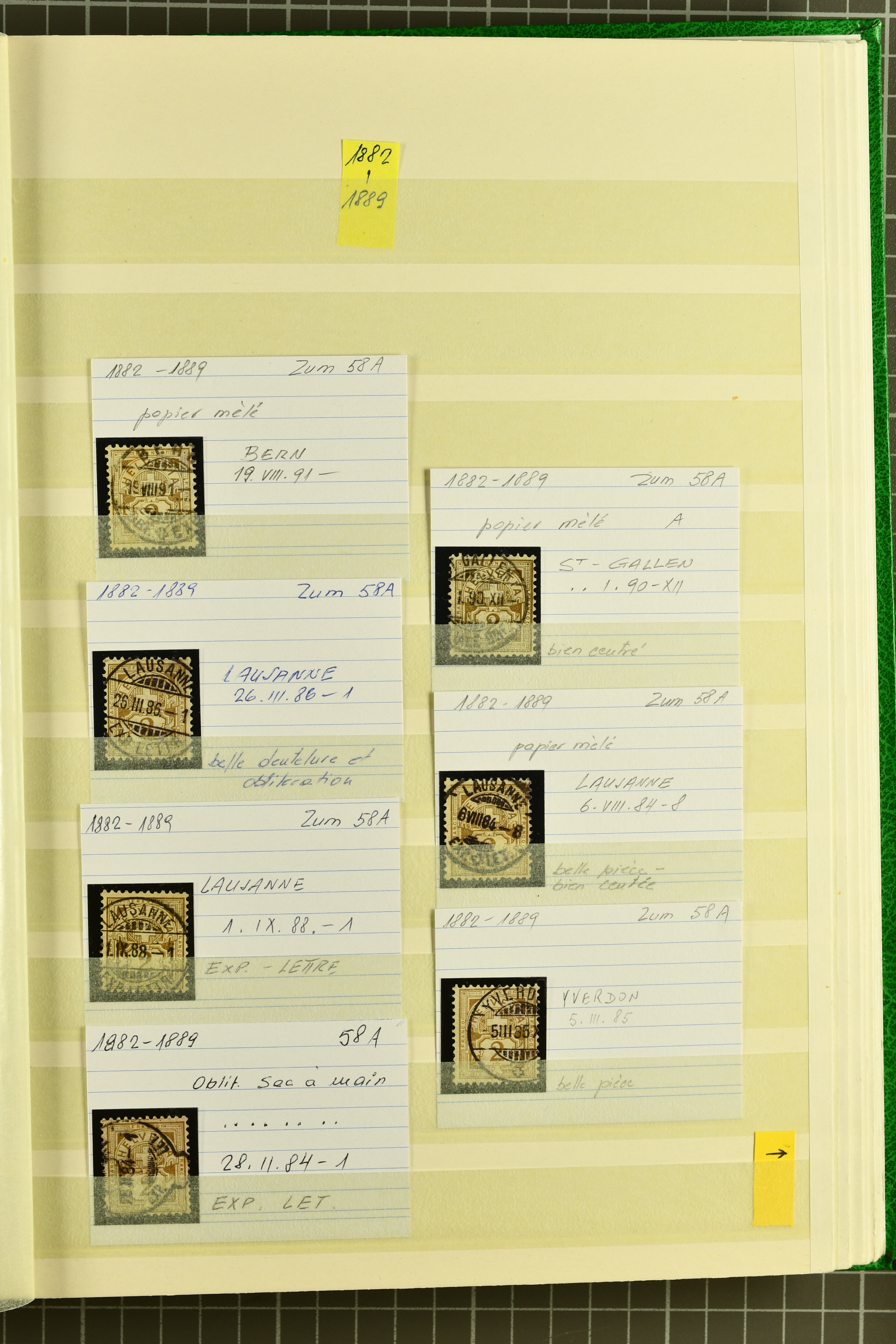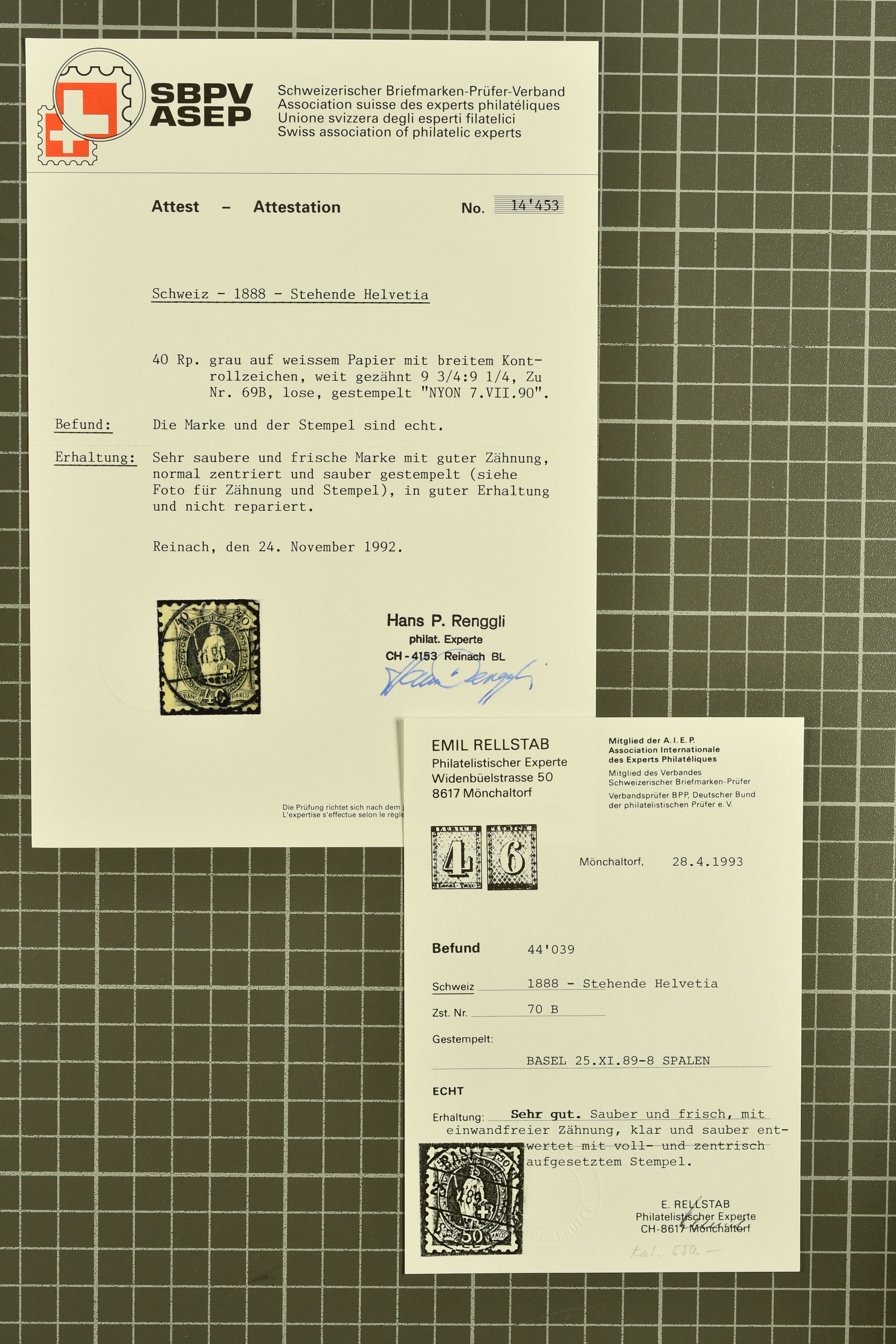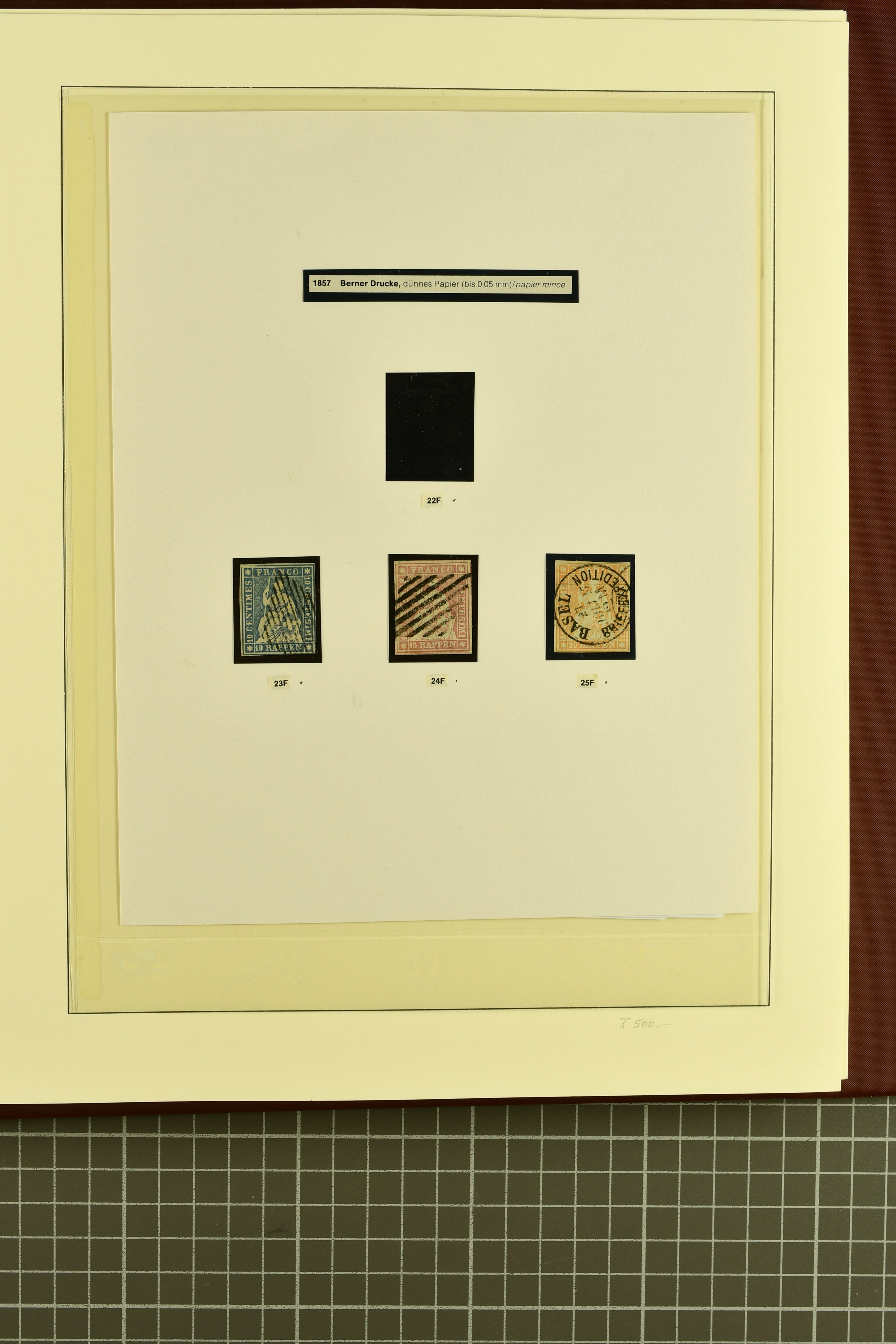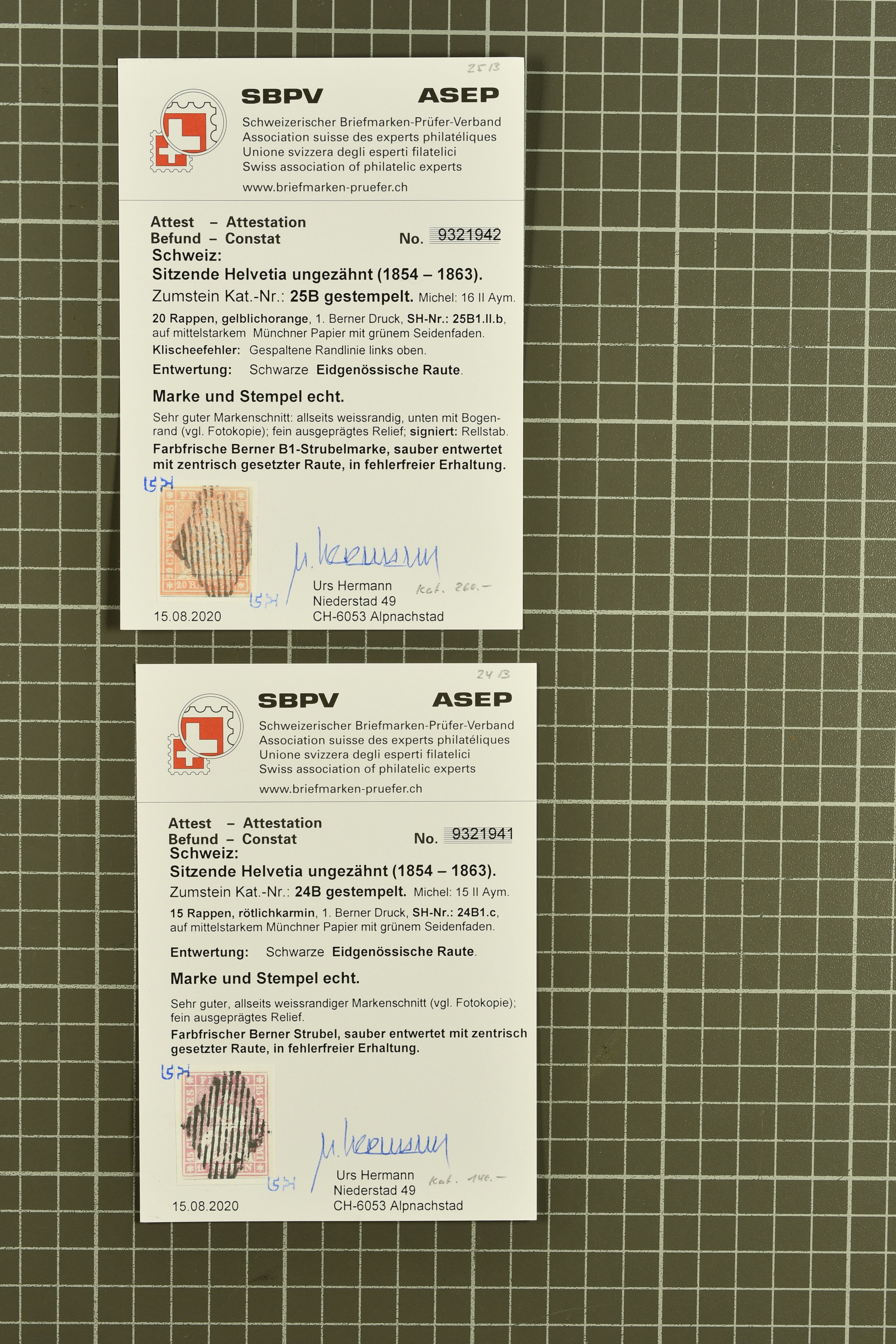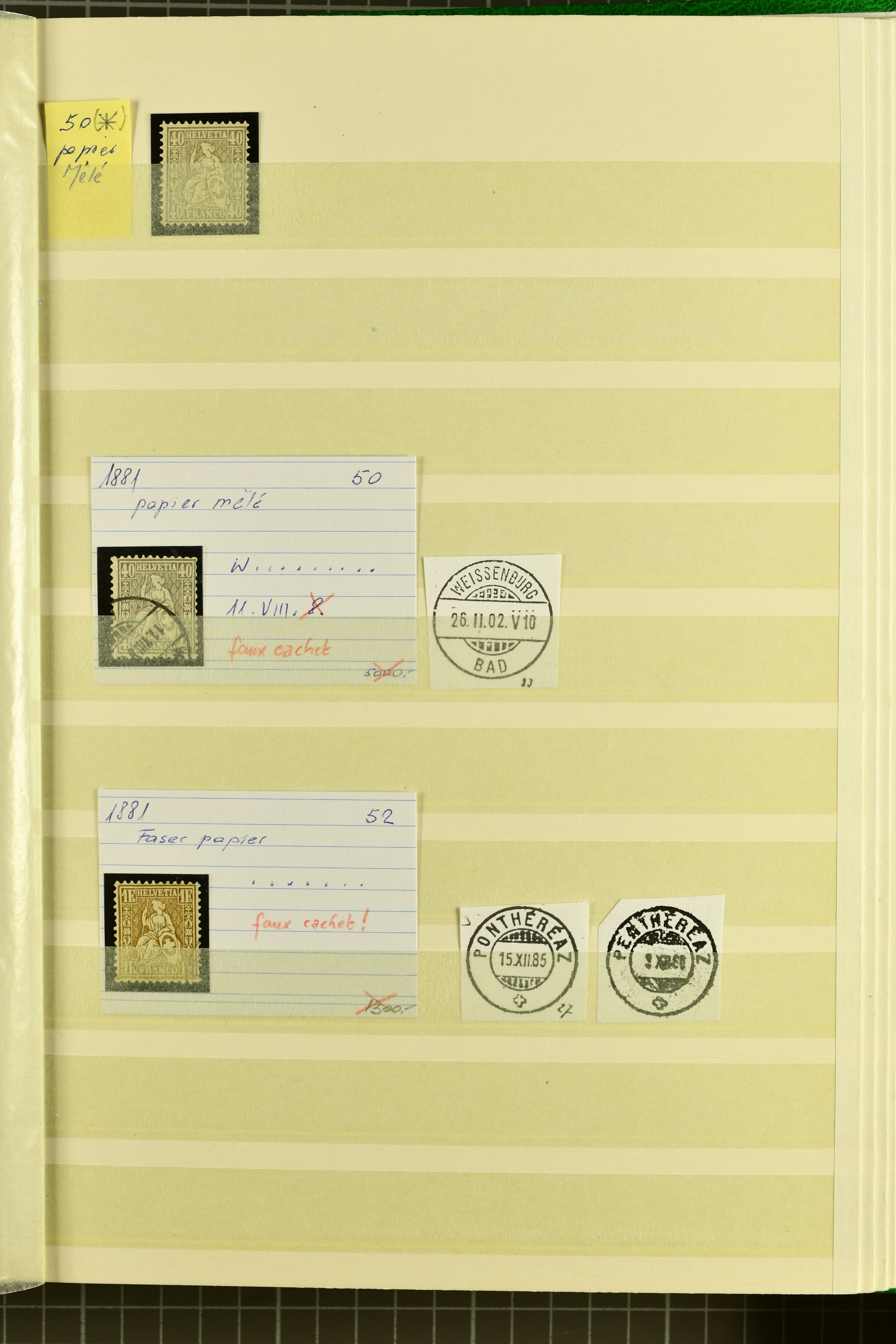 9852 image1850/1906: Umfangreiche Sammlung hunderter meist gestempelter Marken der Ausgaben Rayon I bis UPU 1900, sauber in zwei grossen Einsteckbüchern. Dabei Rayon I (3), Rayon II (14) und Rayon I hellblau (7) inkl. vereinzelten selteneren Drucksteinen und schönen Entwertungen, Rayon III kl. Wertziffer, Centimes und gr. Wertziffer (7), Strubel (130) mit besseren wie 5 Rp. braunorange (SBK 22Aa), 1 Fr. grau (SBK 27C/D, 2) oder 2 Rp. grau (SBK 21G), Sitzende Helvetia (210) mit allen Wertstufen mehrfach vorhanden inkl. einigen besseren Nuancen wie 1 Fr. goldbronze mit rötlichem Unterdruck (SBK 36a) oder 2 Rp. hellrotbraun (SBK 37a, 2) und einigen Werten bis 25 Rp. auf Faserpapier, Ziffermuster inkl. 5 Rp. hellbraunlila (SBK 54, 3), 10 Rp. hellrosa (SBK 55) und 15 Rp. gelb (SBK 57) auf weissem Papier, Stehende Helvetia (350) inkl. 50 Rp. blau (SBK 70B) und 1 Fr. lila (SBK 71B, 3) in der "groben" Zähnung 9¾:9¼, 3 Fr. hellbraun gez. 11½:11 auf Papier mit Wz. (SBK 92A, 3) oder 30 Rp. orangebraun gez. 11½:11 auf Papier mit Wz. (SBK 96B) sowie 40 Rp. grau (SBK 69E) schön diagonal entw. mit Stabstp. "LAUPEN" und UPU 1900 (50) inkl. 5 Rp. grün (SBK 77B) mit starkem rücks. Abklatsch. Meist gute Erhaltung; teils signiert, fünf Befunde, ein Attest. SBK=CHF 32'000 (n. Ang. d. Einl.) (Image 1) (Image 2) (Image 3) (Image 4) (Image 5) (Image 6) (Image 7) (Image 8) (Image 9) (Image 10) (Image 11) (Image 12) (Image 13) (Image 14) (Image 15) (Image 16) (Image 17) (Image 18) (Image 19) (Image 20) (Image 21) (Image 22) (Image 23) (Image 24) (Image 25) (Image 26) (Image 27) (Image 28) (Image 29) (Image 30) (Image 31) (Image 32) (Image 33) (Image 34) (Image 35) (Image 36) (Image 37) (Image 38) (Image 39) (Image 40) (Image 41) (Image 42) (Image 43) (Image 44) (Image 45) (Image 46) (Image 47) (Image 48) (Image 49) (Image 50)