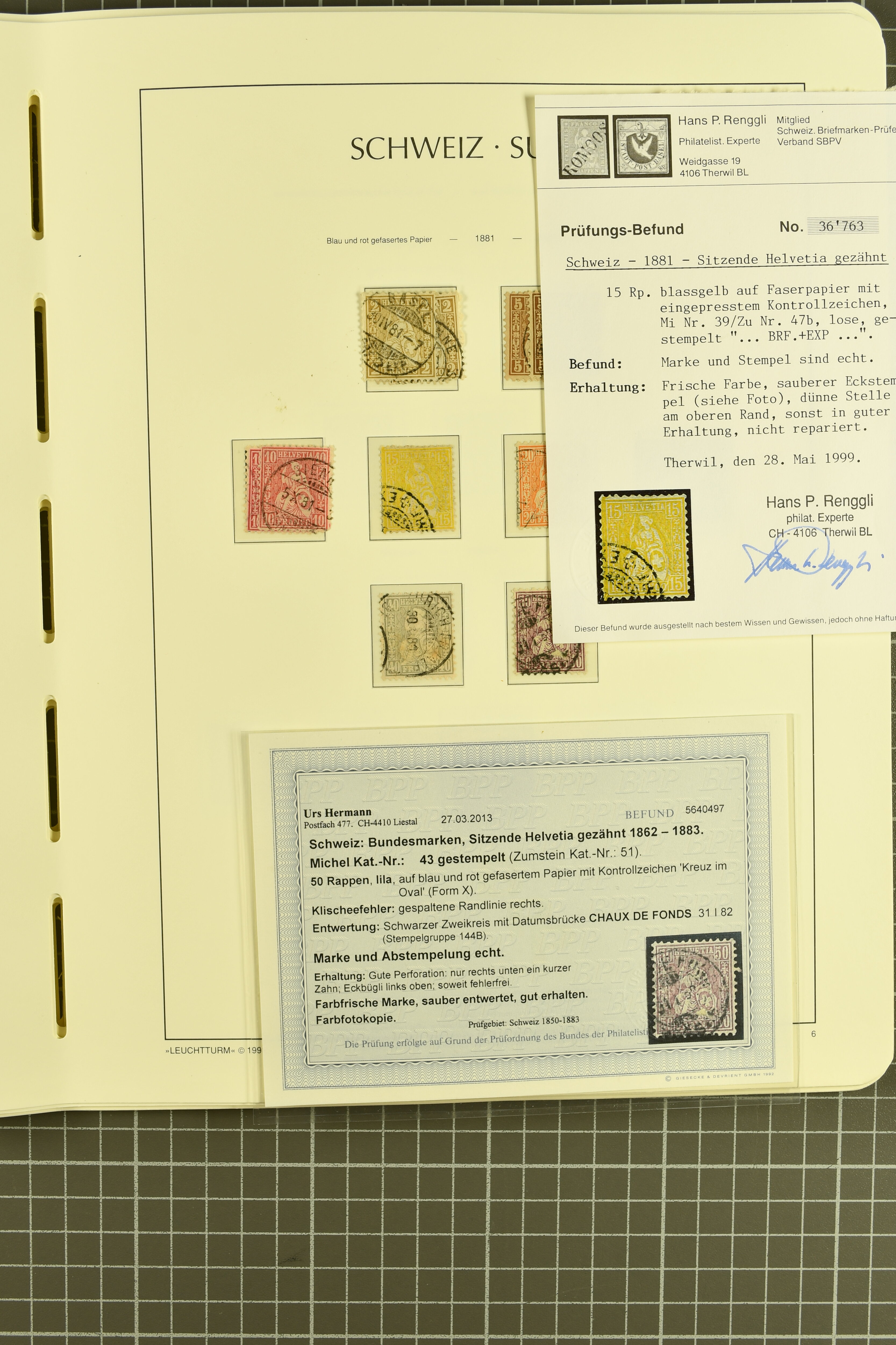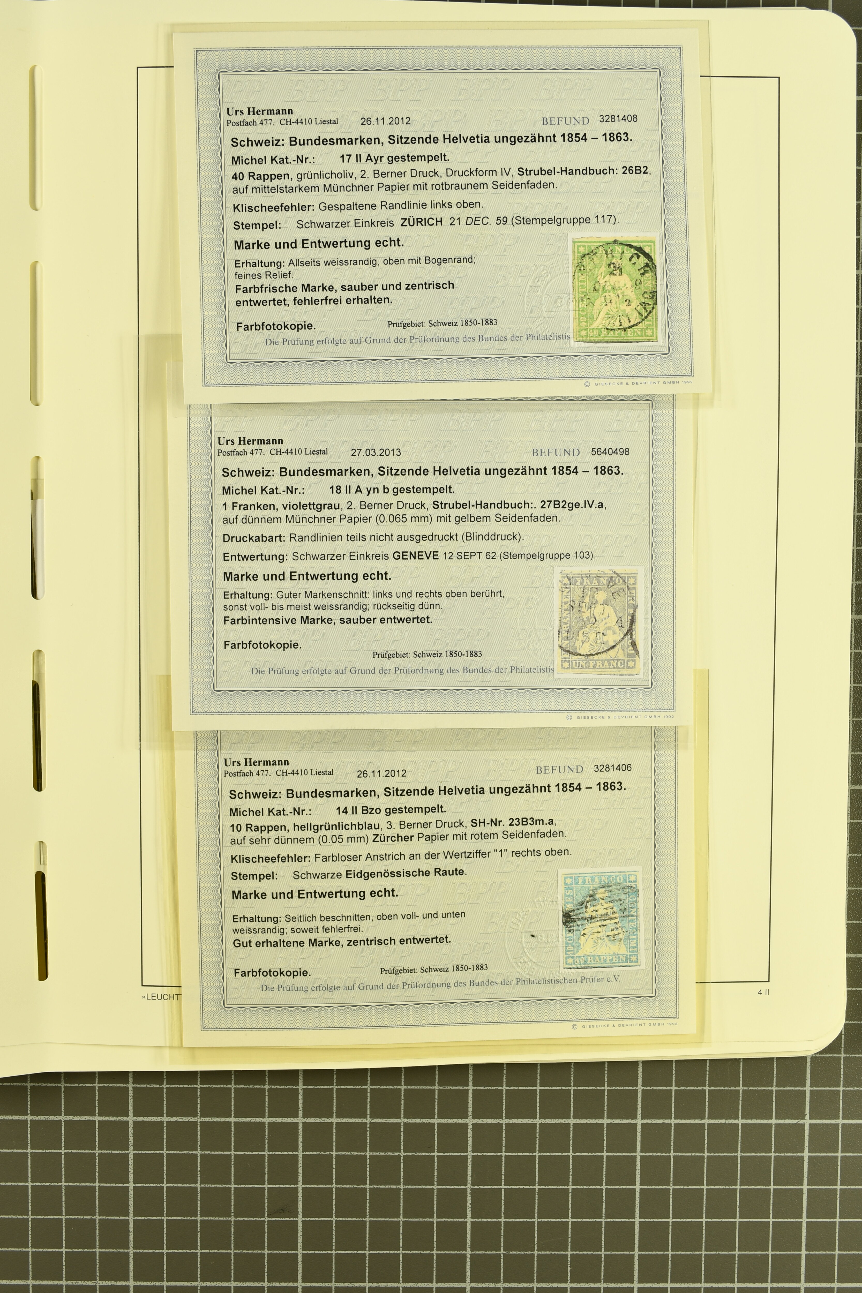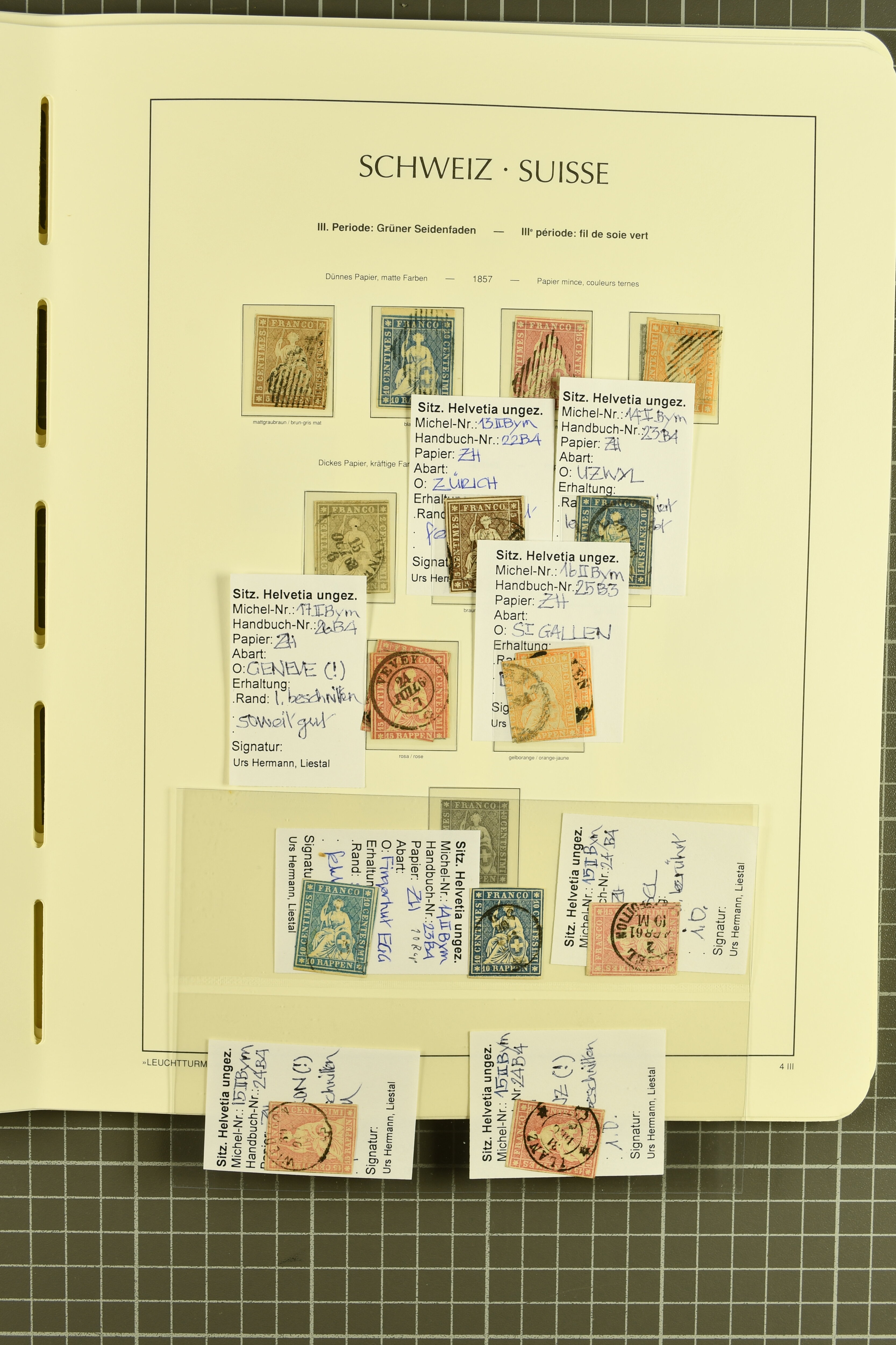 9851 image1854/1906: Saubere Sammlung gestempelt im Lindner-Vordruckalbum ab Strubel mit Sitzender und Stehender Helvetia sowie den Zifferausgaben weitestgehend komplett. Enthalten u.a. 10 Rp,. 15 Rp. und 20 Rp. F-Strubel, 1 Fr. mit bronzefarbenem sowie mit goldenem Unterdruck (Mi. 36a, 36b), beide mit Attest Guinand, 40 Rp. auf Faserpapier (50) mit Altsignatur Locher Togna und Attest Herrmann. Insgesamt 14 Atteste und 1 Befund (Image 1) (Image 2) (Image 3) (Image 4) (Image 5) (Image 6) (Image 7) (Image 8) (Image 9) (Image 10) (Image 11) (Image 12) (Image 13) (Image 14) (Image 15) (Image 16) (Image 17) (Image 18) (Image 19) (Image 20) (Image 21) (Image 22) (Image 23) (Image 24) (Image 25) (Image 26) (Image 27) (Image 28) (Image 29) (Image 30) (Image 31) (Image 32) (Image 33) (Image 34) (Image 35) (Image 36) (Image 37) (Image 38)