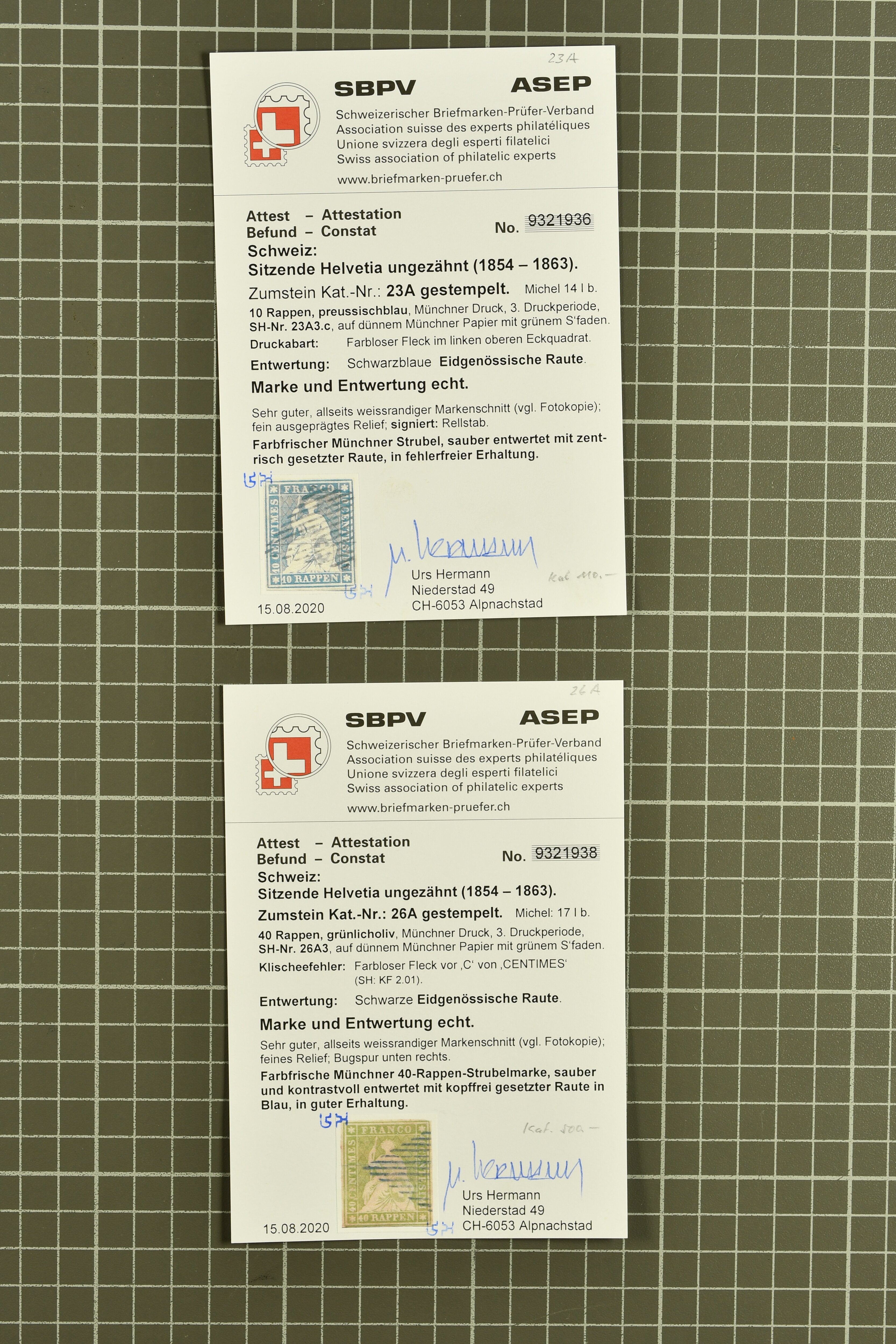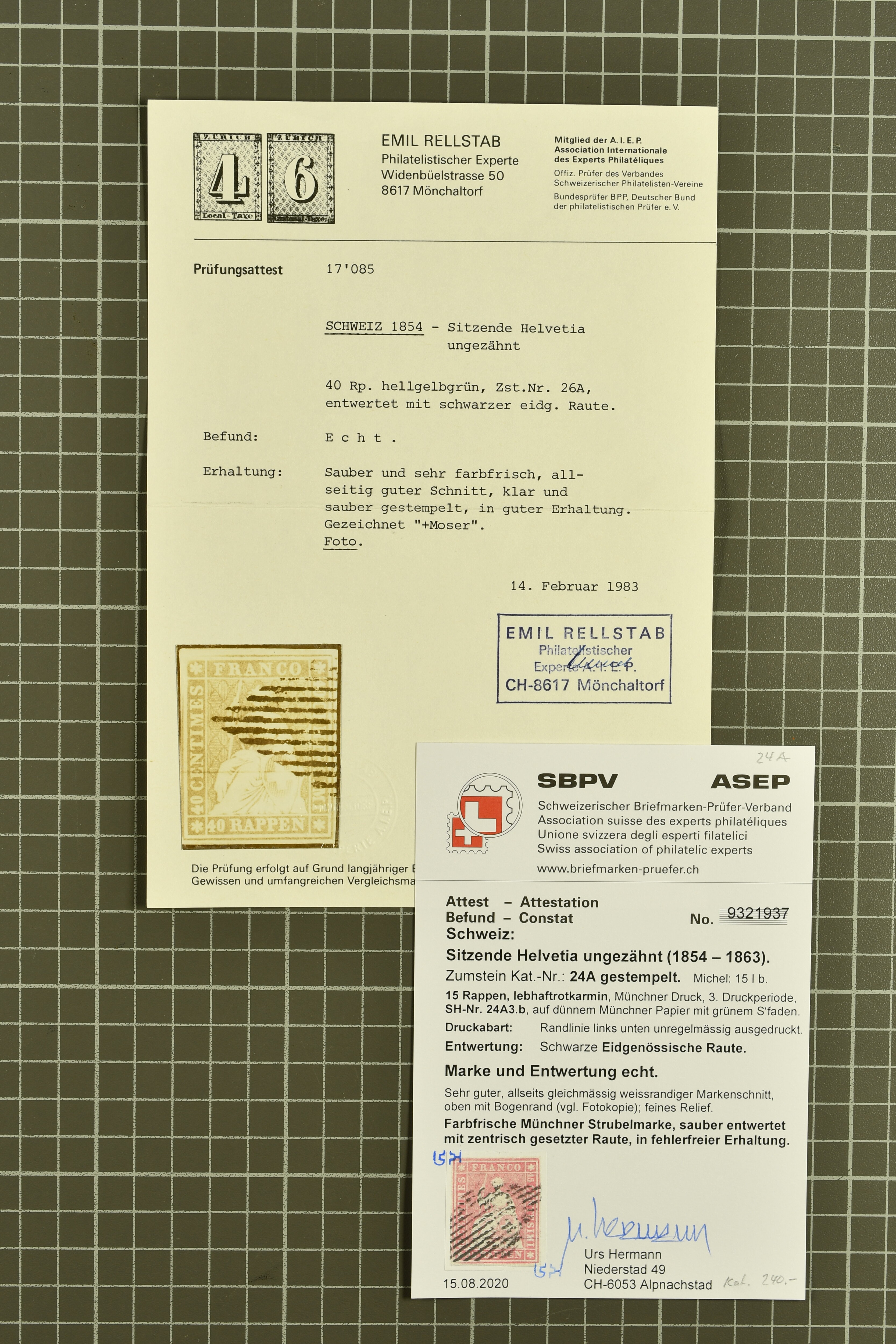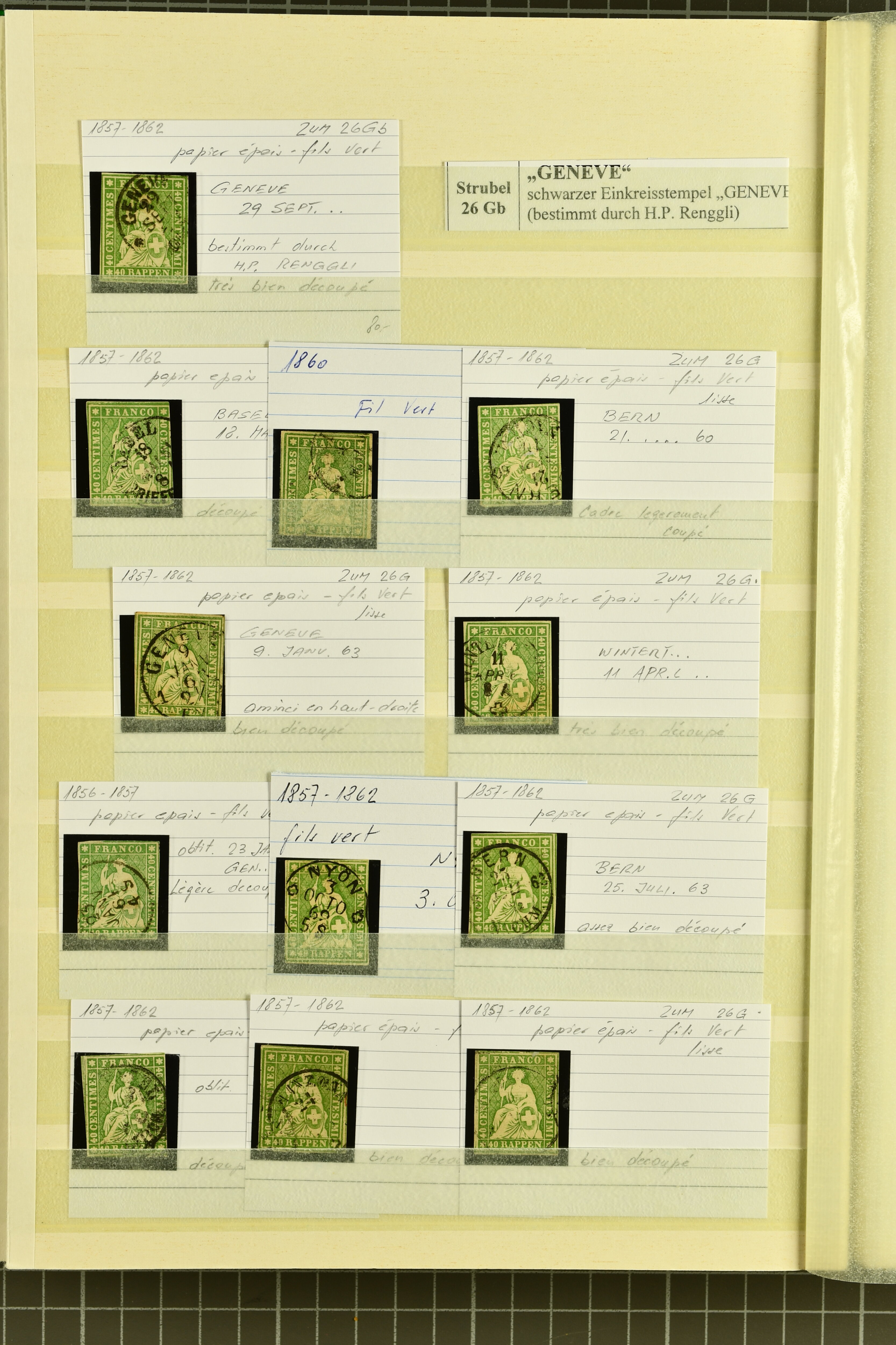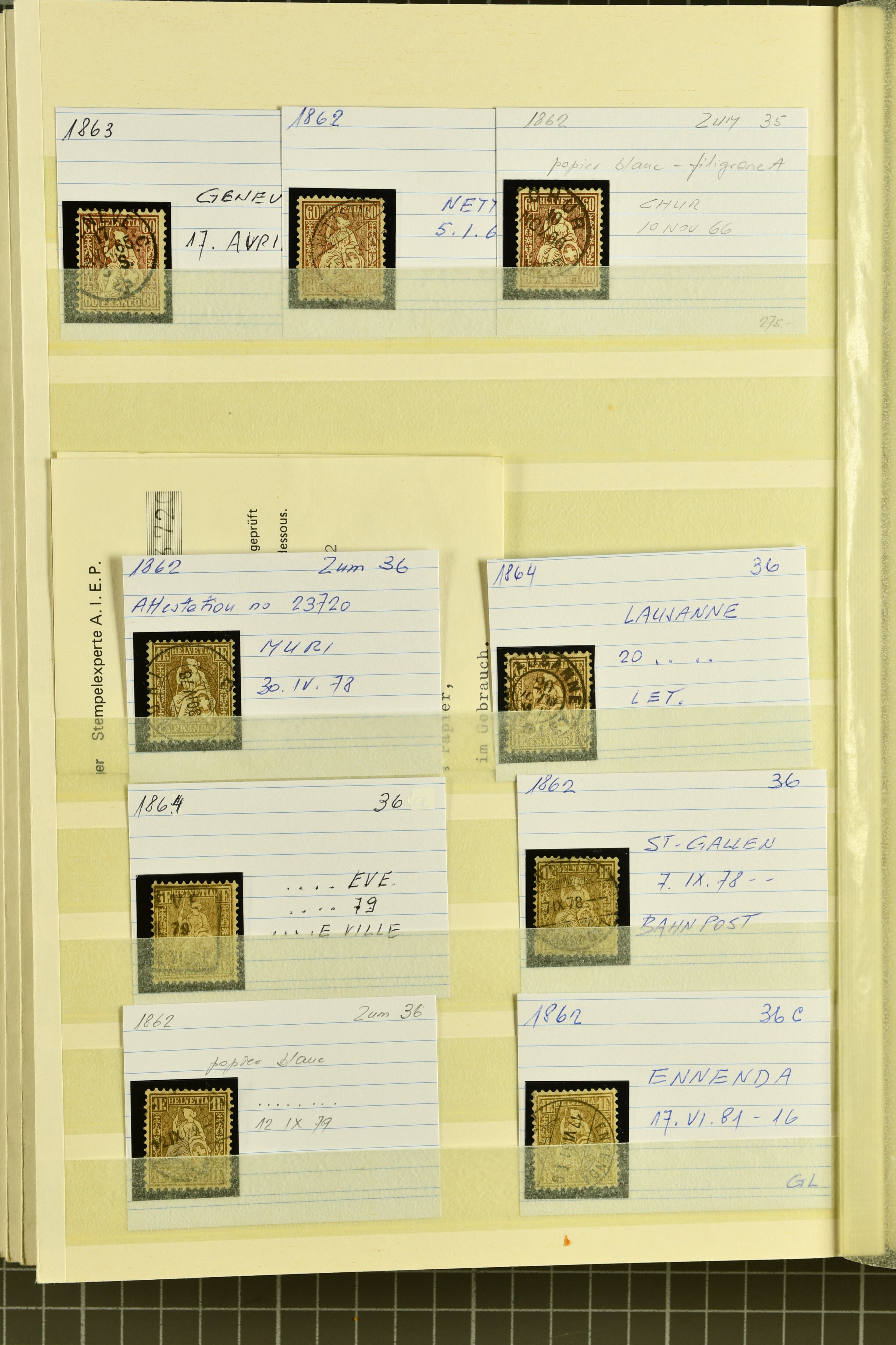9851 image1854/1906: Saubere Sammlung gestempelt im Lindner-Vordruckalbum ab Strubel mit Sitzender und Stehender Helvetia sowie den Zifferausgaben weitestgehend komplett. Enthalten u.a. 10 Rp,. 15 Rp. und 20 Rp. F-Strubel, 1 Fr. mit bronzefarbenem sowie mit goldenem Unterdruck (Mi. 36a, 36b), beide mit Attest Guinand, 40 Rp. auf Faserpapier (50) mit Altsignatur Locher Togna und Attest Herrmann. Insgesamt 14 Atteste und 1 Befund (Image 1) (Image 2) (Image 3) (Image 4) (Image 5) (Image 6) (Image 7) (Image 8) (Image 9) (Image 10) (Image 11) (Image 12) (Image 13) (Image 14) (Image 15) (Image 16) (Image 17) (Image 18) (Image 19) (Image 20) (Image 21) (Image 22) (Image 23) (Image 24) (Image 25) (Image 26) (Image 27) (Image 28) (Image 29) (Image 30) (Image 31) (Image 32) (Image 33) (Image 34) (Image 35) (Image 36) (Image 37) (Image 38)