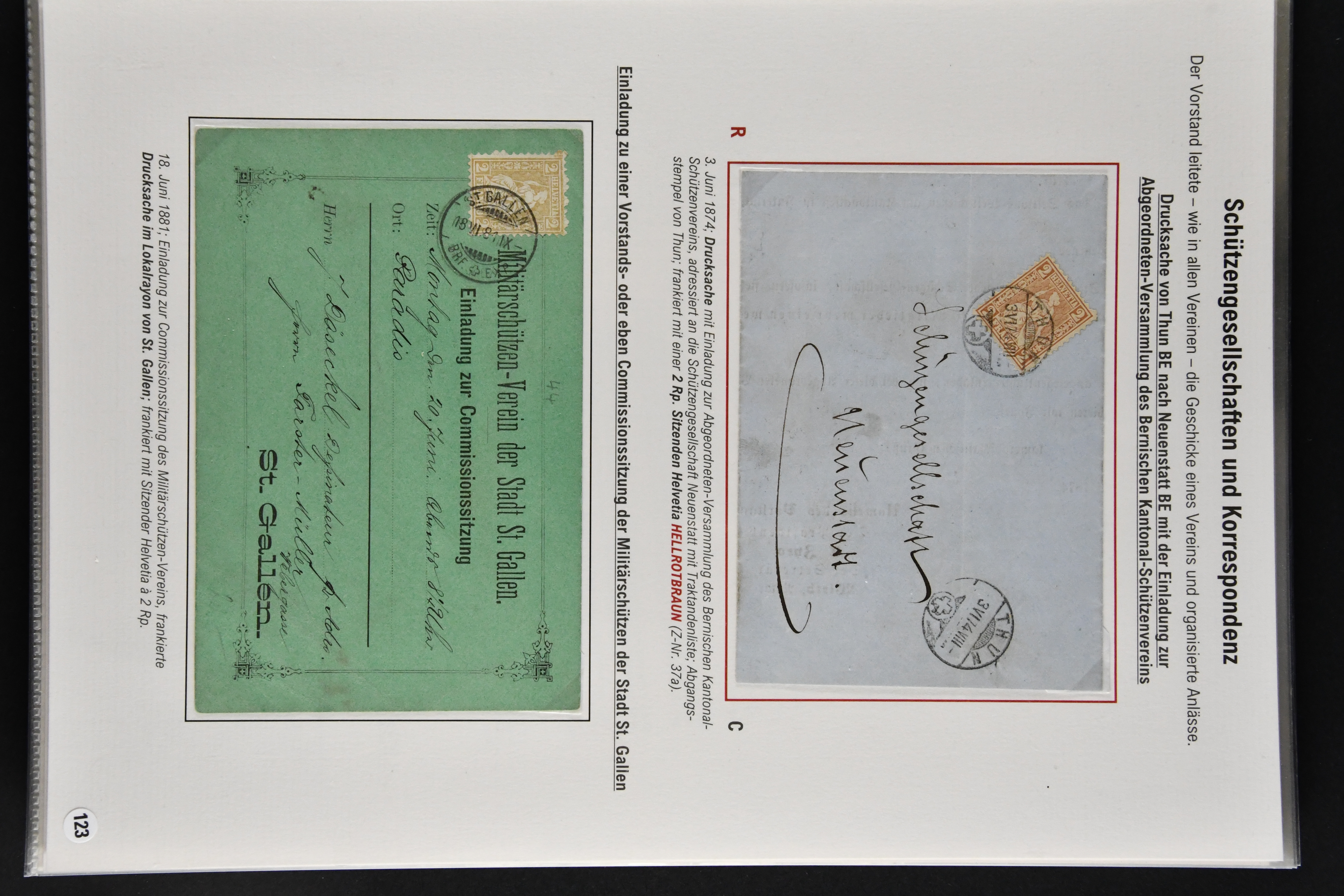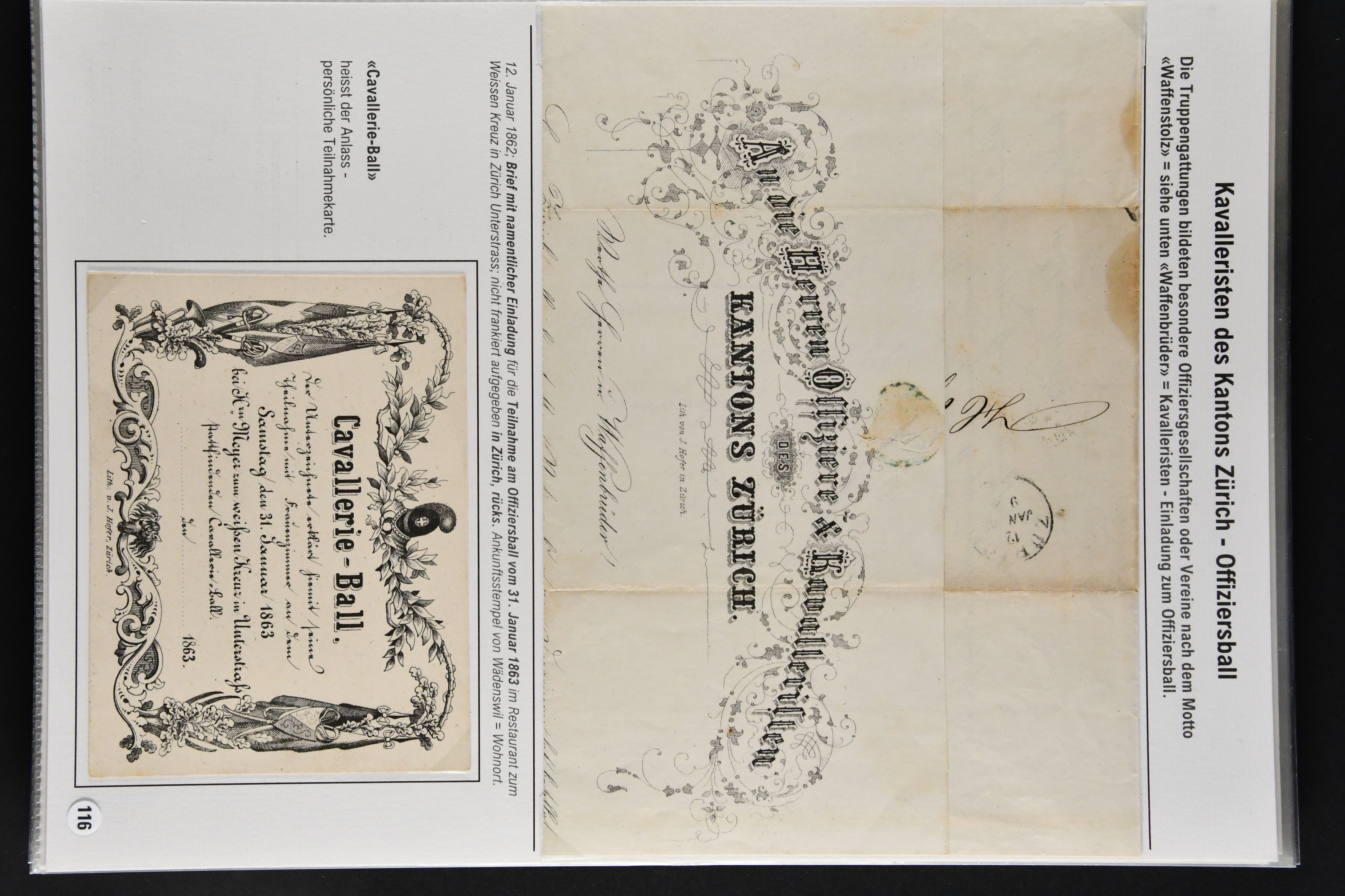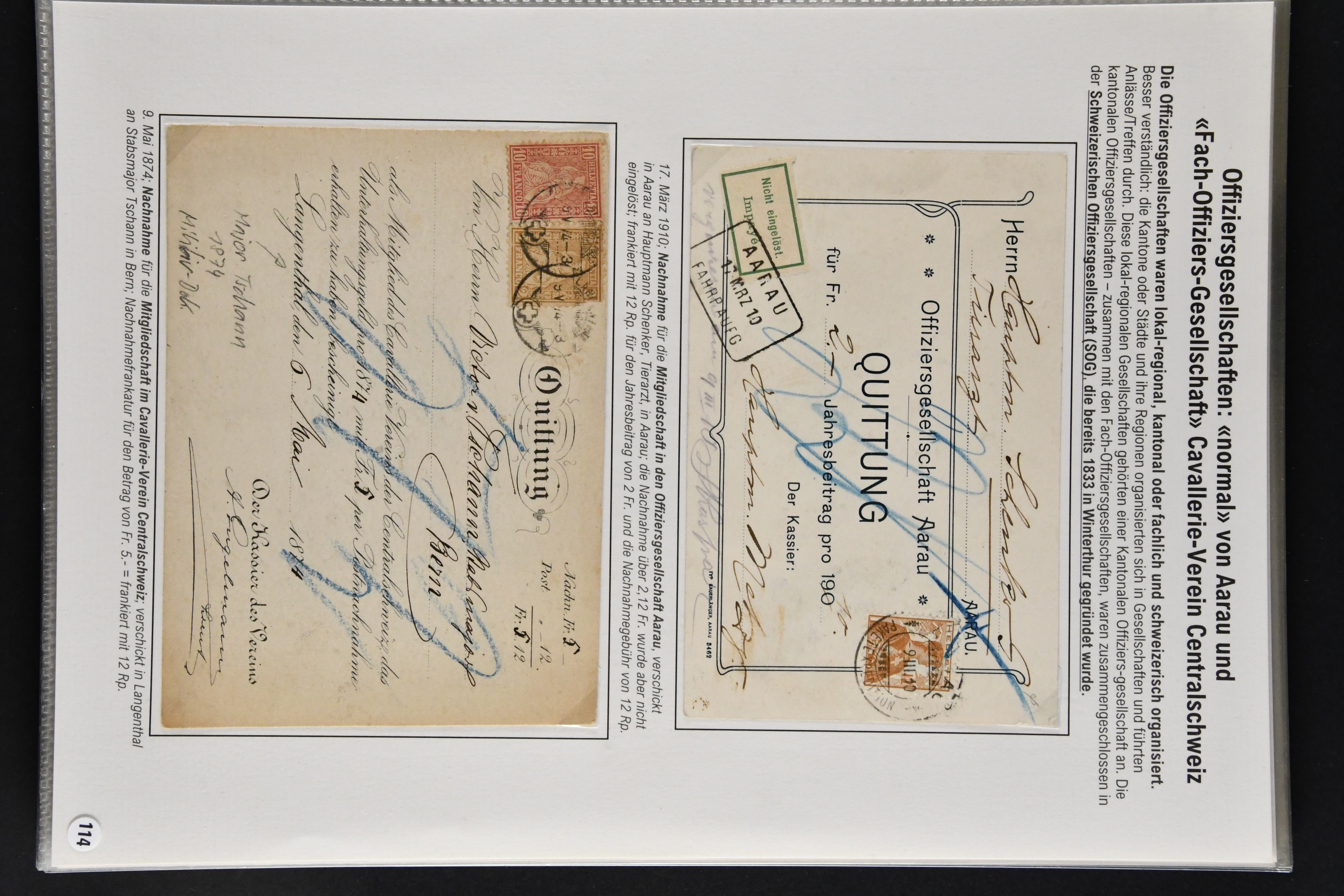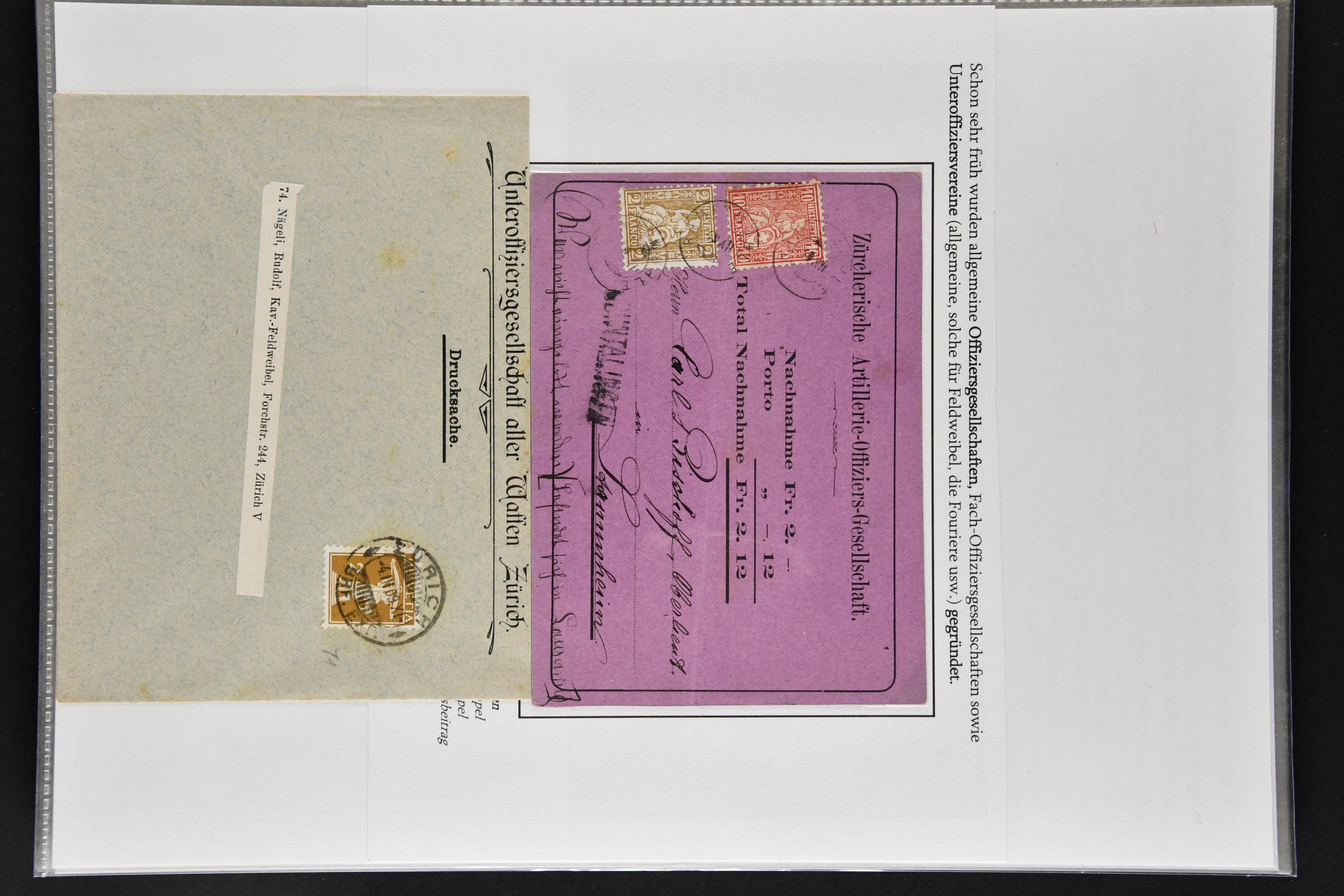 9866 cover image1862/1909: Sauberes Lot von 29 Belegen Militär-Thematik, dabei u. a. 2 Rp. Sitzende Helvetia hellrotbraun auf Faltbrief an eine Schützengesellschaft (Attest Guinand), ferner Belege von Offiziers- und Unteroffiziersvereinen, Nachnahmen für Zeitschriftenabonnemente und Mitgliedschaften, Einladungen zu einem 'Cavallerie-Ball' sowie diverse Ansichtskarten. Mit interessanten Absenderstempeln und Vereins-Logos (Image 1) (Image 2) (Image 3) (Image 4) (Image 5) (Image 6) (Image 7) (Image 8) (Image 9) (Image 10) (Image 11) (Image 12) (Image 13) (Image 14) (Image 15) (Image 16) (Image 17) (Image 18)