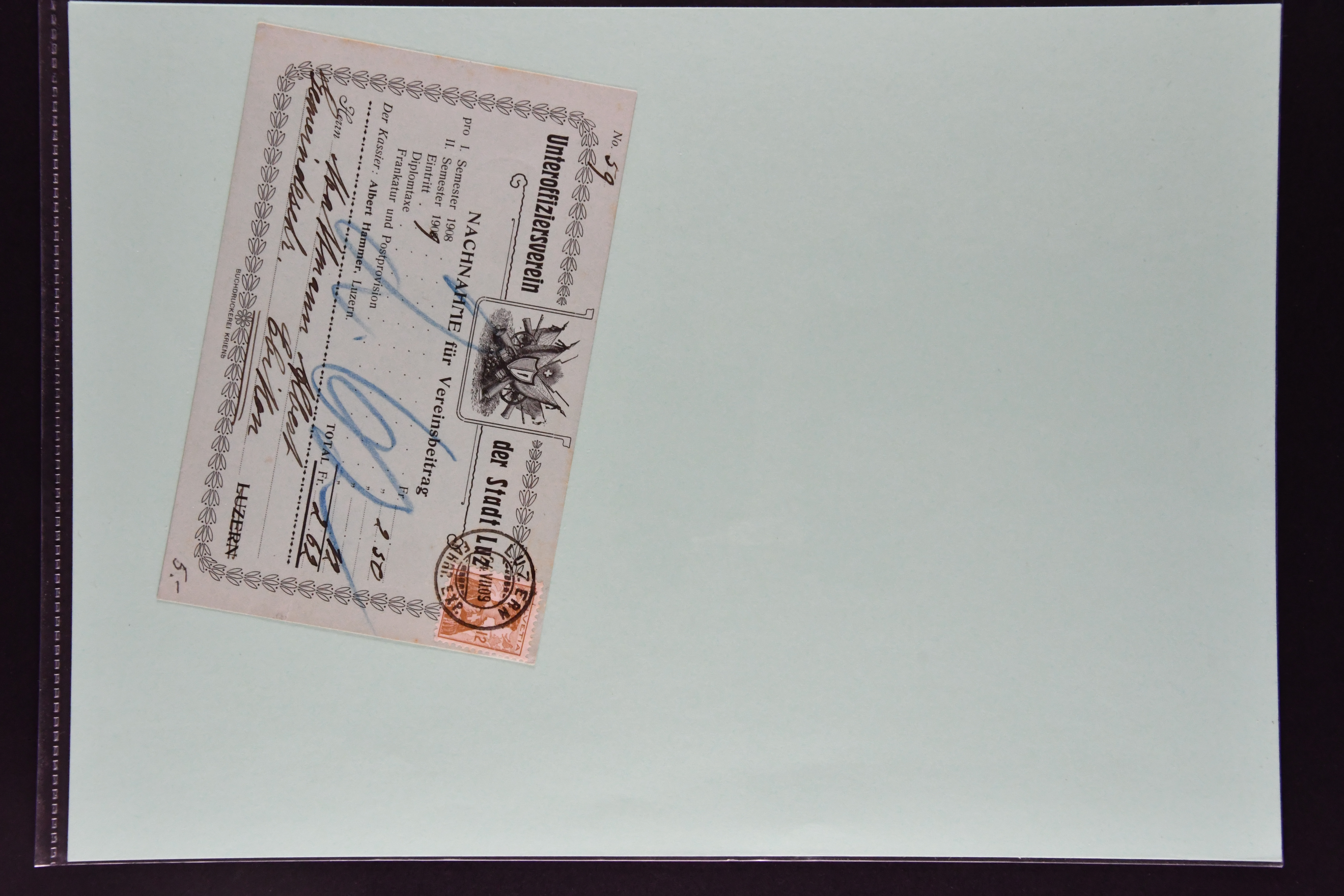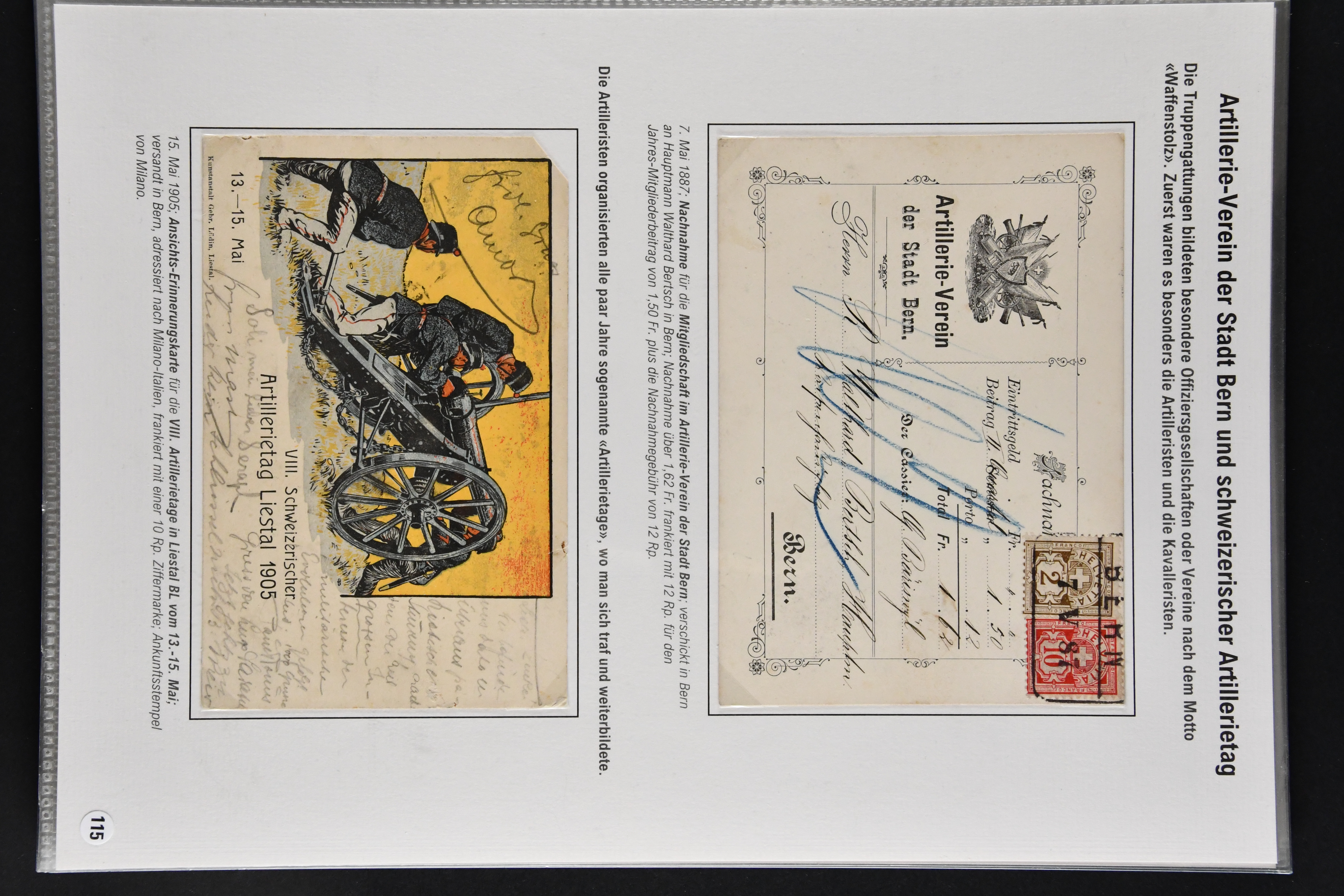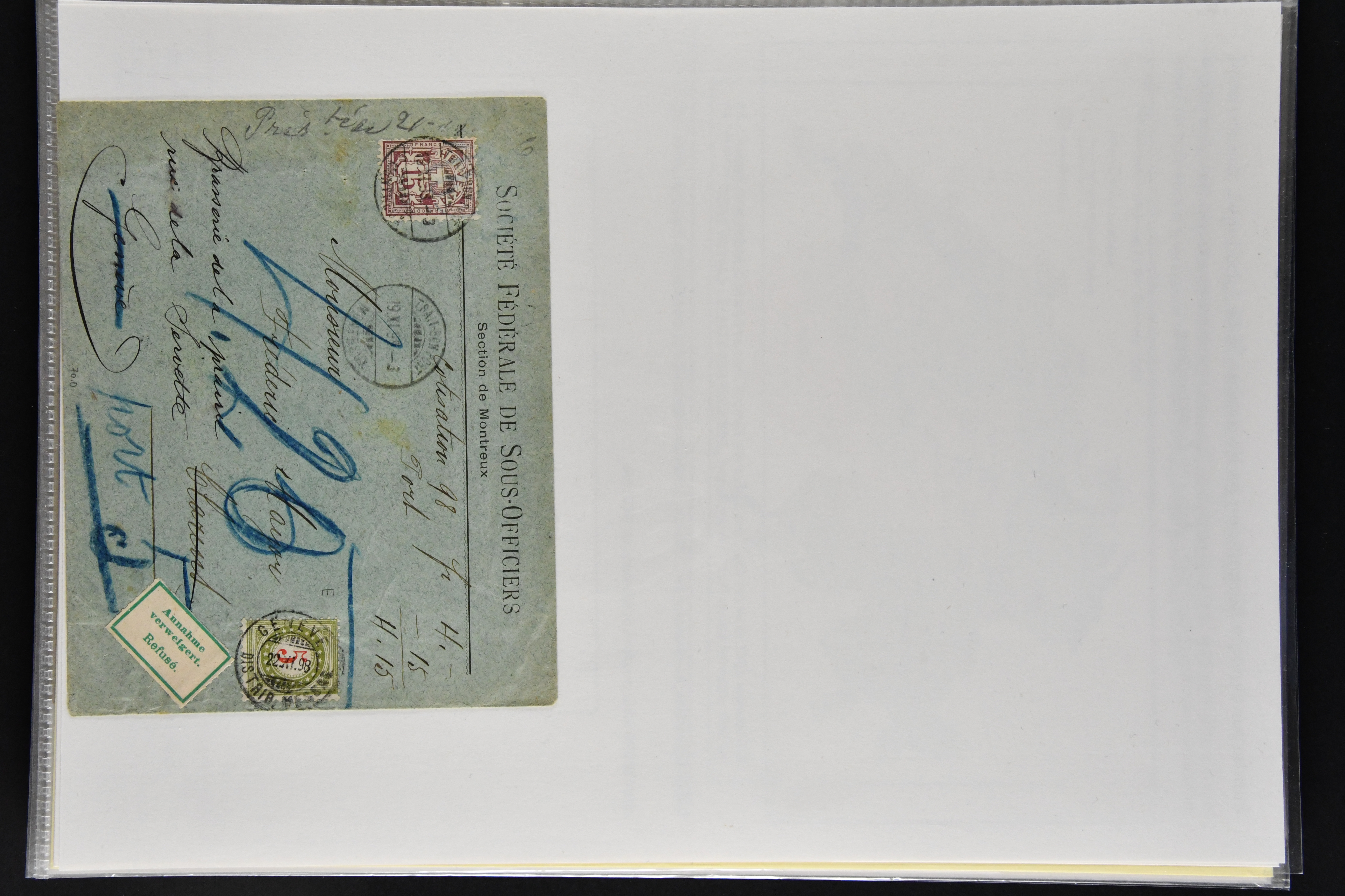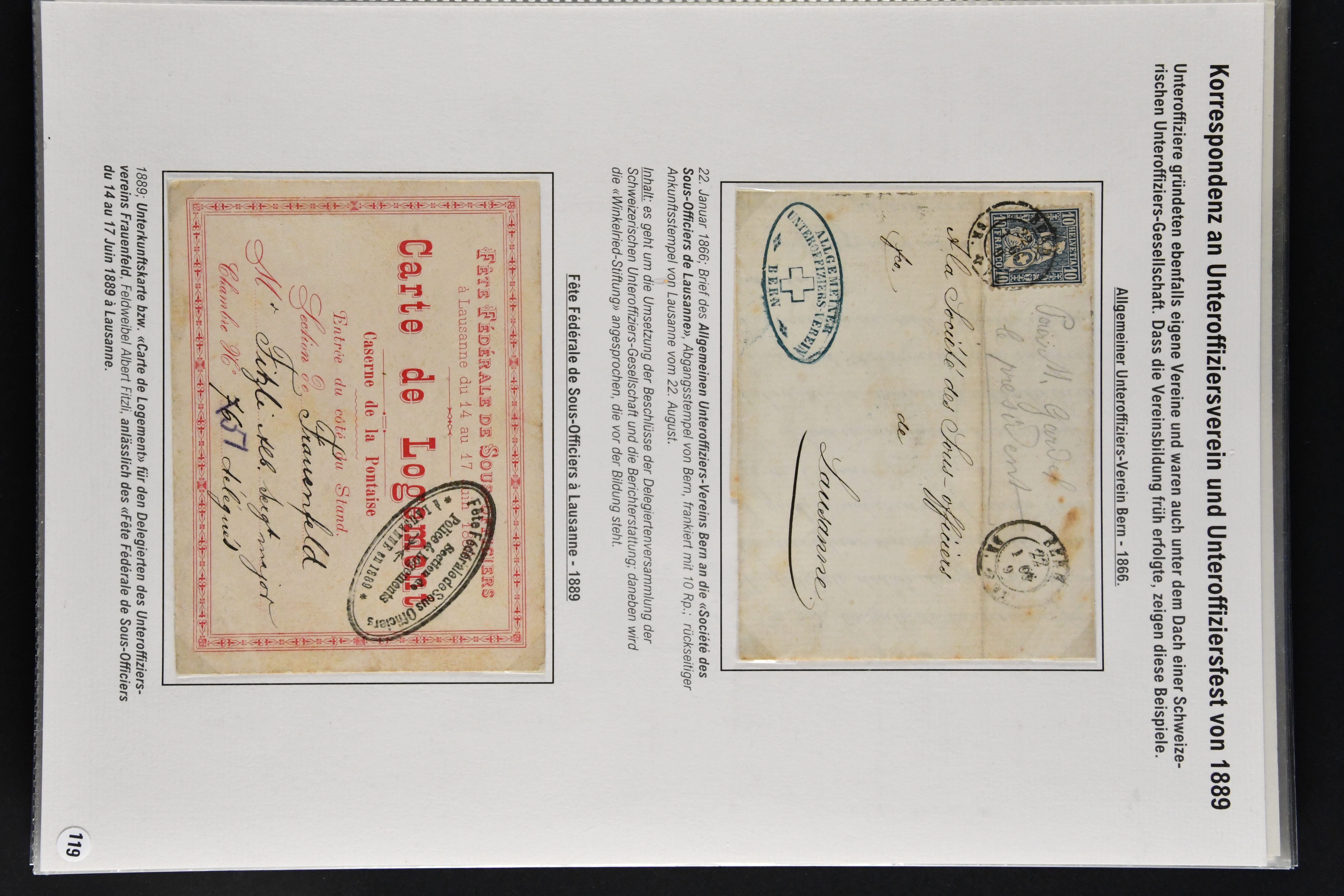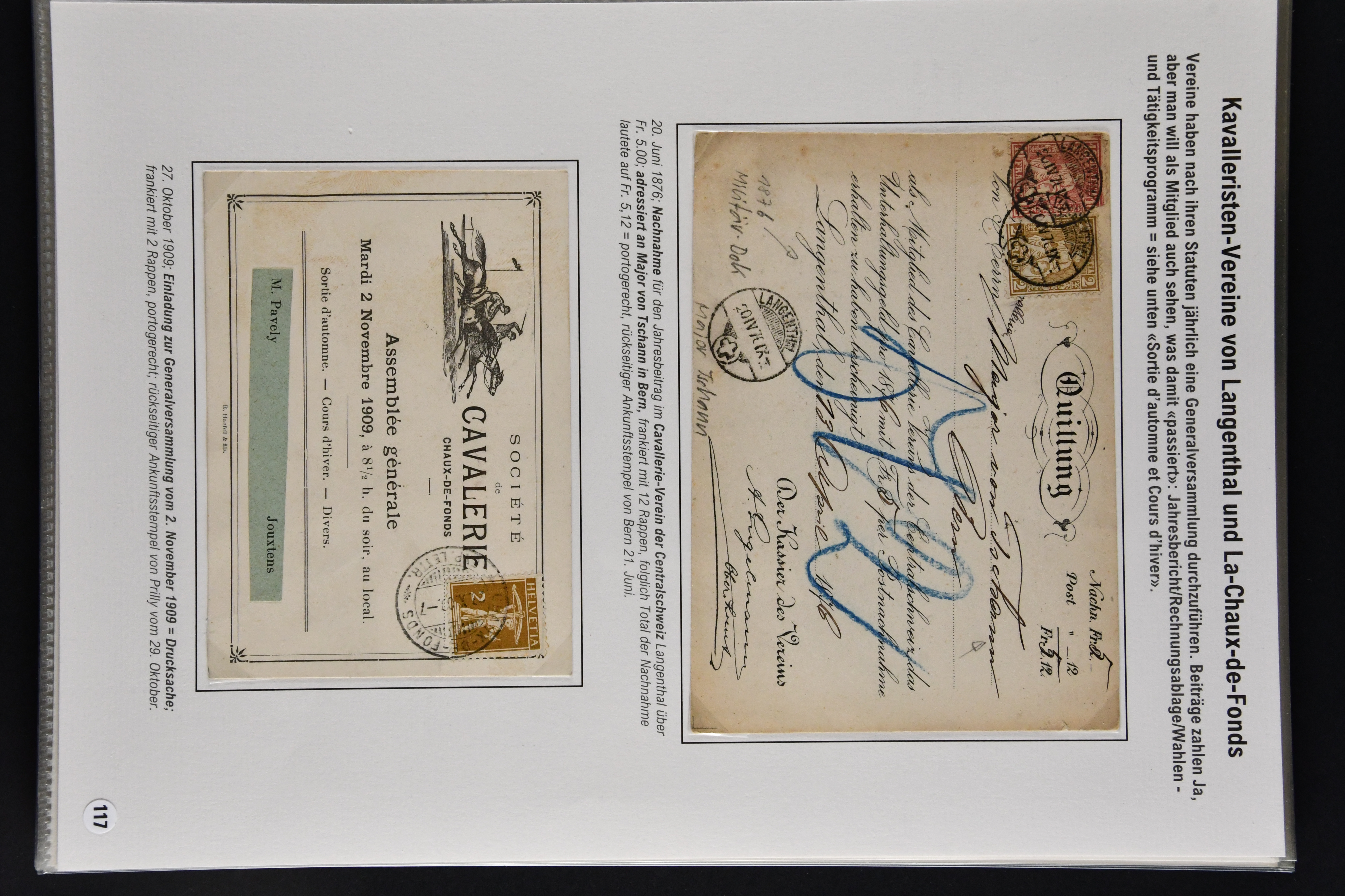 9866 cover image1862/1909: Sauberes Lot von 29 Belegen Militär-Thematik, dabei u. a. 2 Rp. Sitzende Helvetia hellrotbraun auf Faltbrief an eine Schützengesellschaft (Attest Guinand), ferner Belege von Offiziers- und Unteroffiziersvereinen, Nachnahmen für Zeitschriftenabonnemente und Mitgliedschaften, Einladungen zu einem 'Cavallerie-Ball' sowie diverse Ansichtskarten. Mit interessanten Absenderstempeln und Vereins-Logos (Image 1) (Image 2) (Image 3) (Image 4) (Image 5) (Image 6) (Image 7) (Image 8) (Image 9) (Image 10) (Image 11) (Image 12) (Image 13) (Image 14) (Image 15) (Image 16) (Image 17) (Image 18)