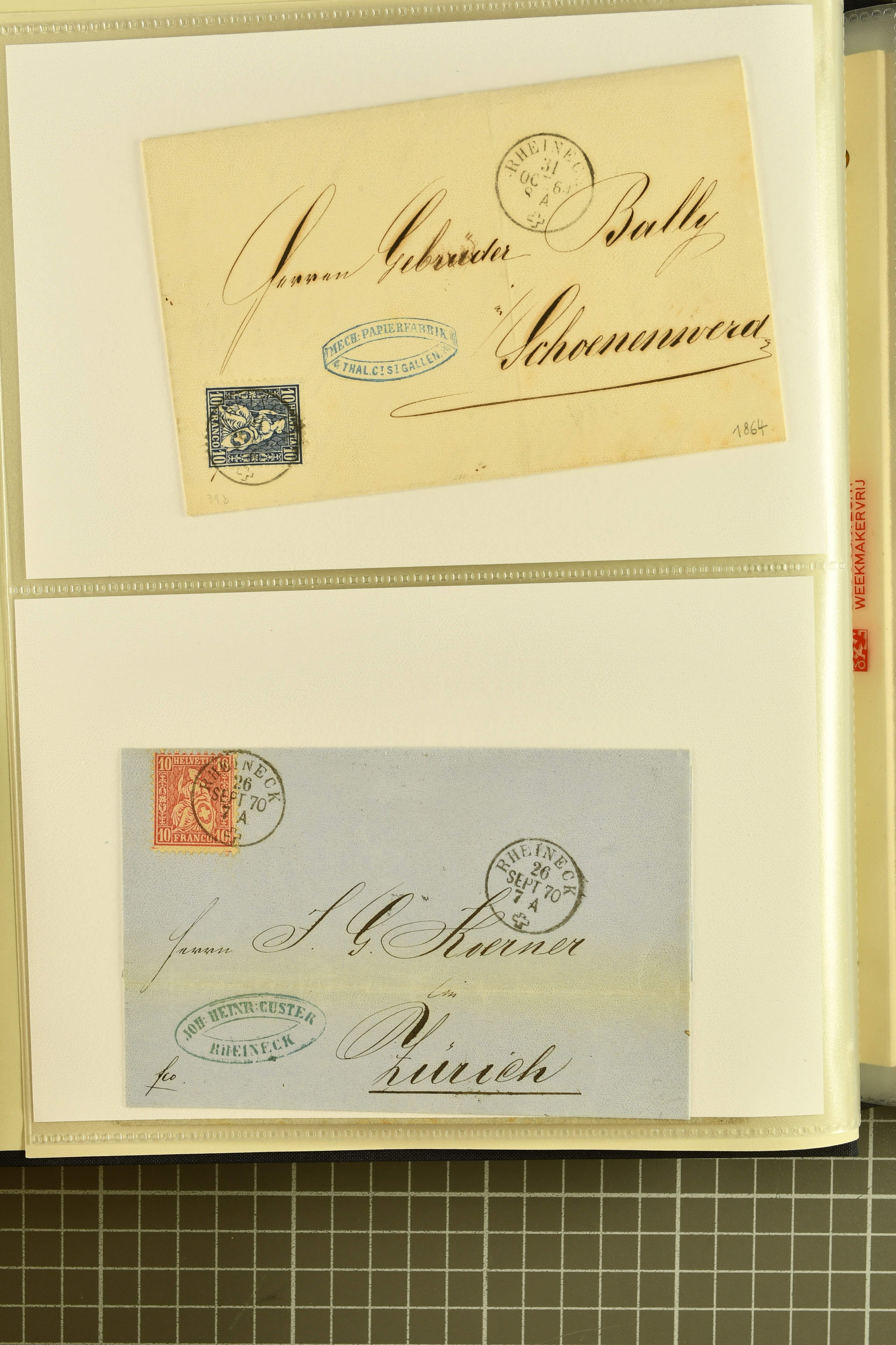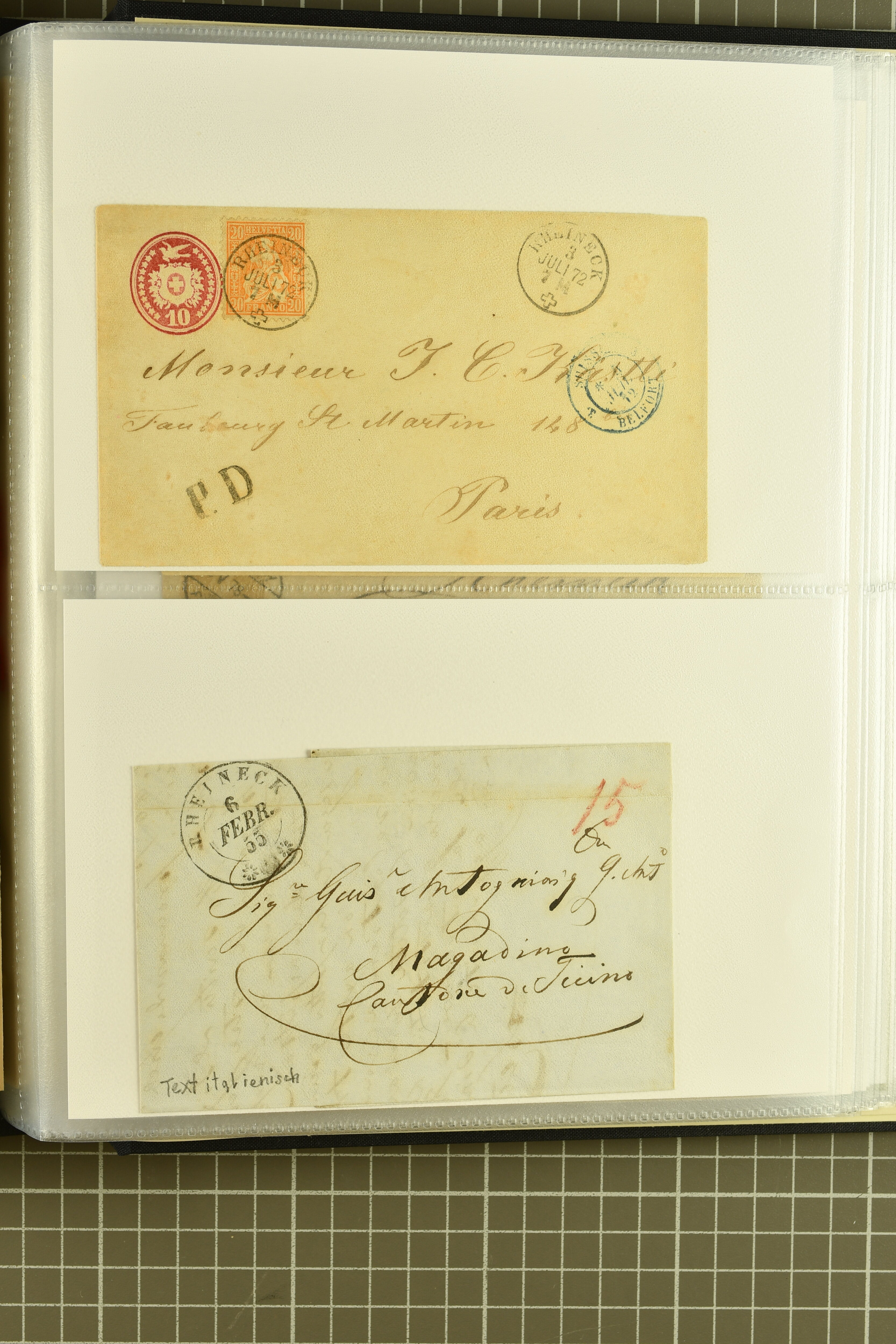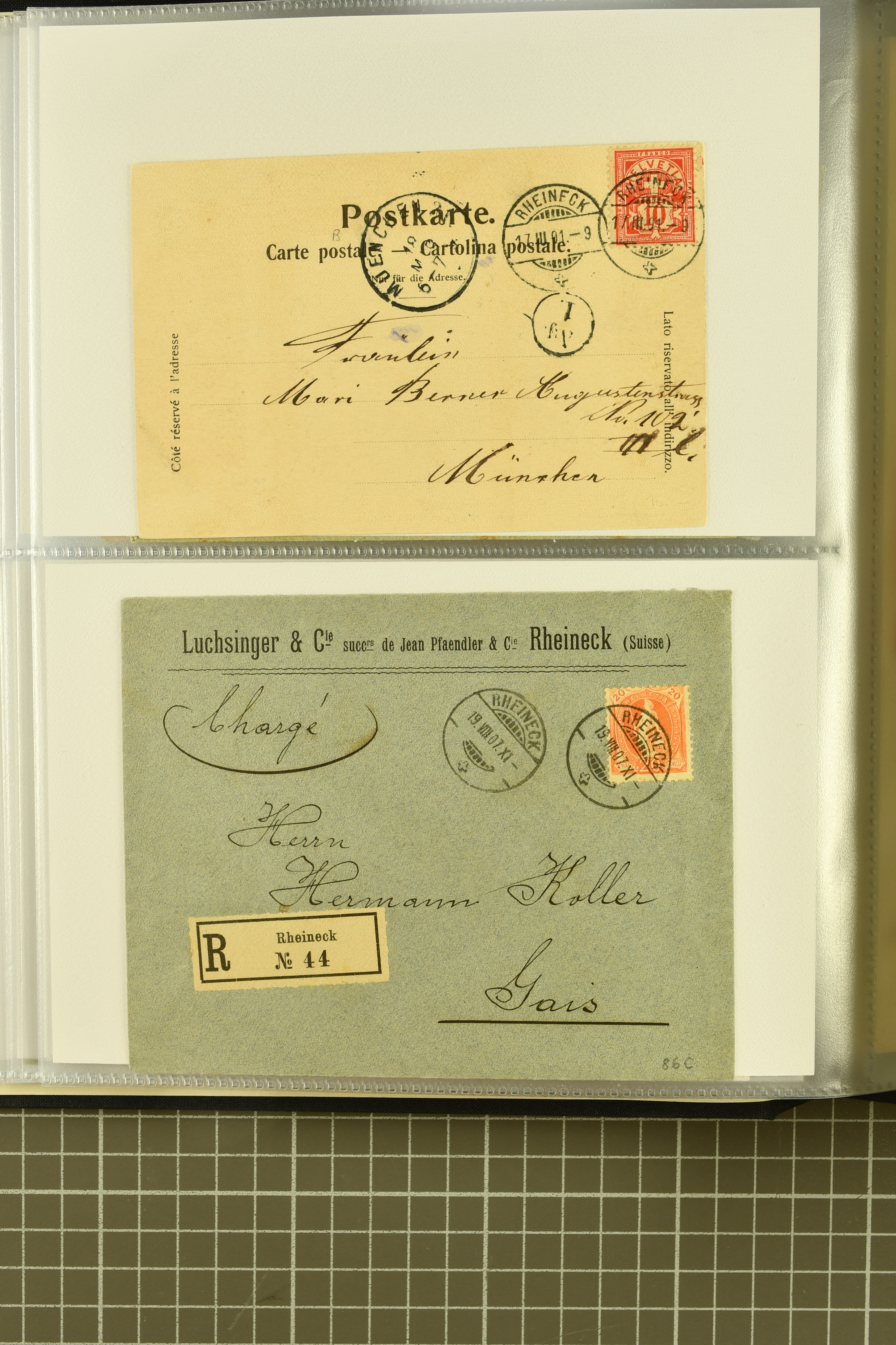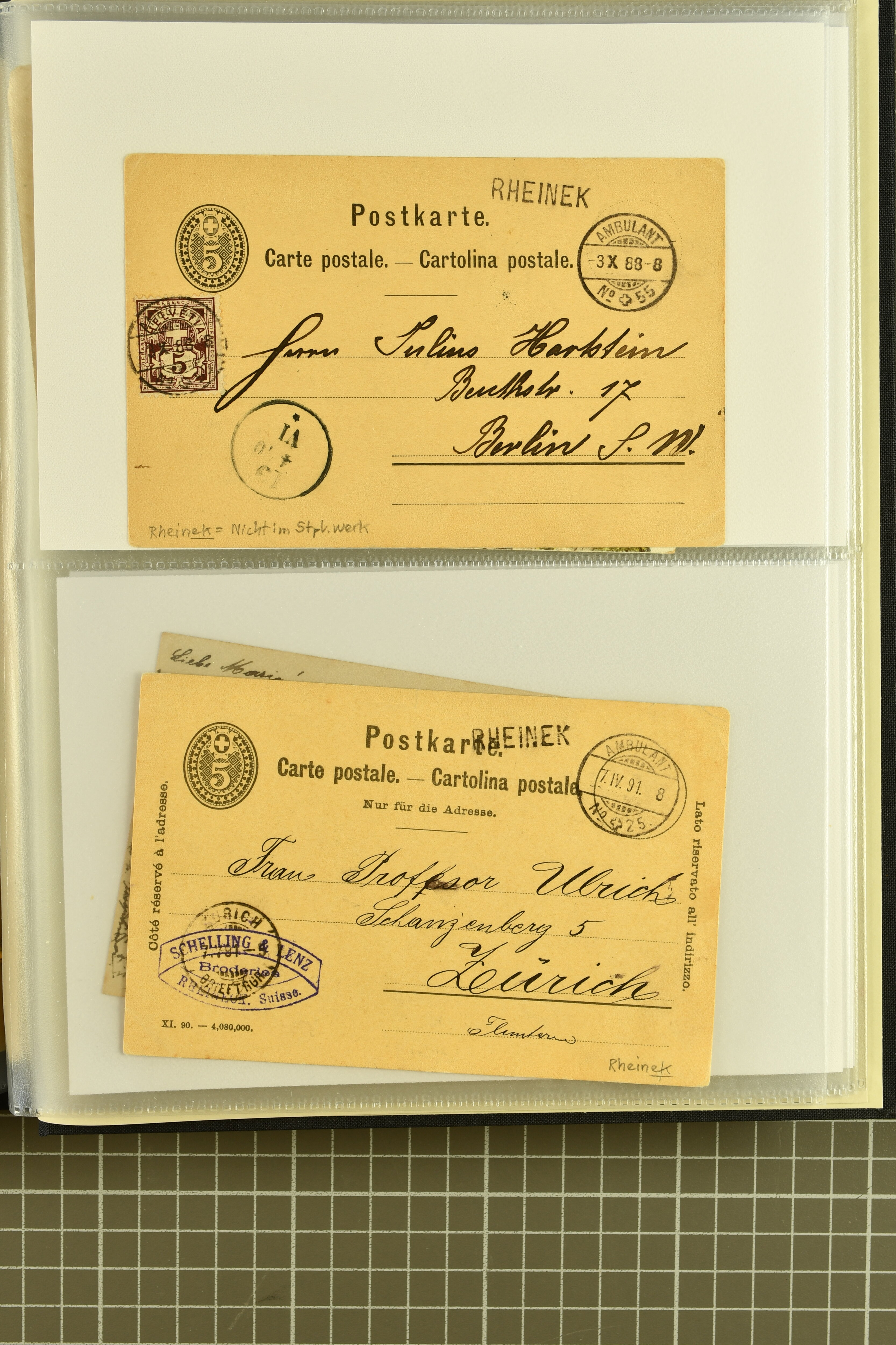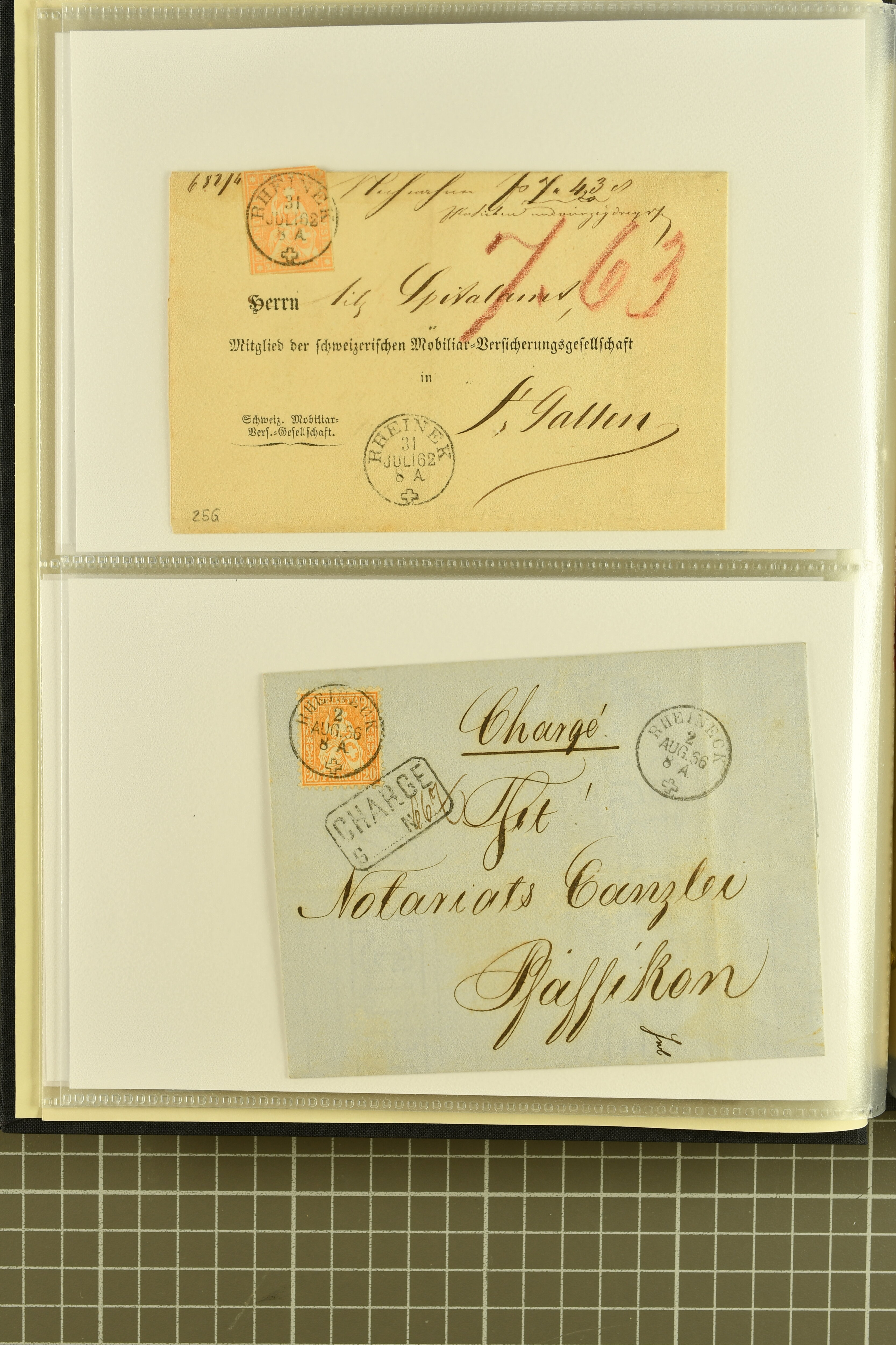 9858 cover image1862/1910ca.: Zusammenstellung von Belegen, alle von RHEINECK mit den verschiedenen Stempeln und deren verschiedenen Schreibweisen, dabei 20 Rp. Strubel Nachnahme von 1862, diverse Sitzende Helvetia, Tüblibriefe, Ganzsachen- und Ansichtspostkarten; dabei auch ein Beleg mit 20 Rp. Nachporto blau - insgesamt 49 Belege und zwei lose Marken (Image 1) (Image 2) (Image 3) (Image 4) (Image 5) (Image 6) (Image 7) (Image 8) (Image 9) (Image 10) (Image 11) (Image 12) (Image 13) (Image 14) (Image 15) (Image 16) (Image 17) (Image 18) (Image 19) (Image 20) (Image 21) (Image 22) (Image 23) (Image 24) (Image 25) (Image 26) (Image 27) (Image 28) (Image 29) (Image 30) (Image 31)