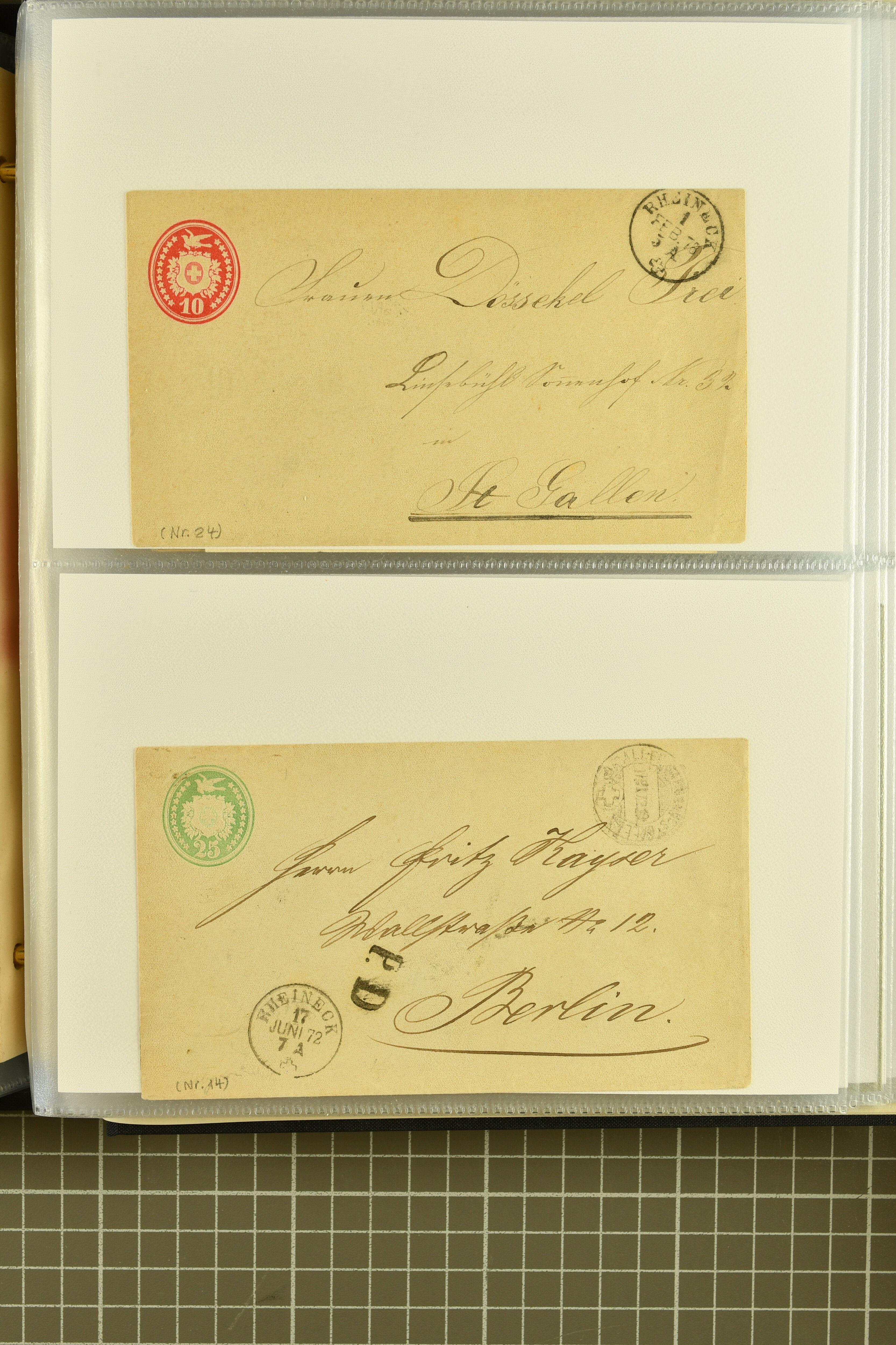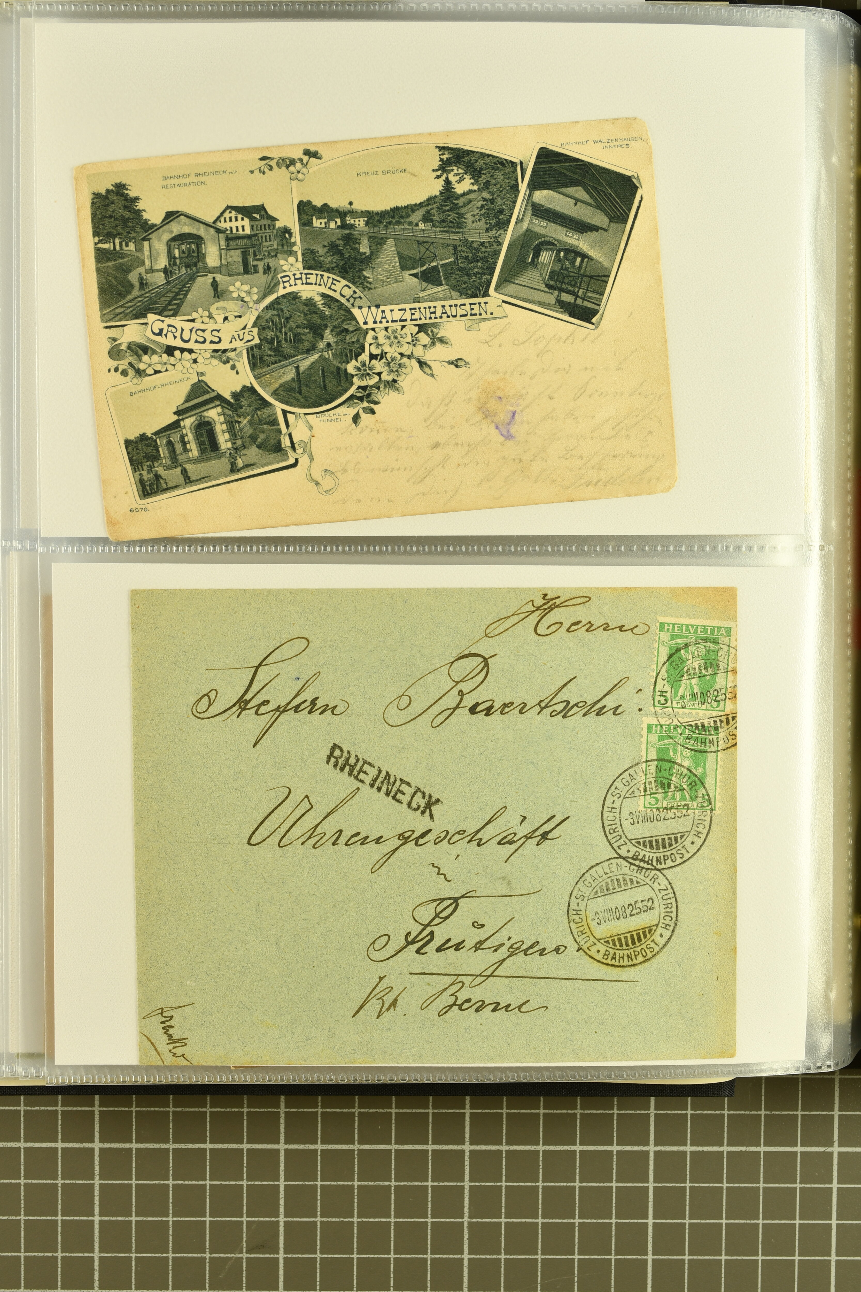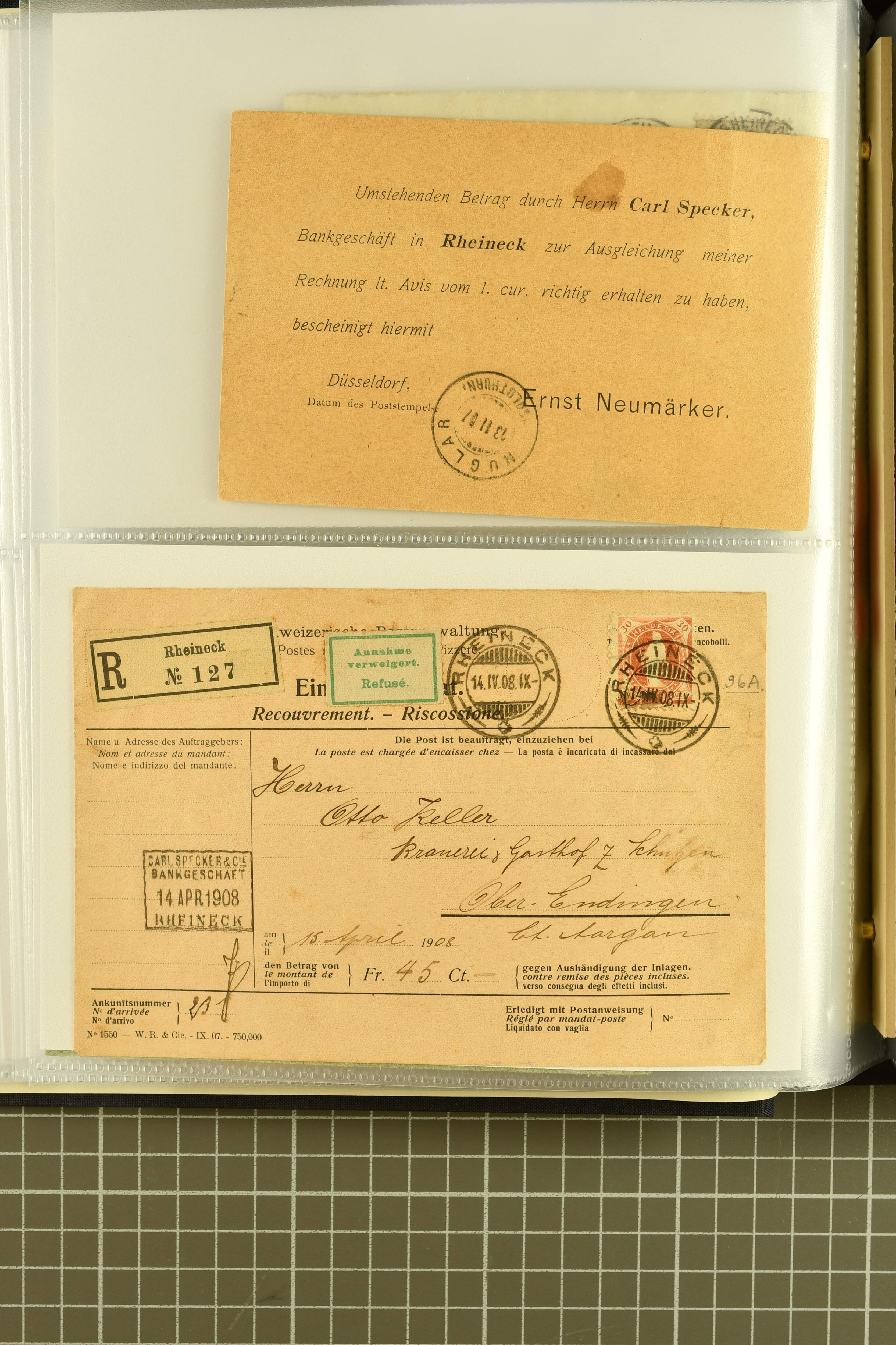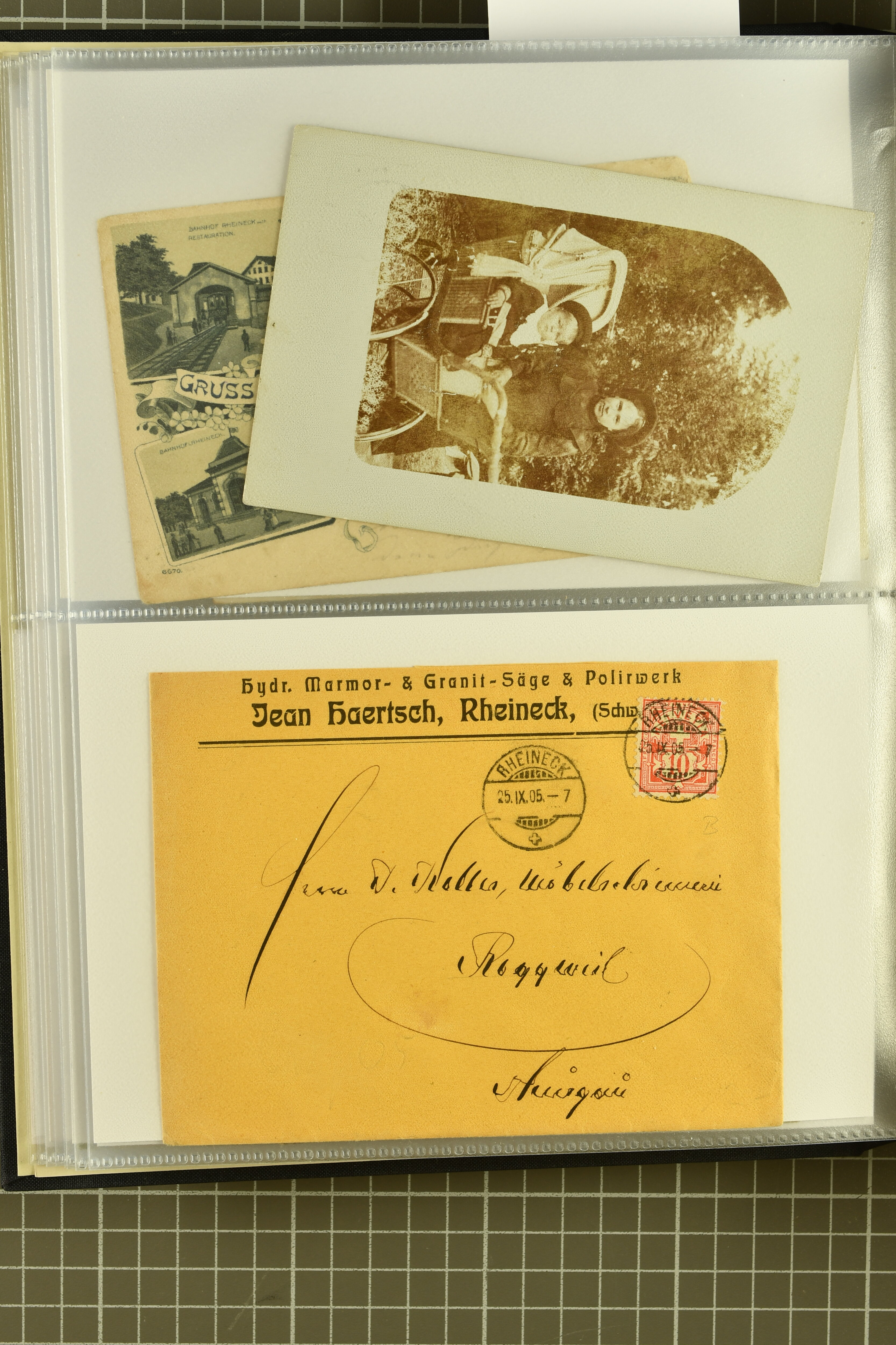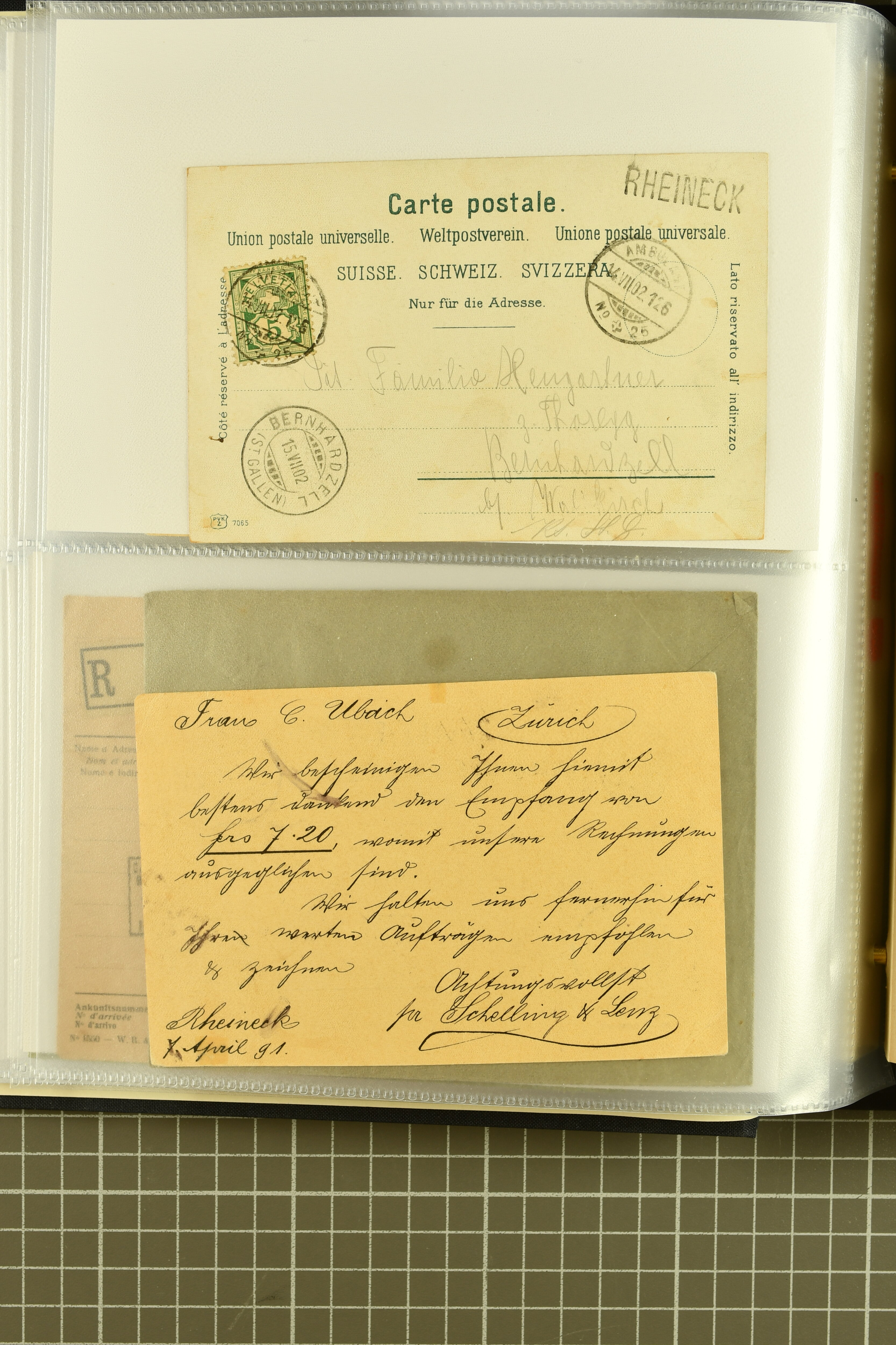 9858 cover image1862/1910ca.: Zusammenstellung von Belegen, alle von RHEINECK mit den verschiedenen Stempeln und deren verschiedenen Schreibweisen, dabei 20 Rp. Strubel Nachnahme von 1862, diverse Sitzende Helvetia, Tüblibriefe, Ganzsachen- und Ansichtspostkarten; dabei auch ein Beleg mit 20 Rp. Nachporto blau - insgesamt 49 Belege und zwei lose Marken (Image 1) (Image 2) (Image 3) (Image 4) (Image 5) (Image 6) (Image 7) (Image 8) (Image 9) (Image 10) (Image 11) (Image 12) (Image 13) (Image 14) (Image 15) (Image 16) (Image 17) (Image 18) (Image 19) (Image 20) (Image 21) (Image 22) (Image 23) (Image 24) (Image 25) (Image 26) (Image 27) (Image 28) (Image 29) (Image 30) (Image 31)