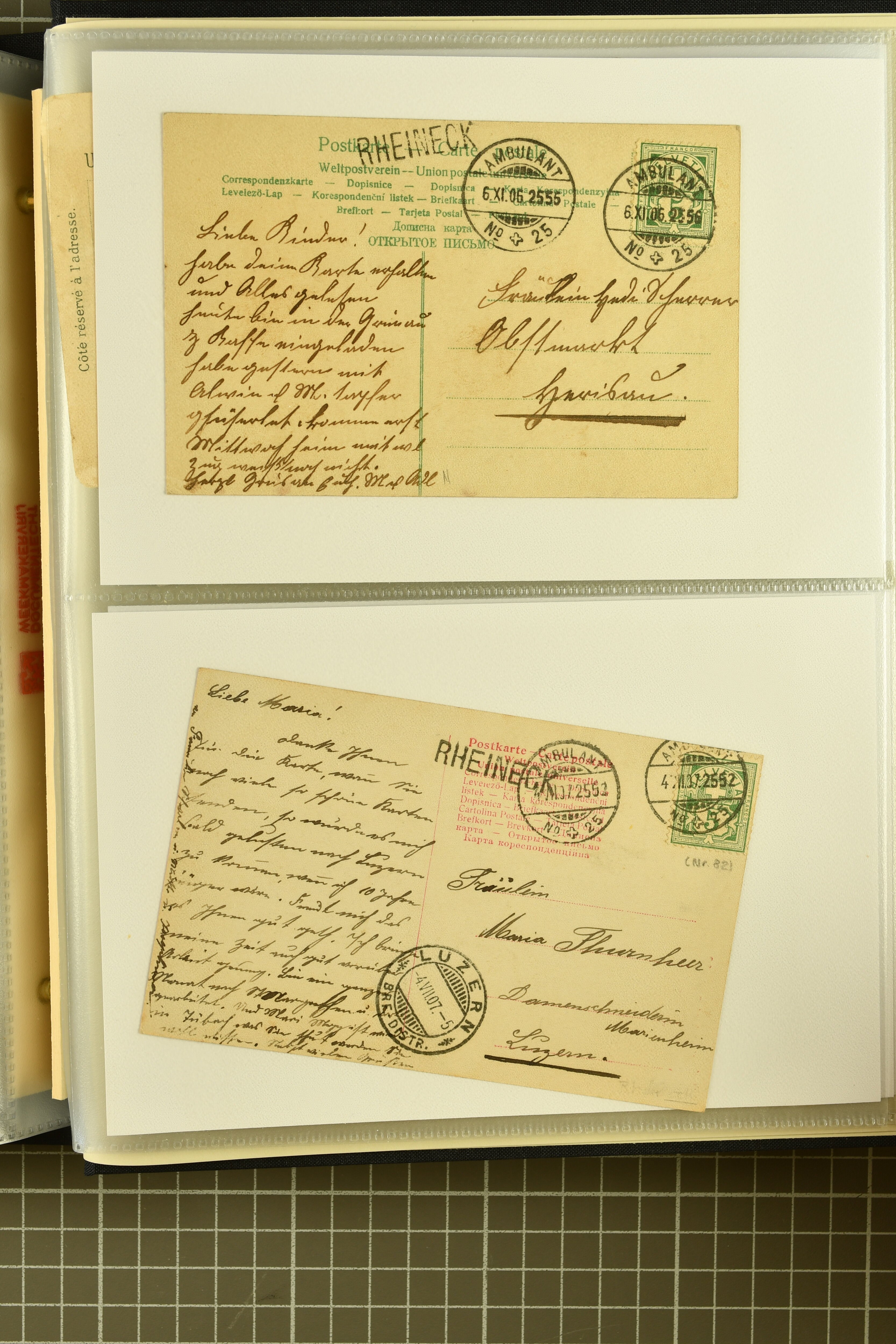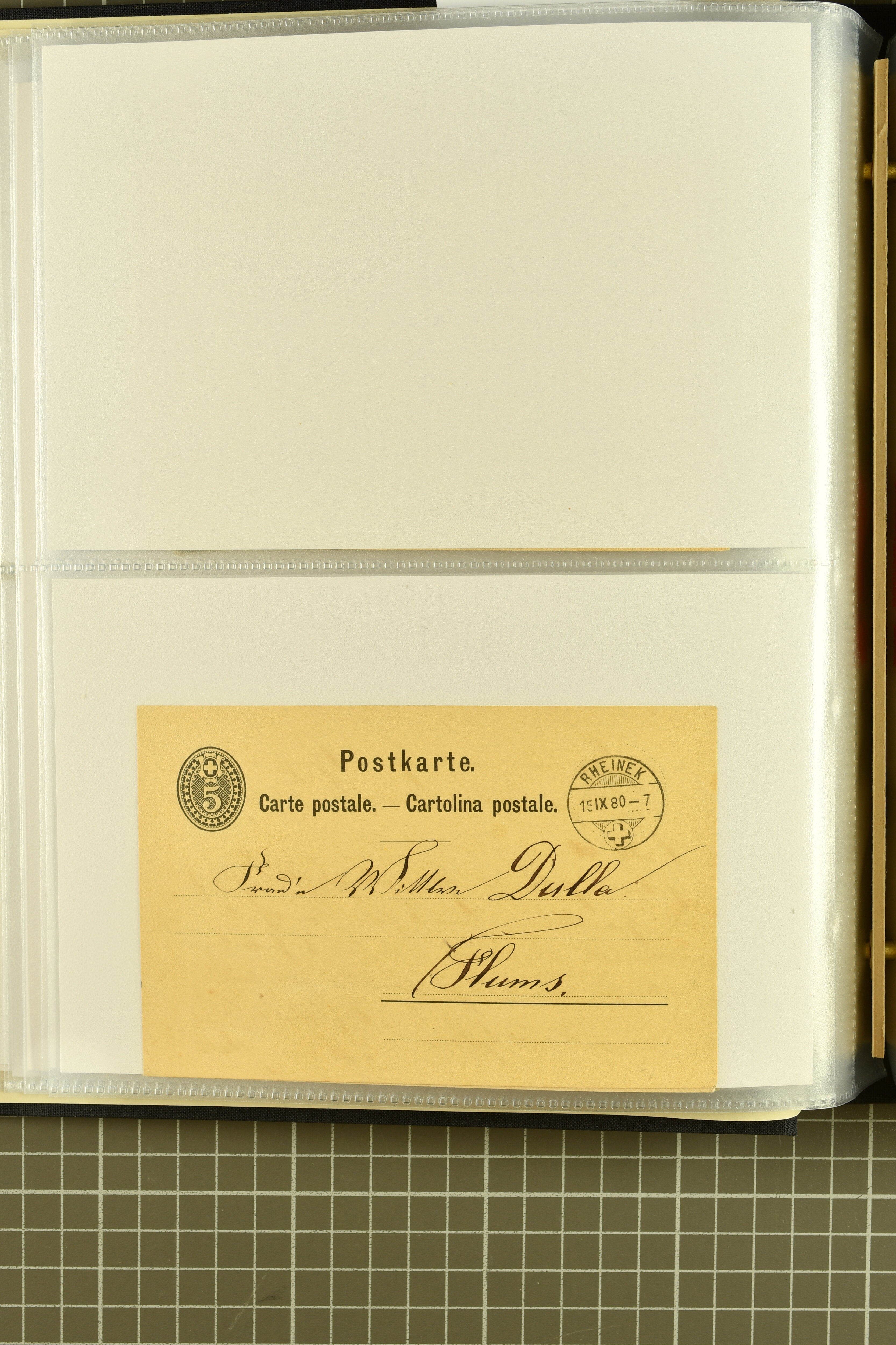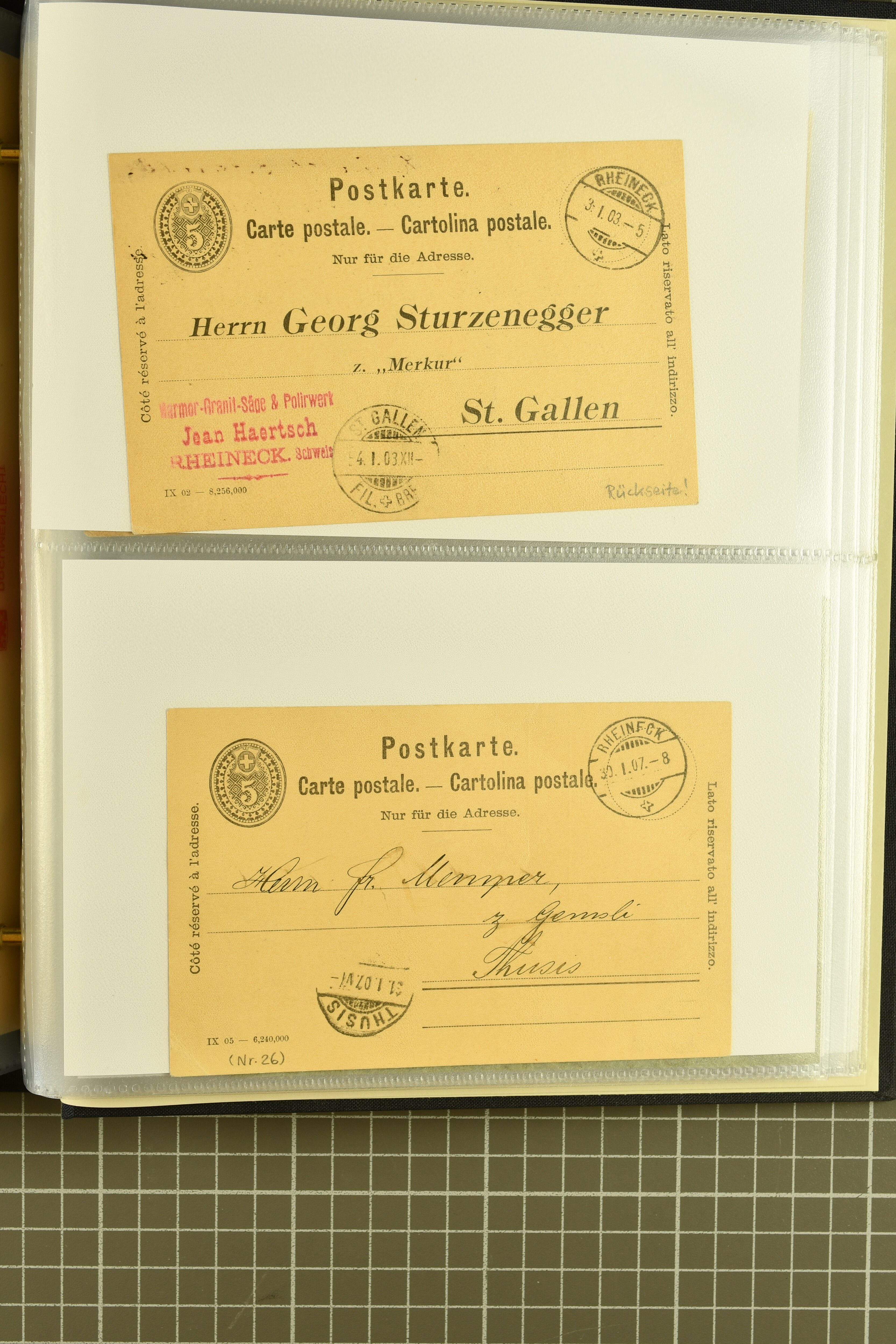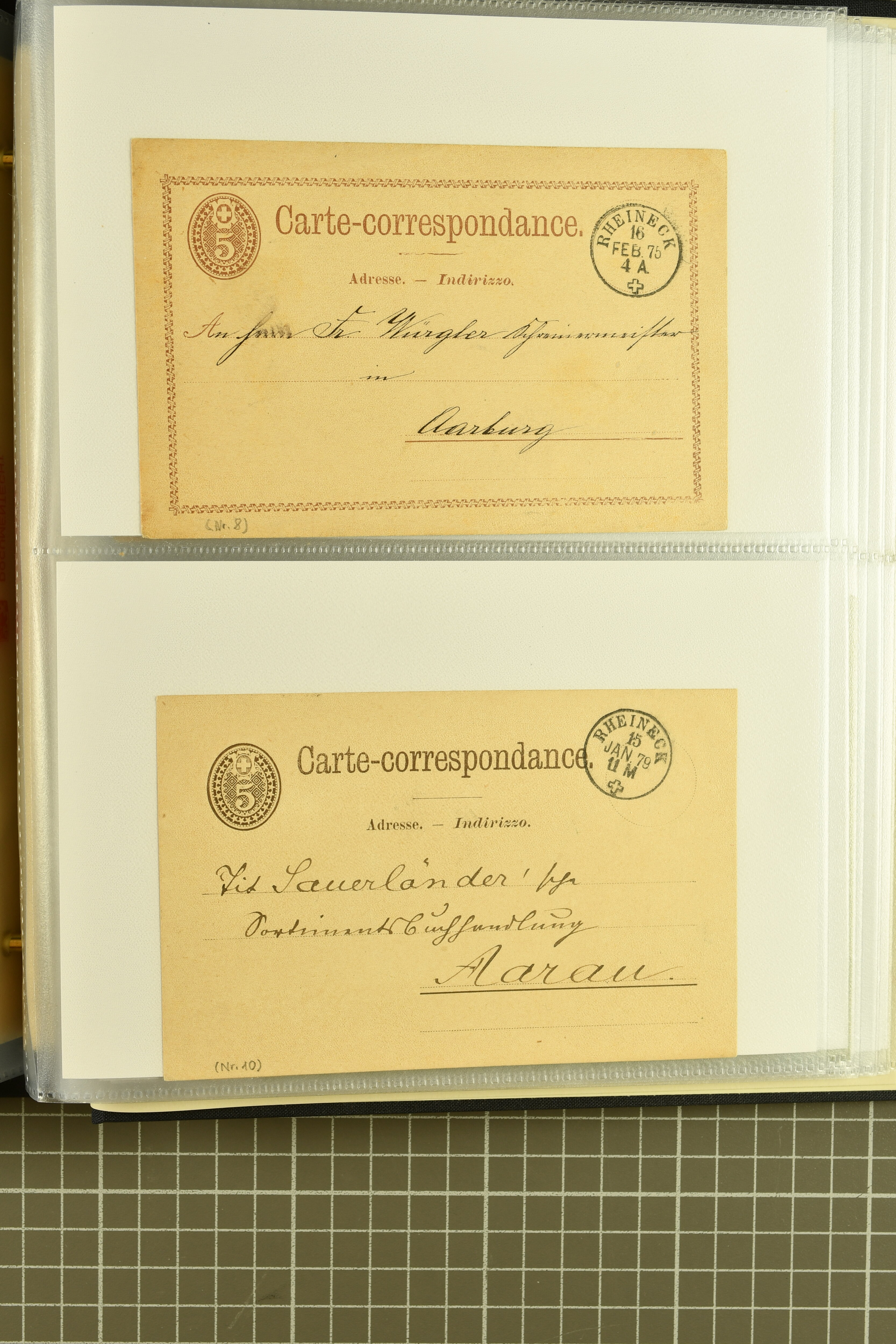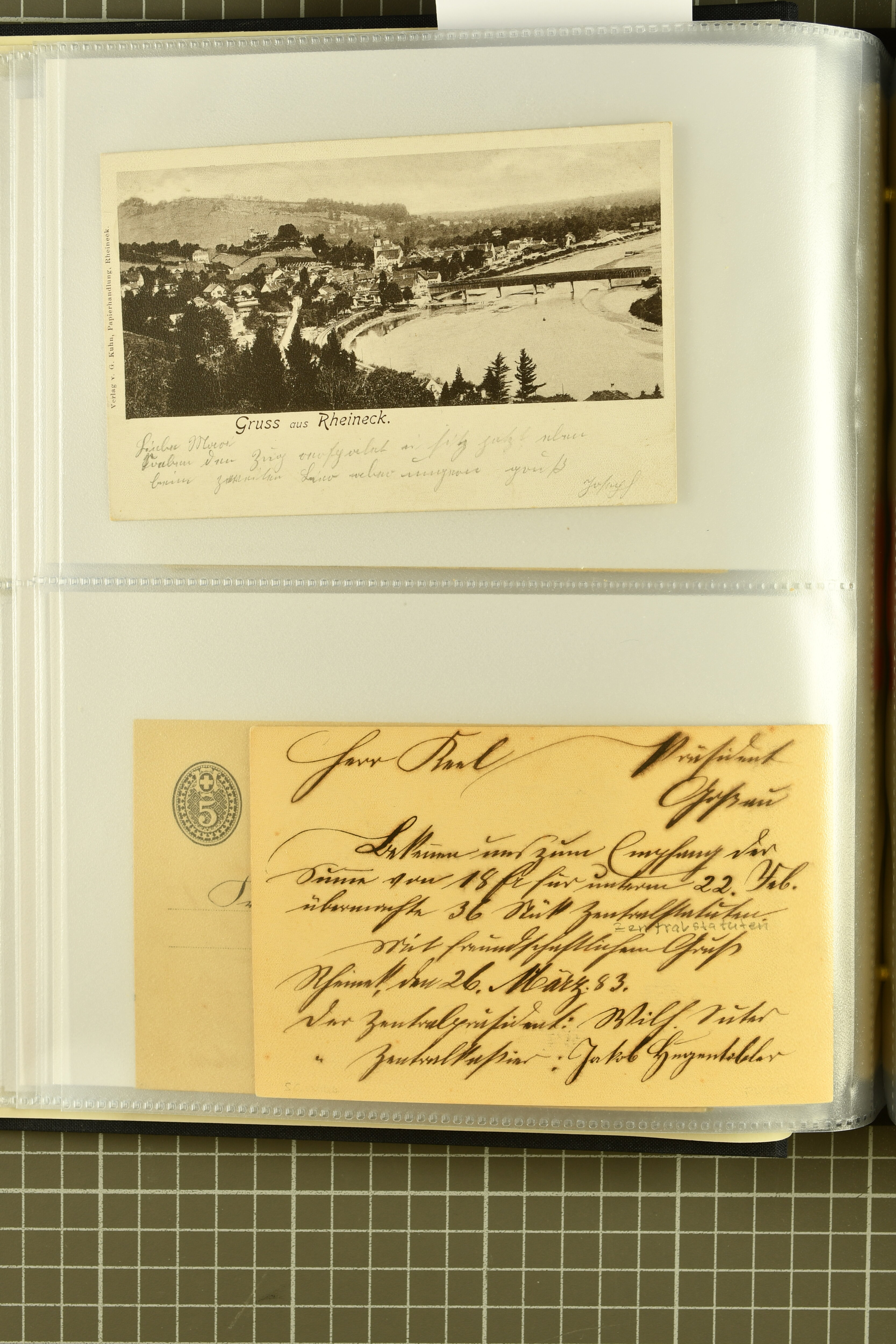 9858 cover image1862/1910ca.: Zusammenstellung von Belegen, alle von RHEINECK mit den verschiedenen Stempeln und deren verschiedenen Schreibweisen, dabei 20 Rp. Strubel Nachnahme von 1862, diverse Sitzende Helvetia, Tüblibriefe, Ganzsachen- und Ansichtspostkarten; dabei auch ein Beleg mit 20 Rp. Nachporto blau - insgesamt 49 Belege und zwei lose Marken (Image 1) (Image 2) (Image 3) (Image 4) (Image 5) (Image 6) (Image 7) (Image 8) (Image 9) (Image 10) (Image 11) (Image 12) (Image 13) (Image 14) (Image 15) (Image 16) (Image 17) (Image 18) (Image 19) (Image 20) (Image 21) (Image 22) (Image 23) (Image 24) (Image 25) (Image 26) (Image 27) (Image 28) (Image 29) (Image 30) (Image 31)