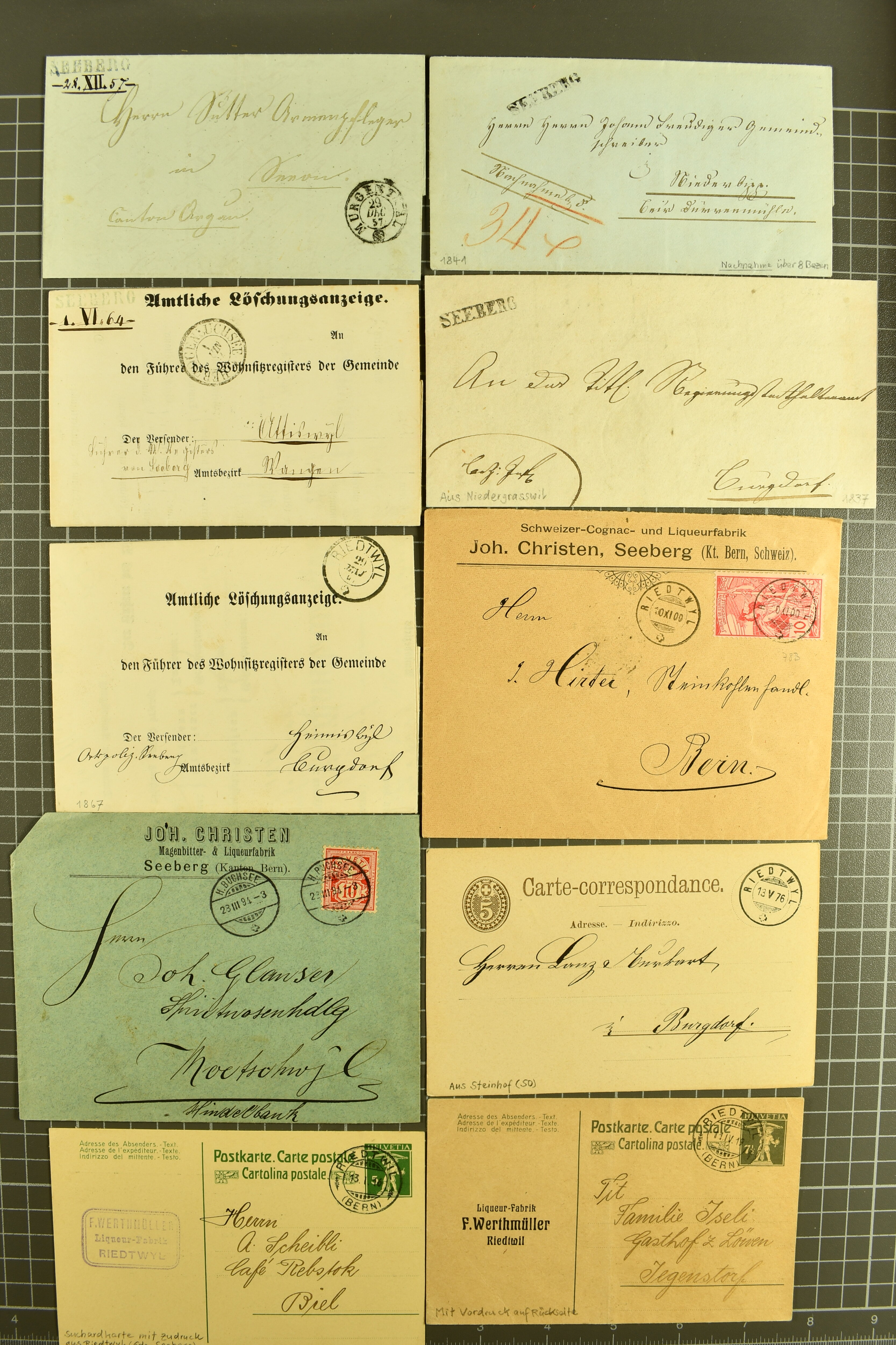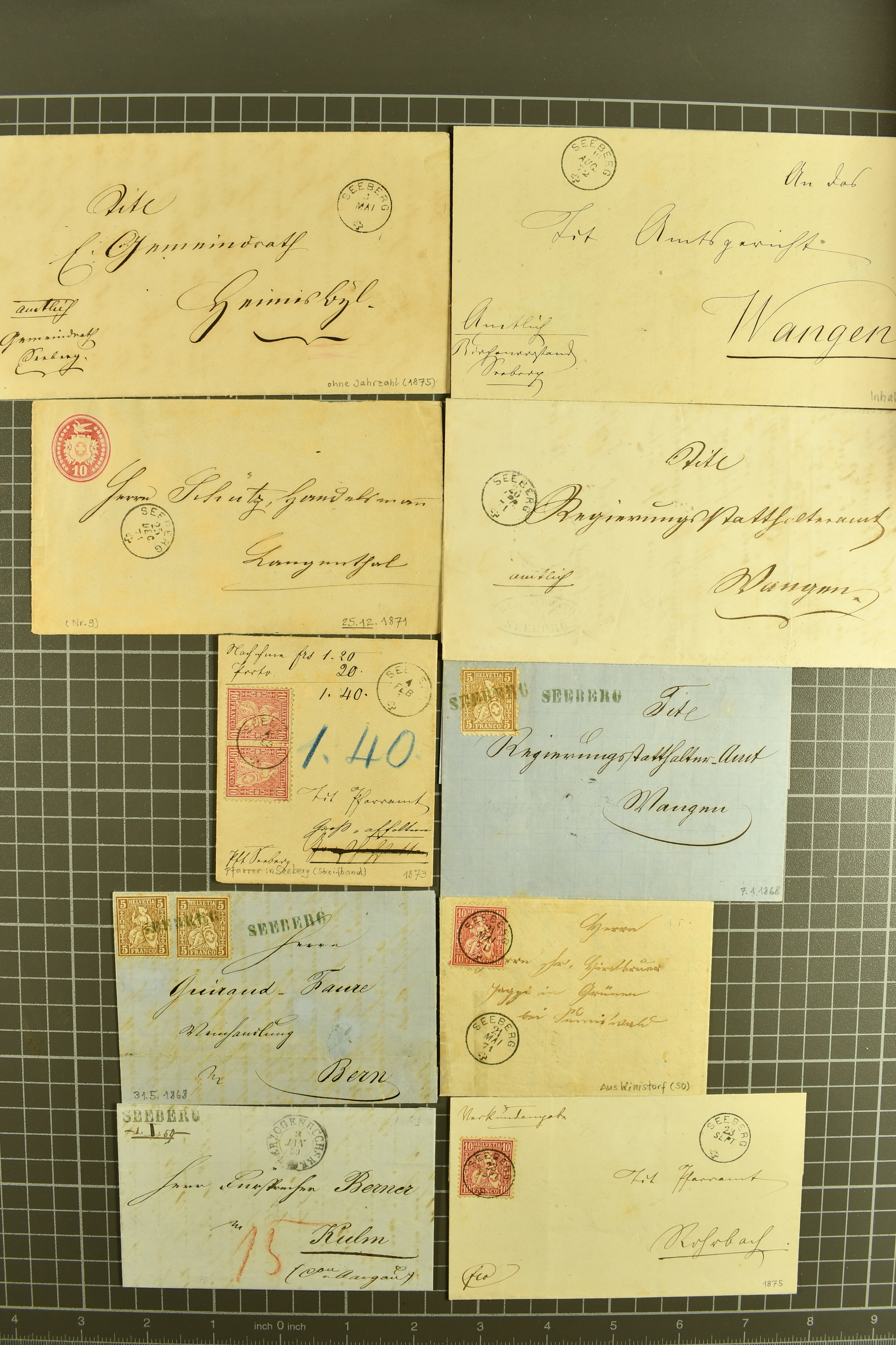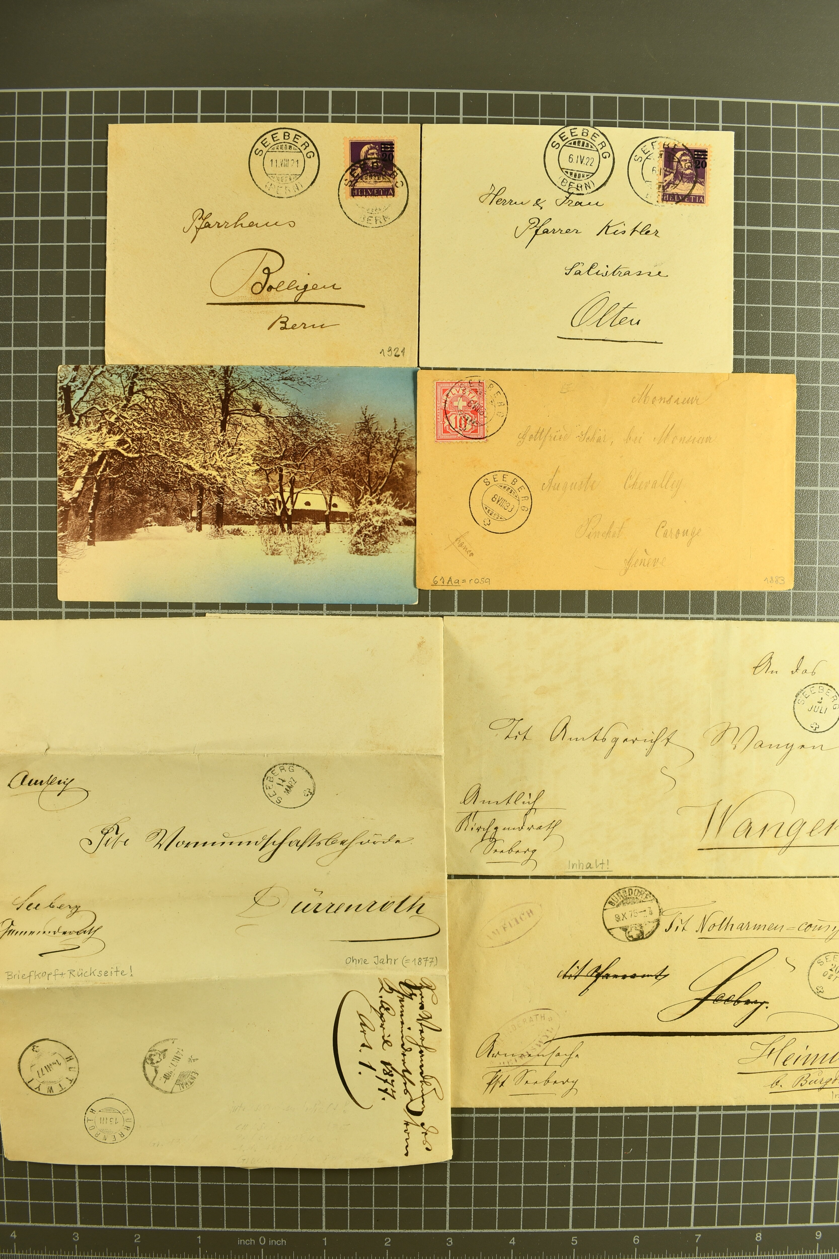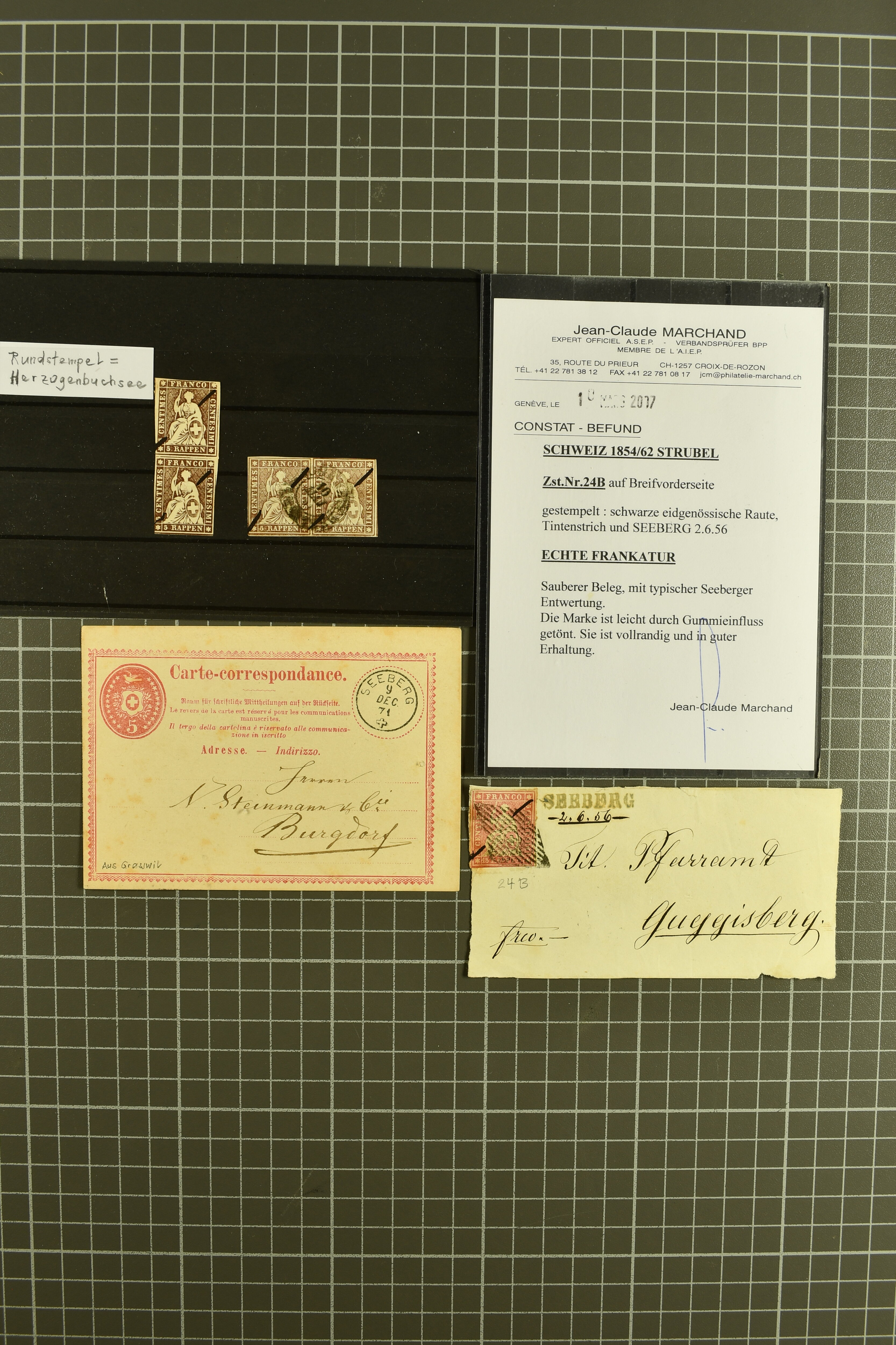 9856 cover image1848/1949: Lot Belege "SEEBERG" und Umgebung dabei ein typischer Brief für Seeberg mit 15 Rp. Strubel (24B) auf Vorderseite, Befund Marchand (23 Belege), dazu 2 lose Pärchen Strubel (22G) ; dazu GRASSWYL 4, RIEDTWYL (8) etc (Image 1) (Image 2) (Image 3) (Image 4) (Image 5)