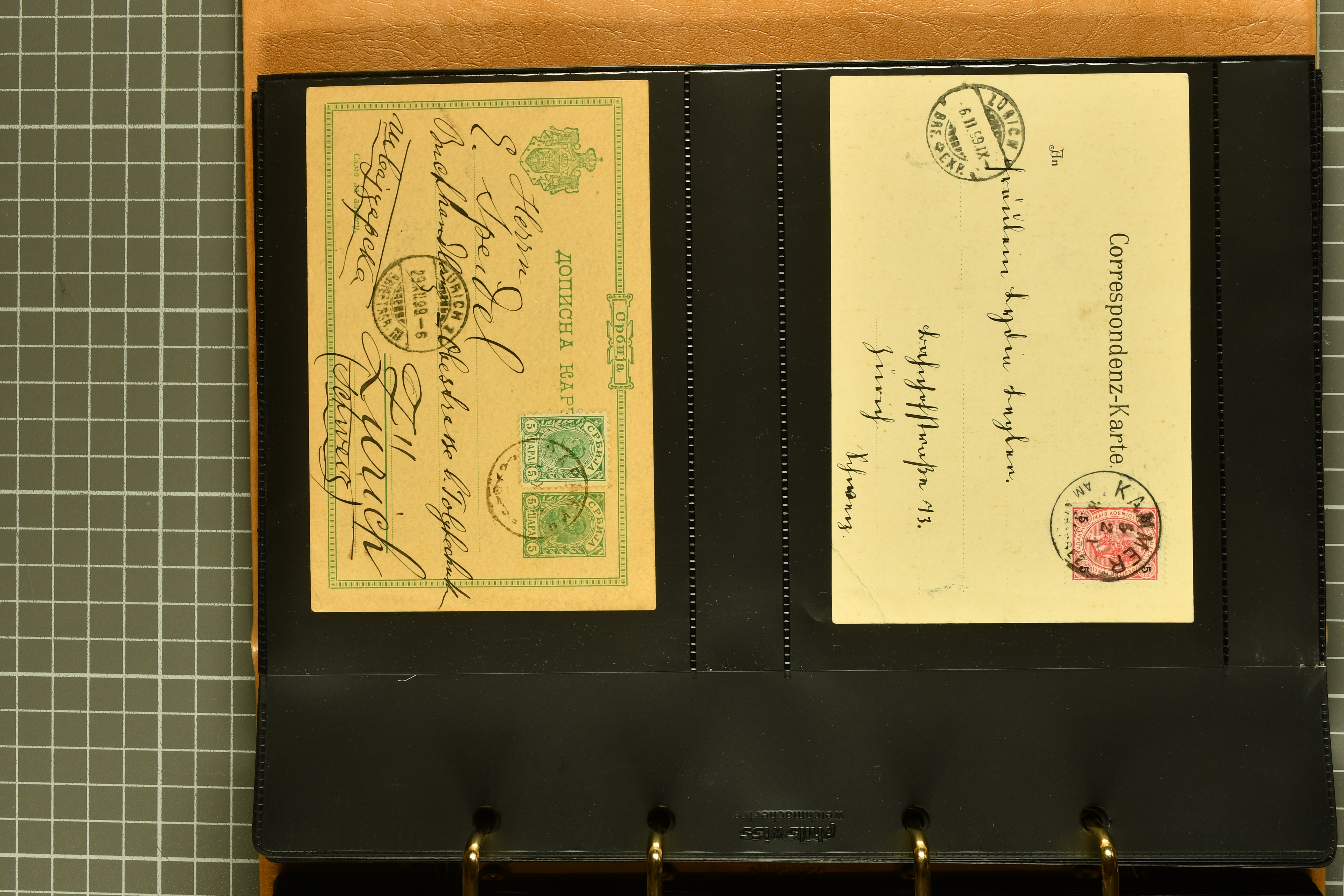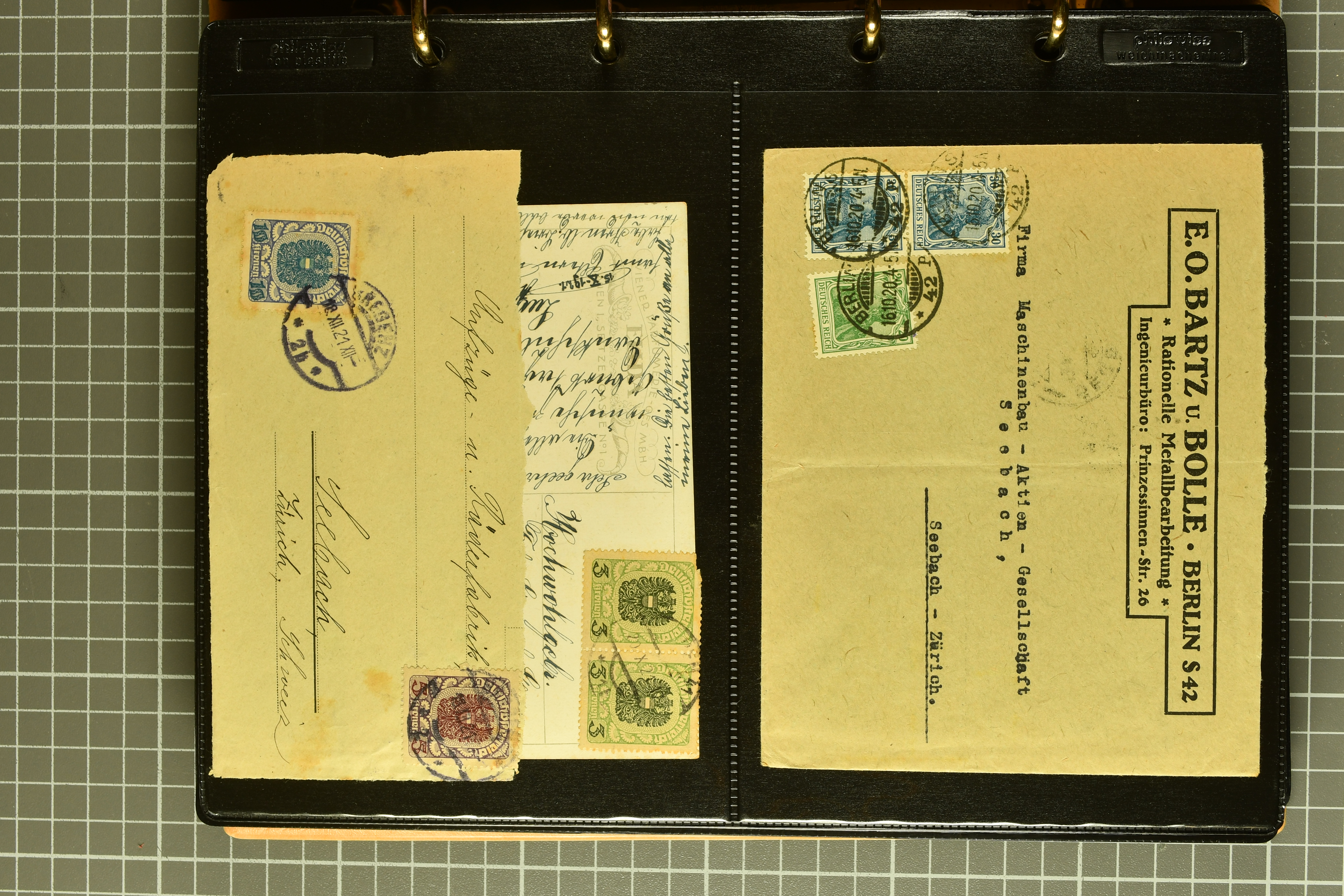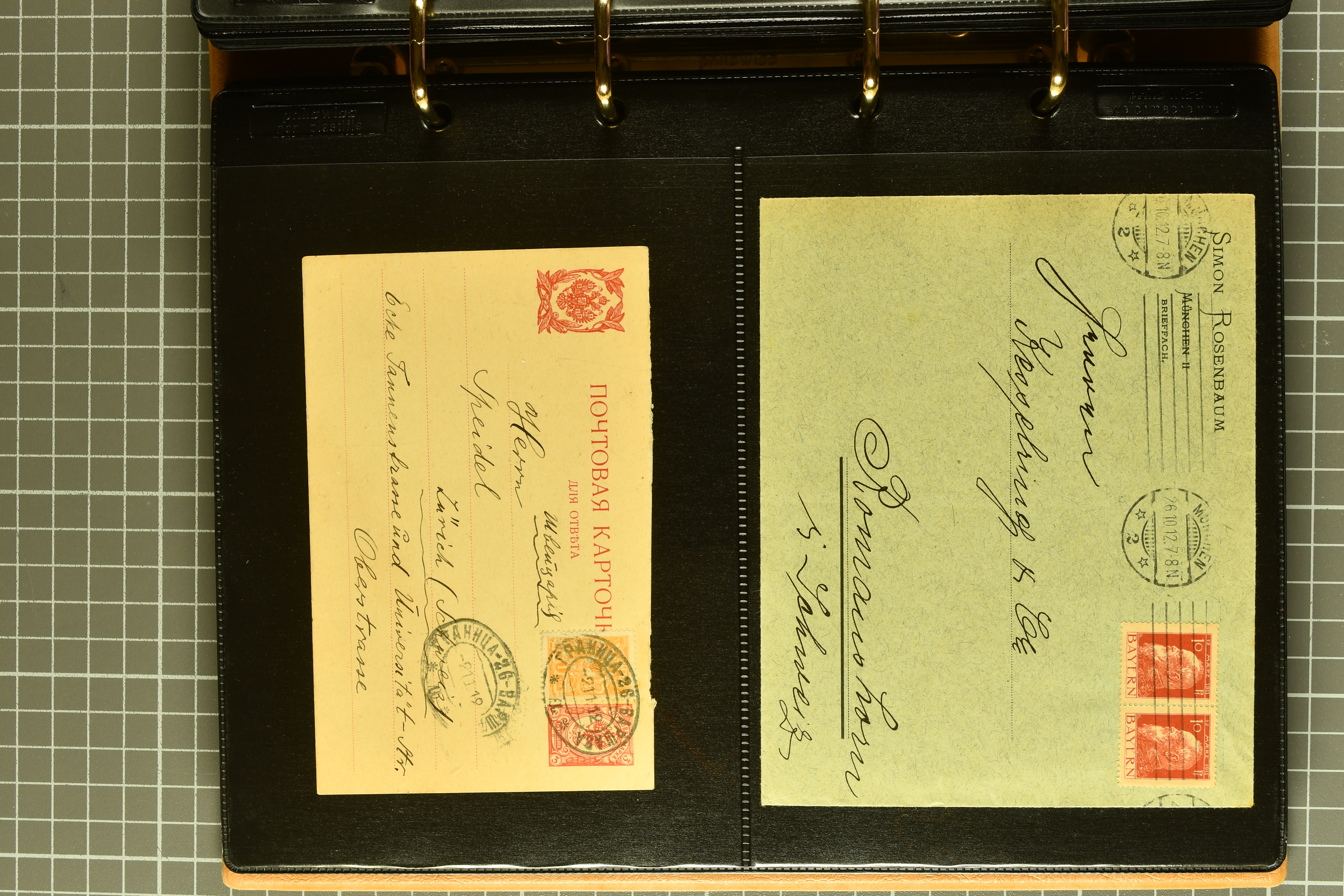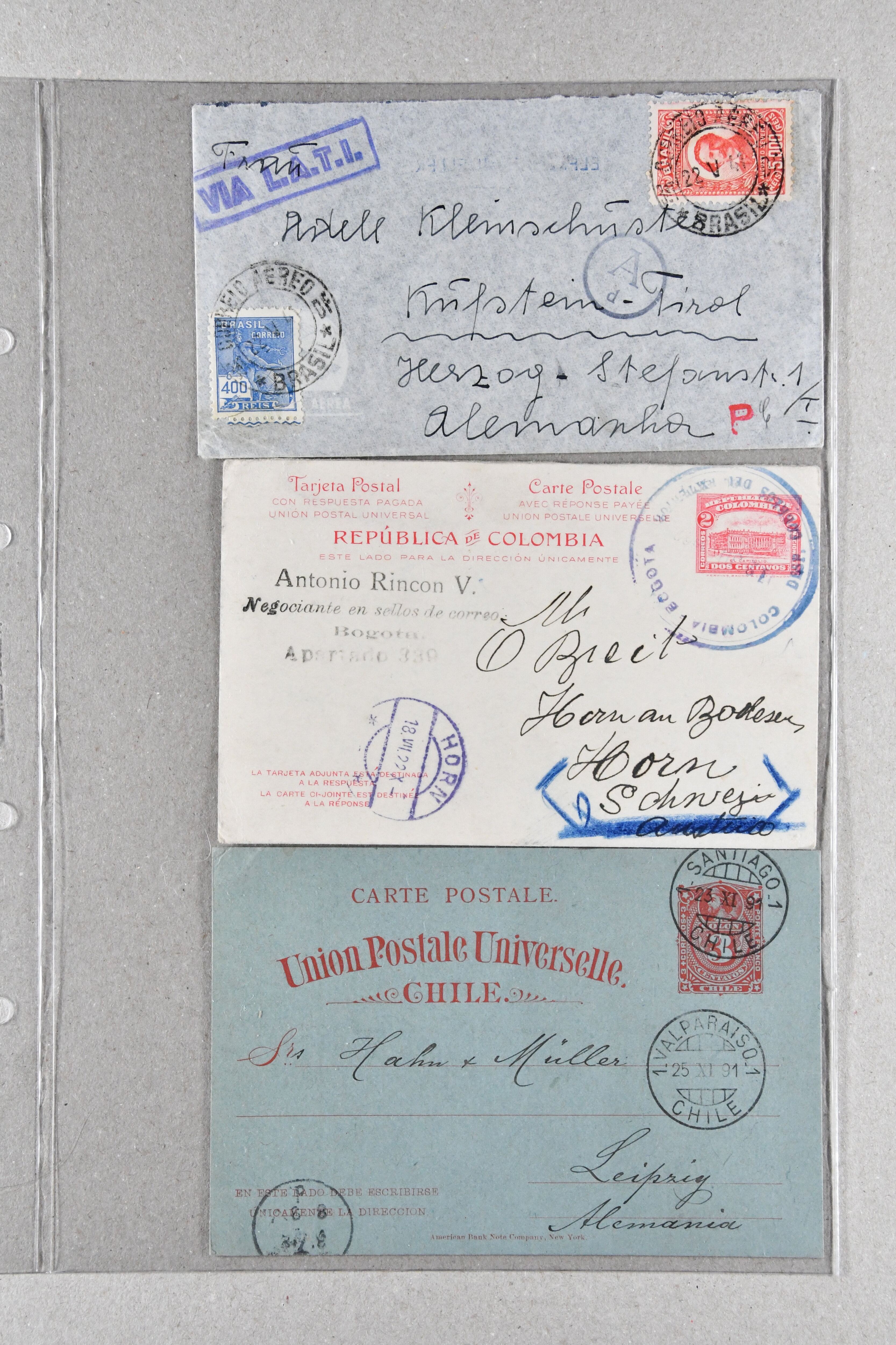 1501 cover image1870/1950c: Group 111 covers / postcards worldwide with many interesting usages including Bulgaria stationery cards from a French WWI POW in Bulgaria to France and to a Bulgarian POW in France with the corresponding censorship cancellations, a 1934 postcard written by Franz See; Poland two 1919/20 stationeries; Czechoslovakia 1929/31 three express stationery postcards; Hungary 1820 envelope from Buda Festung Ofen "F. OFEN" to Modern (Müller 1049a), 1917 complete stationery parcel card Sopron to Constantinople Turkey with 2 kr Franz-Josef & 25 f. Turul; Latvia airmail cover 1928 Riga to Luzern Switzerland, DERULUFT Riga, Invalid stamps; Austria three 1864/67 stationery envelopes with additional frankings, postcard 1898 from Austrian PO in Constantinople to Gouadeloupe, 1889 postcard from FPO Sarajevo; France Alsace française 1917 Gerardmer to Wesserling, censure militaire, 1902 PC from Majunga Madagascar; Romania 1907/21 three PC's to Constantinople or Smyrna; Russia eleven imperial covers / stationeries incl. MTF's; Tunesia 1939 first airmal service Marseille Tunis Damascus; Great Britain 1943 three censored covers to Switzerland; Bavaria 1906 registerd cover to Simla, then Calcutta with Aden Sea Post cancellation, response postcard used 1912 from Constantinople; German Empire PPC Darmstadt to Paris, forwarded to Riga Russia 1909, combination franking with 10 pf. and 10 c.; Belgium 1902 express postcard, 1907 card with punctured and embossed corners; Netherlands 1938 Airmail First flight Amsterdam Batavia Sydney; Ottoman Empire 1907 postcard to New York, four cards to Brazil and five to Romania; Singapore 1905 picture postcard French Ship Mail Ligne N PAQ FR No 8 to France; further items from Japan, Lebanon, Serbia, Sweden, Hyderabad, India, Switzerland, Mexico, Cuba, Egypt, and Finland, in addition India 1957-70, group 48 First Day Covers (Image 1) (Image 2) (Image 3) (Image 4) (Image 5) (Image 6) (Image 7) (Image 8) (Image 9) (Image 10) (Image 11) (Image 12) (Image 13) (Image 14) (Image 15) (Image 16)